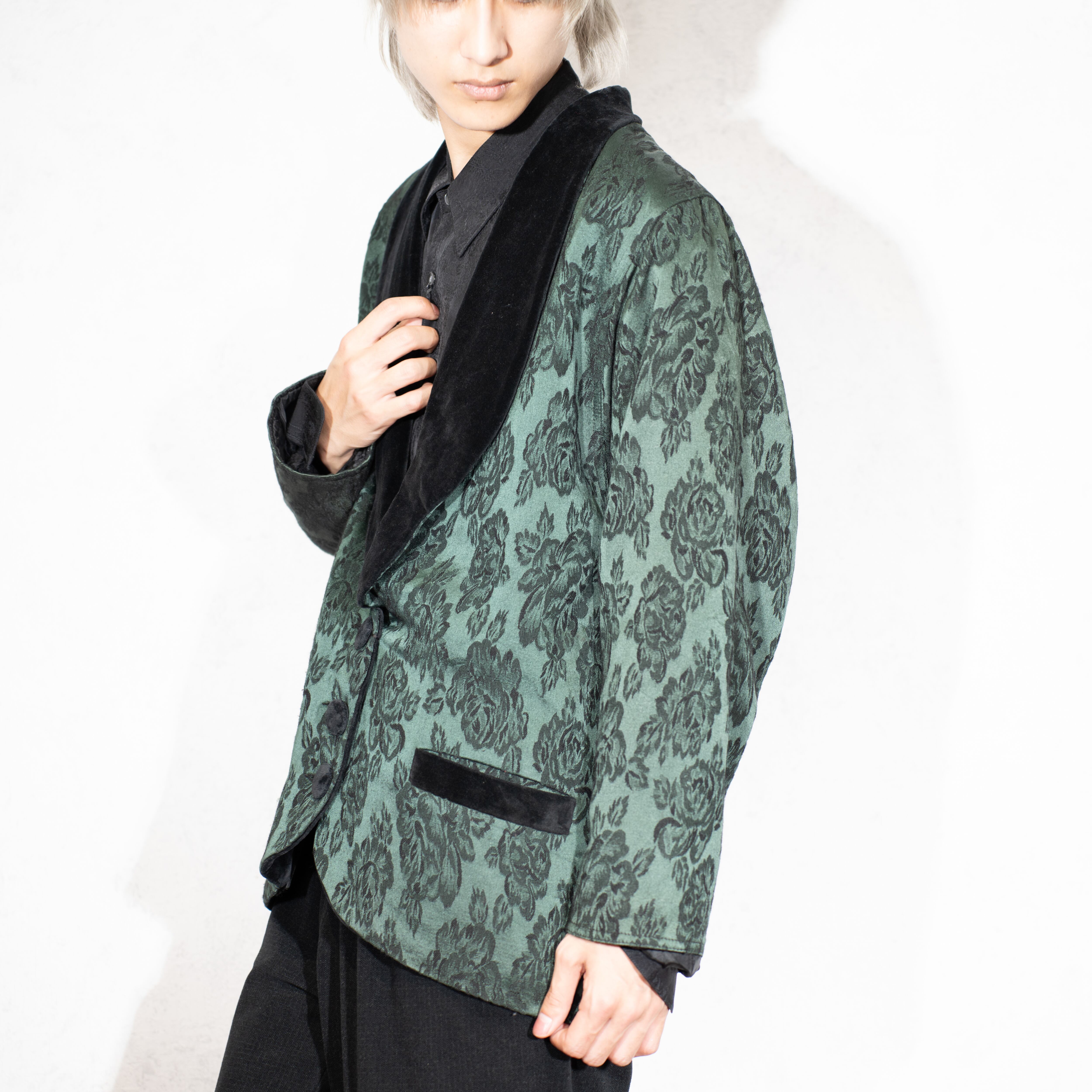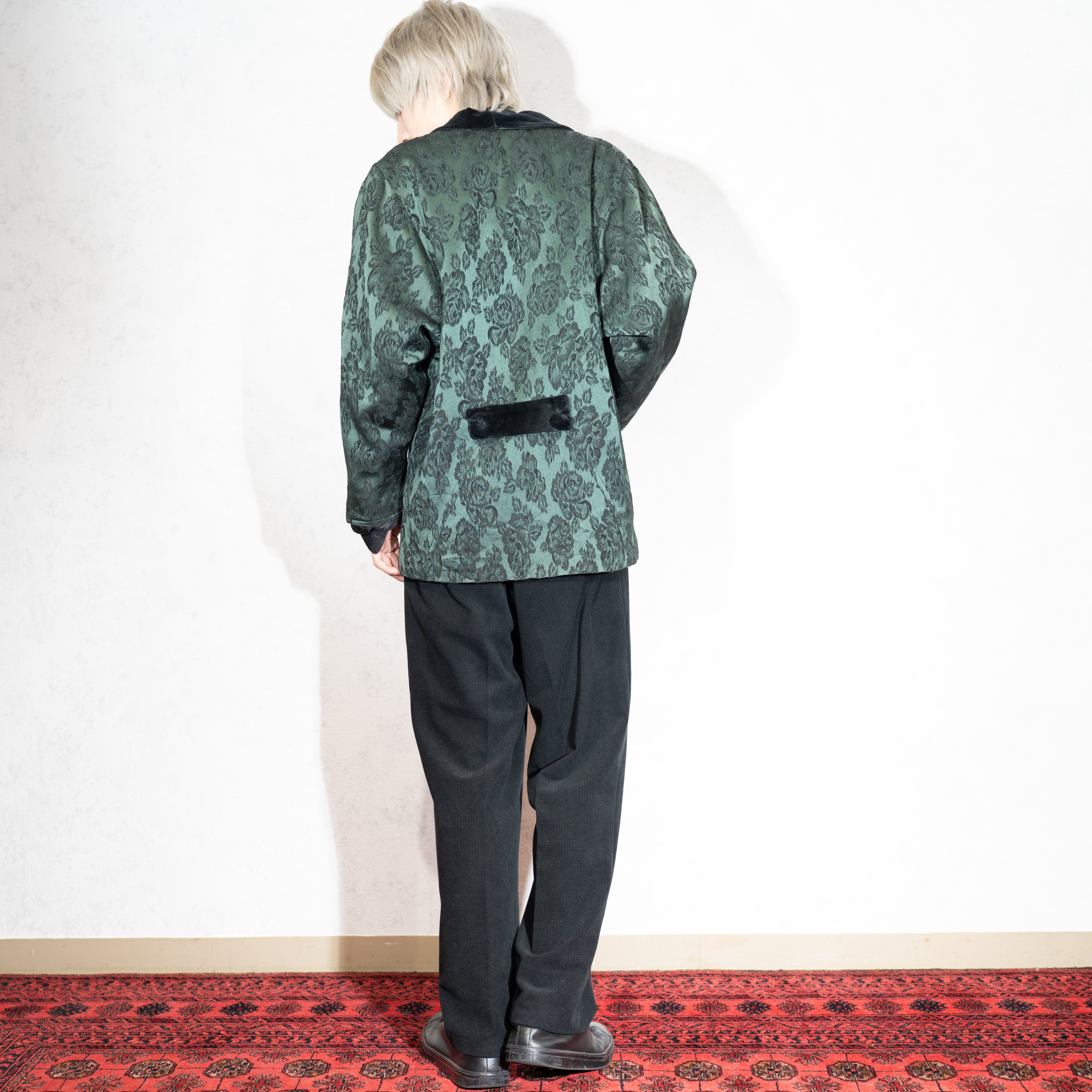 *SPECIAL ITEM* EU VINTAGE ROSE EMBROIDERY JACQUARD VELOUR SWITCHED TAILORED JACKET/ヨーロッパ古着薔薇ジャガード刺繍ベロア切替テーラードジャケット