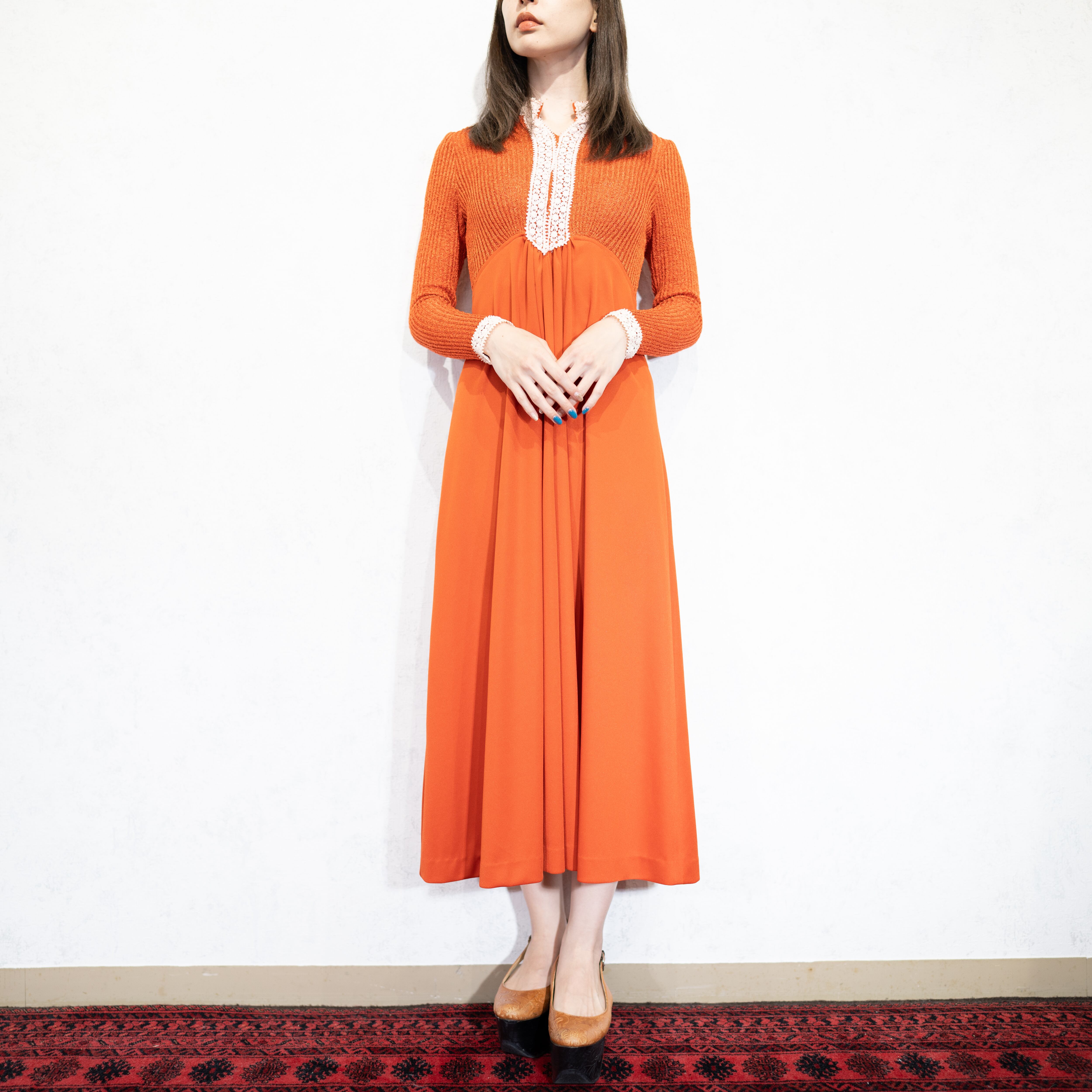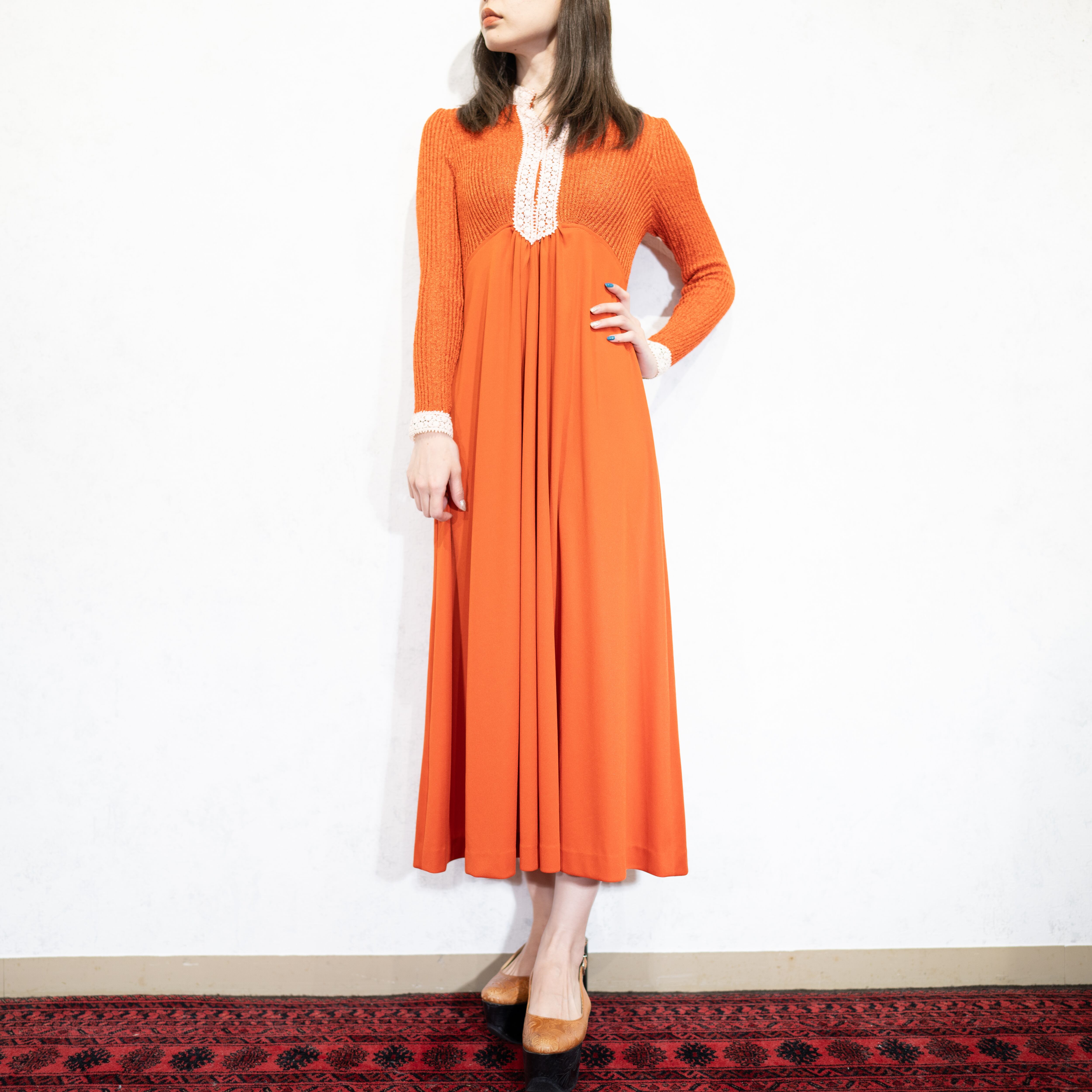 *SPECIAL ITEM* 70's USA VINTAGE LACE DESIGN DRESS ONE PIECE/70年代アメリカ古着レースデザインドレスワンピース