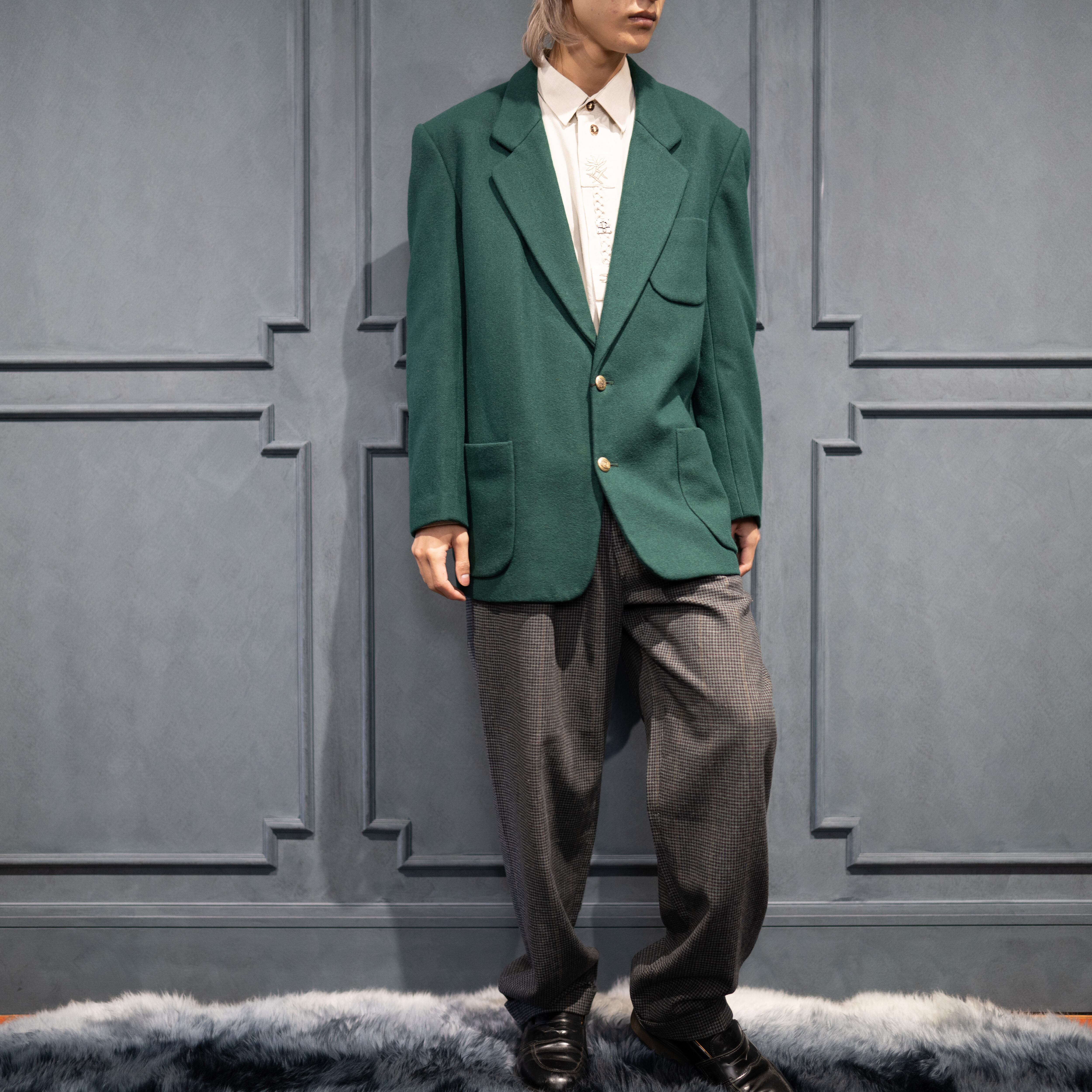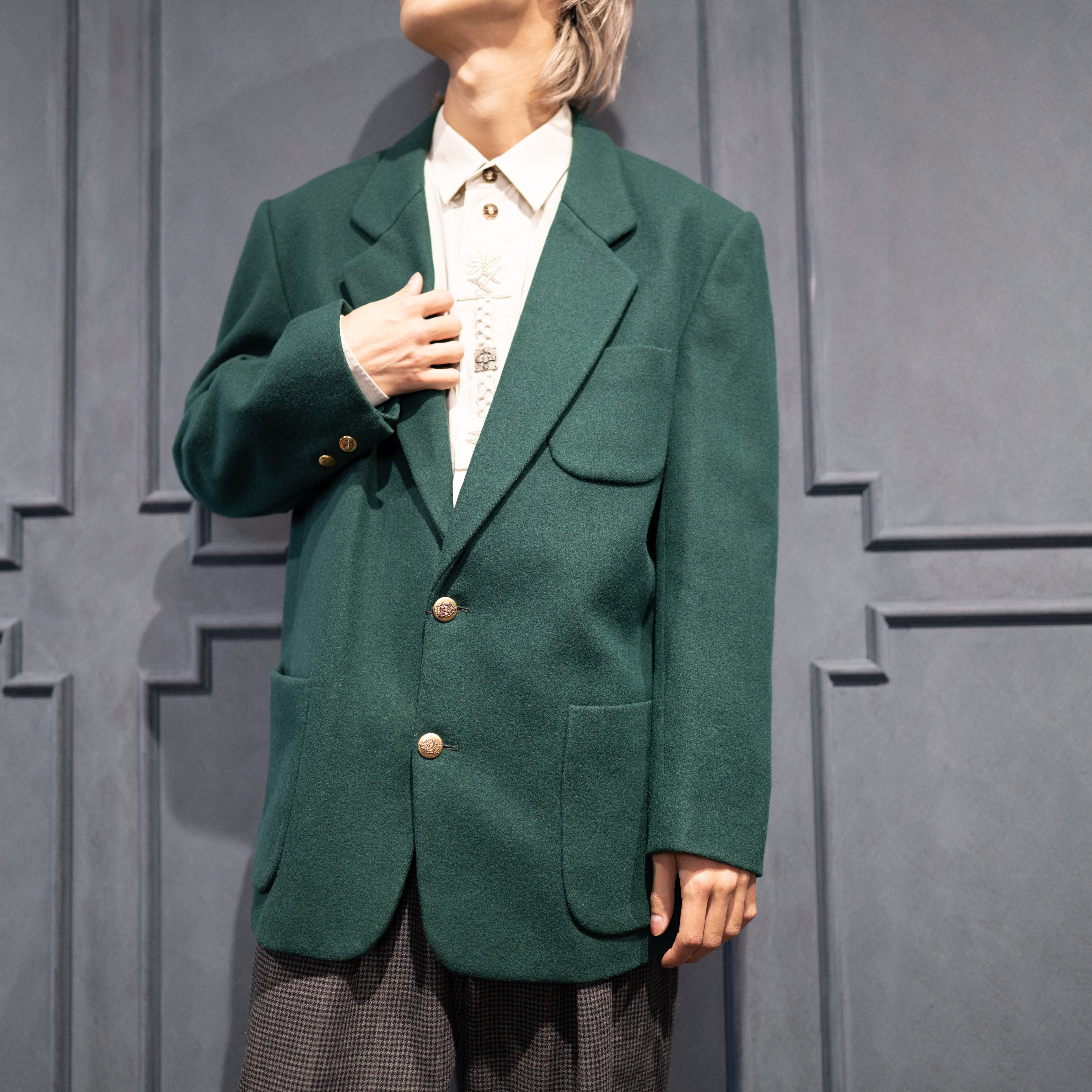RETRO VINTAGE GOLD BUTTON GREEN COLOR WOOL TAILORED JACKET/レトロ古着金ボタングリーンカラーウールテーラードジャケット