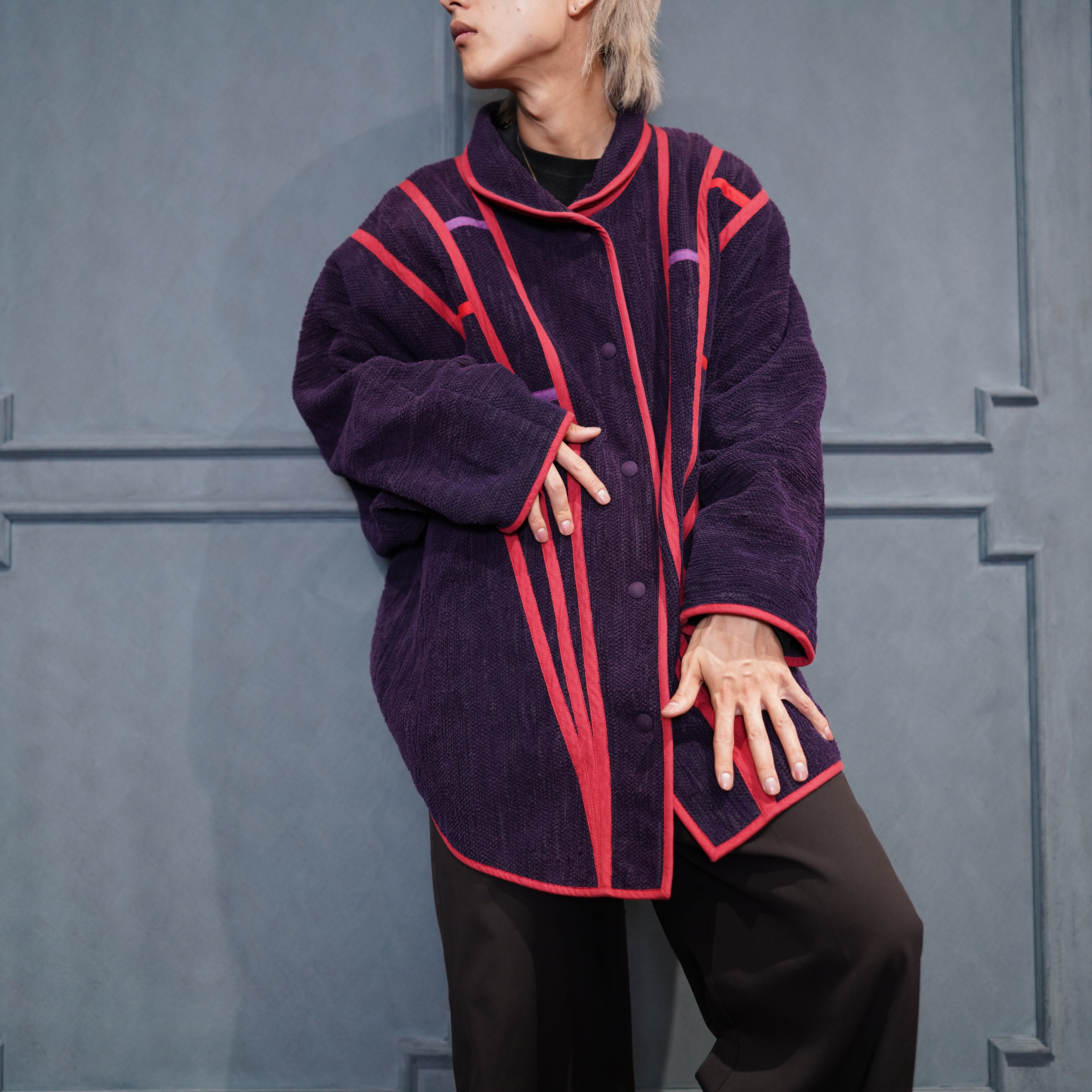 EU VINTAGE ANNIKKI KARVINEN FINLAND PIPING DEFORMATION DESIGN COAT/ヨーロッパ古着パイピング変形デザインコート