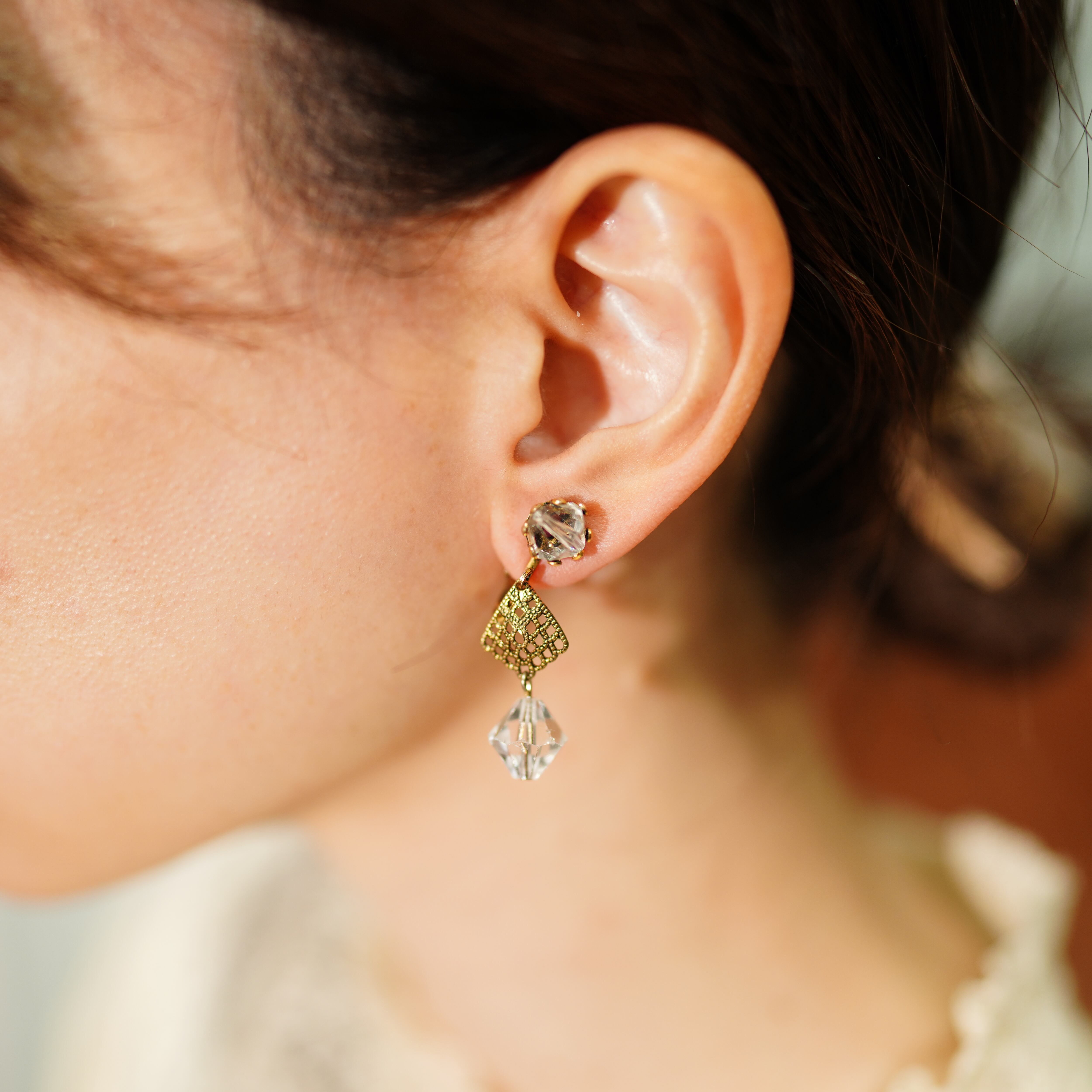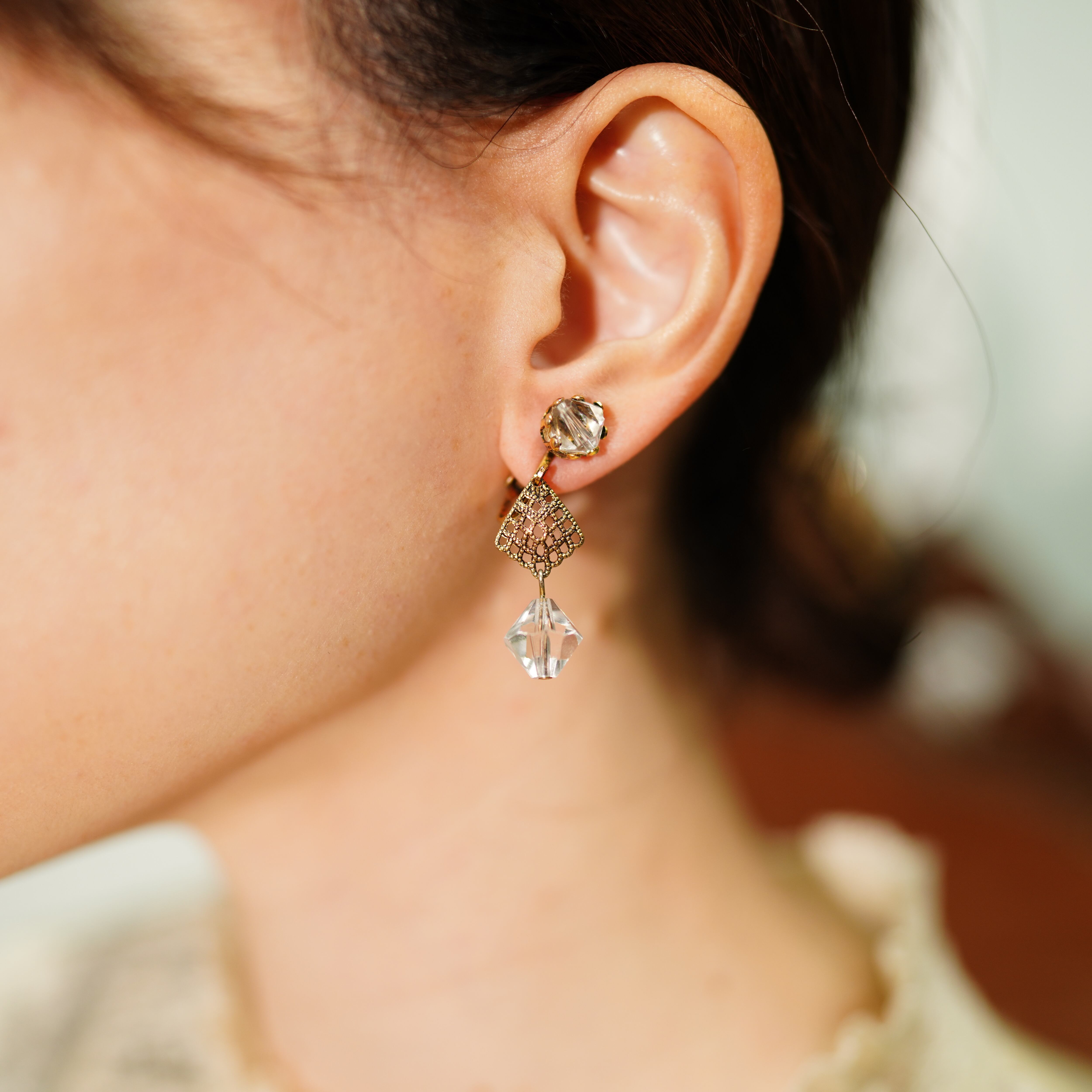 USA VINTAGE METALWORK CLEAR DESIGN EAR CLIPS/アメリカ古着メタルワーククリアデザインイヤリング