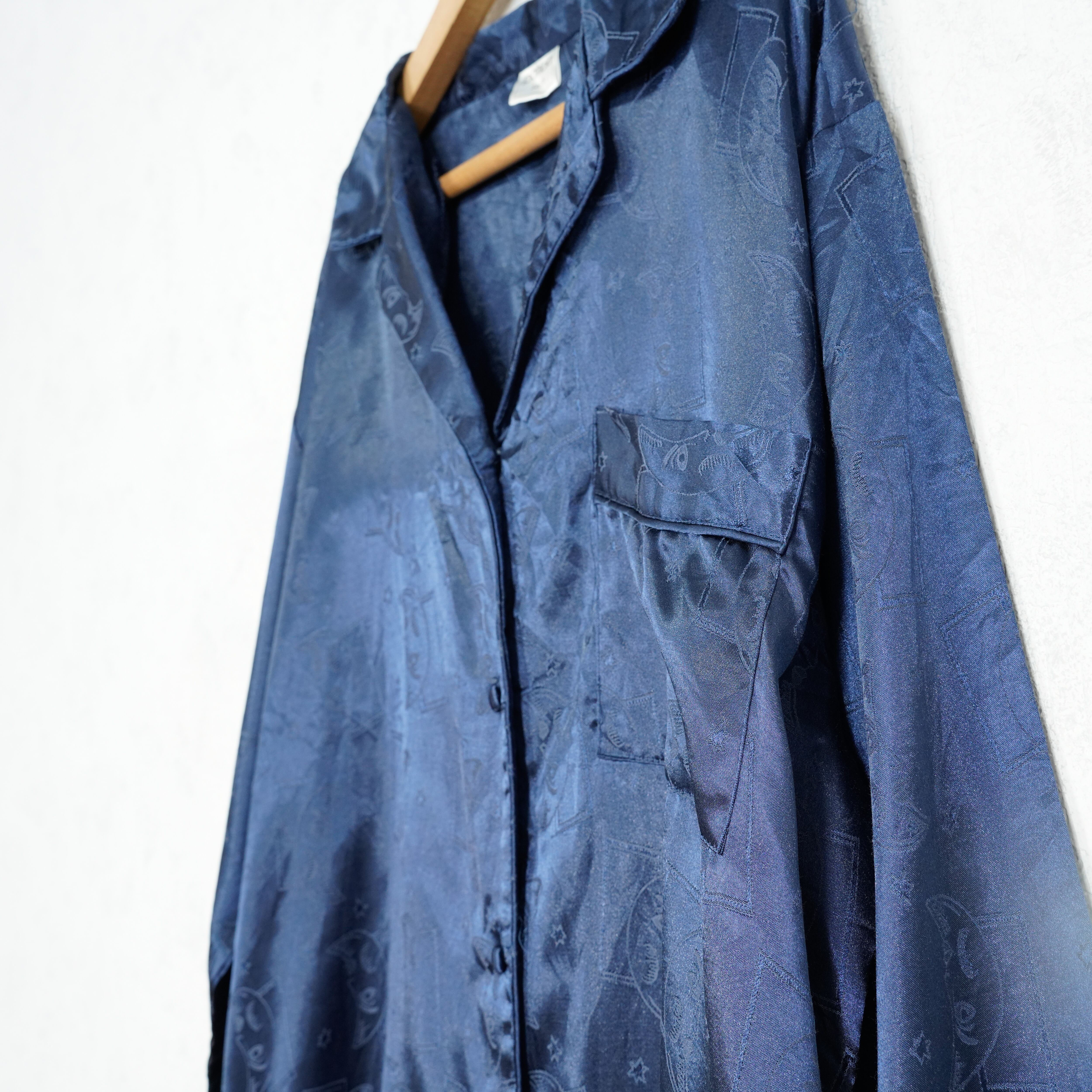 EU VINTAGE patricia EMBROIDERY JACQUARD DESIGN PAJAMAS SHIRT/ヨーロッパ古着ジャガード刺繍デザインパジャマシャツ