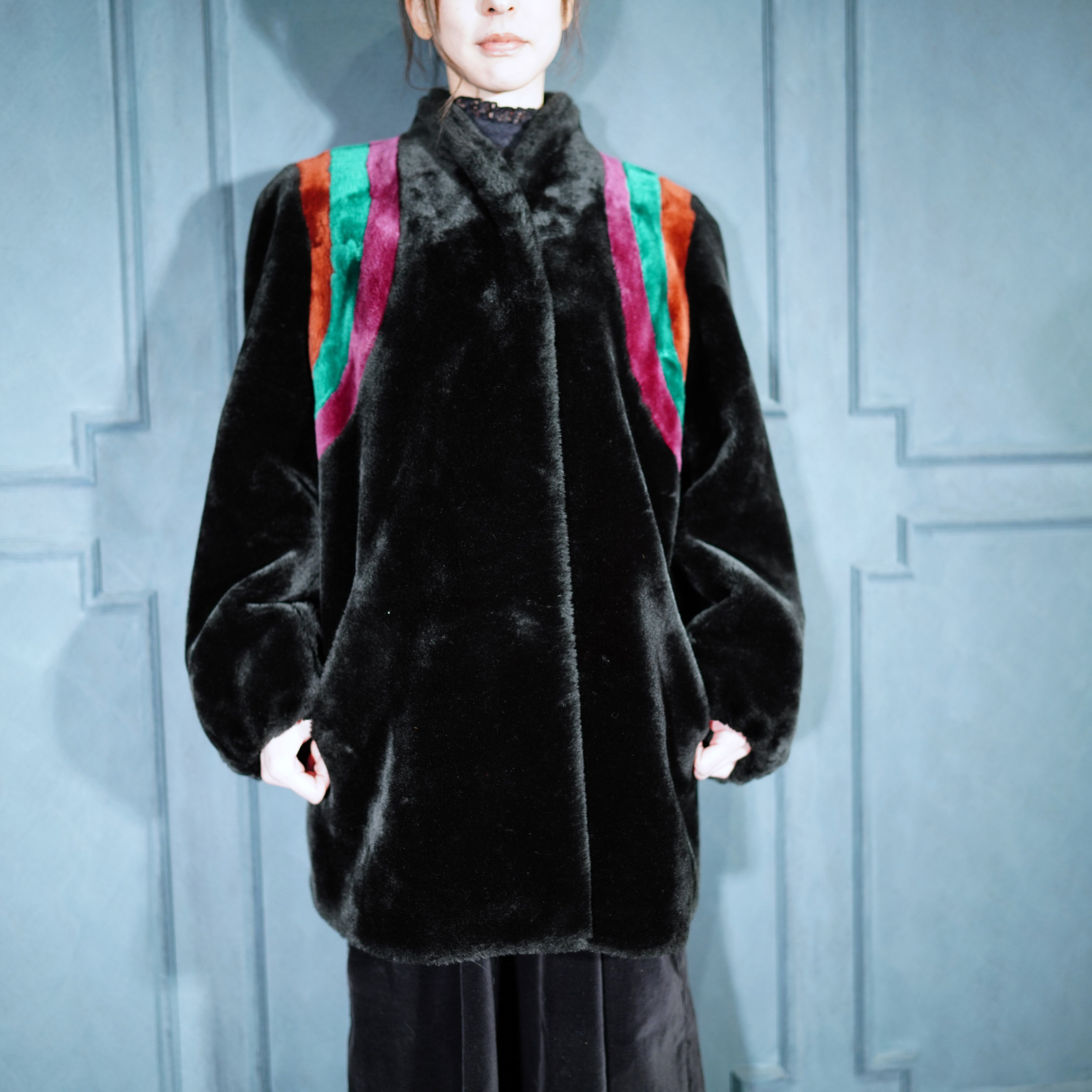 70's USA VINTAGE MODE DESIGN ECO FUR SHORT LENGTH COAT/70年代アメリカ古着モードデザインエコファーショートコート