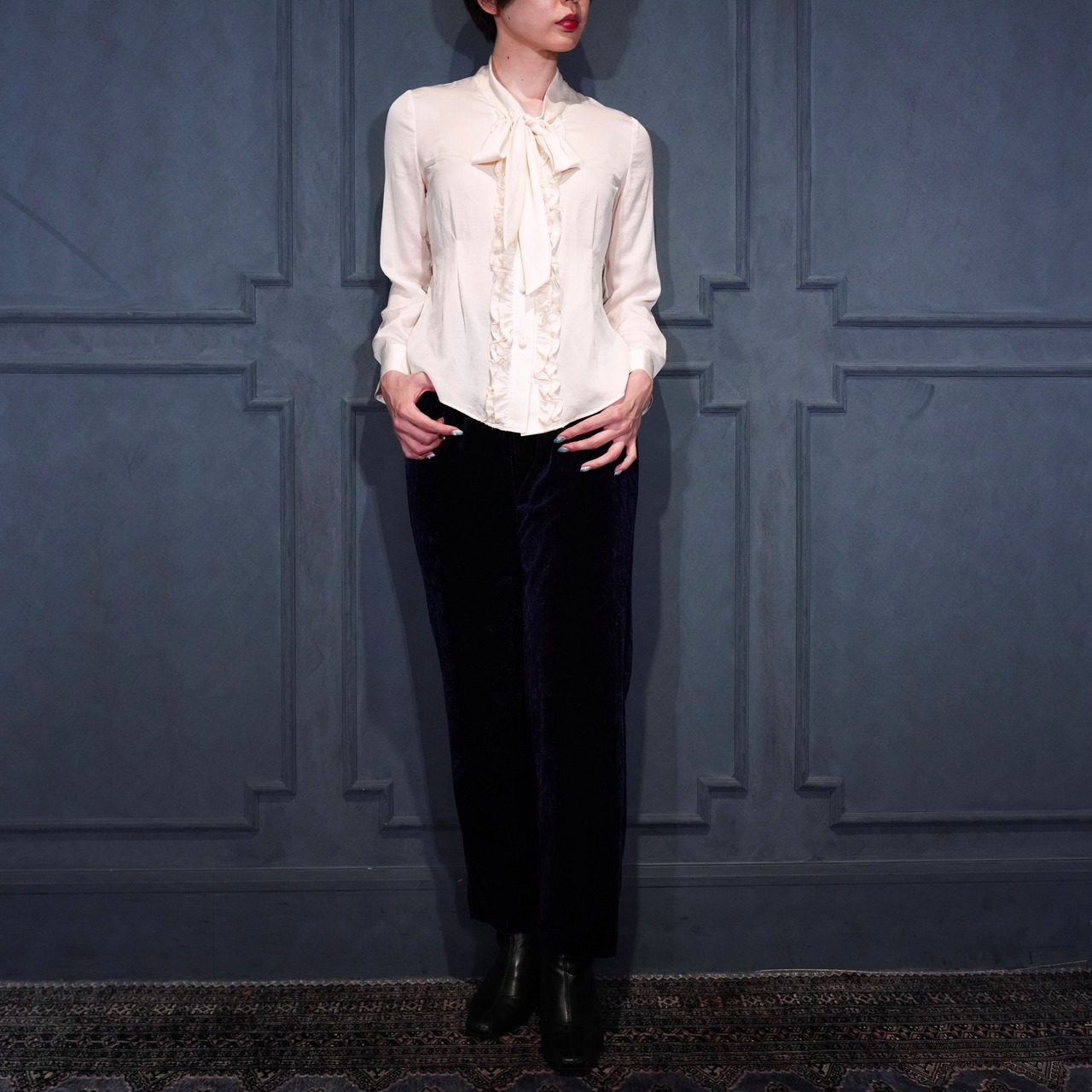 USA VINTAGE LIZ BAKER NAVY COLOR VELOUR PANTS/アメリカ古着ネイビーカラーベロアパンツ