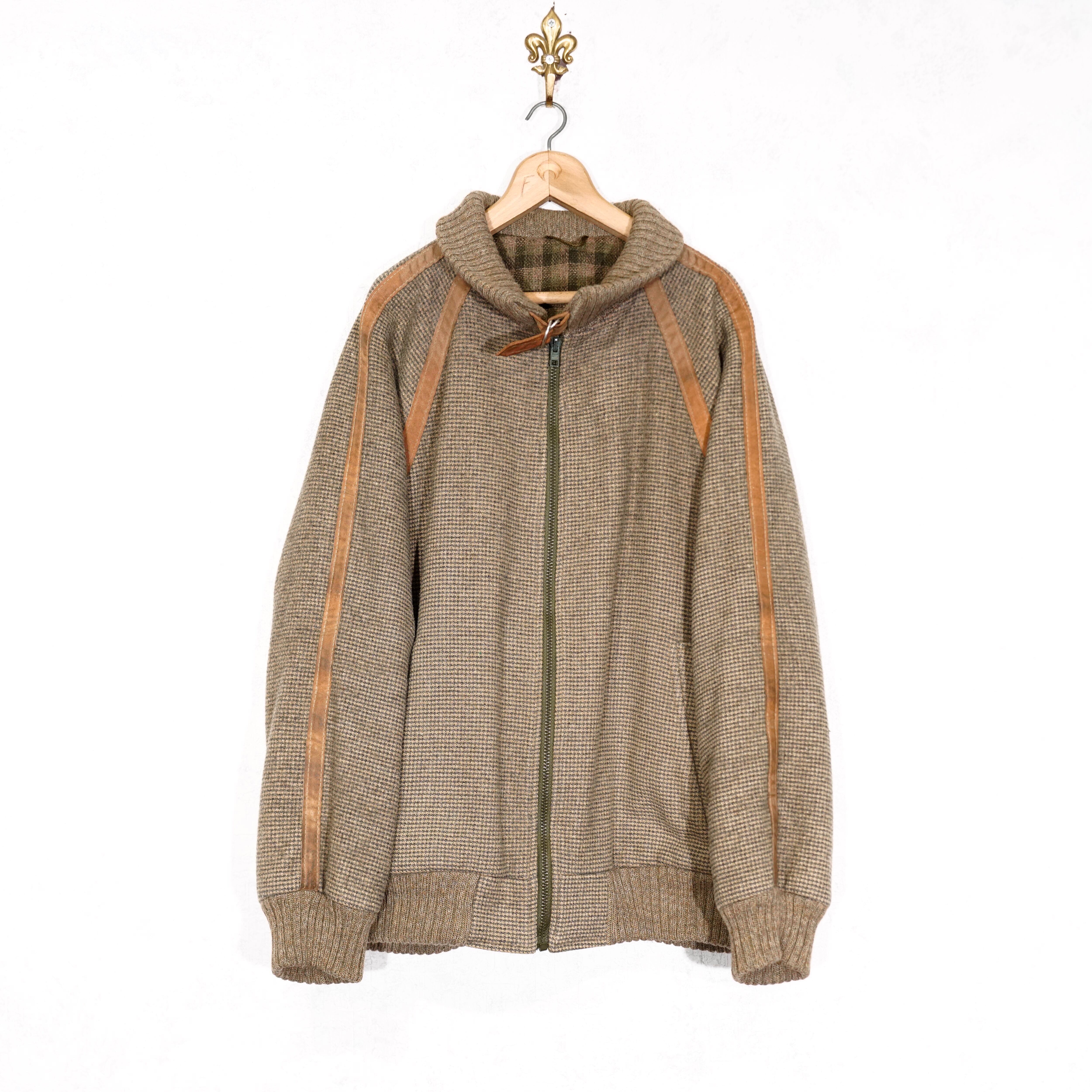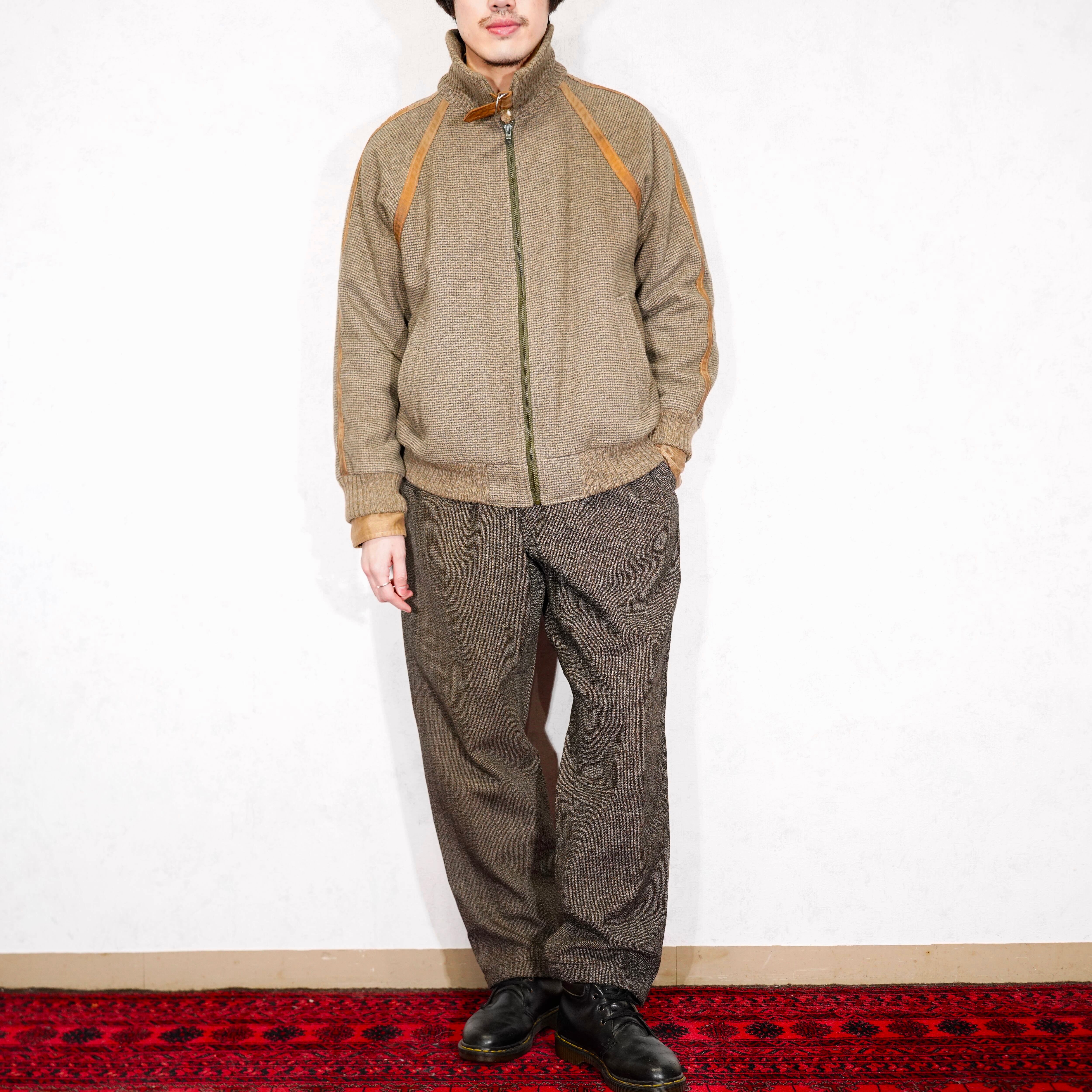 EU VINTAGE LEATHER LINE TWEED DRIVERS ZIP BLOUSON/ヨーロッパ古着レザーラインツイードドライバーズジップブルゾン