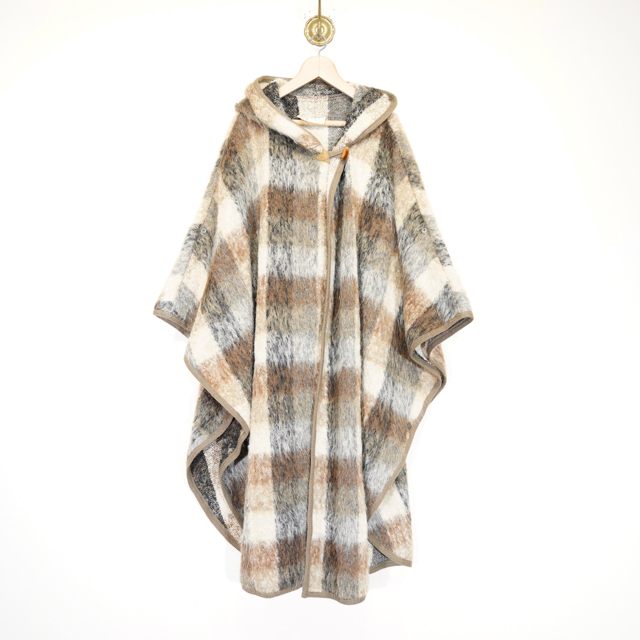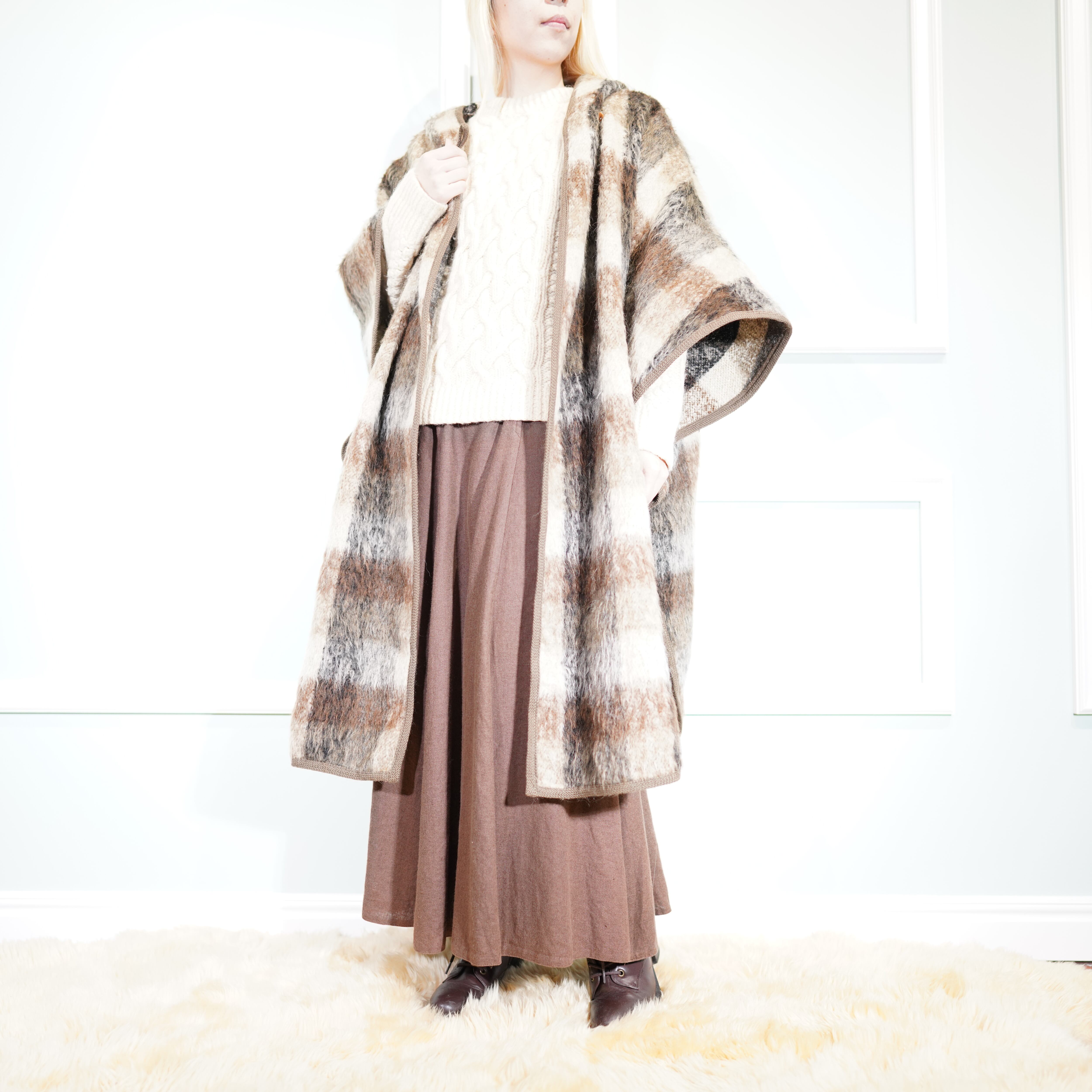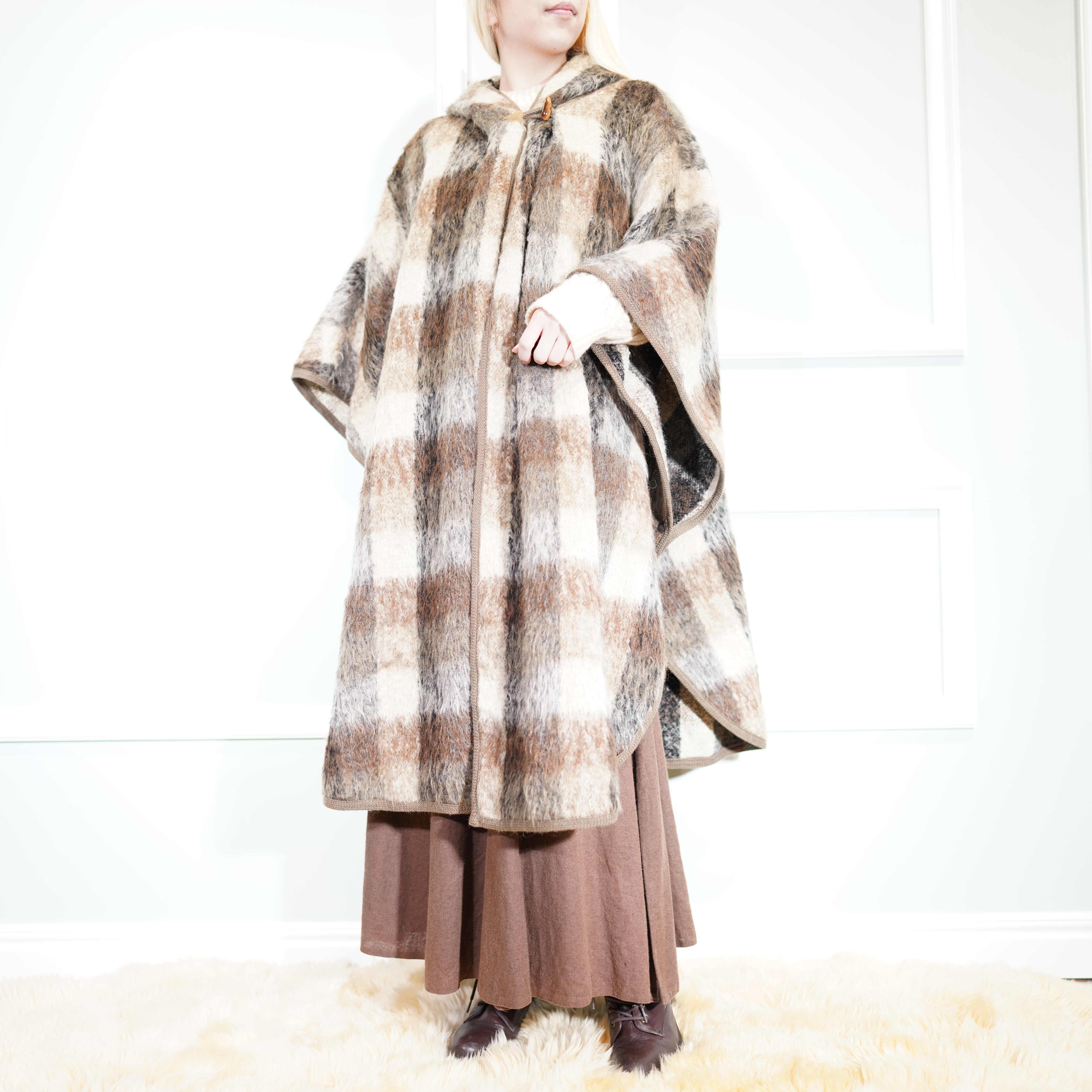 *SPECIAL ITEM* EU VINTAGE MA CHECK PATTERNED LONG MOHAIR CAPE COAT PONCHO/ヨーロッパ古着チェック柄ロングモヘアケープコート(ポンチョ)