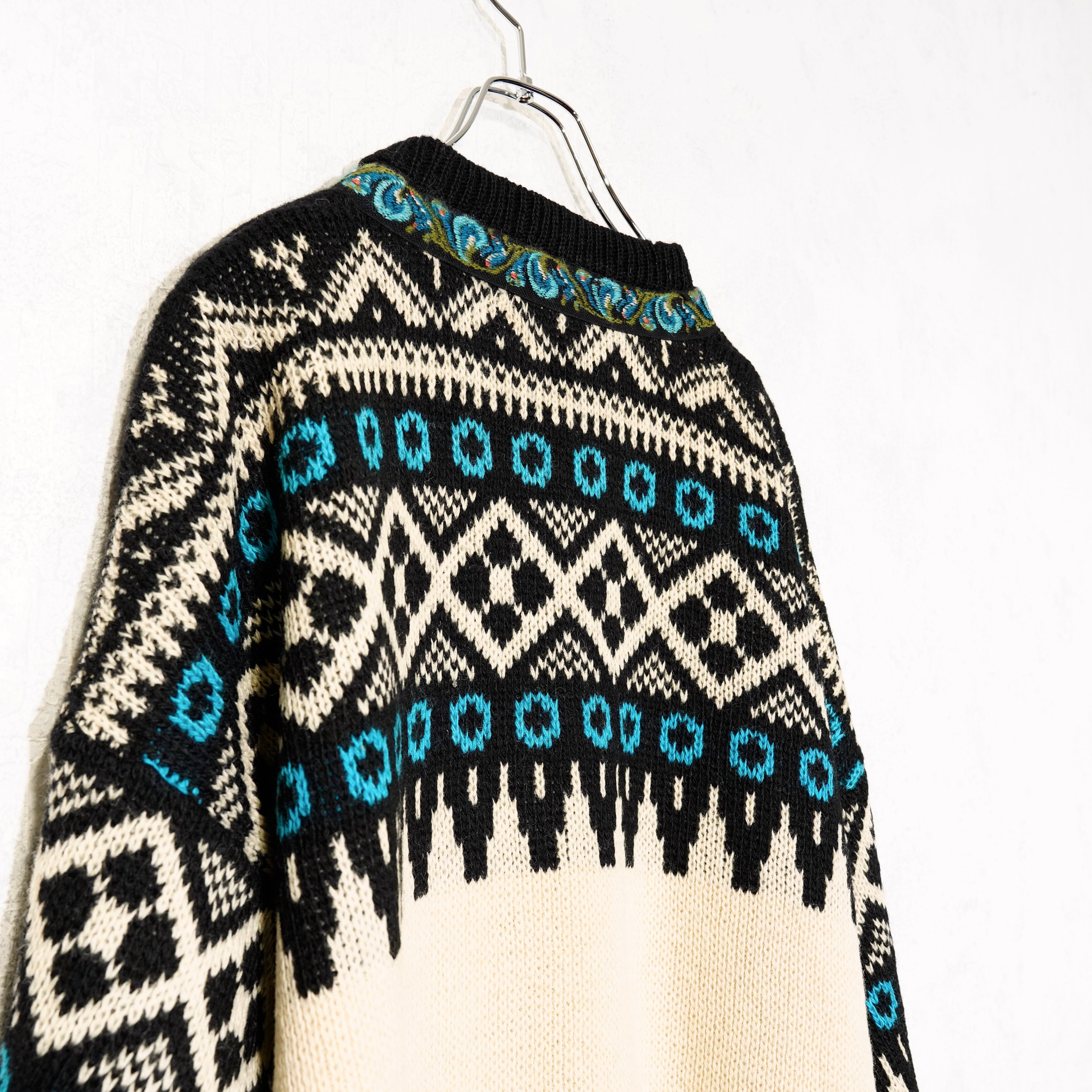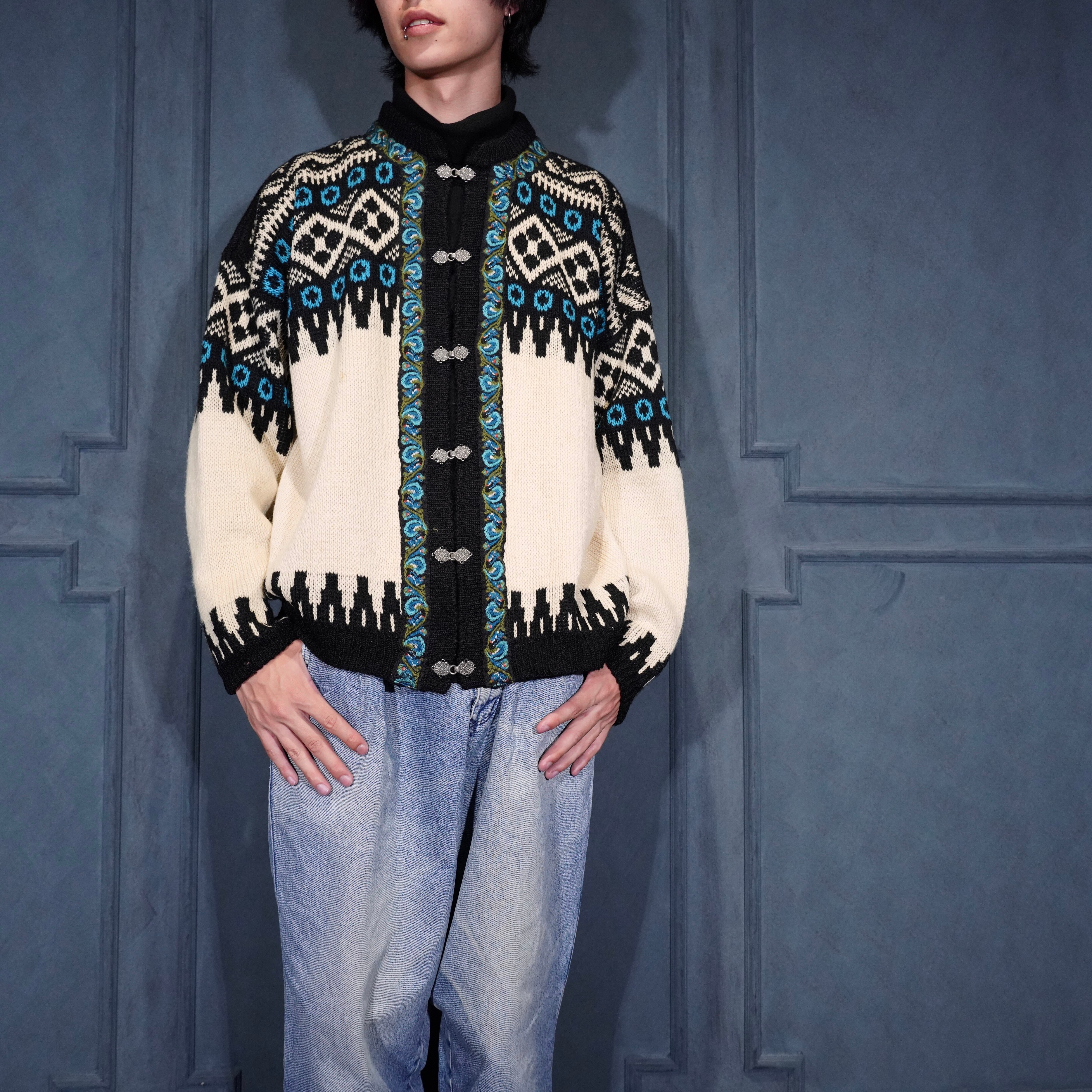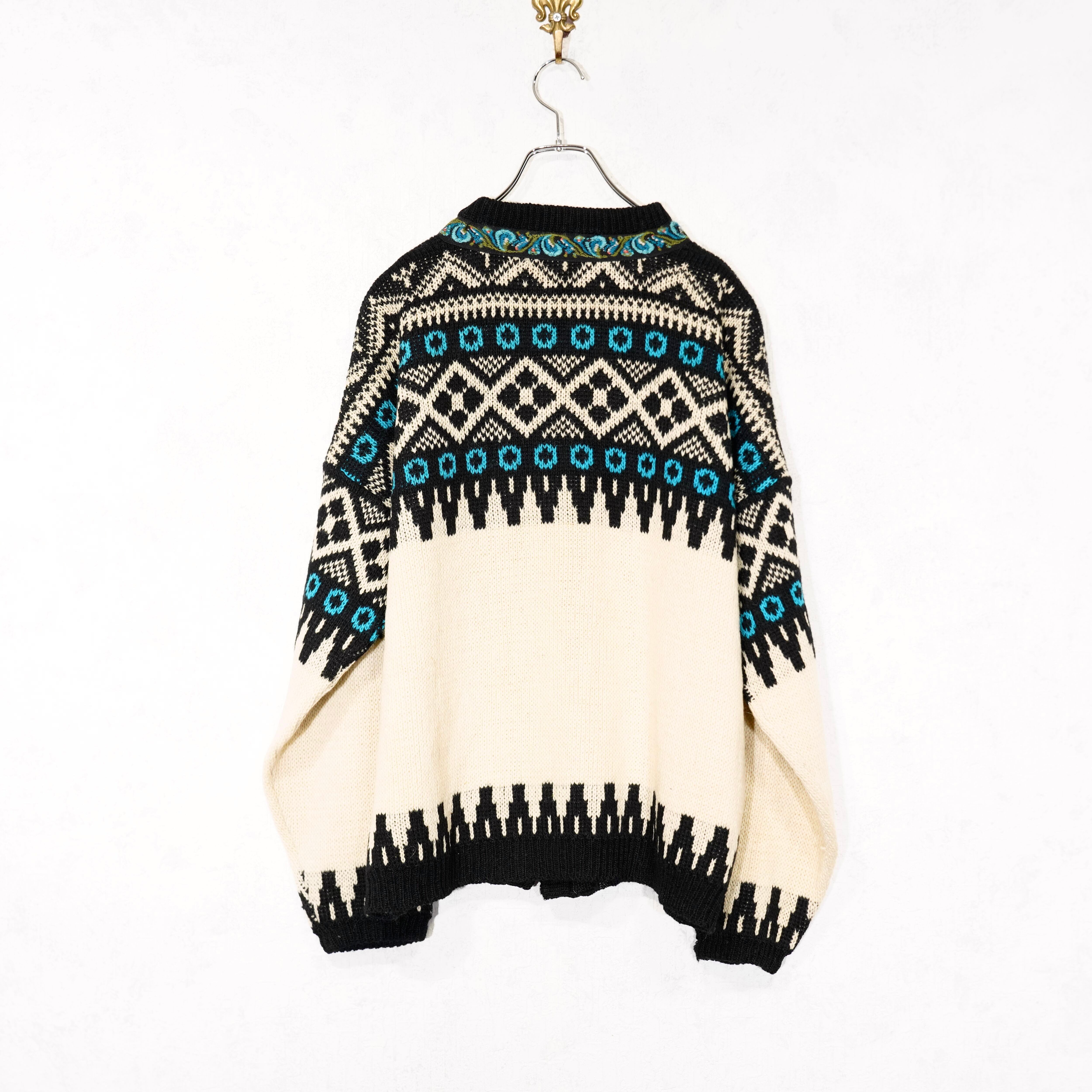 EU VINTAGE gann sports NORDIC PATTERNED EMBROIDERY DESIGN NORDIC KNIT CARDIGAN/ヨーロッパ古着ノルディック柄刺繍デザインノルディックニットカーディガン