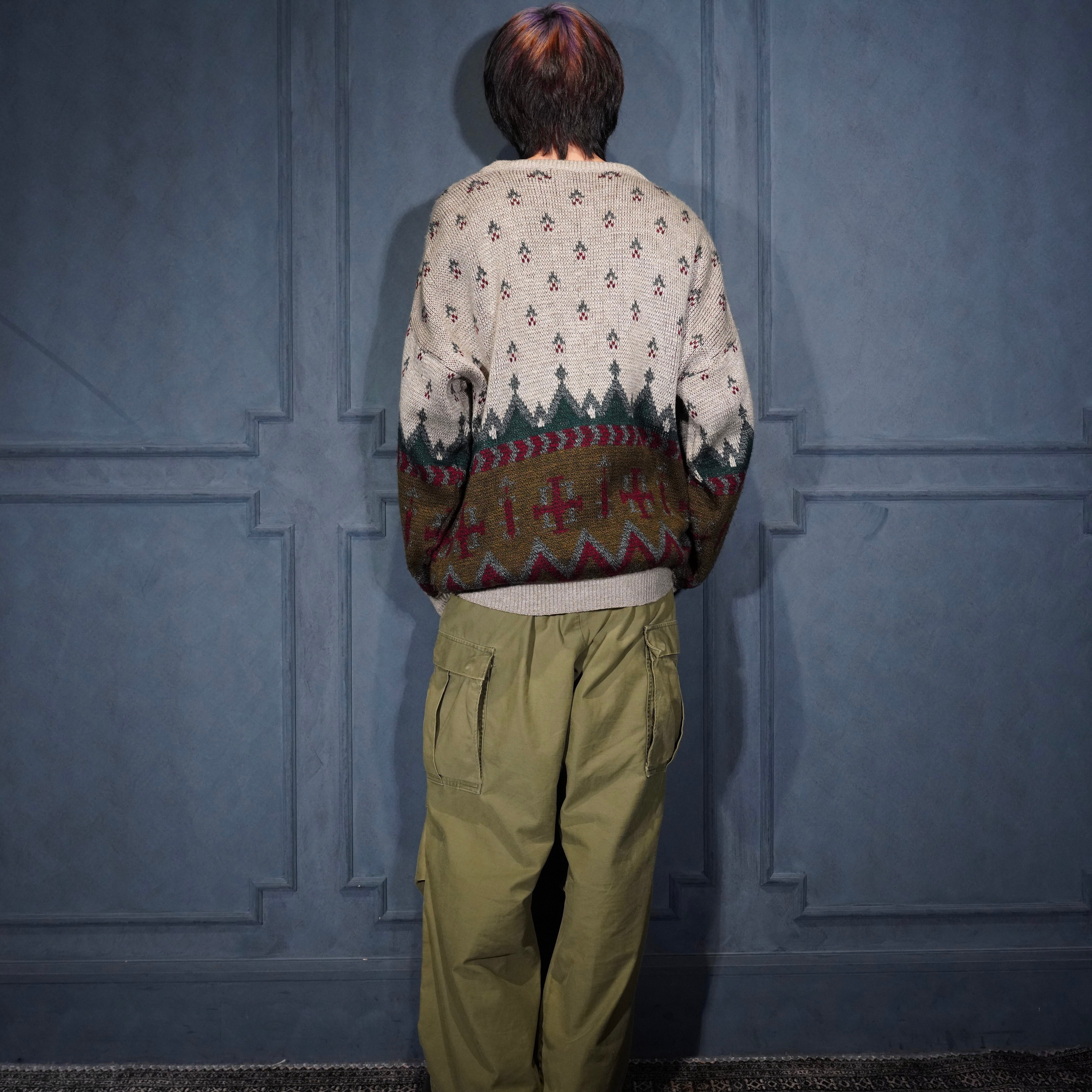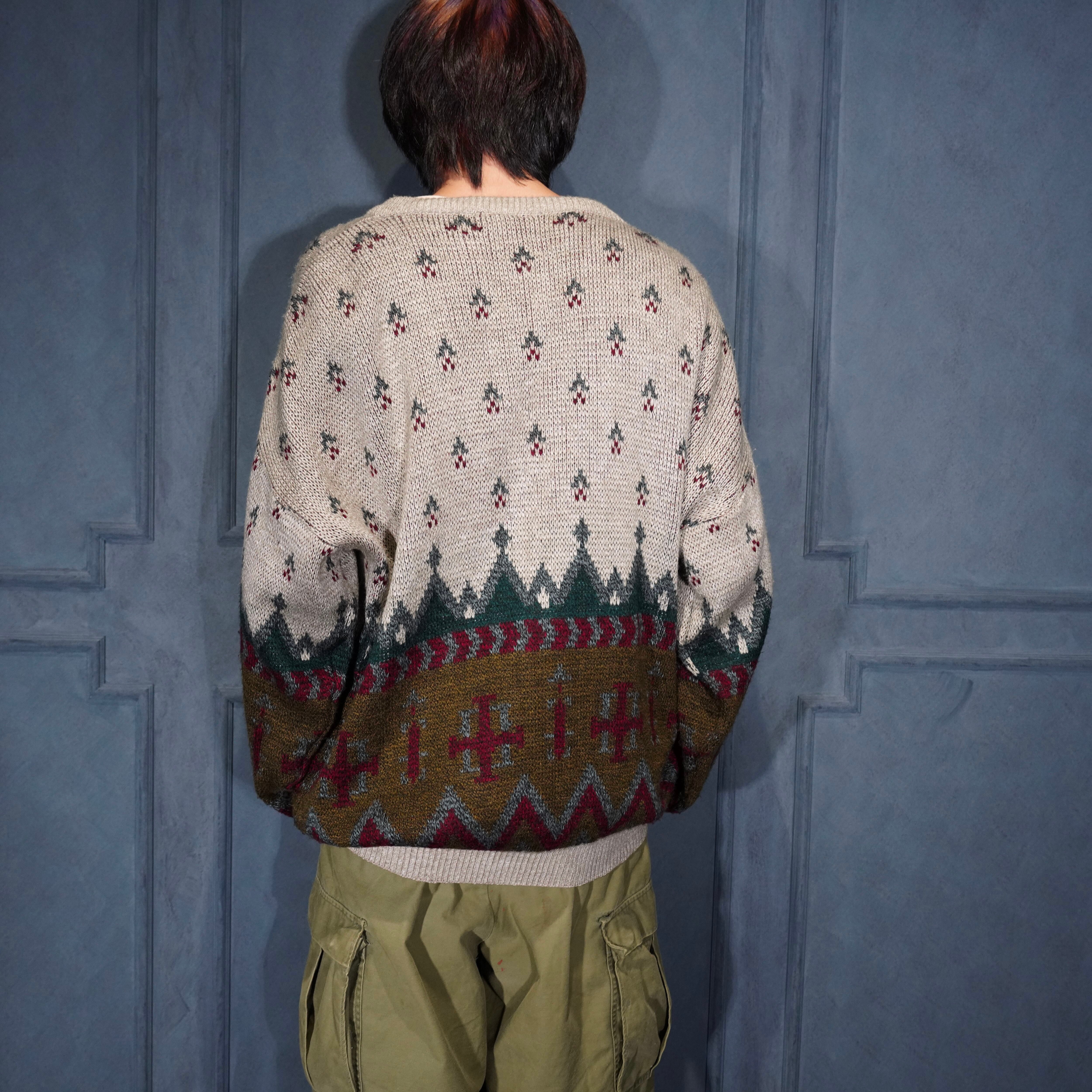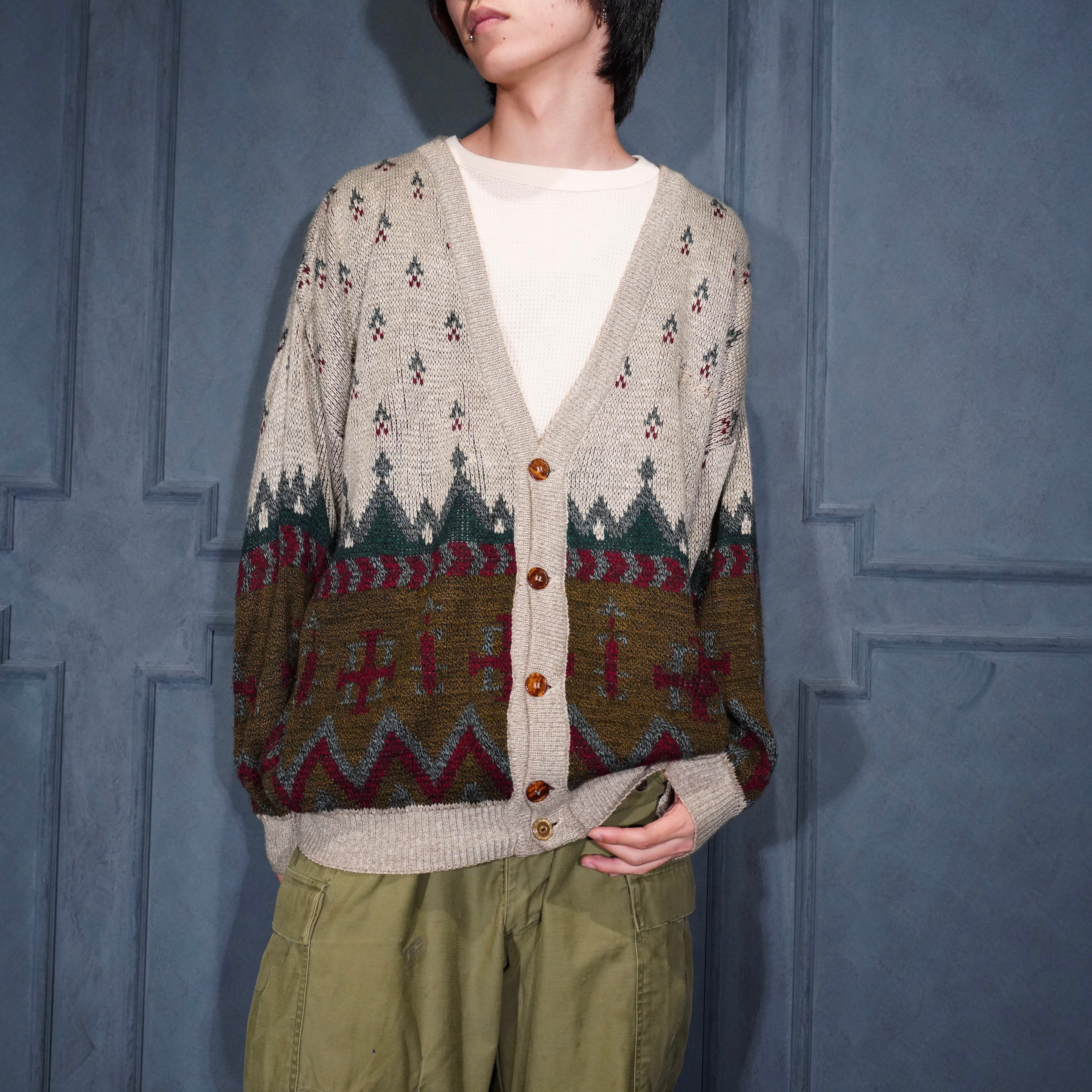 EU VINTAGE DIESEL PATTERNED DESIGN KNIT CARDIGAN/ヨーロッパ古着柄デザインニットカーディガン