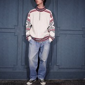 EU VINTAGE F.lli CAMPAGNOLO NORDIC PATTERNED HALF ZIP NORDIC KNIT/ヨーロッパ古着ノルディック柄ハーフジップノルディックニット