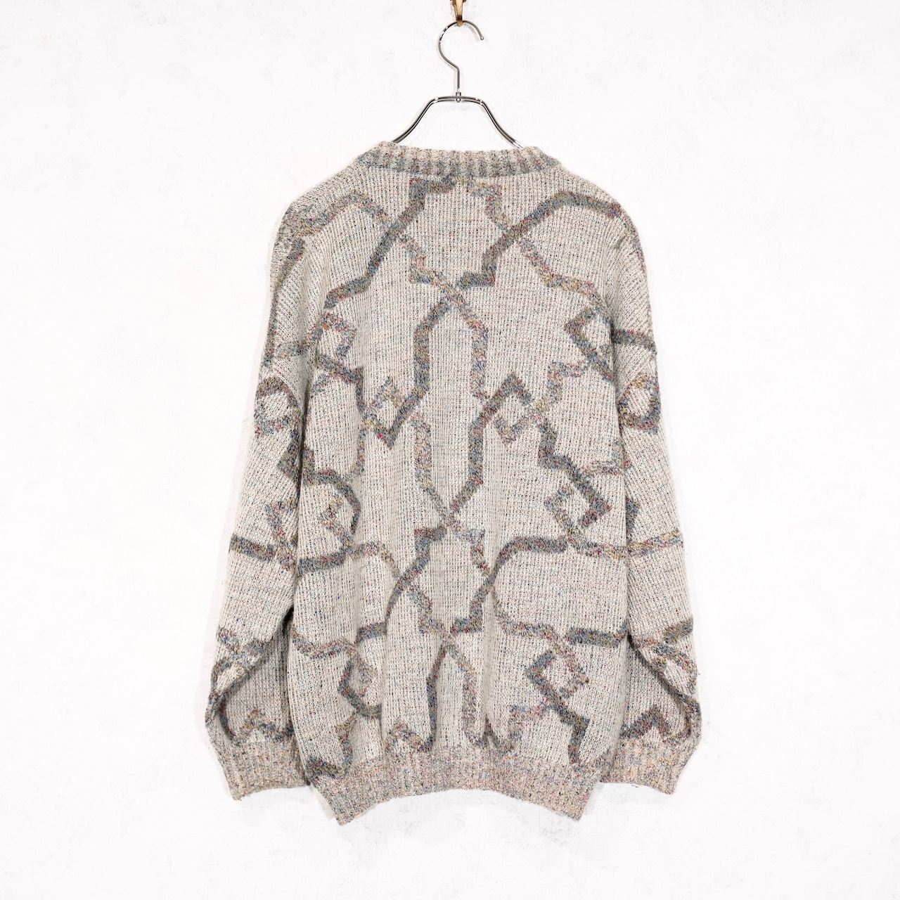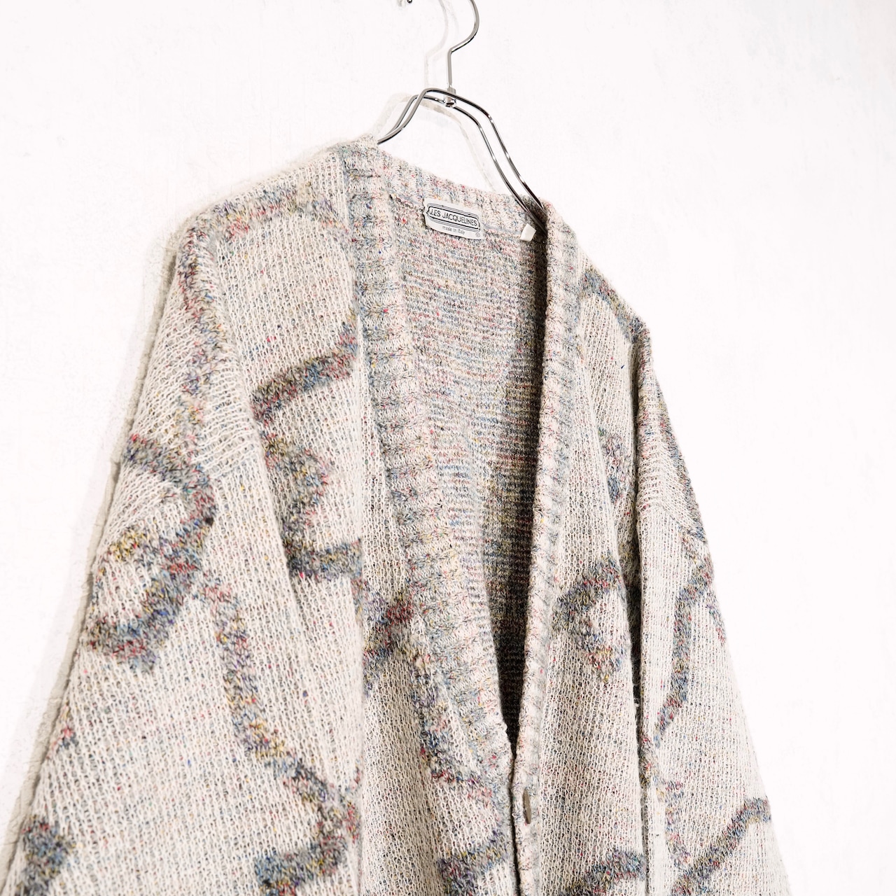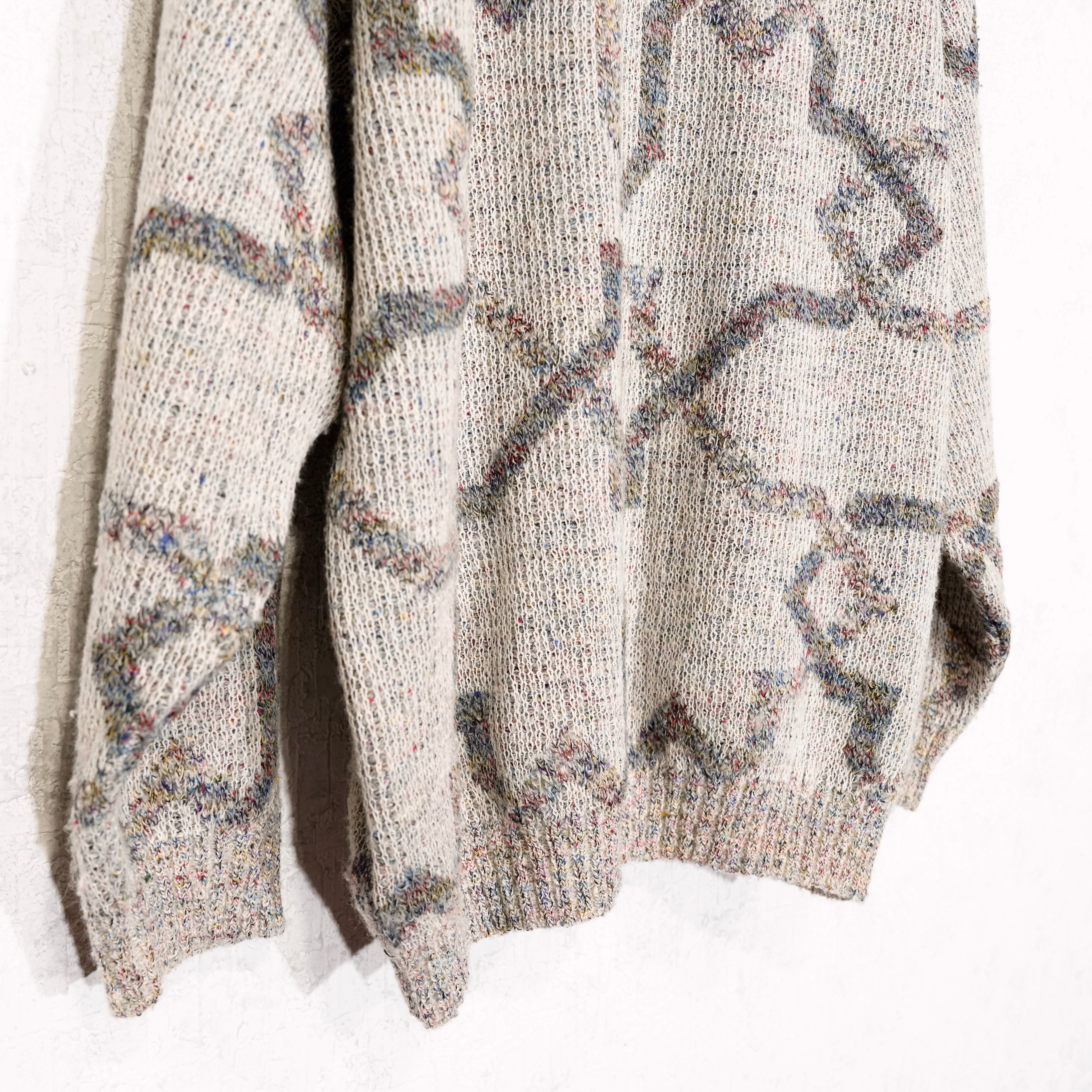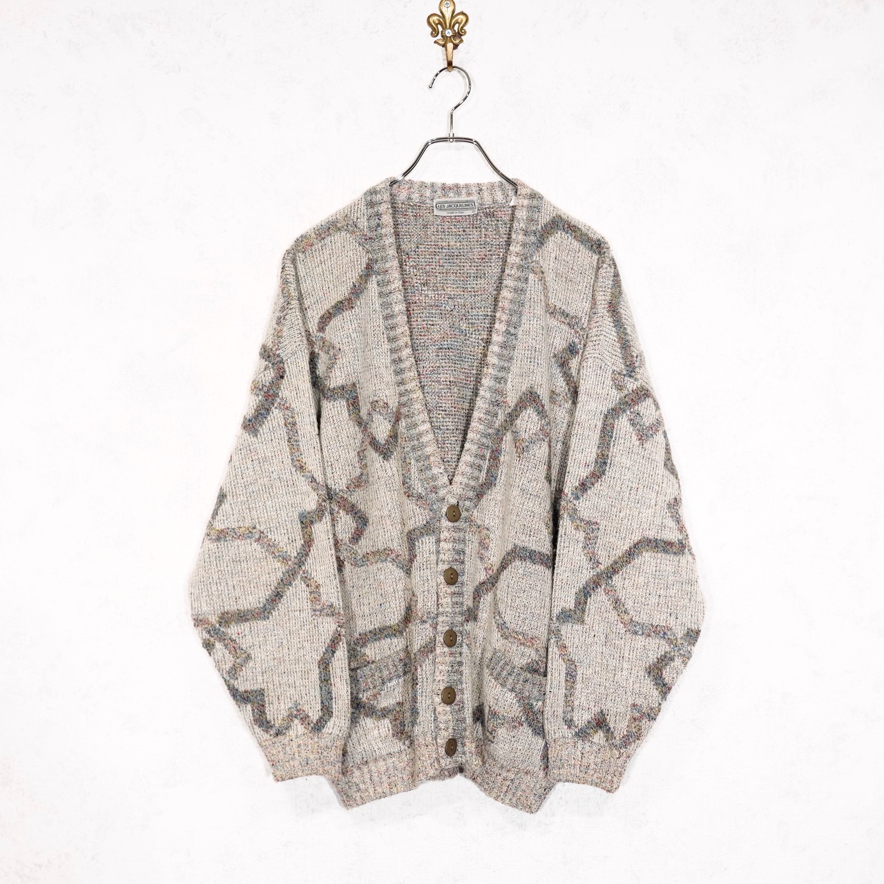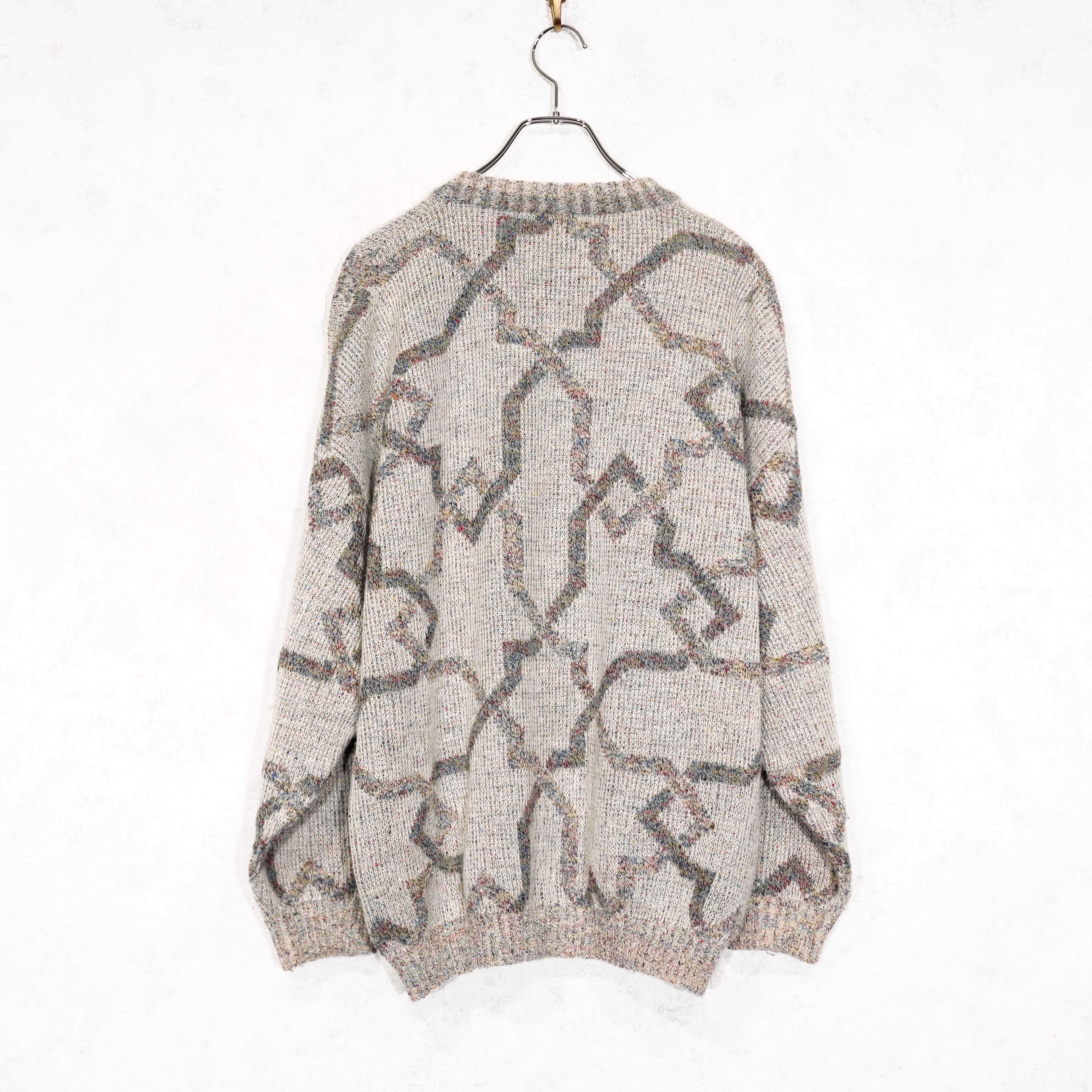 EU VINTAGE LES JACQUELINS PATTERNED DESIGN KNIT CARDIGAN MADE IN ITALY/ヨーロッパ古着柄デザインニットカーディガン