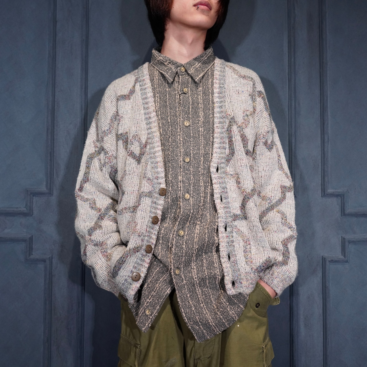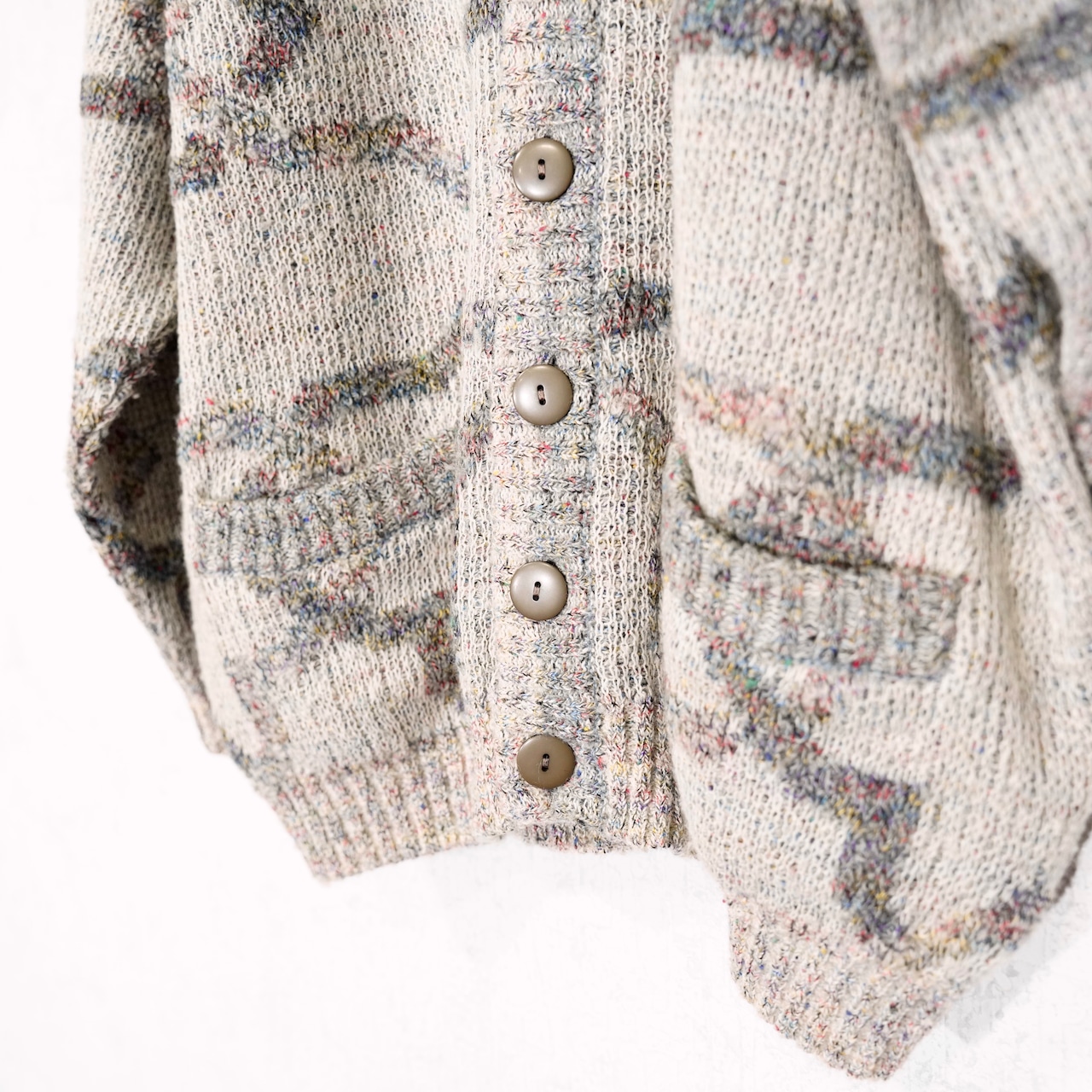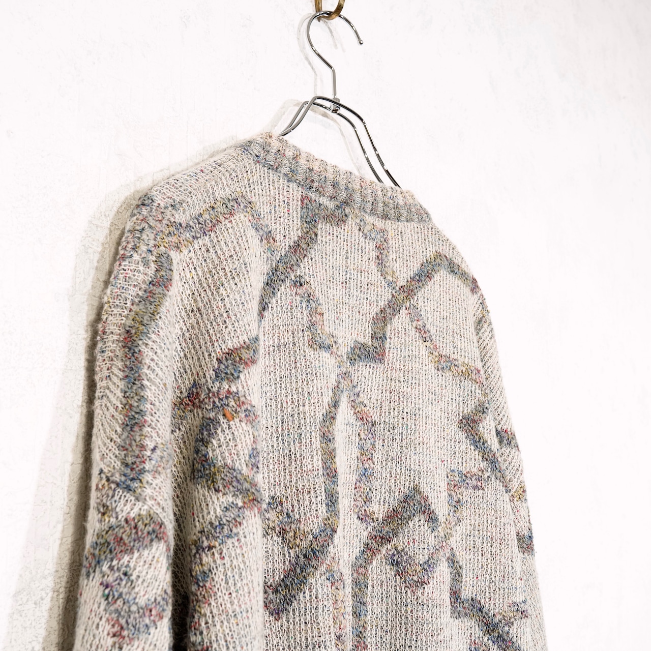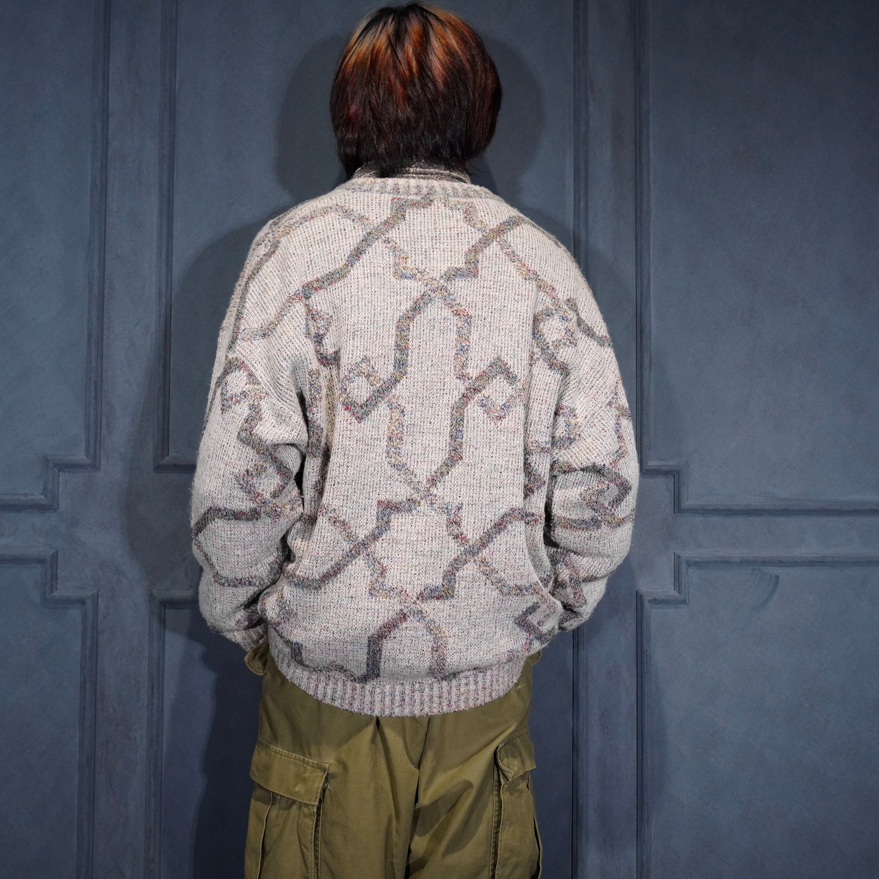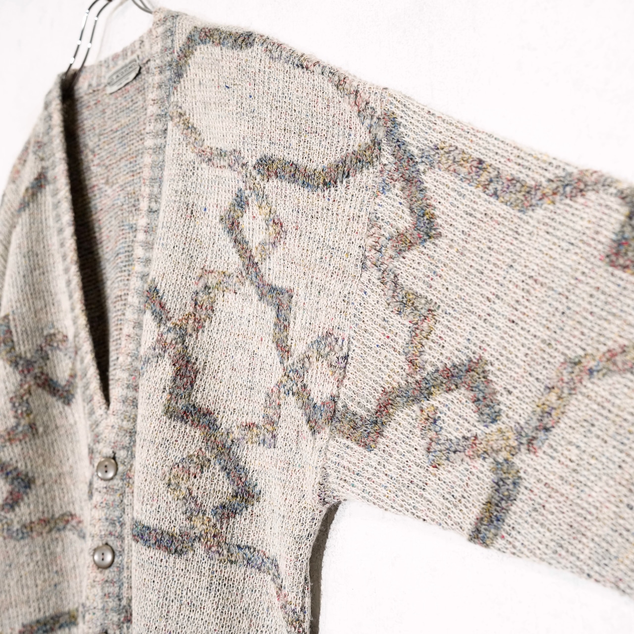 EU VINTAGE LES JACQUELINS PATTERNED DESIGN KNIT CARDIGAN MADE IN ITALY/ヨーロッパ古着柄デザインニットカーディガン