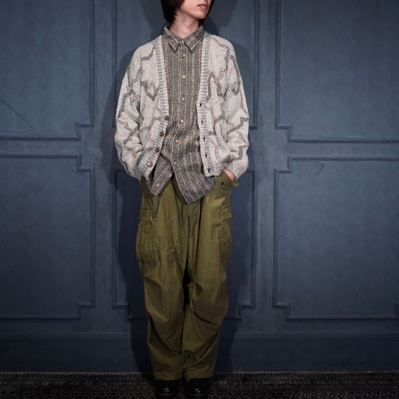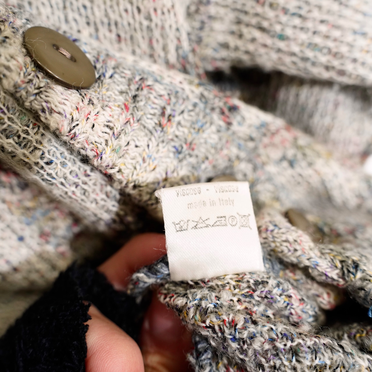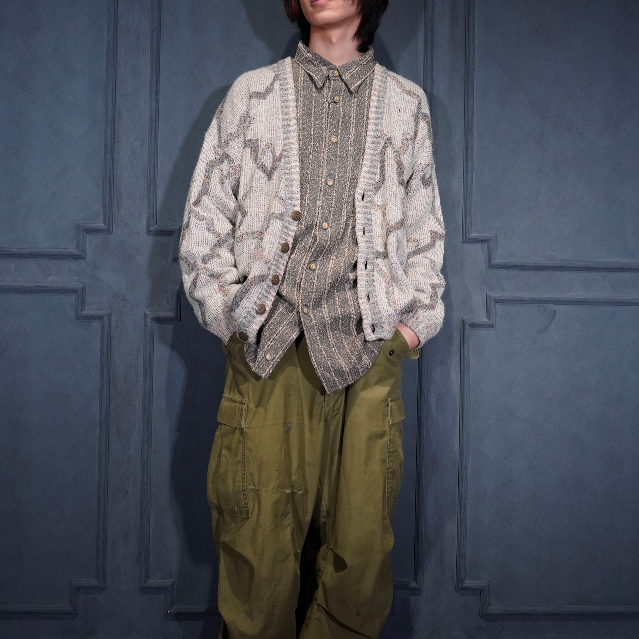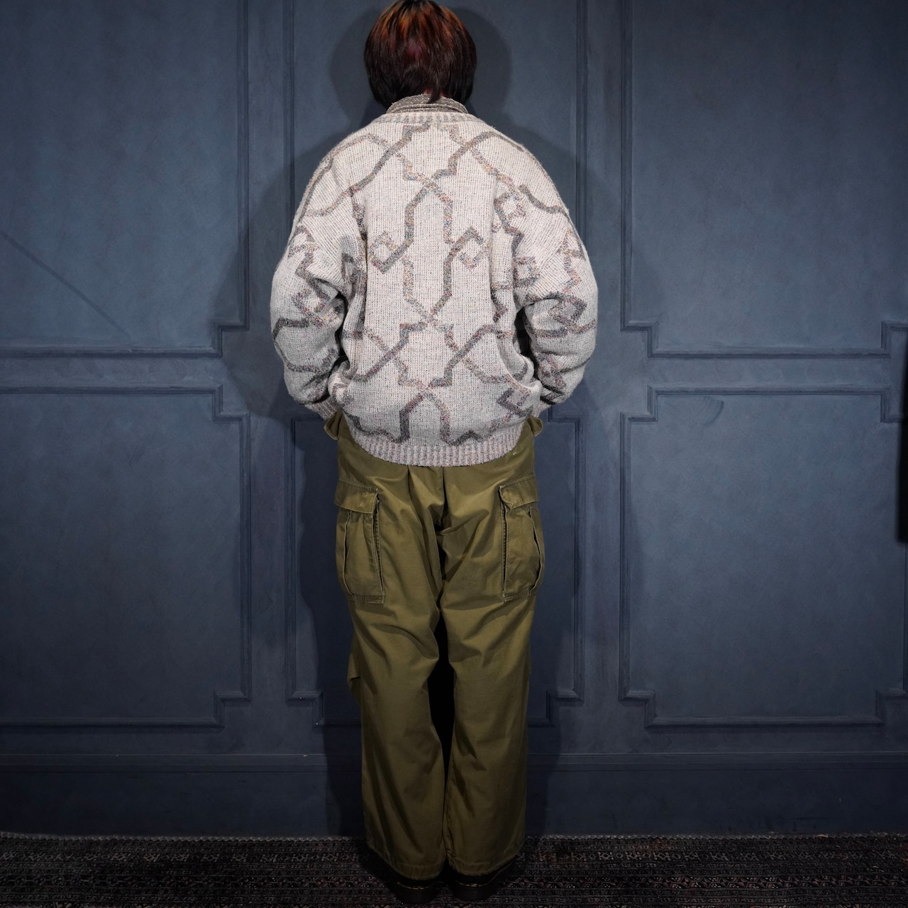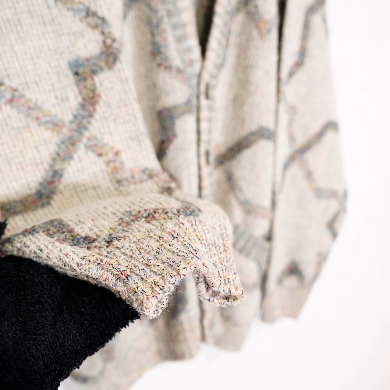 EU VINTAGE LES JACQUELINS PATTERNED DESIGN KNIT CARDIGAN MADE IN ITALY/ヨーロッパ古着柄デザインニットカーディガン