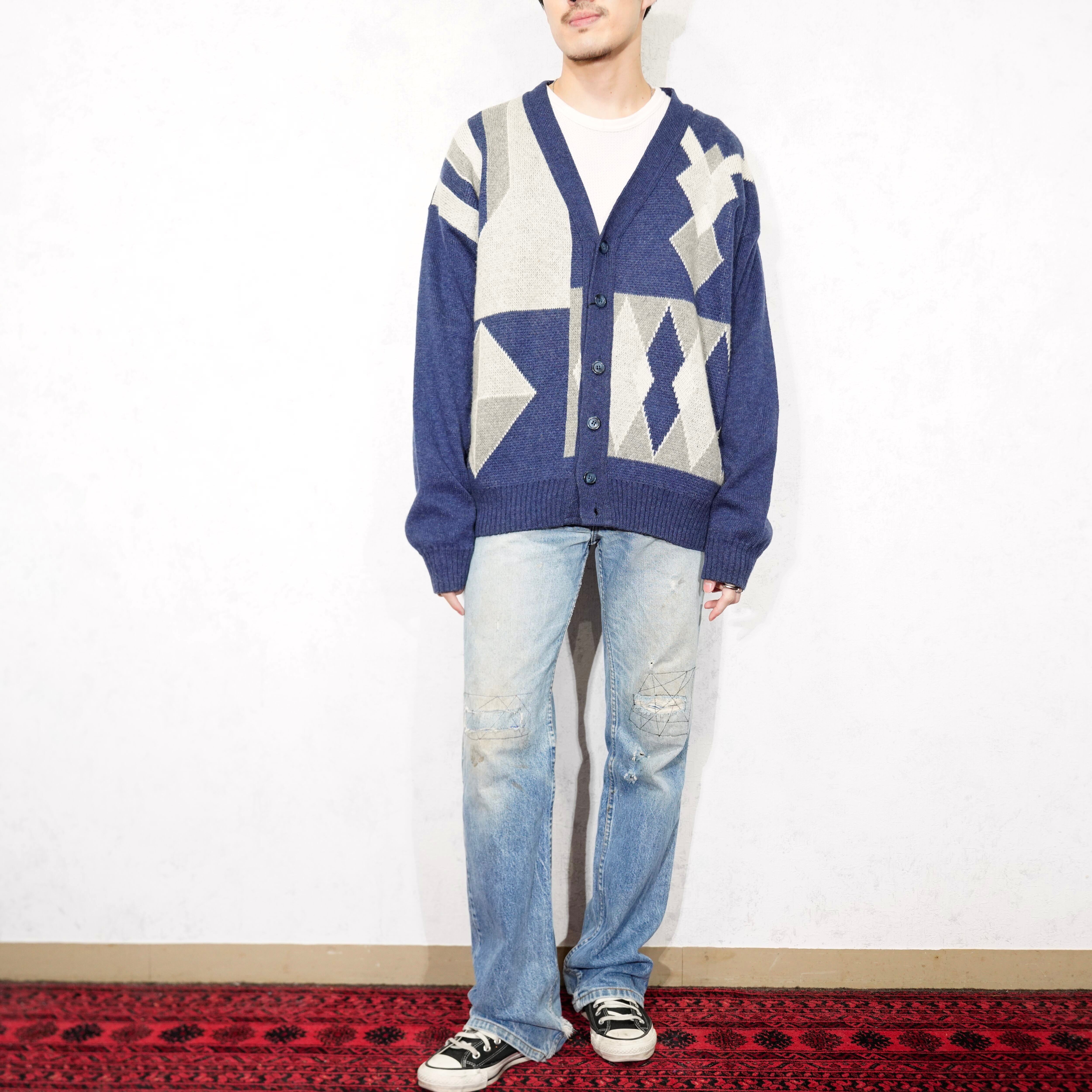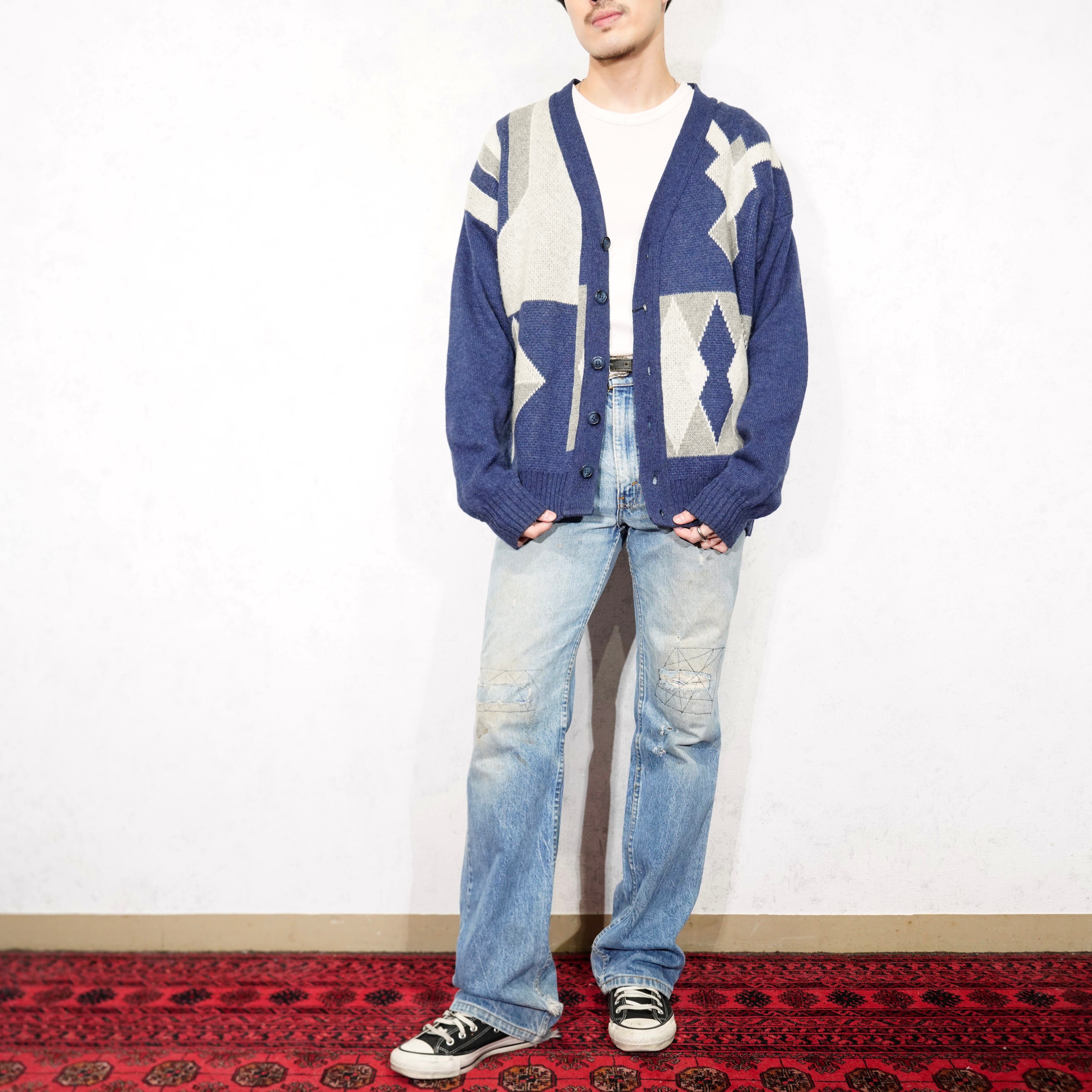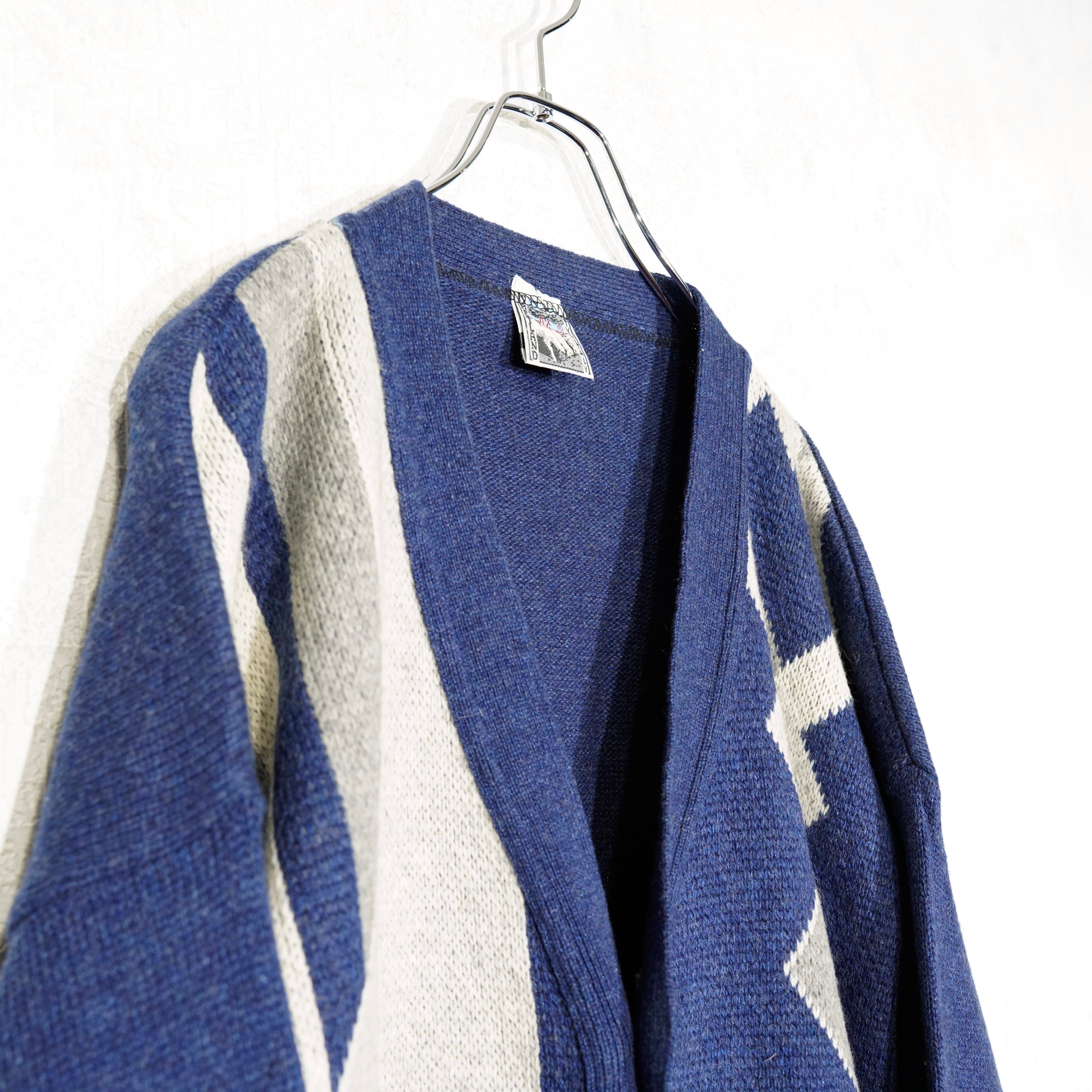 EU VINTAGE O'Z YUKSEK PATTERNED DESIGN WOOL KNIT CARDIGAN/ヨーロッパ古着柄デザインウールニットカーディガン
