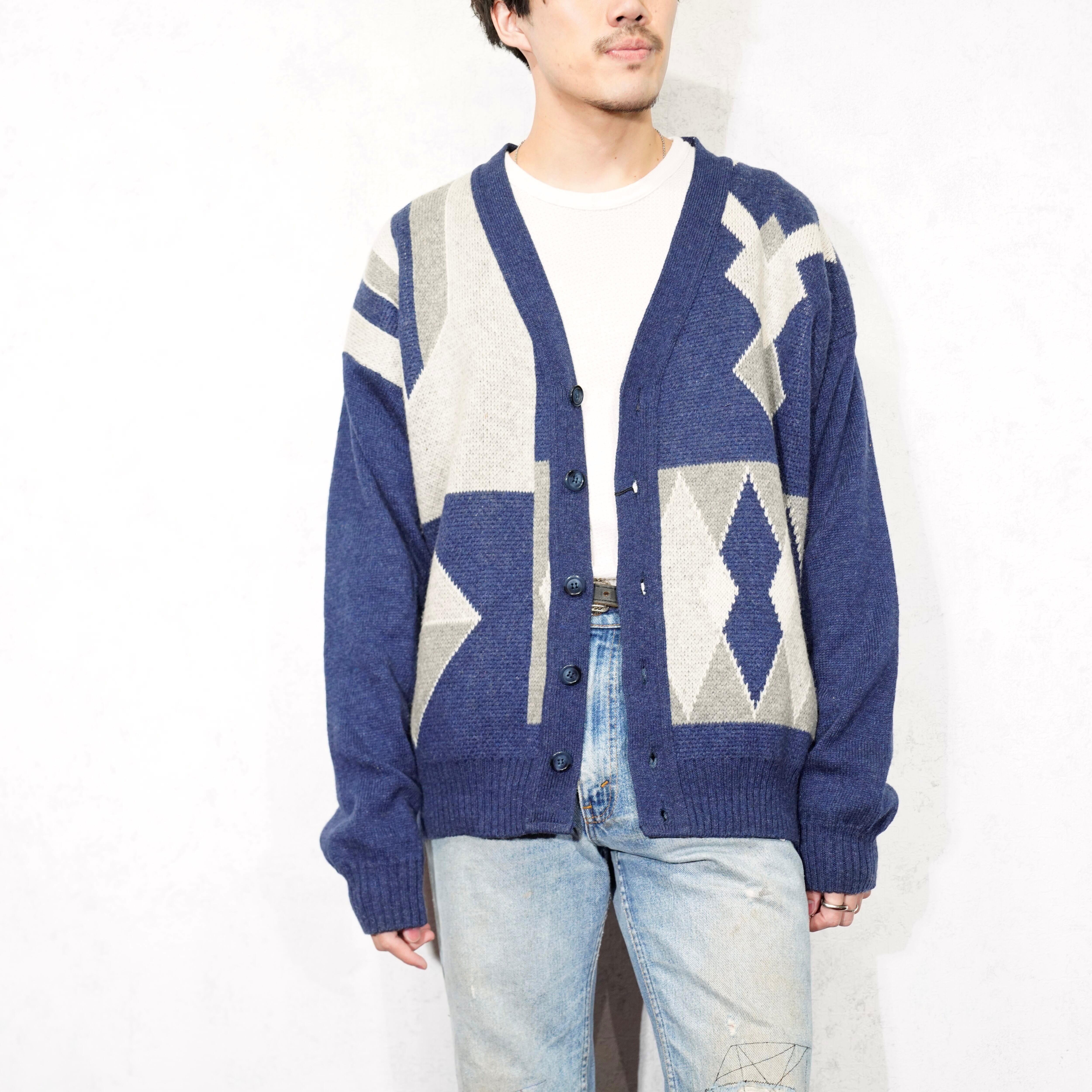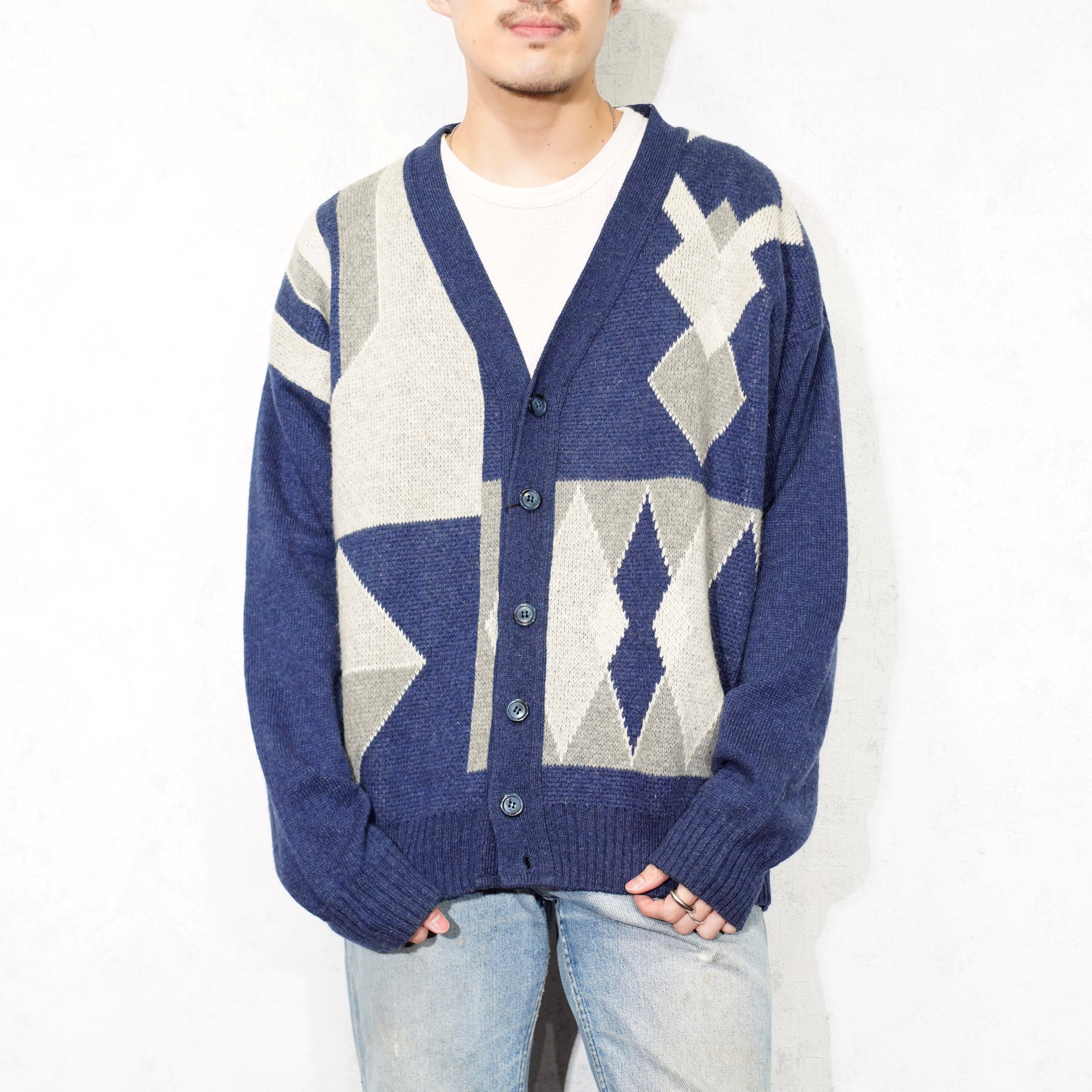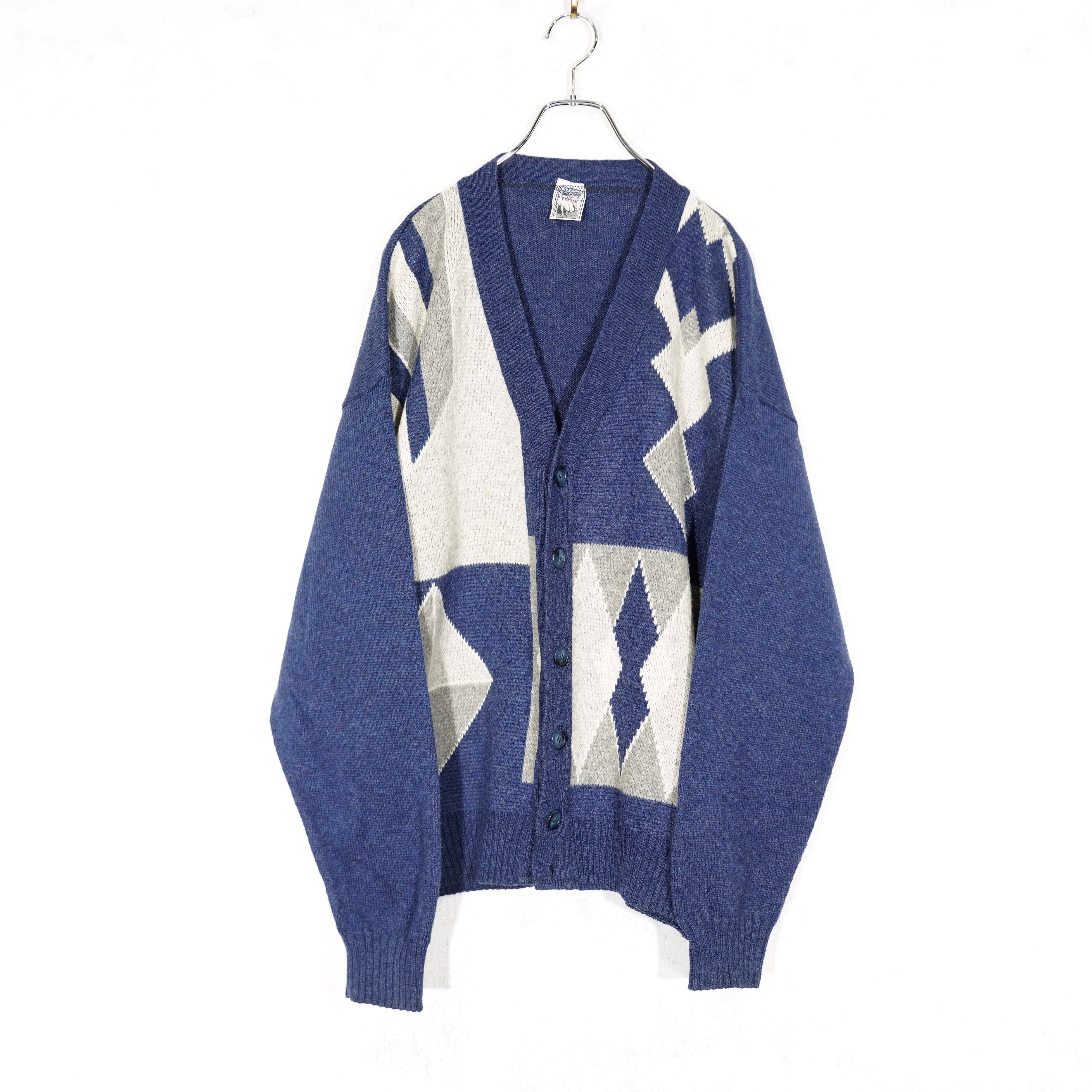 EU VINTAGE O'Z YUKSEK PATTERNED DESIGN WOOL KNIT CARDIGAN/ヨーロッパ古着柄デザインウールニットカーディガン