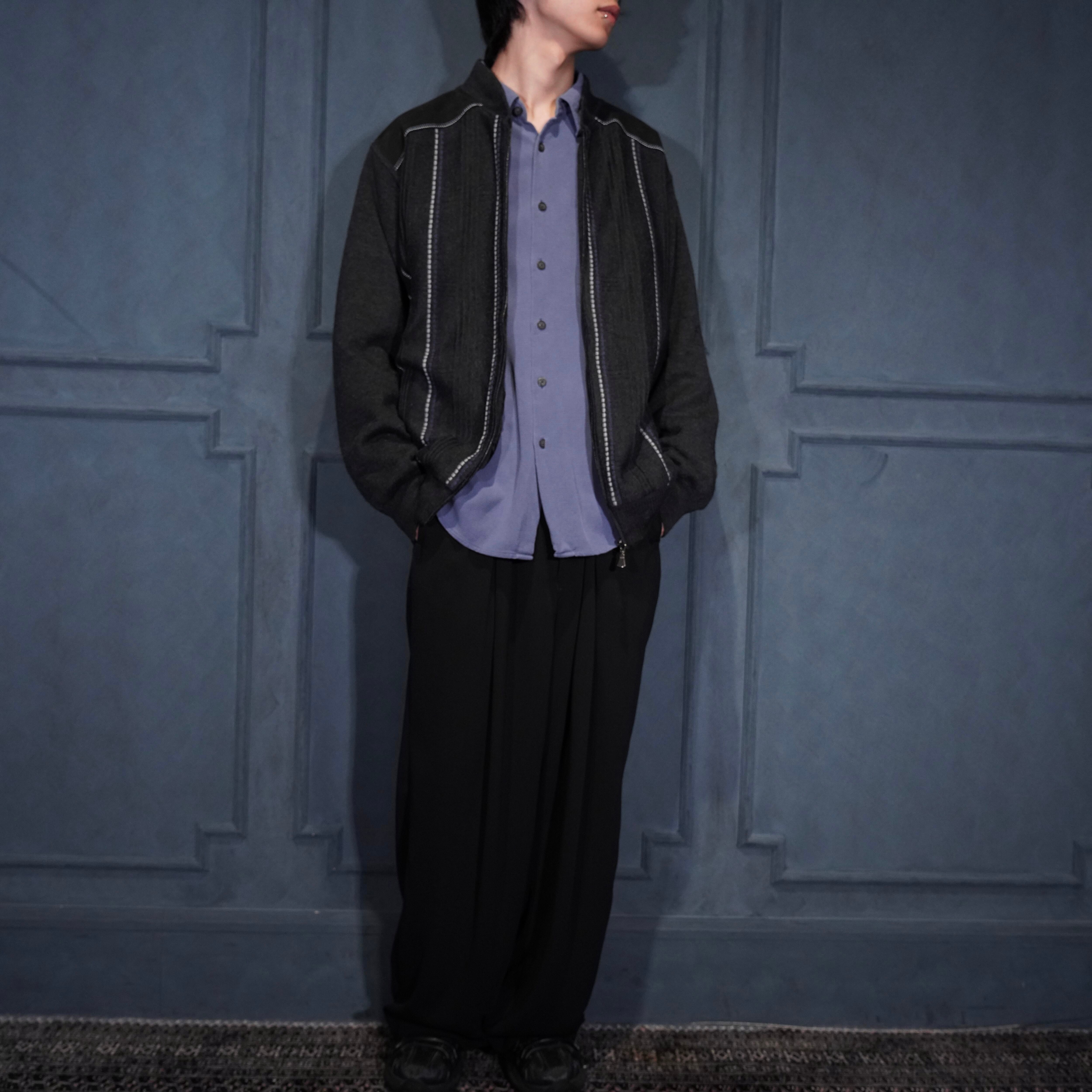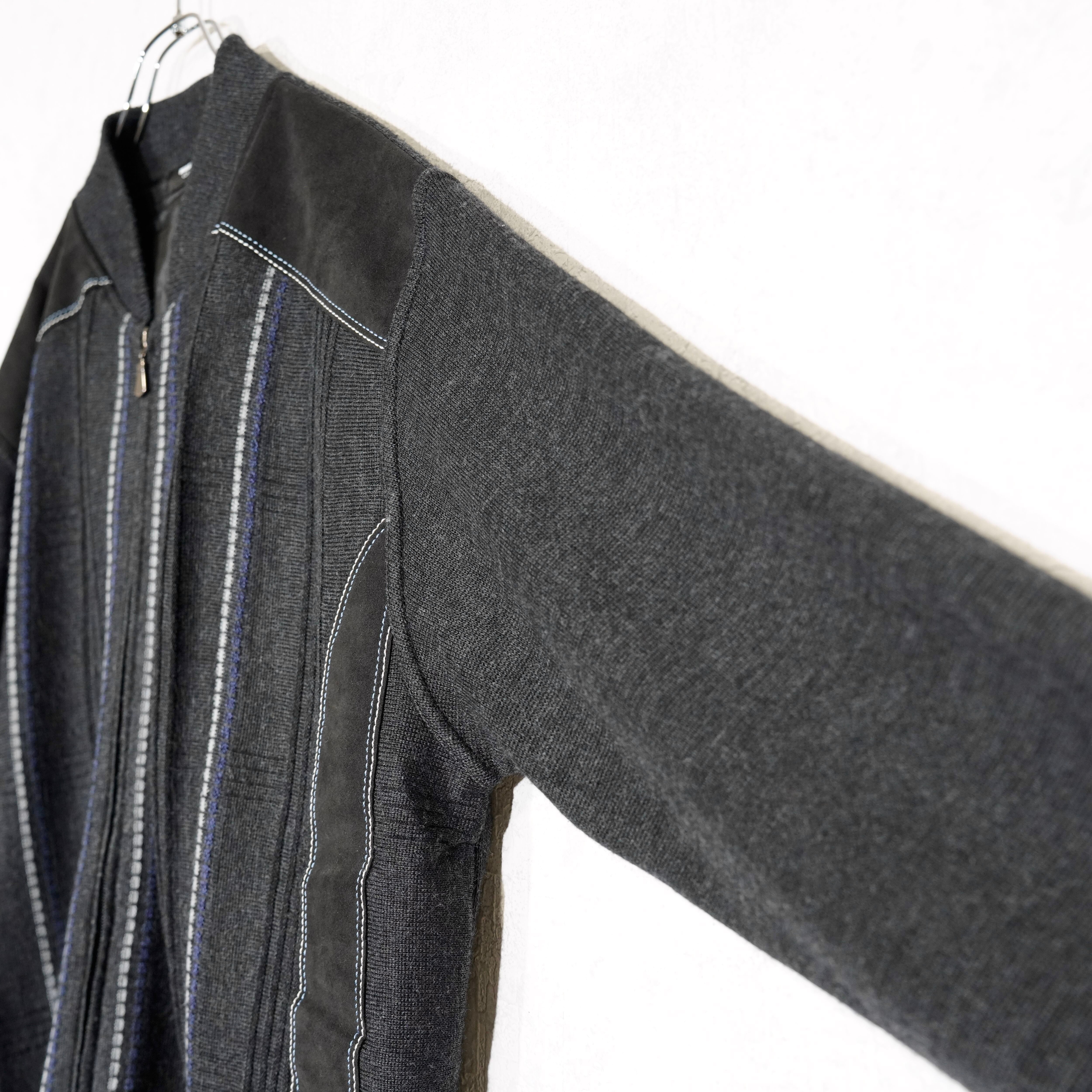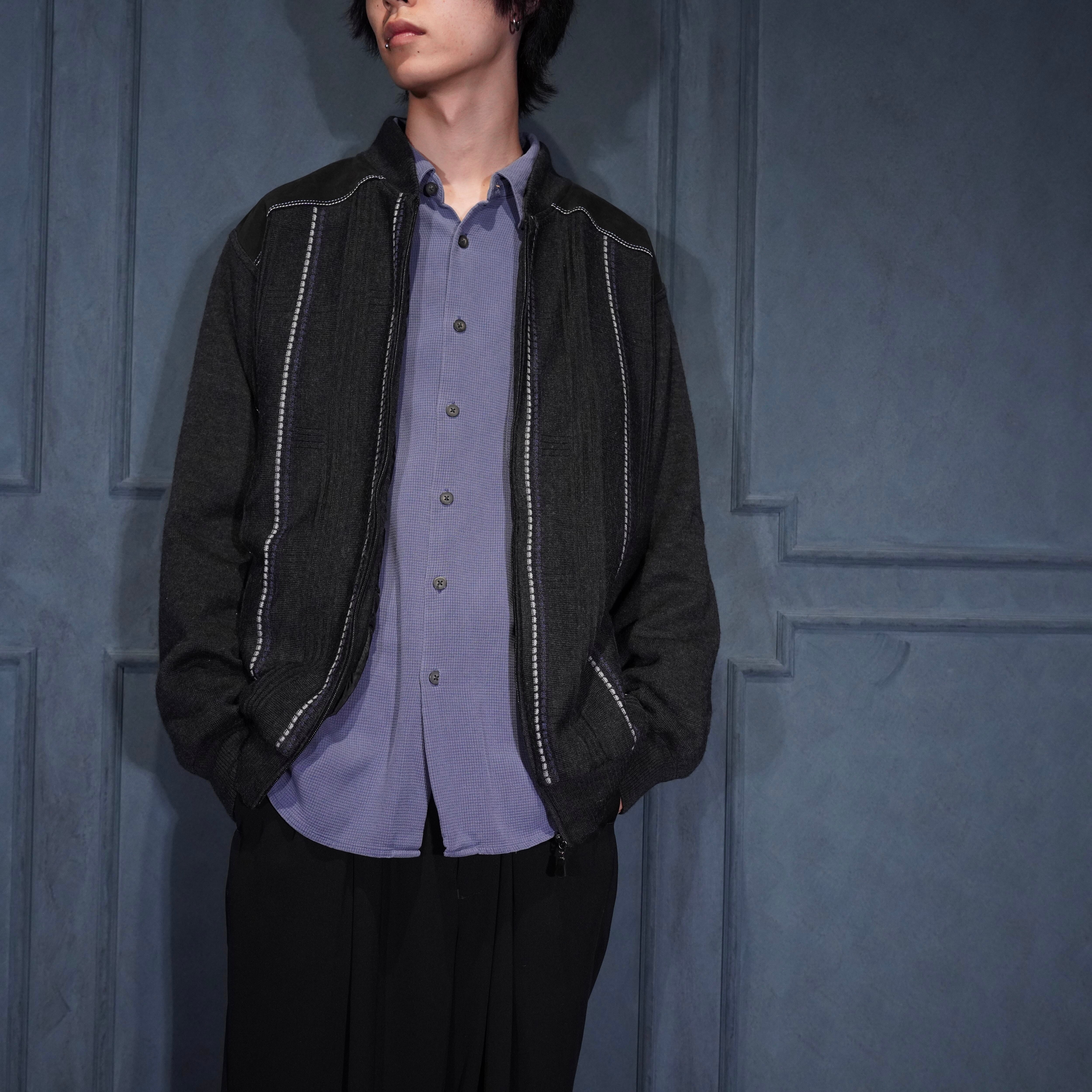 EU VINTAGE walbusch LINE DESIGN ZIP UP DRIVERS KNIT BLOUSON/ヨーロッパ古着ラインデザインジップアップドライバーズニットブルゾン