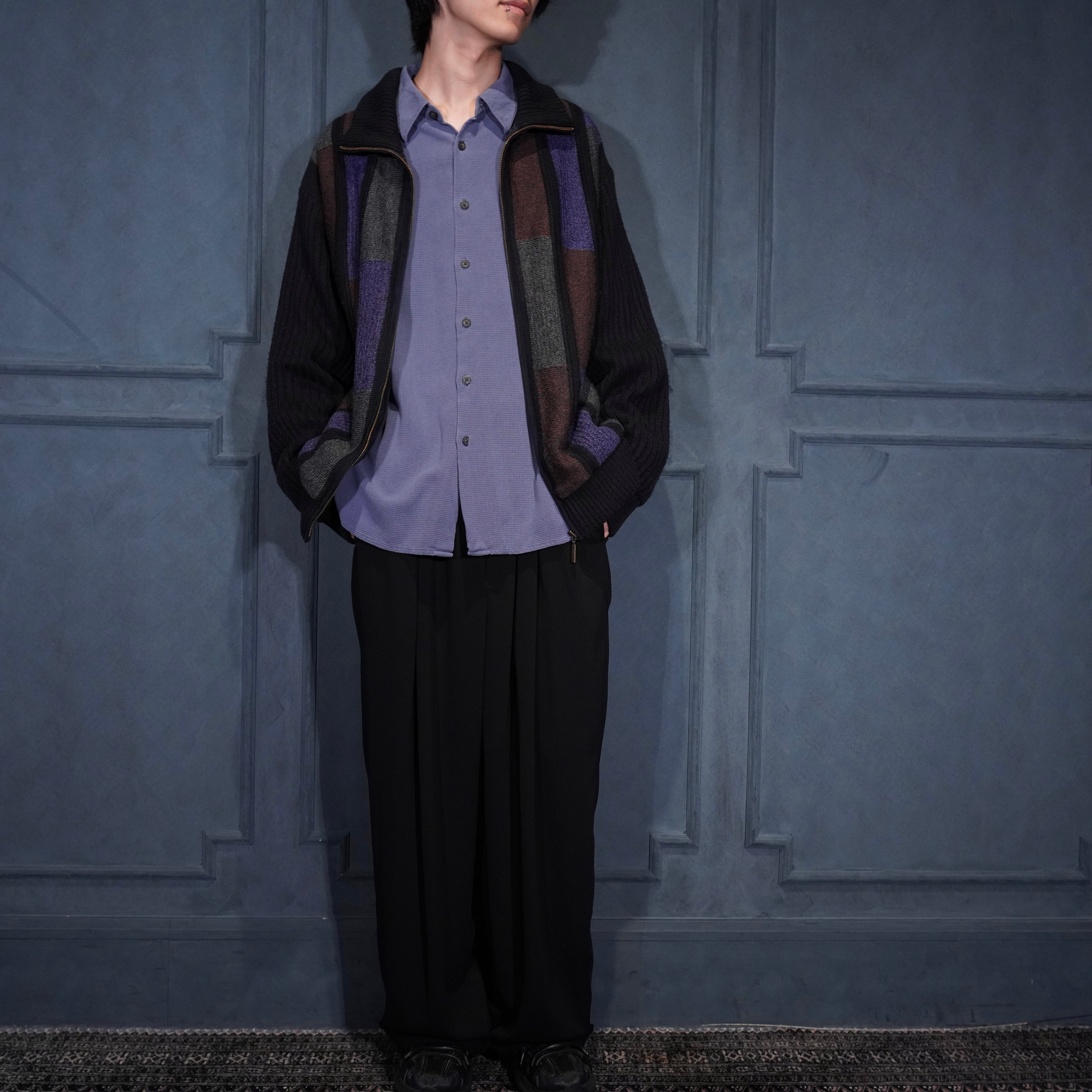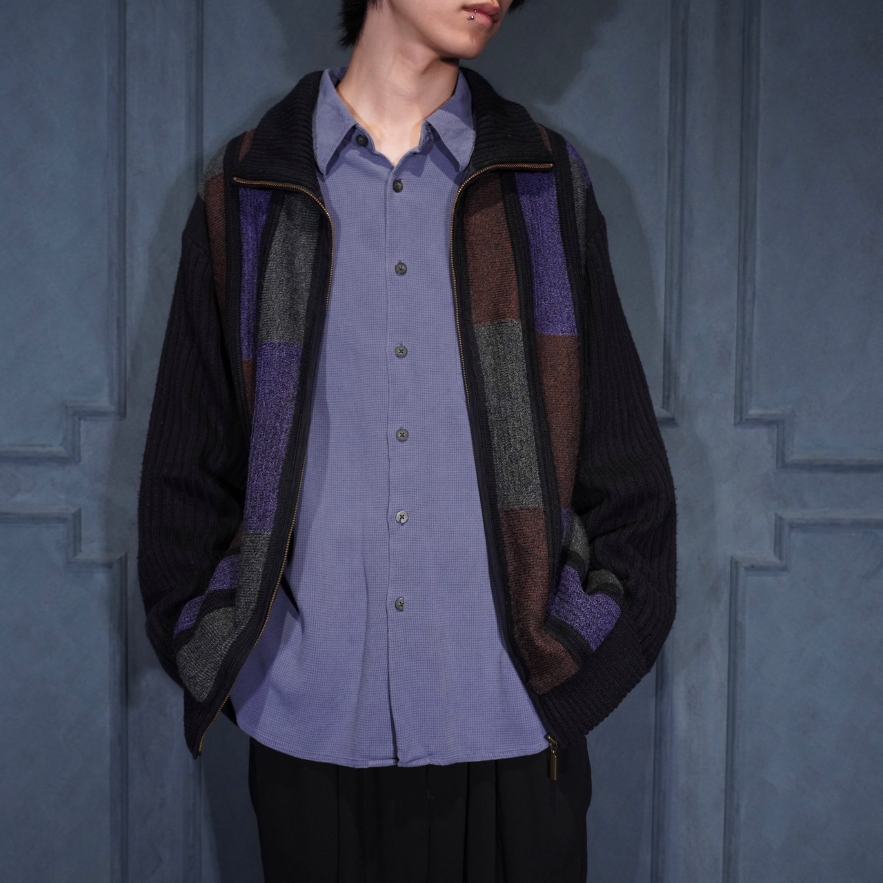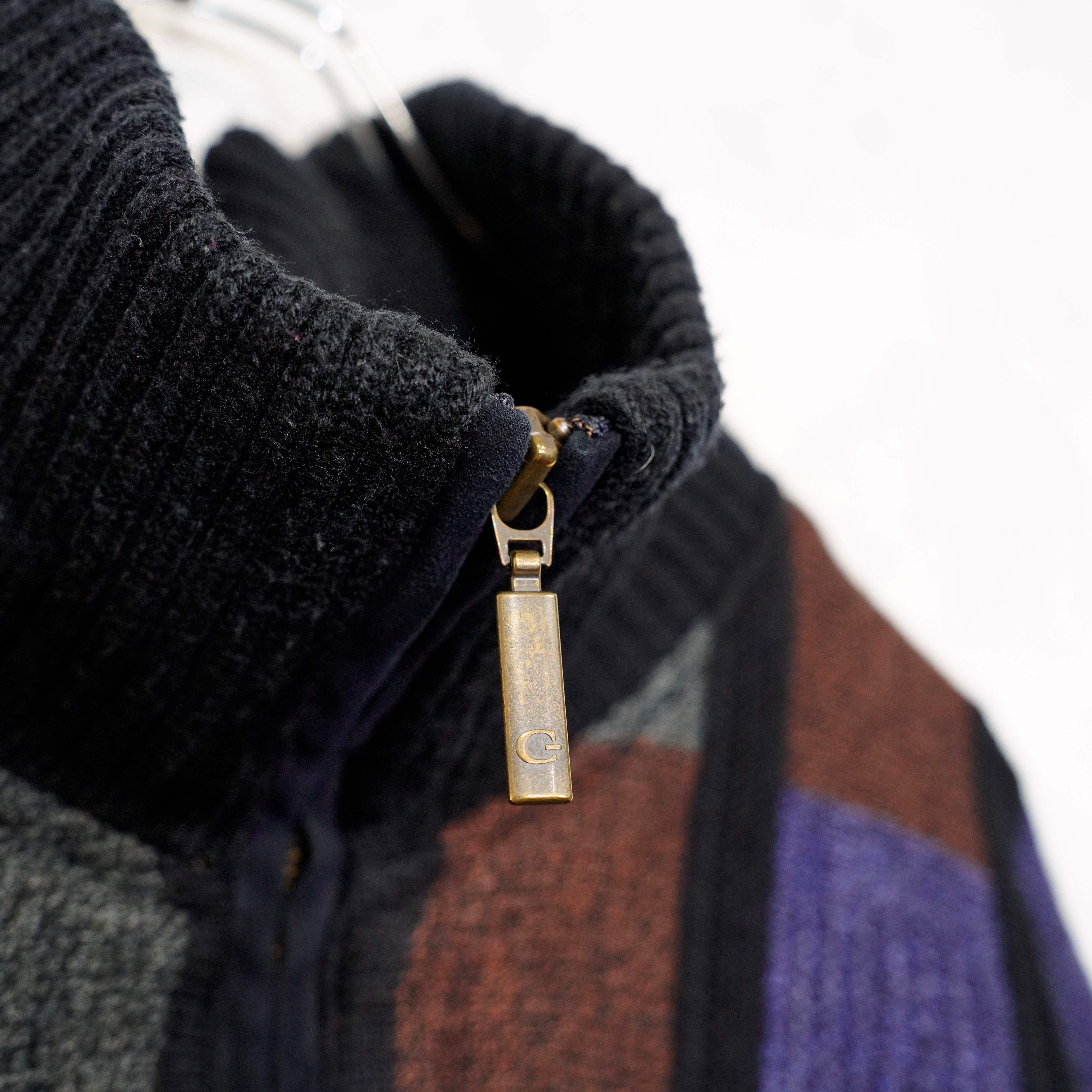 EU VINTAGE canda PATTERNED DESIGN ZIP UP DRIVERS KNIT BLOUSON/ヨーロッパ古着柄デザインジップアップドライバーズニットブルゾン