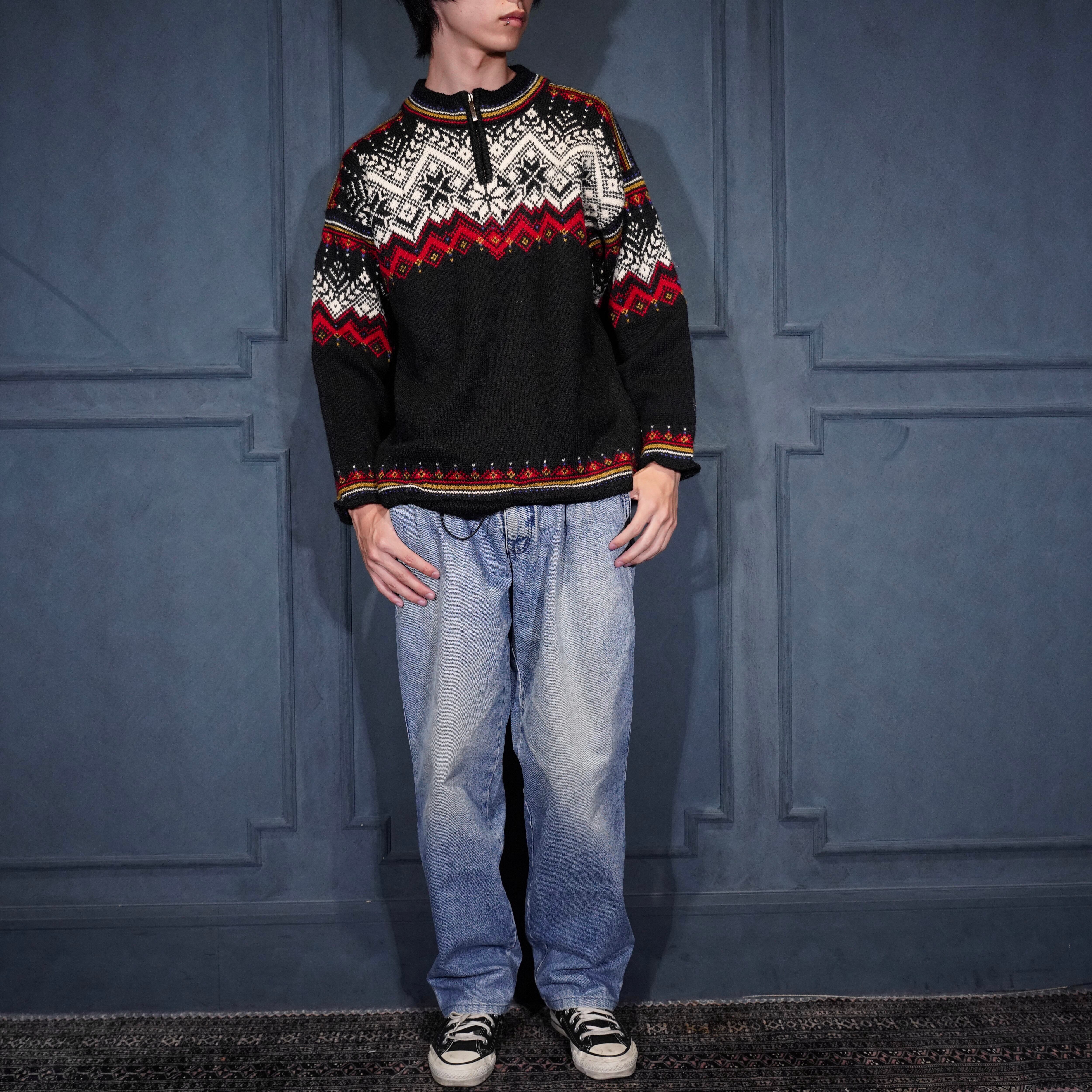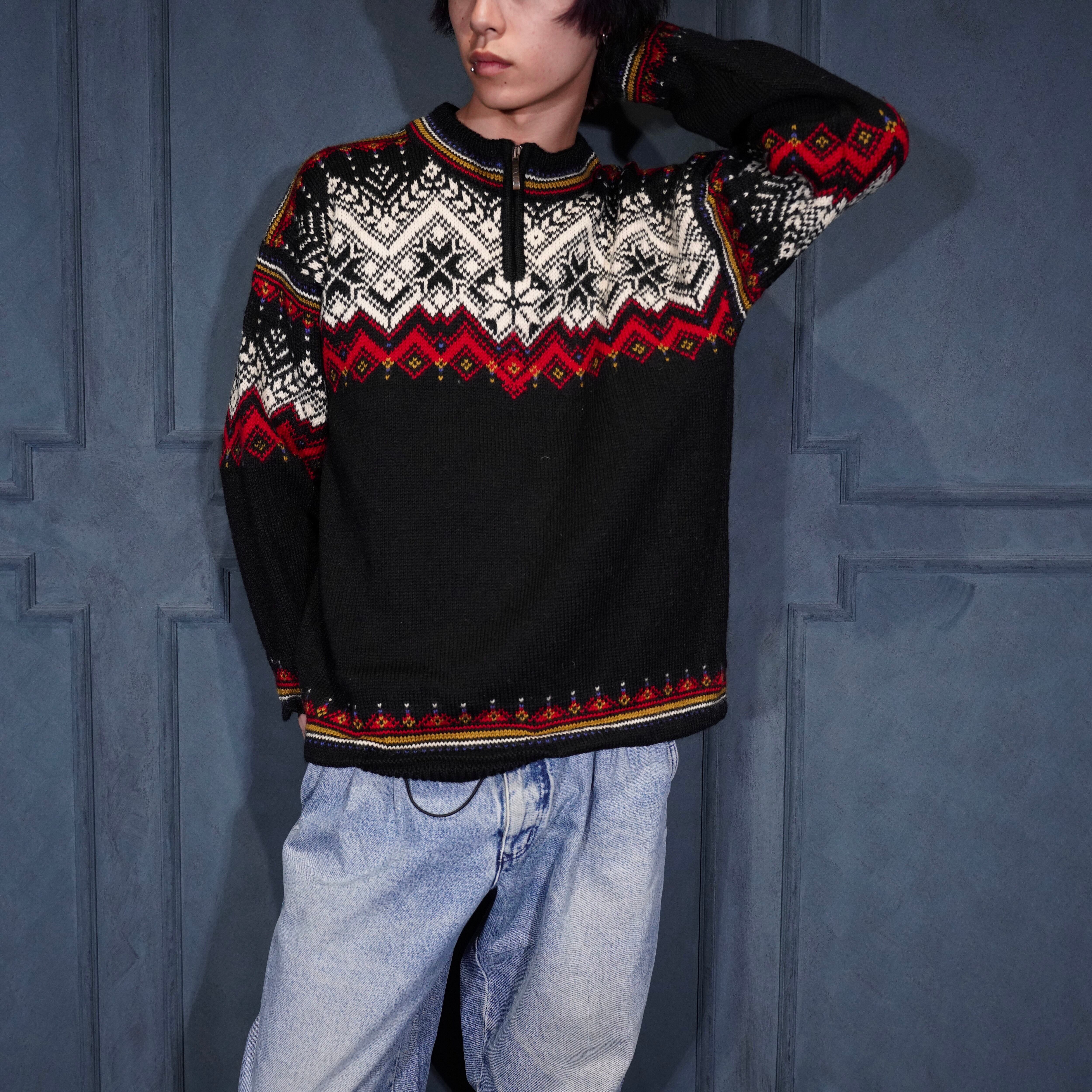EU VINTAGE DALE OF NORWAY NORDIC PATTERNED DESIGN HALF ZIP NORDIC KNIT/ヨーロッパ古着ノルディック柄デザインハーフジップノルディックニット