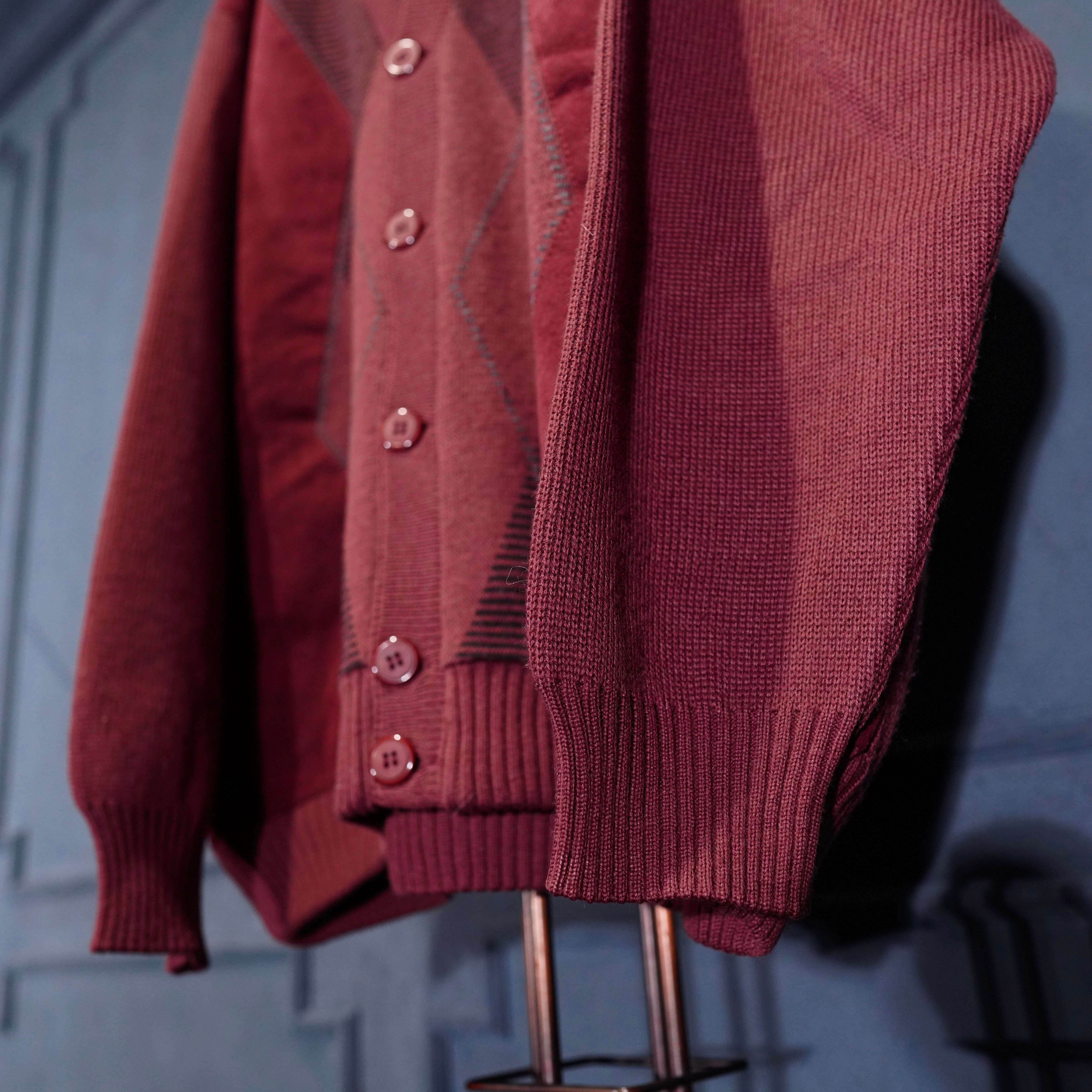 EU VINTAGE DETLEV ALBERS ARGYLE PATTERNED DESIGN KNIT CARDIGAN/ヨーロッパ古着アーガイル柄デザインニットカーディガン