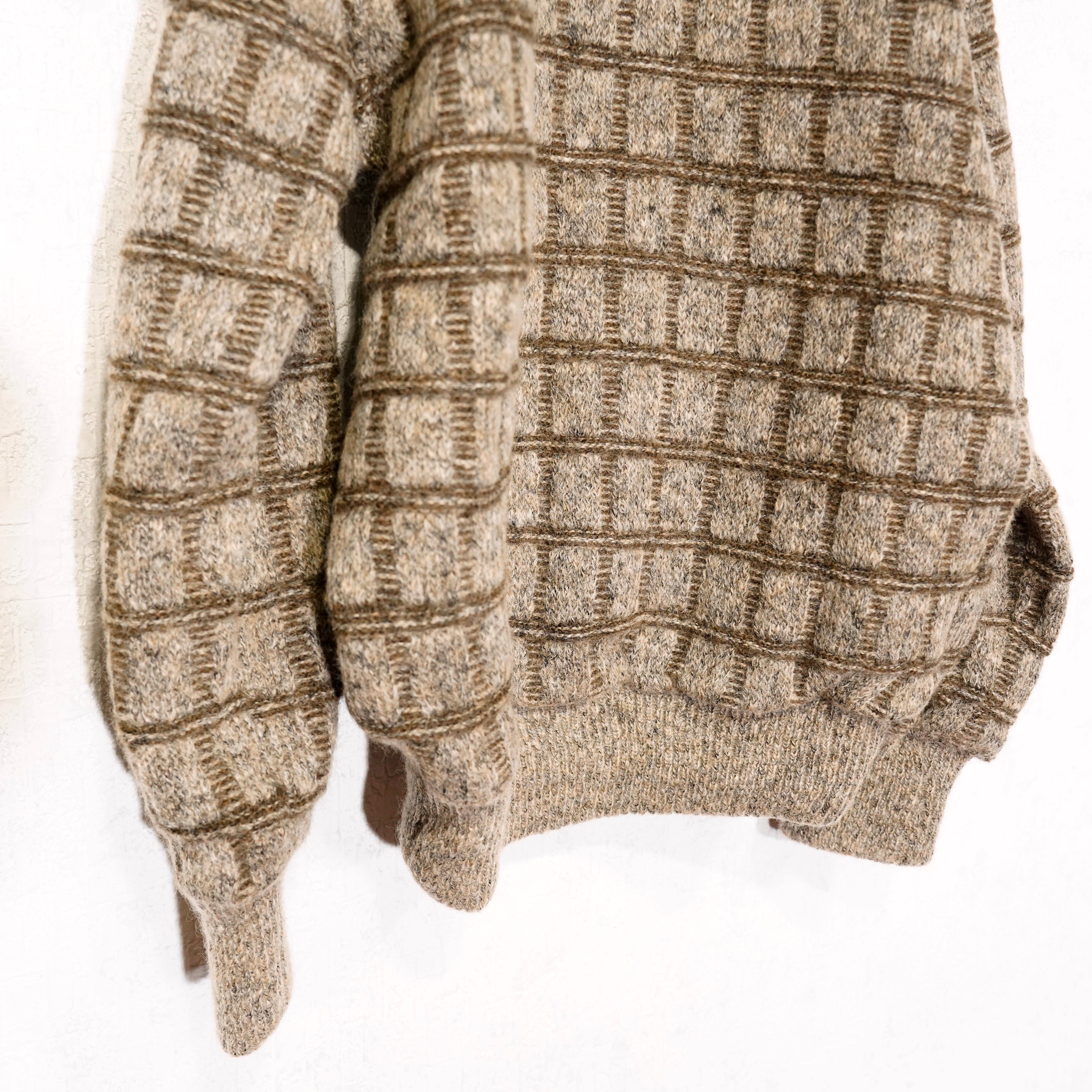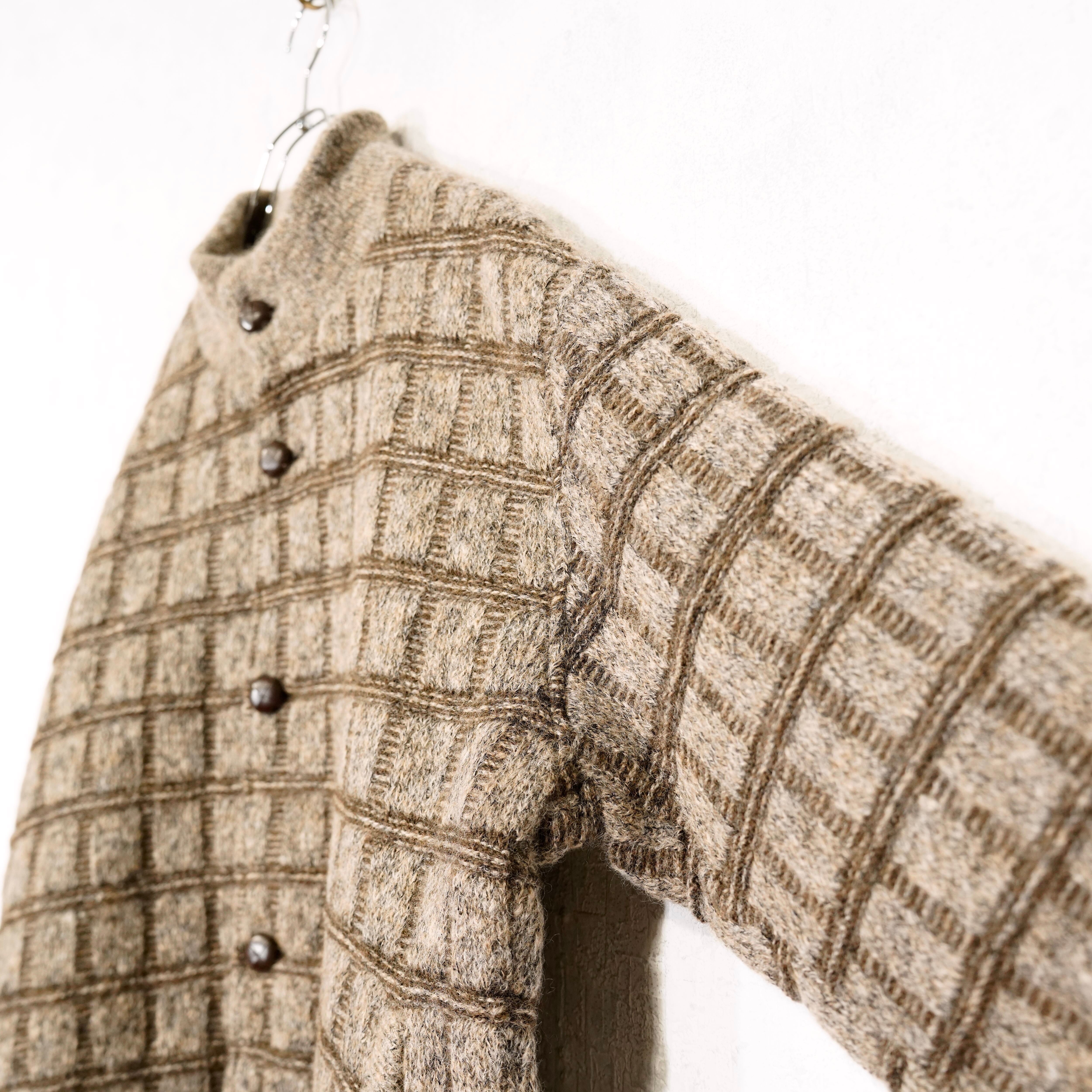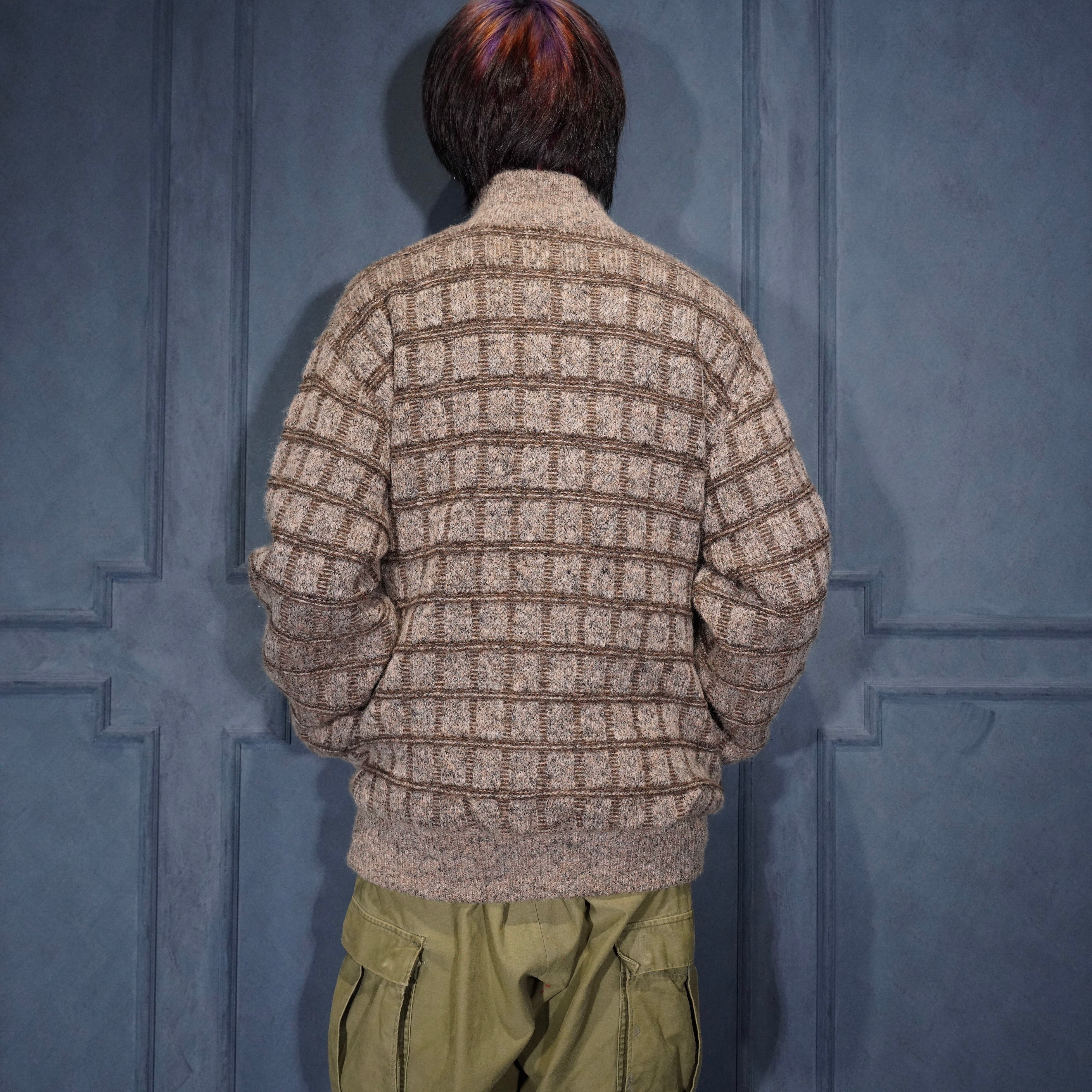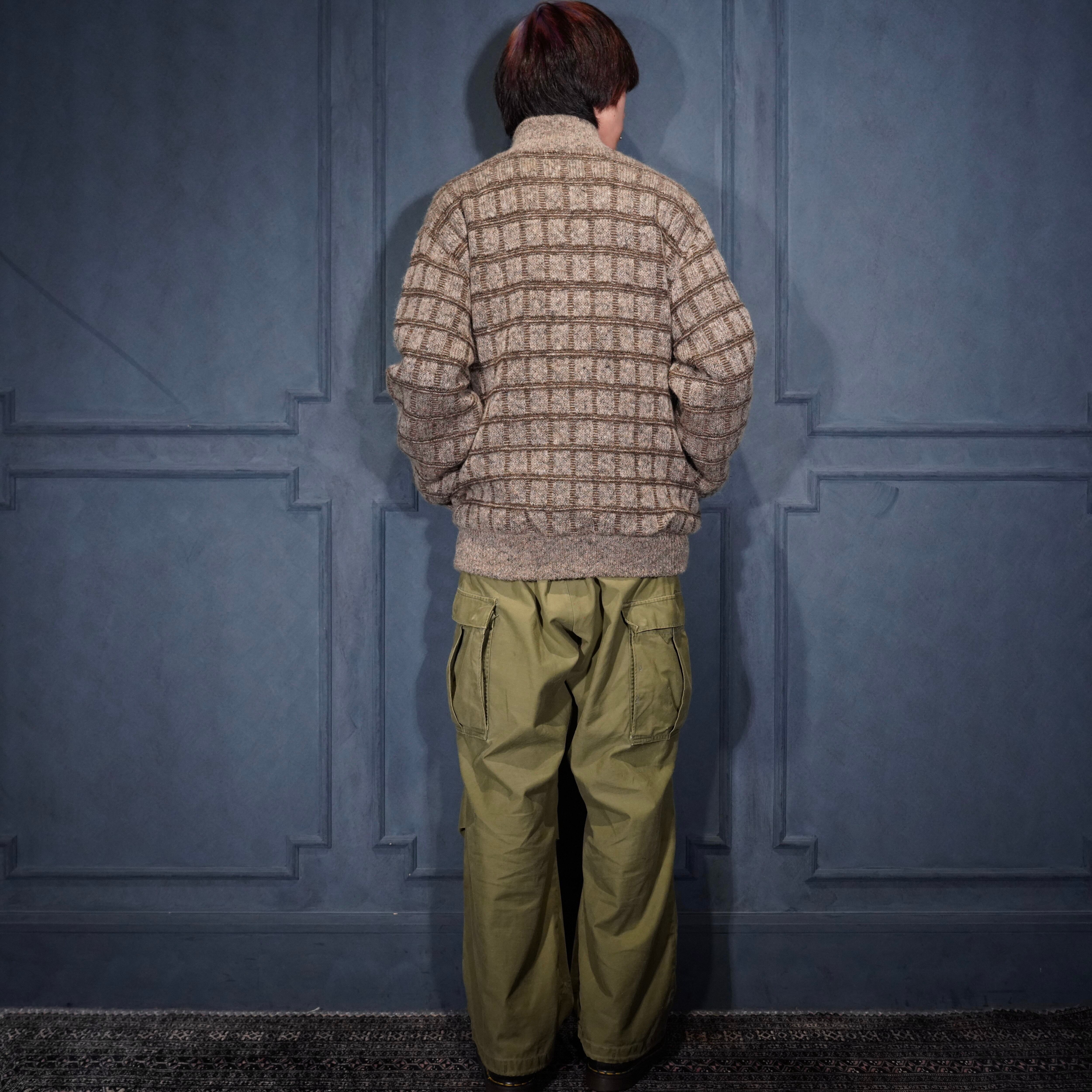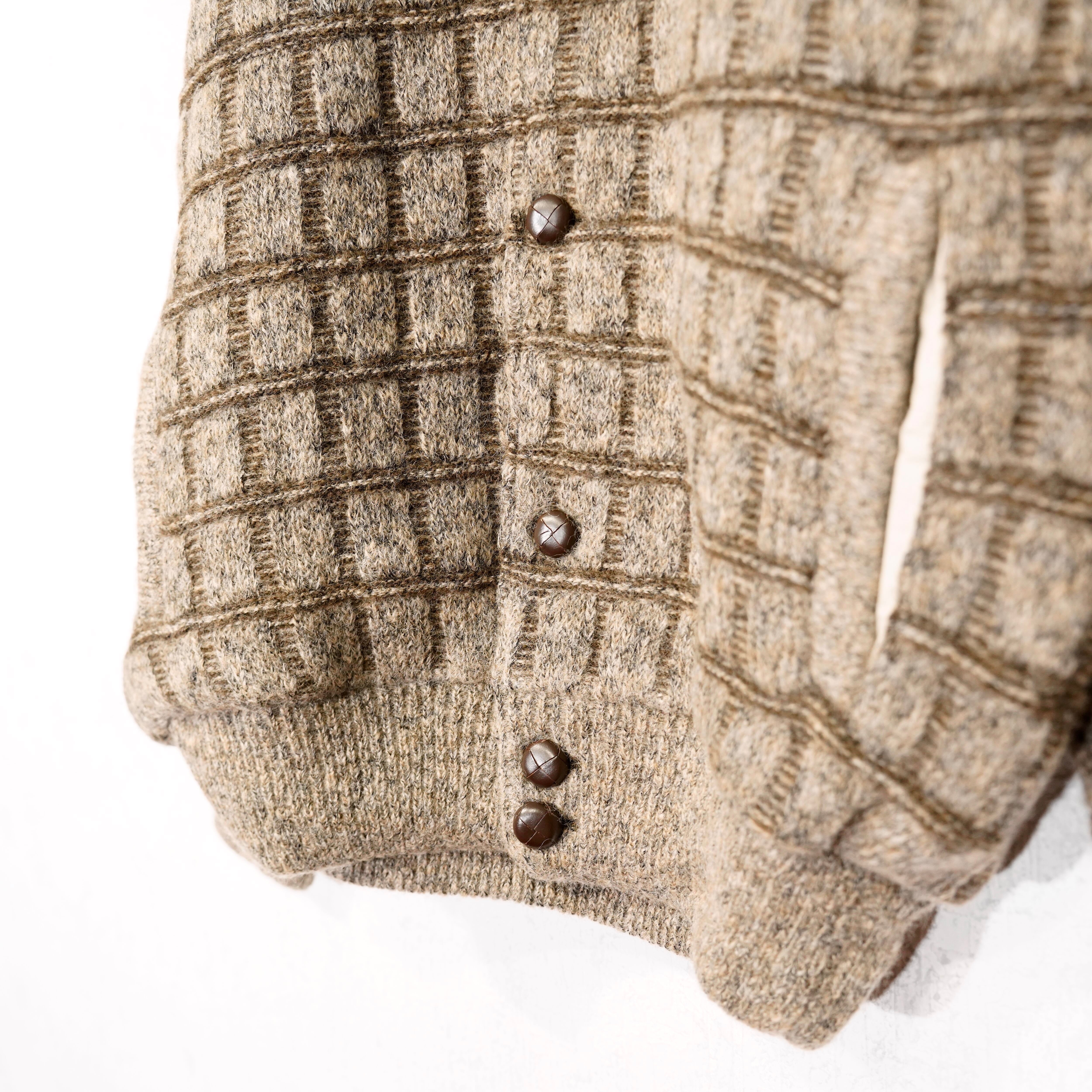 EU VINTAGE RED'S CHECK PATTERNED WOVEN DESIGN KNIT BLOUSON/ヨーロッパ古着チェック柄織デザインニットブルゾン(カーディガン)