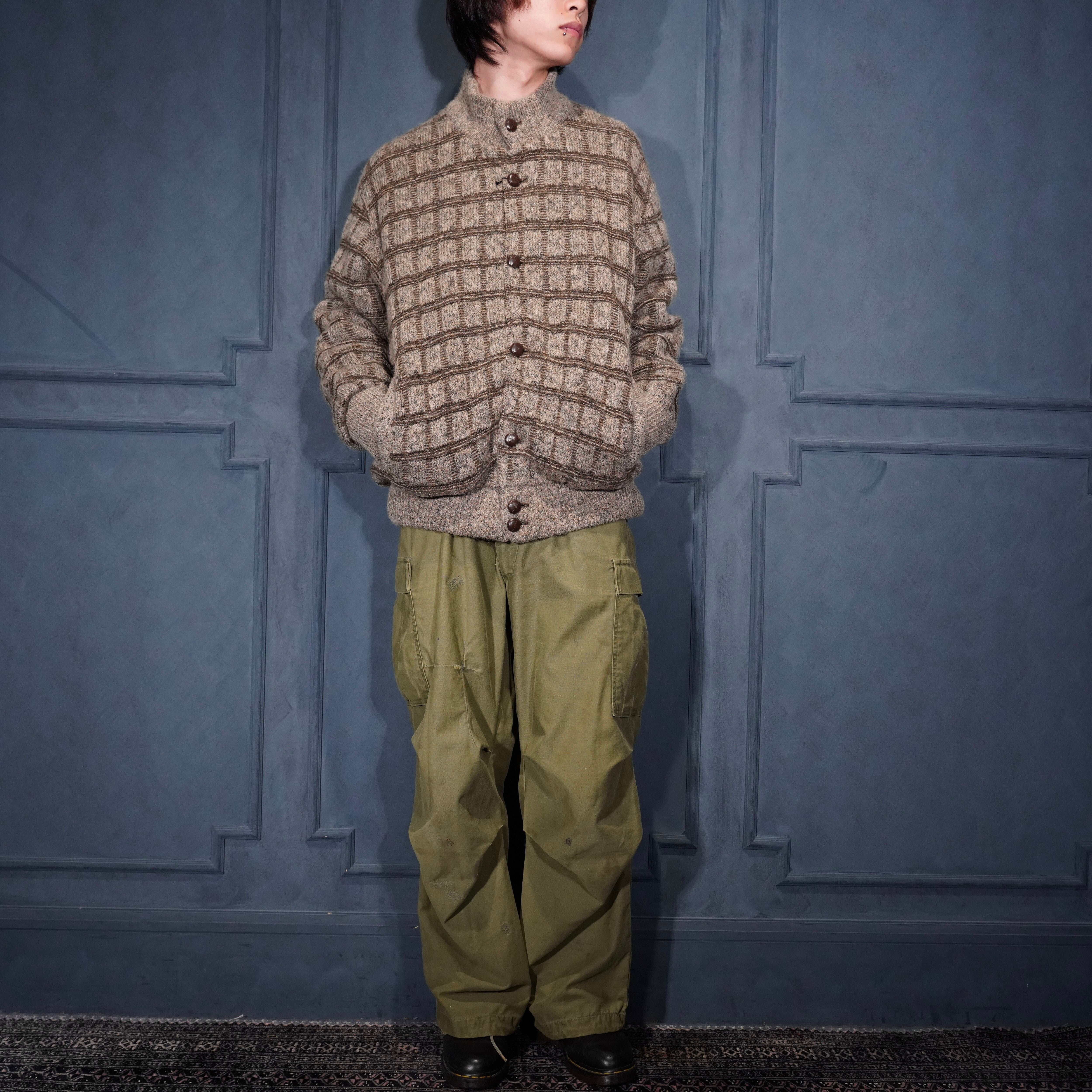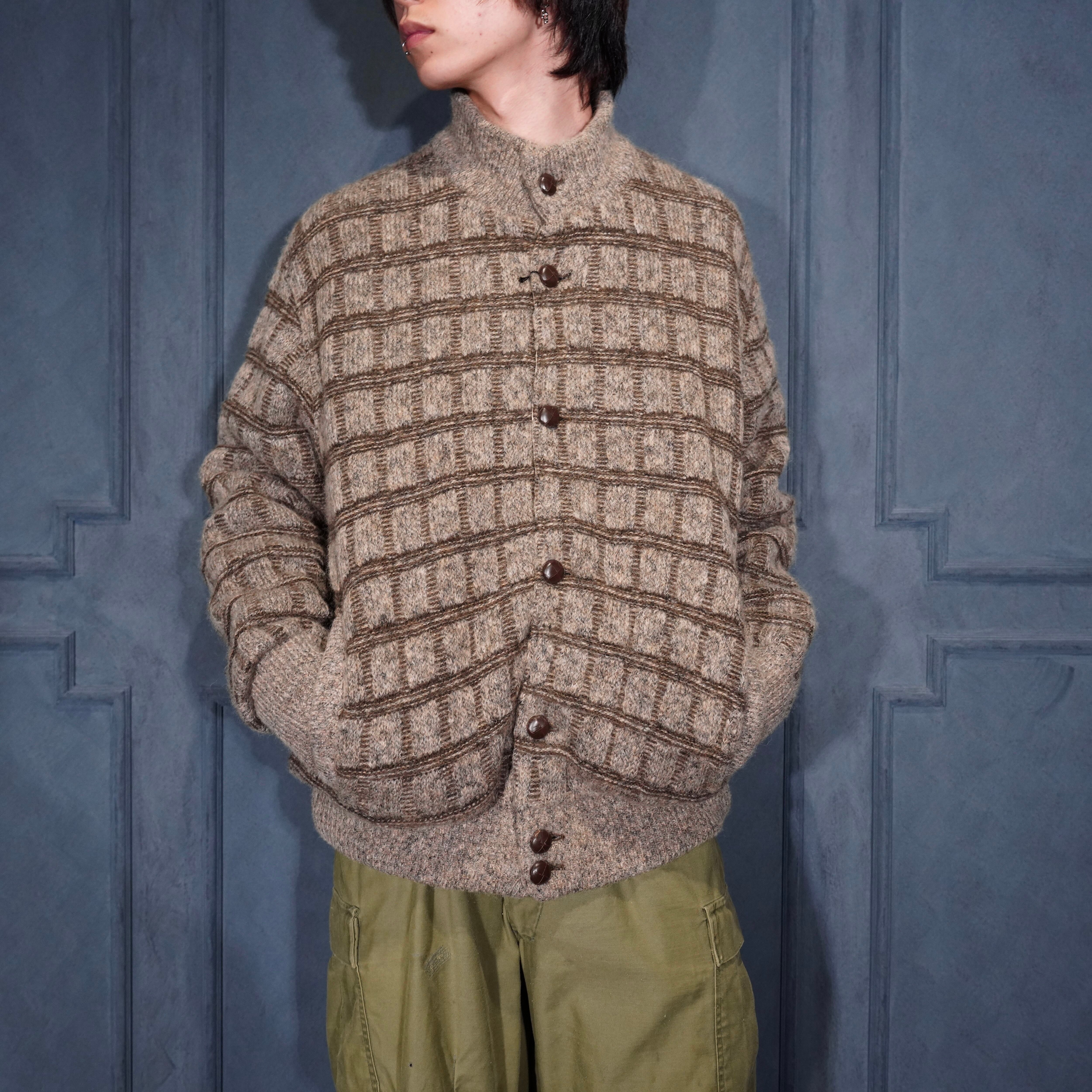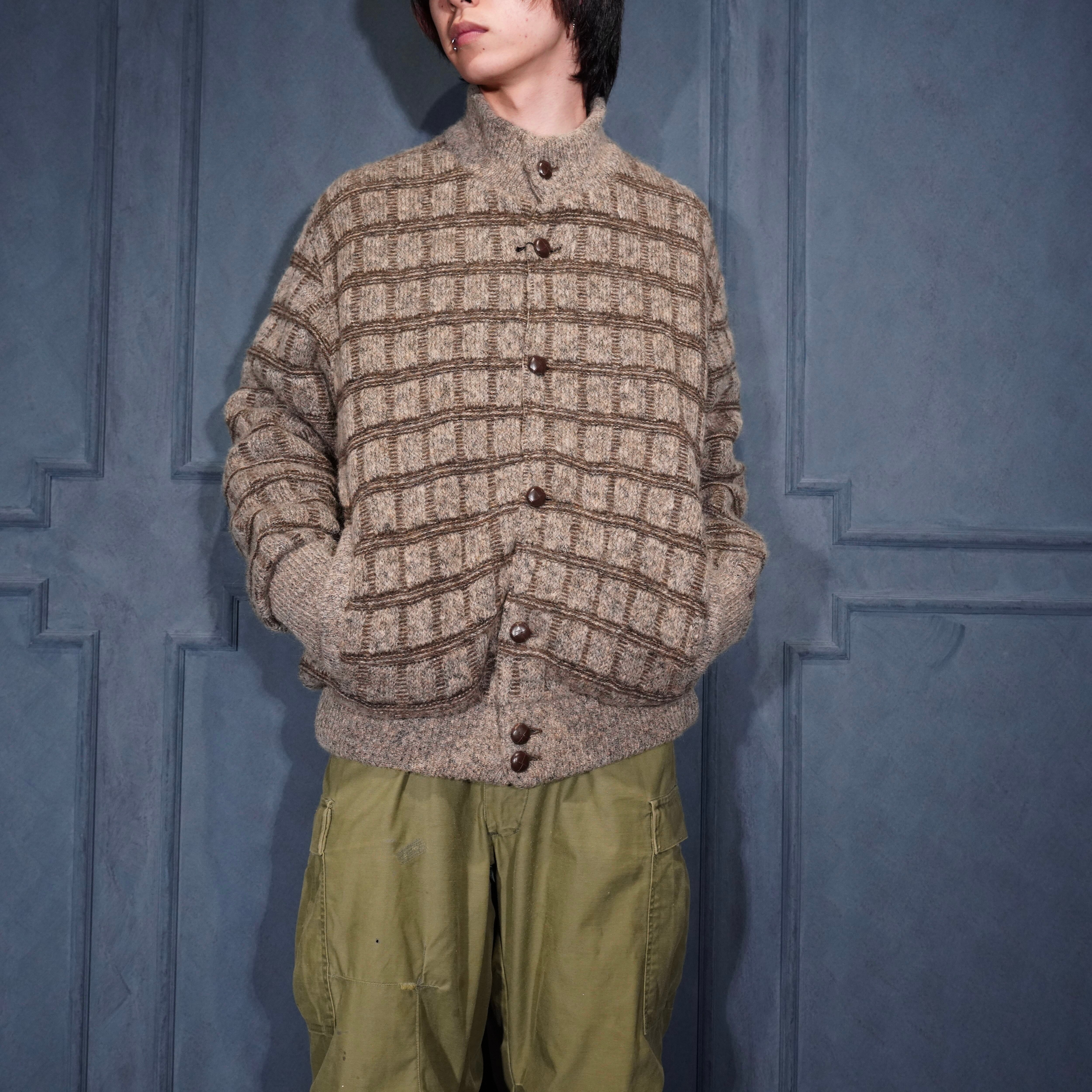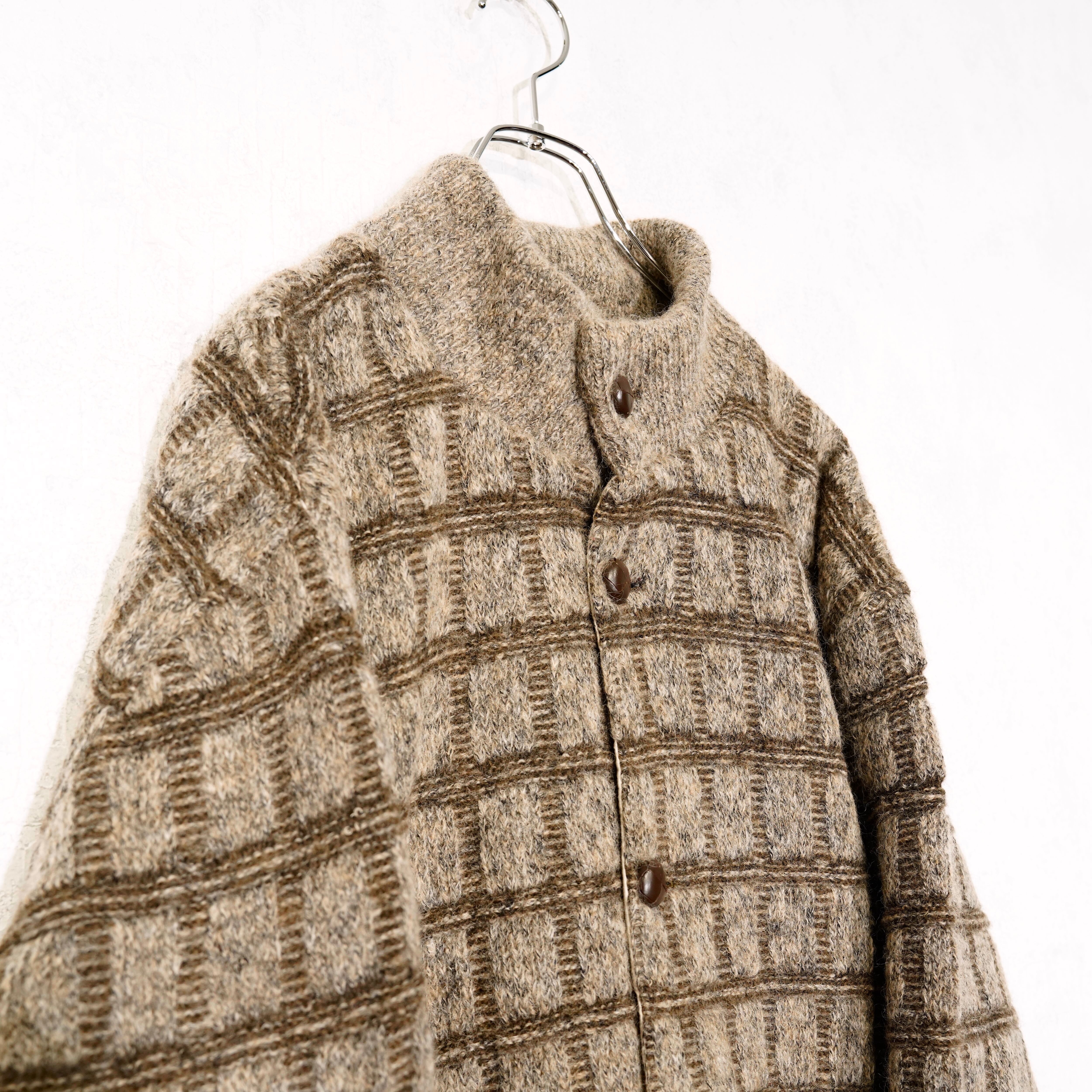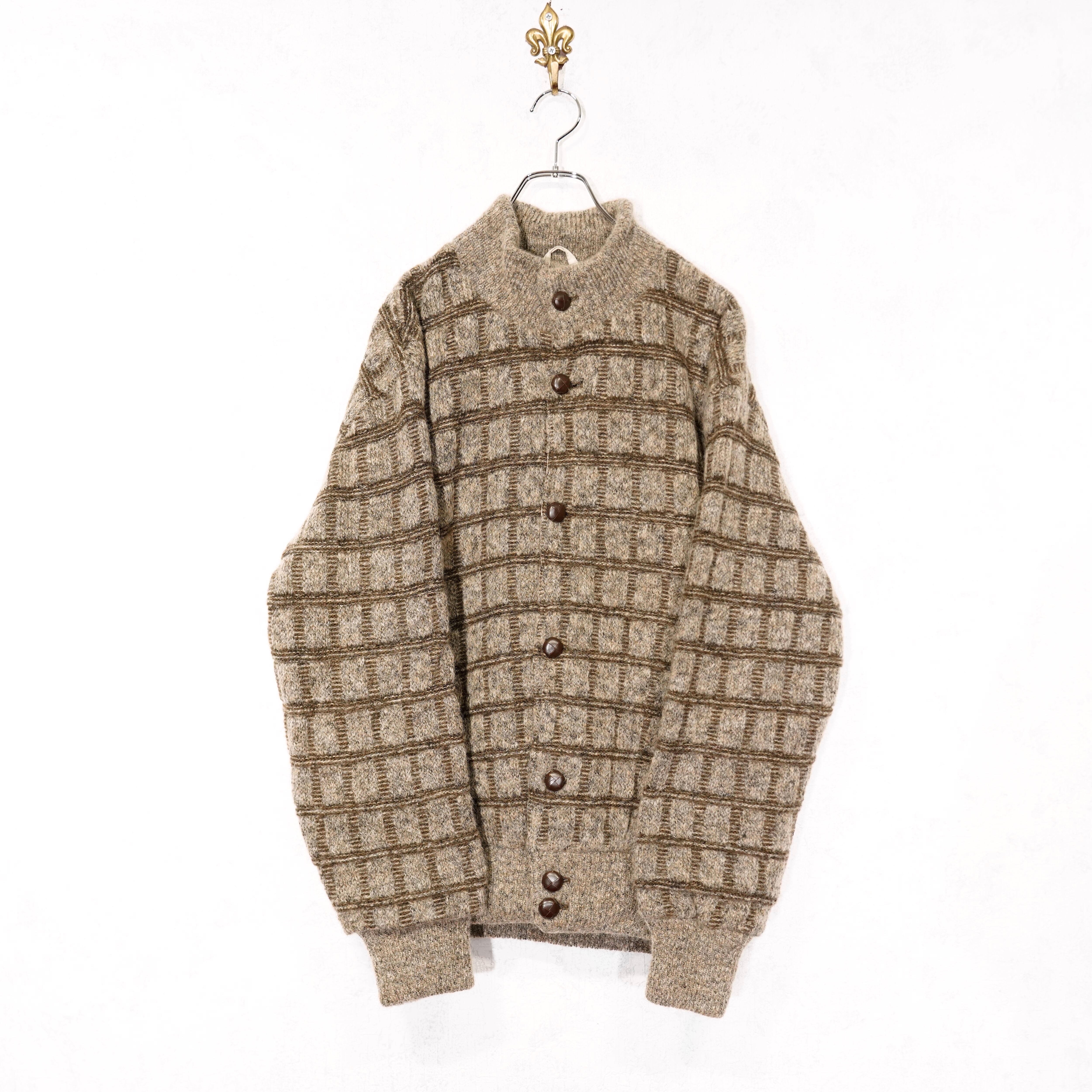 EU VINTAGE RED'S CHECK PATTERNED WOVEN DESIGN KNIT BLOUSON/ヨーロッパ古着チェック柄織デザインニットブルゾン(カーディガン)