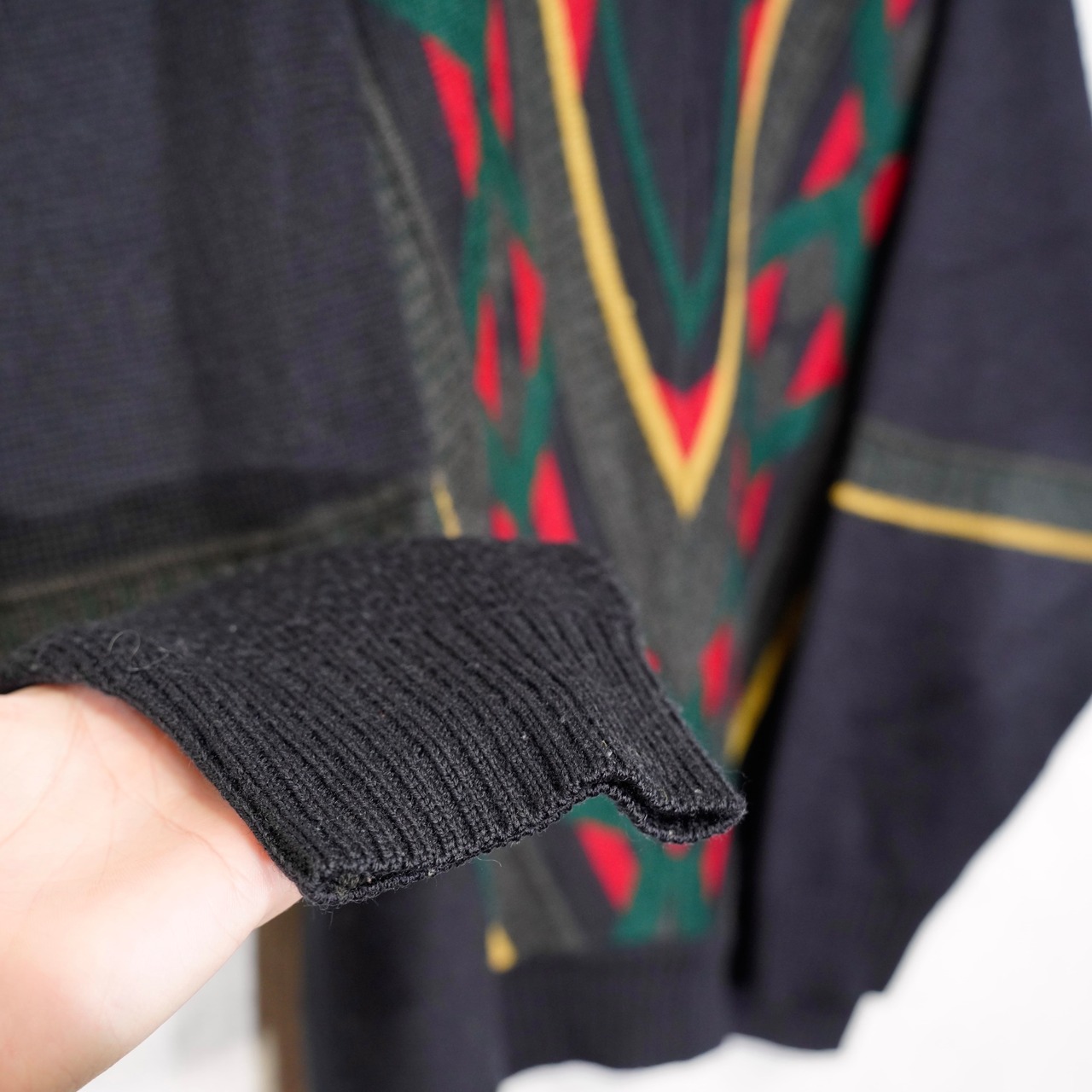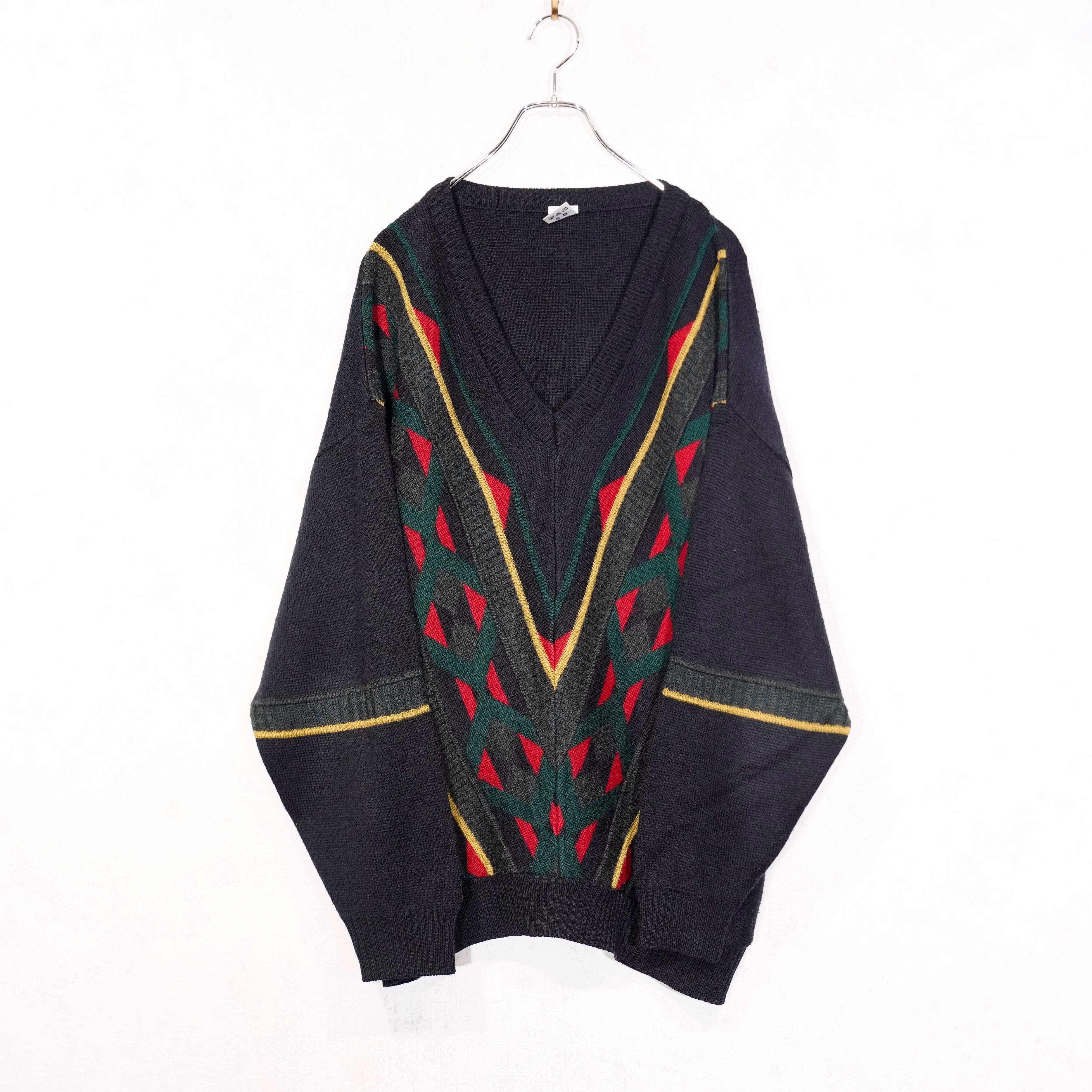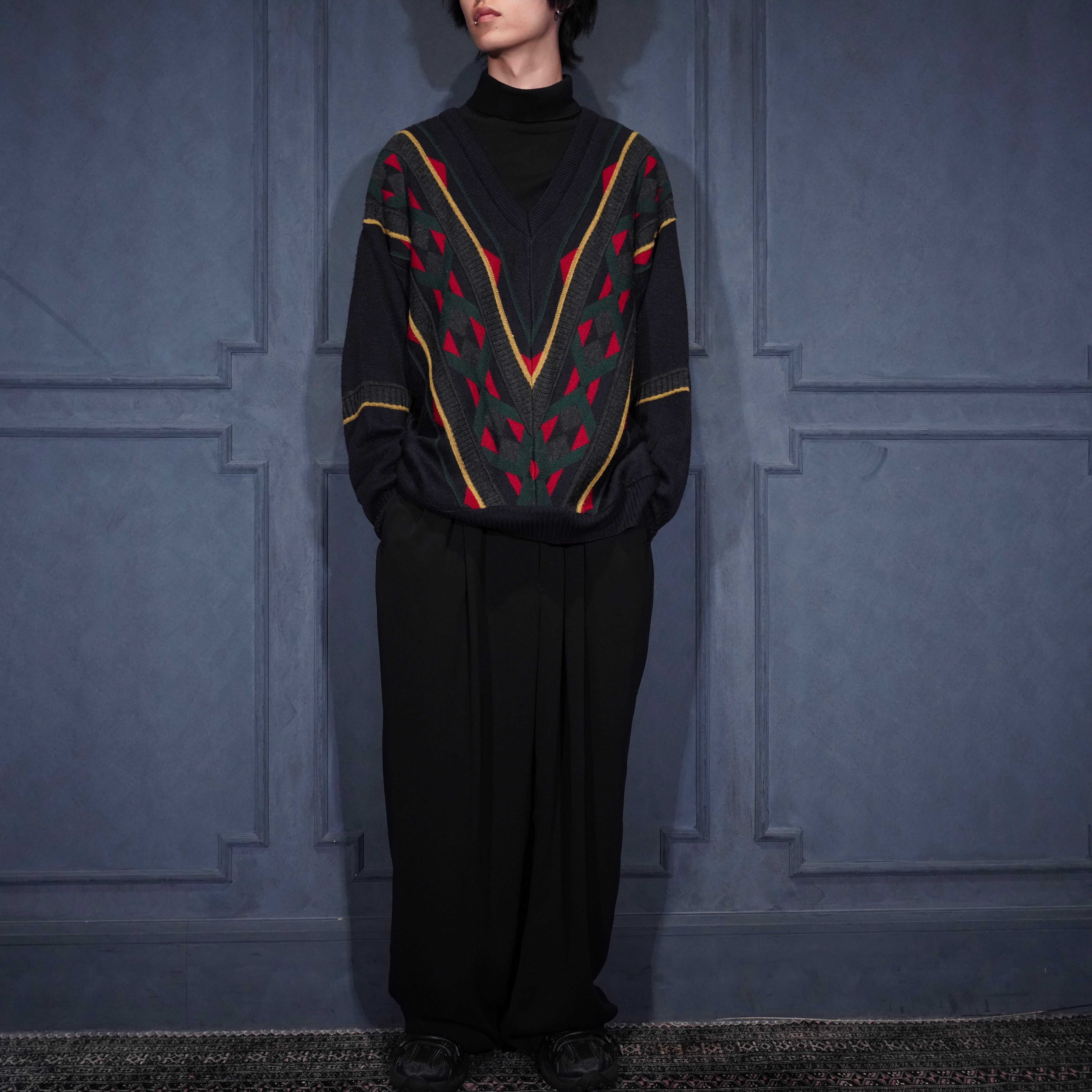 EU VINTAGE PATTERNED DESIGN V NECK KNIT/ヨーロッパ古着柄デザインVネックニット