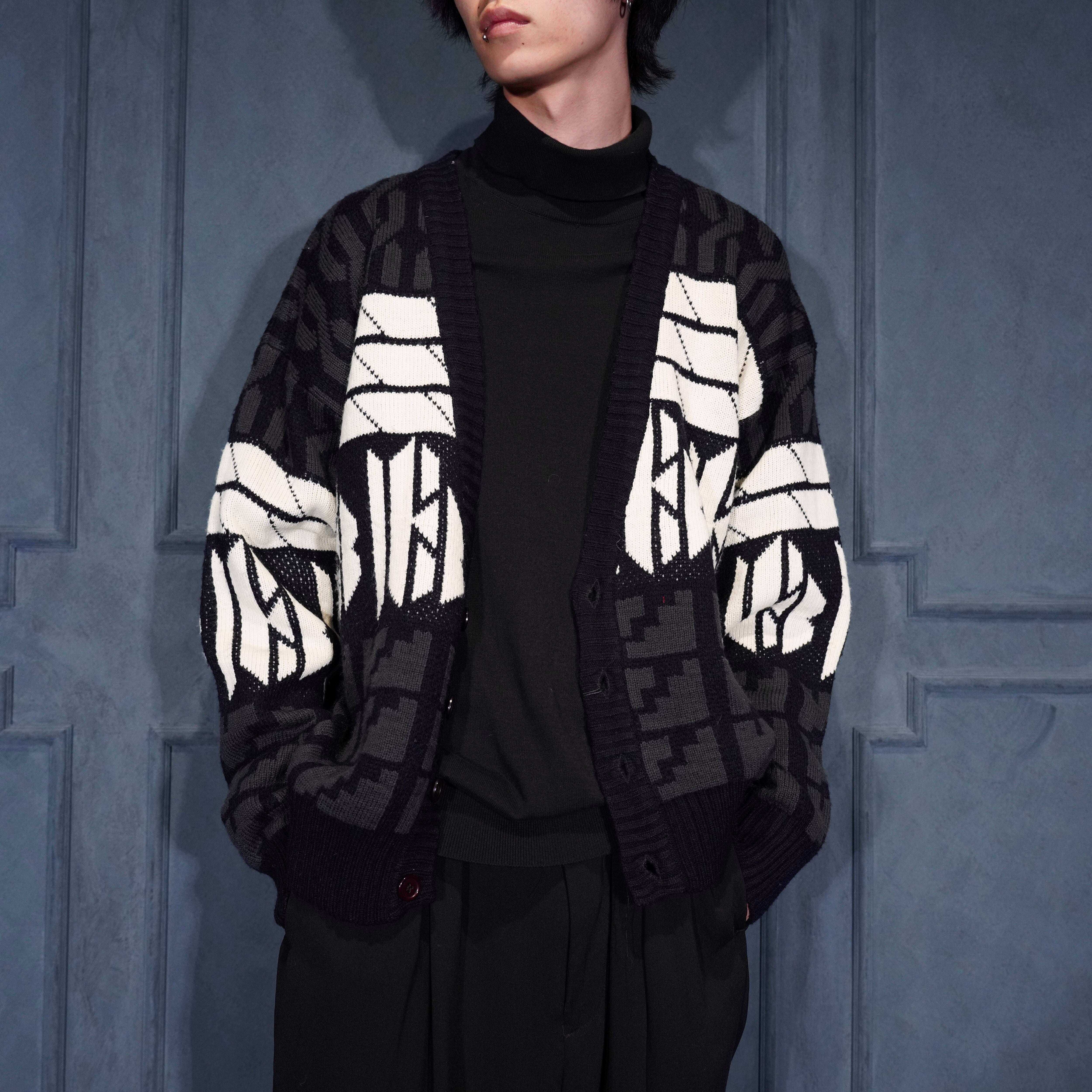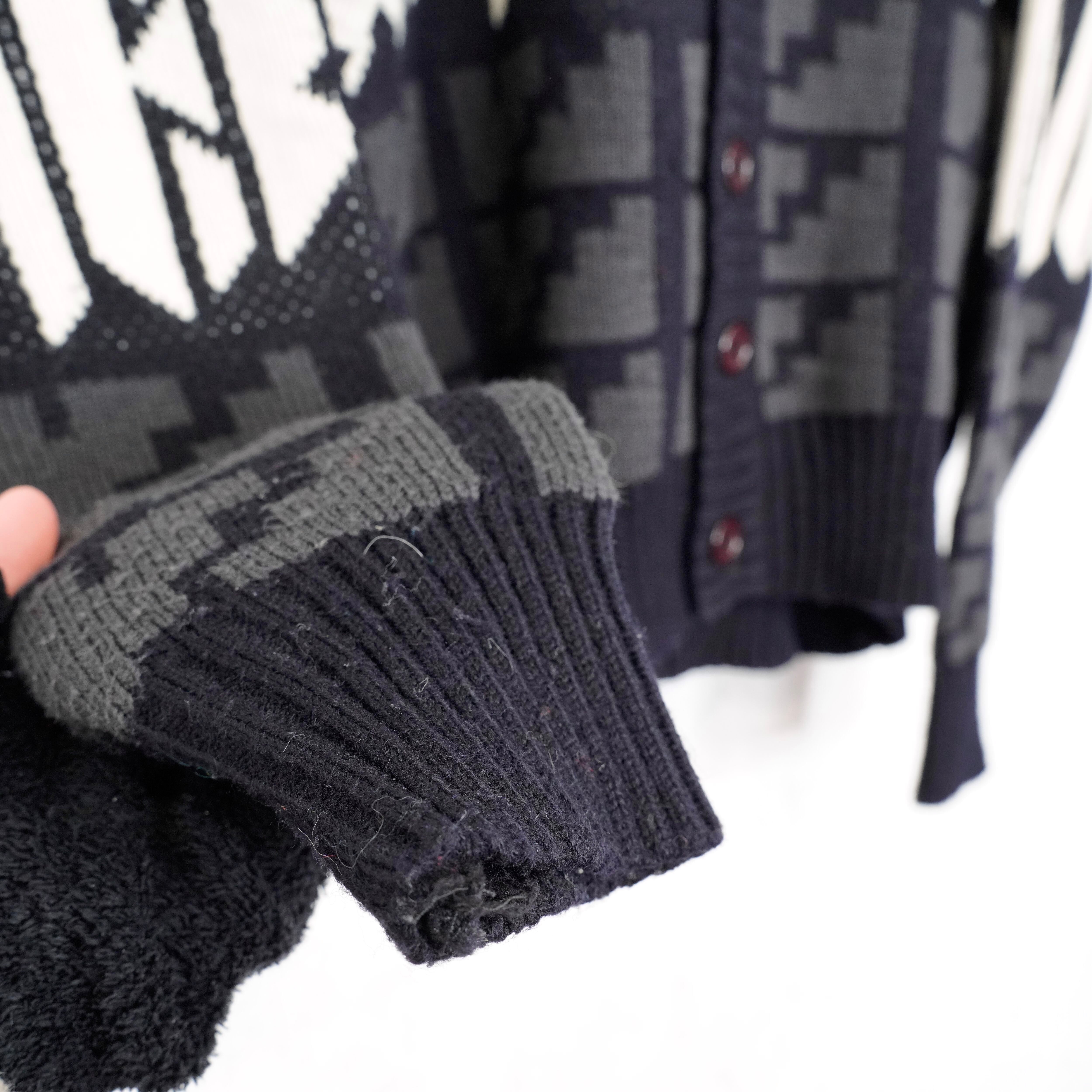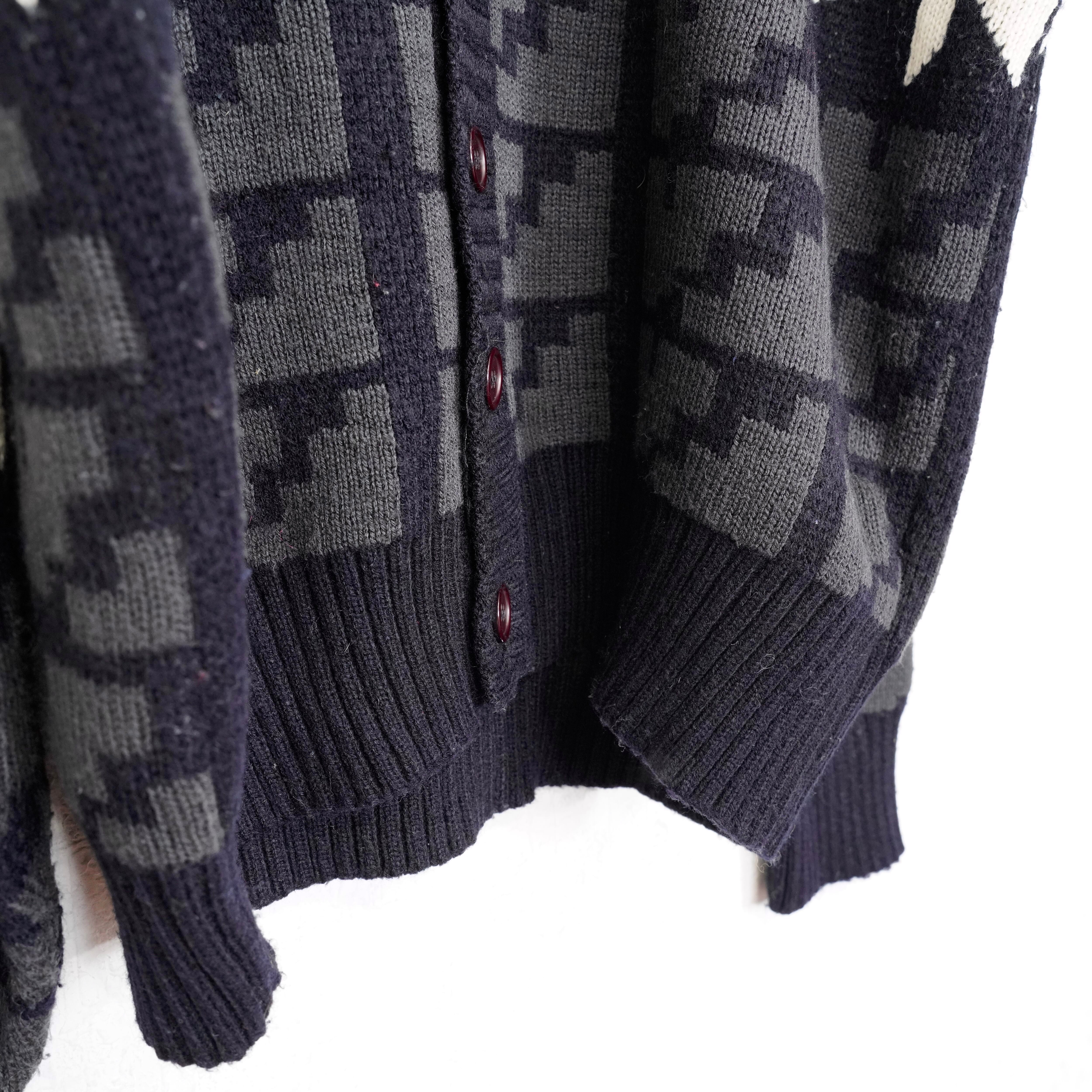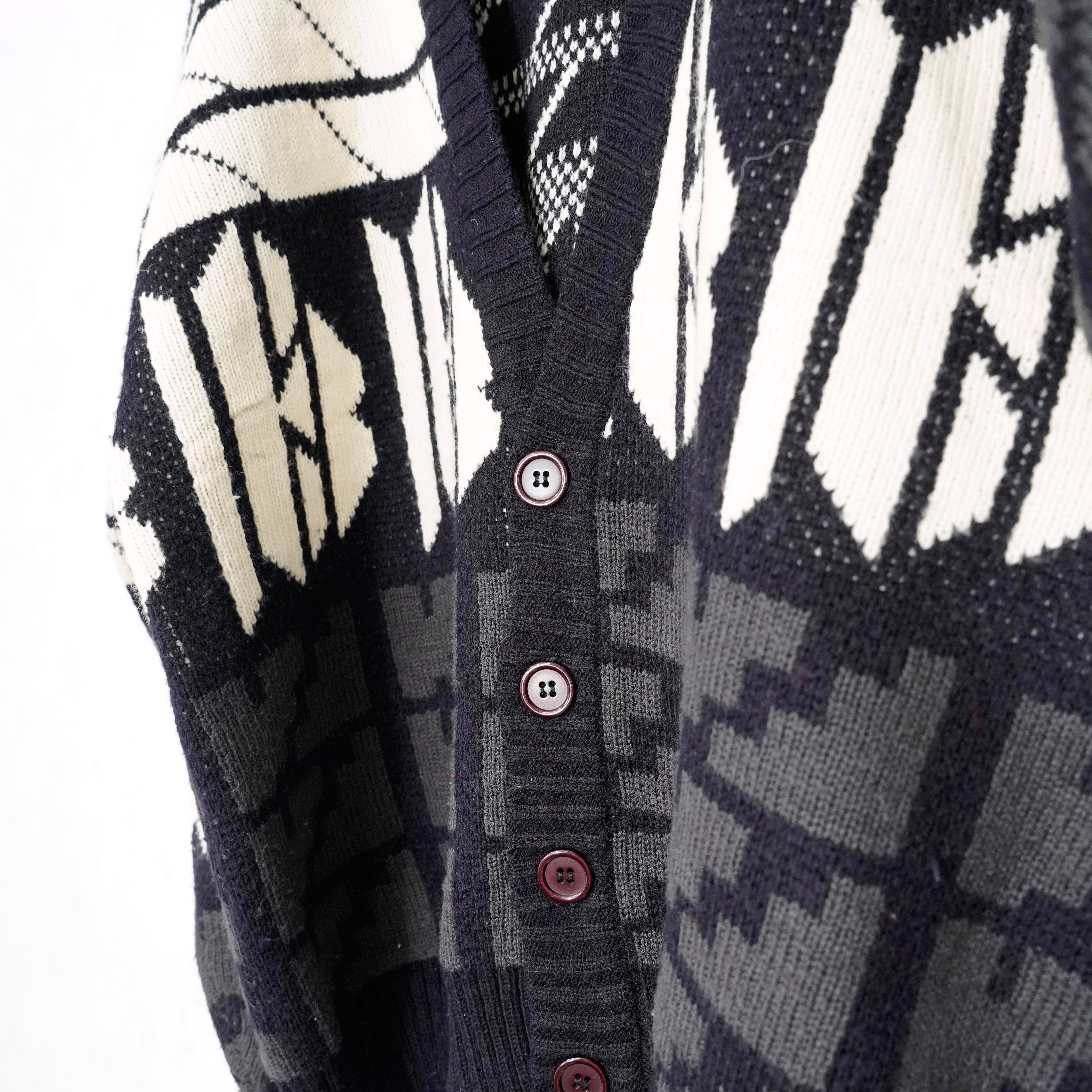 EU VINTAGE Overkirk PATTERNED DESIGN ACRYIC KNIT CARDIGAN/ヨーロッパ古着柄デザインアクリルニットカーディガン
