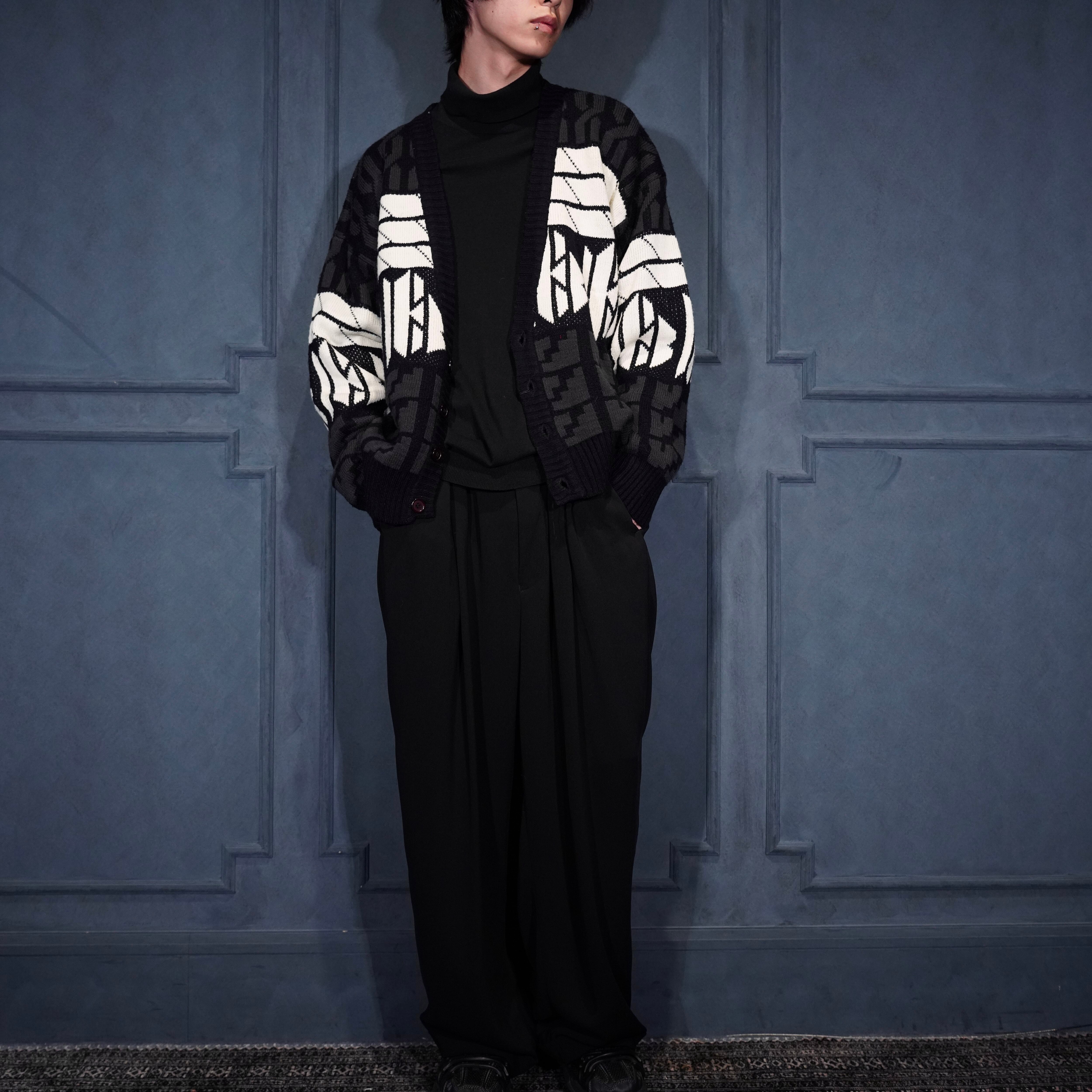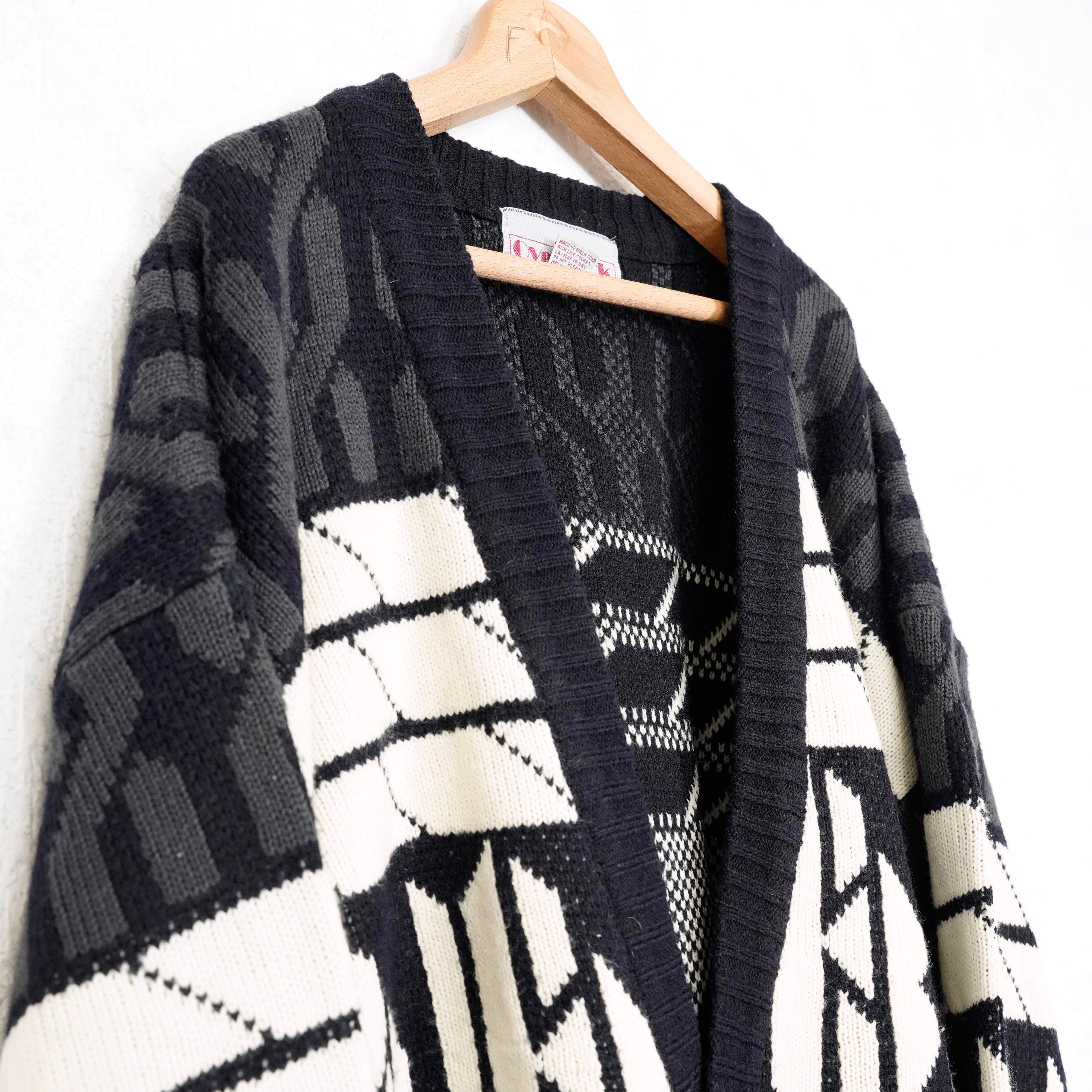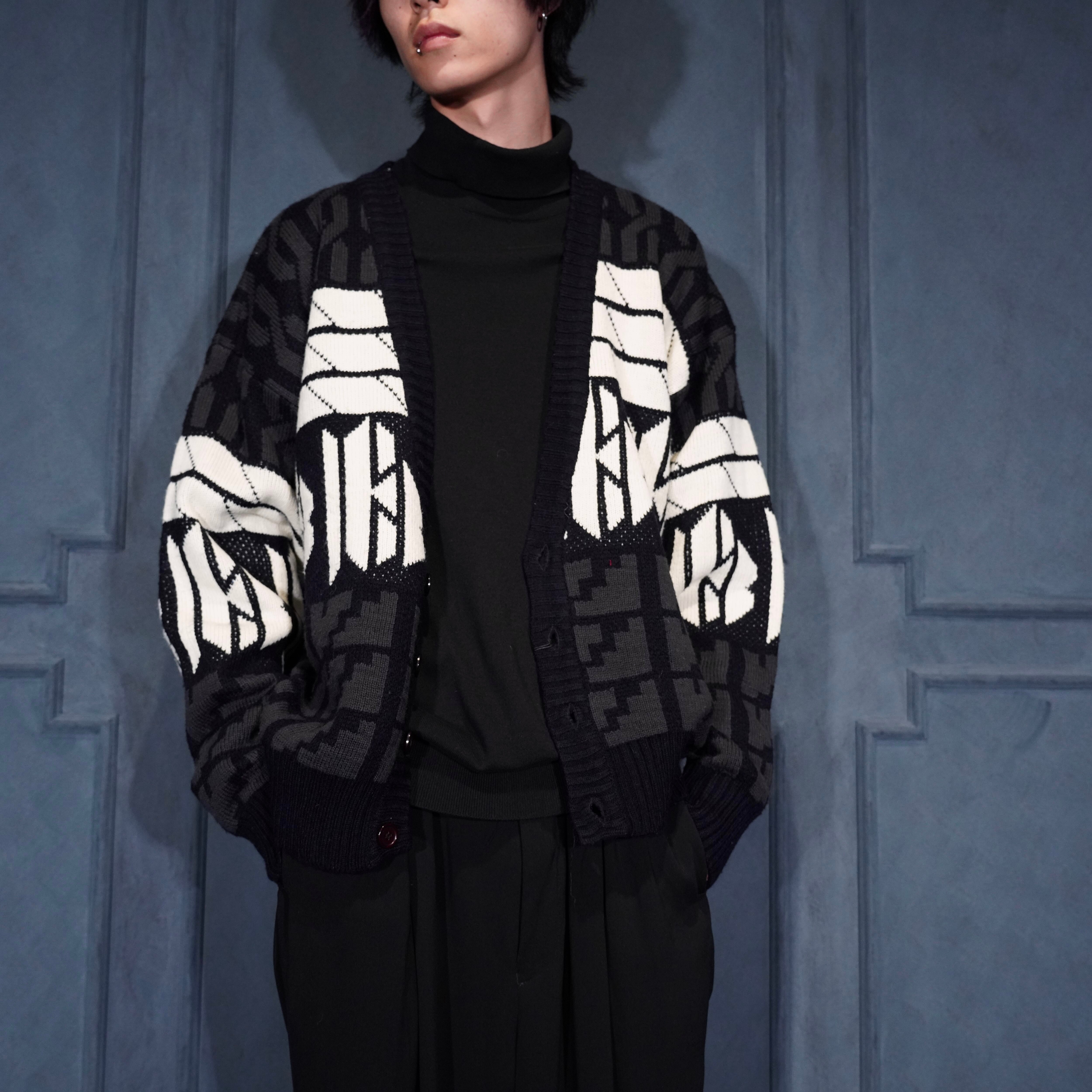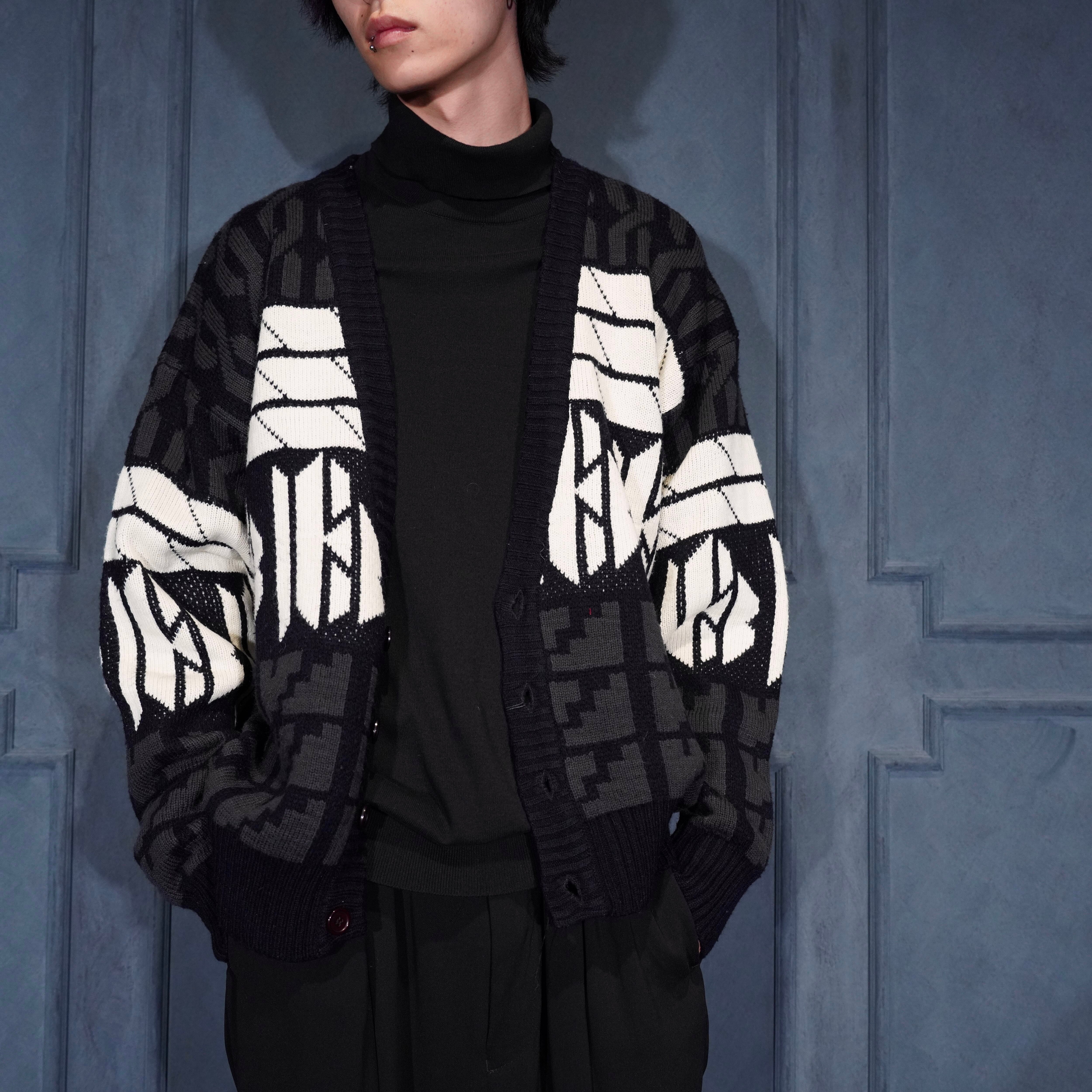 EU VINTAGE Overkirk PATTERNED DESIGN ACRYIC KNIT CARDIGAN/ヨーロッパ古着柄デザインアクリルニットカーディガン