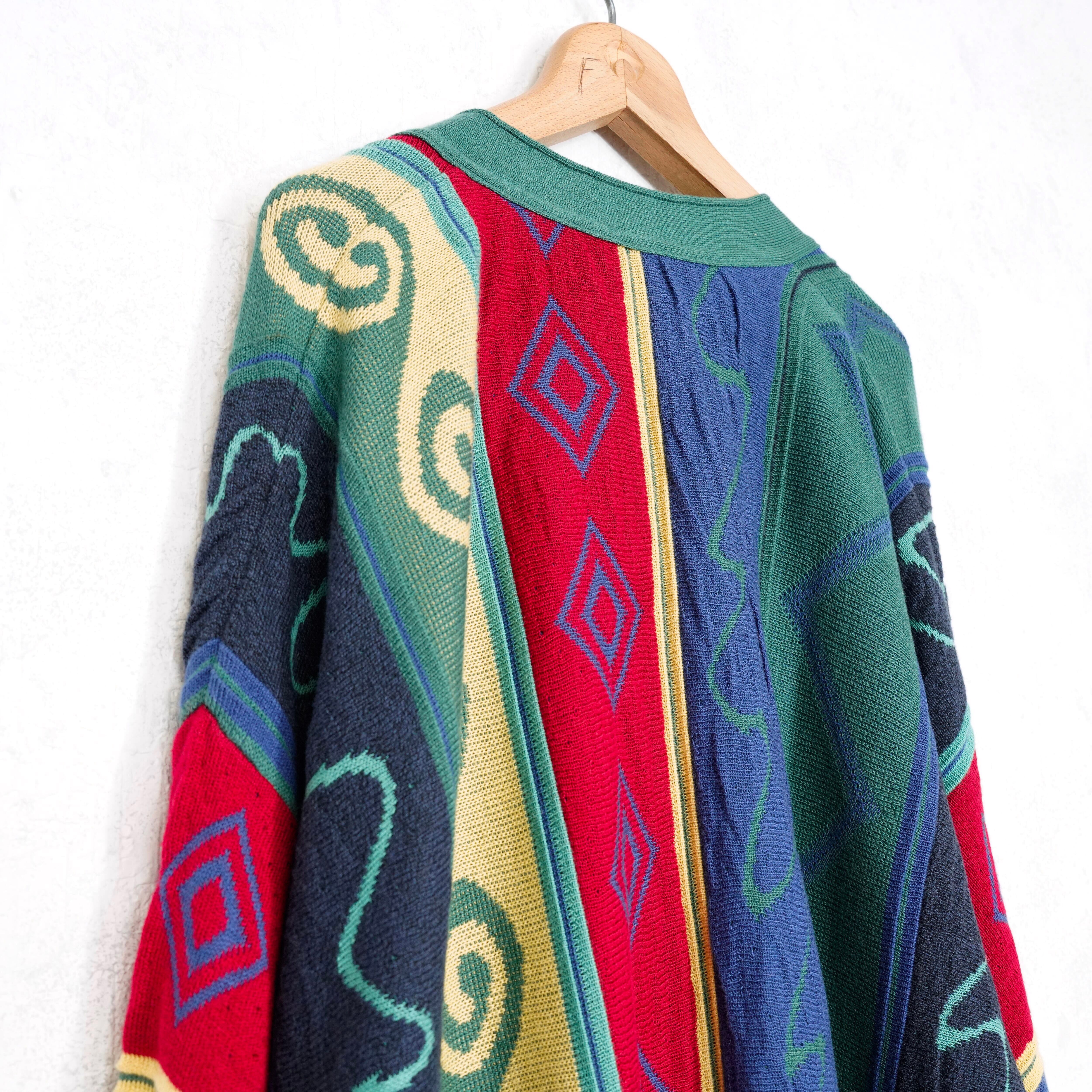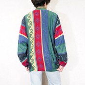 EU VINTAGE FiSCHER PATTERNED DESIGN KNIT CARDIGAN MADE IN GERMANY/ヨーロッパ古着柄デザインニットカーディガン