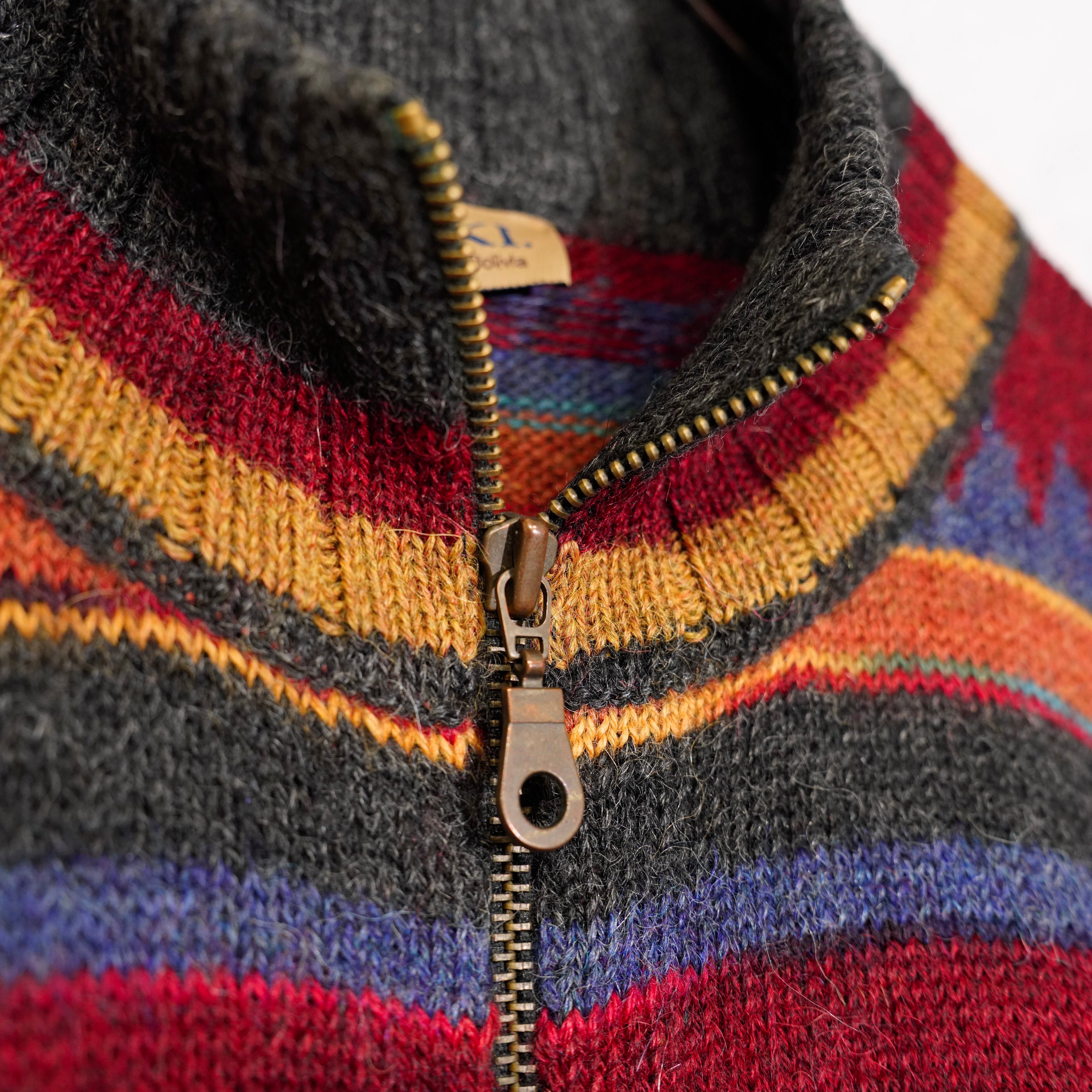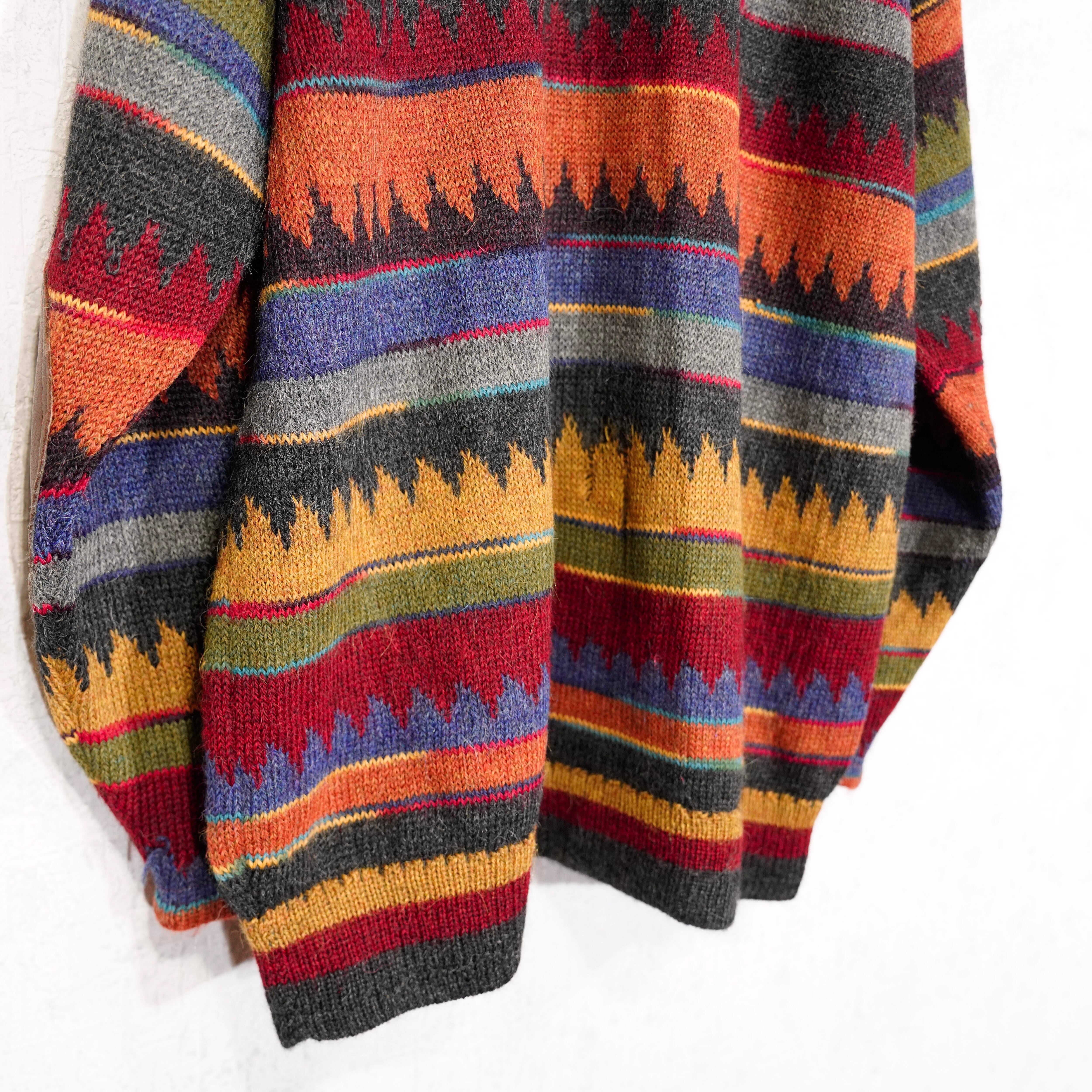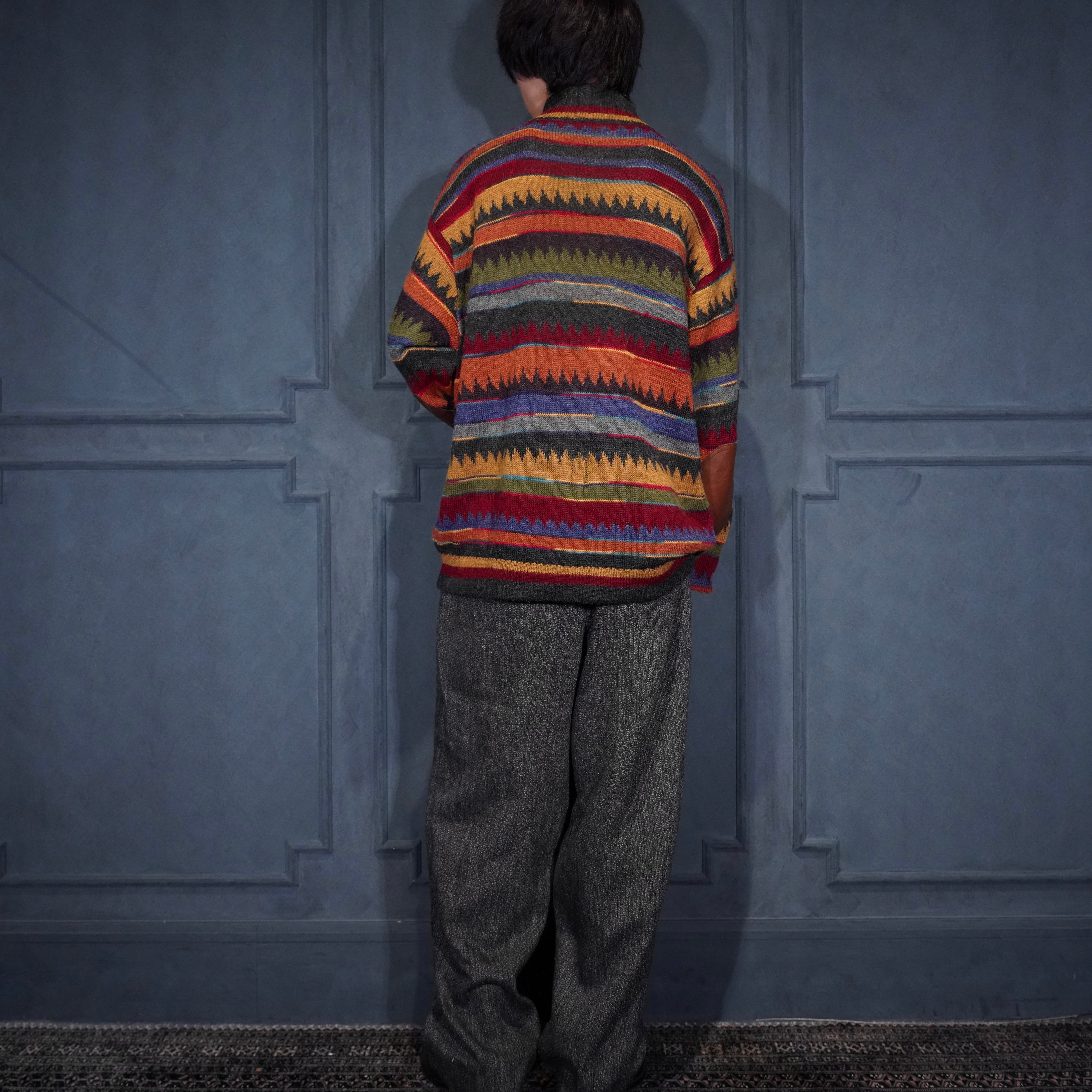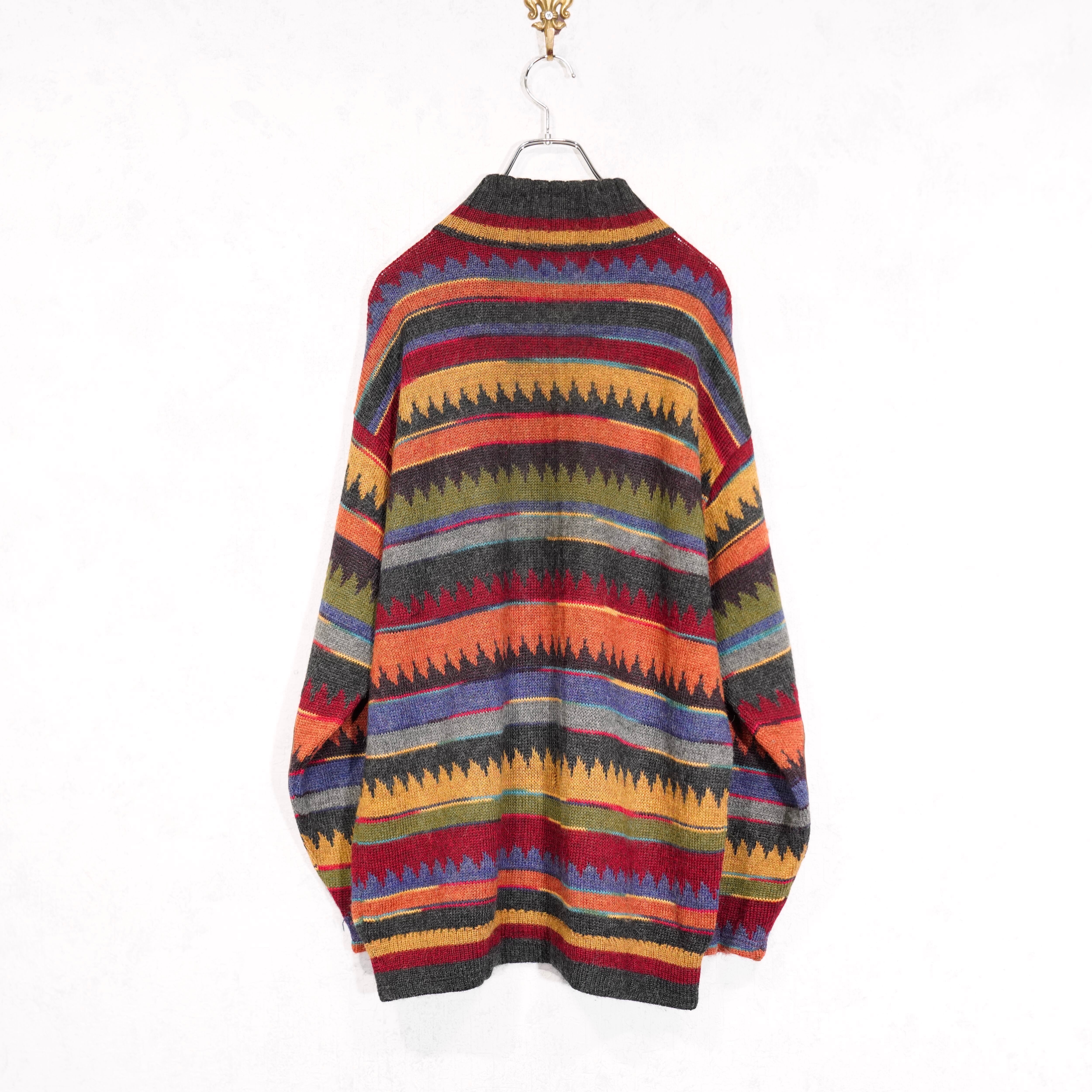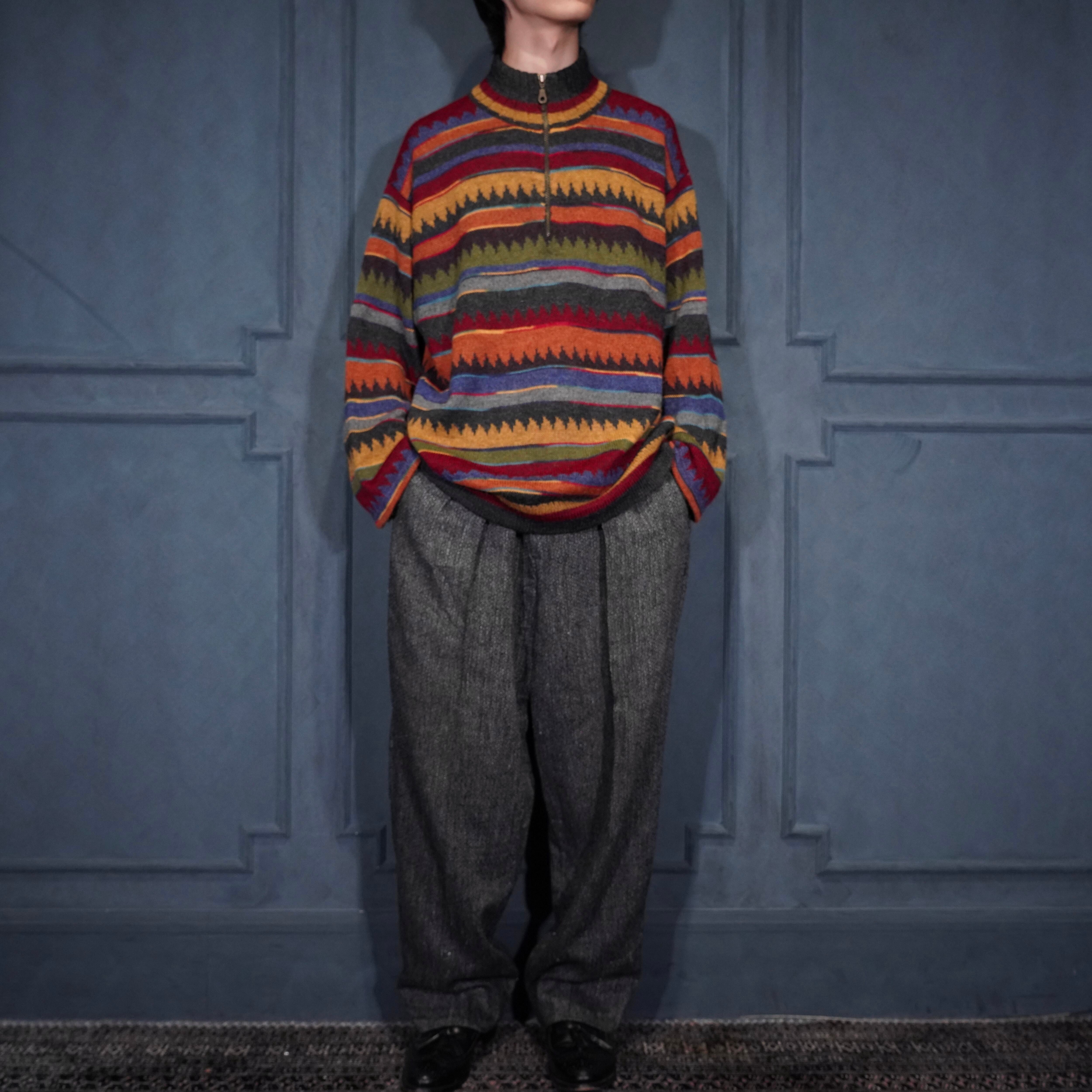 EU VINTAGE WALIKI MULTI COLOR HALF ZIP ALPACA KNIT/ヨーロッパ古着マルチカラーハーフジップアルパカニット