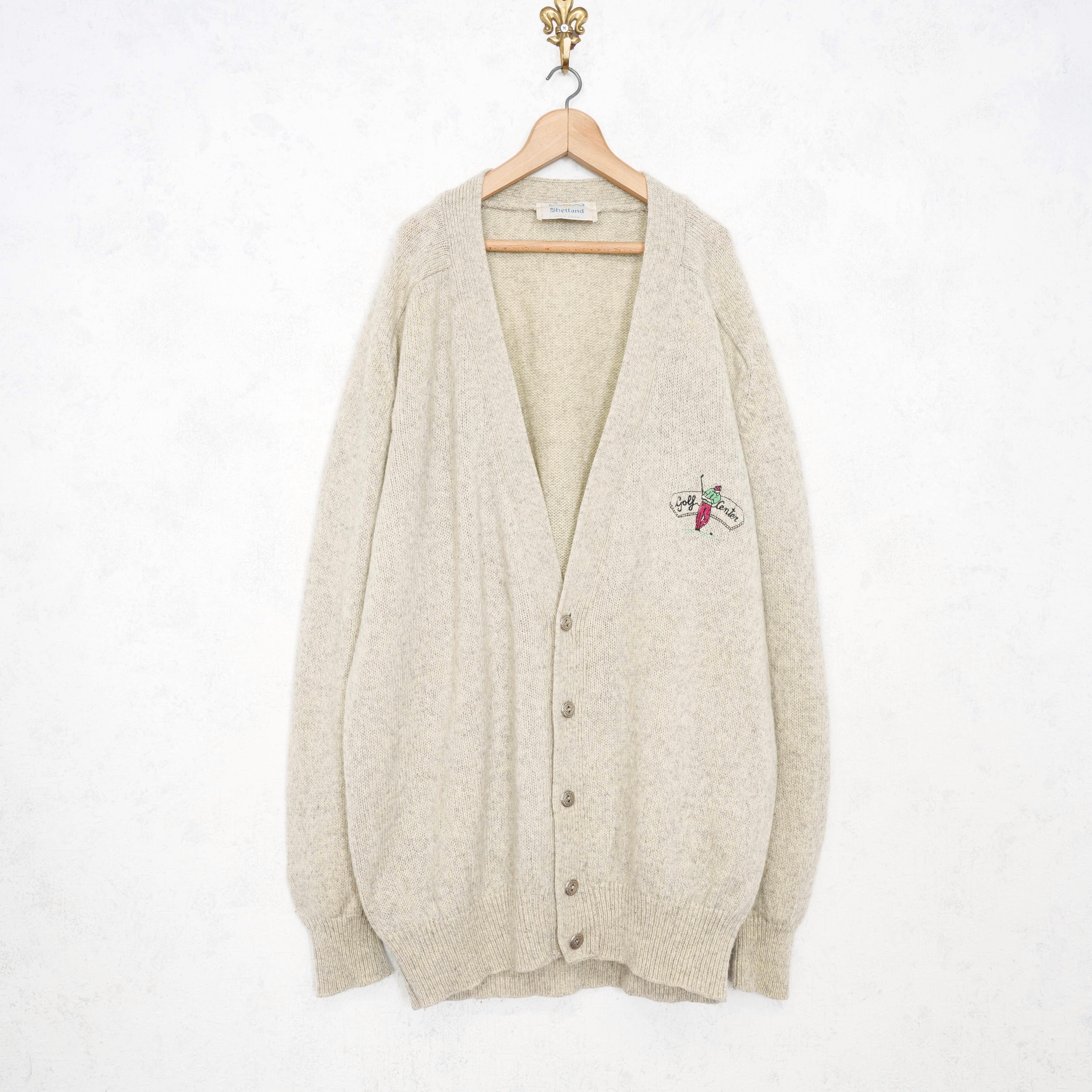 EU VINTAGE Shetland EMBROIDERY DESIGN WOOL KNIT CARDIGAN MADE IN ITALY/ヨーロッパ古着刺繍デザインウールニットカーディガン