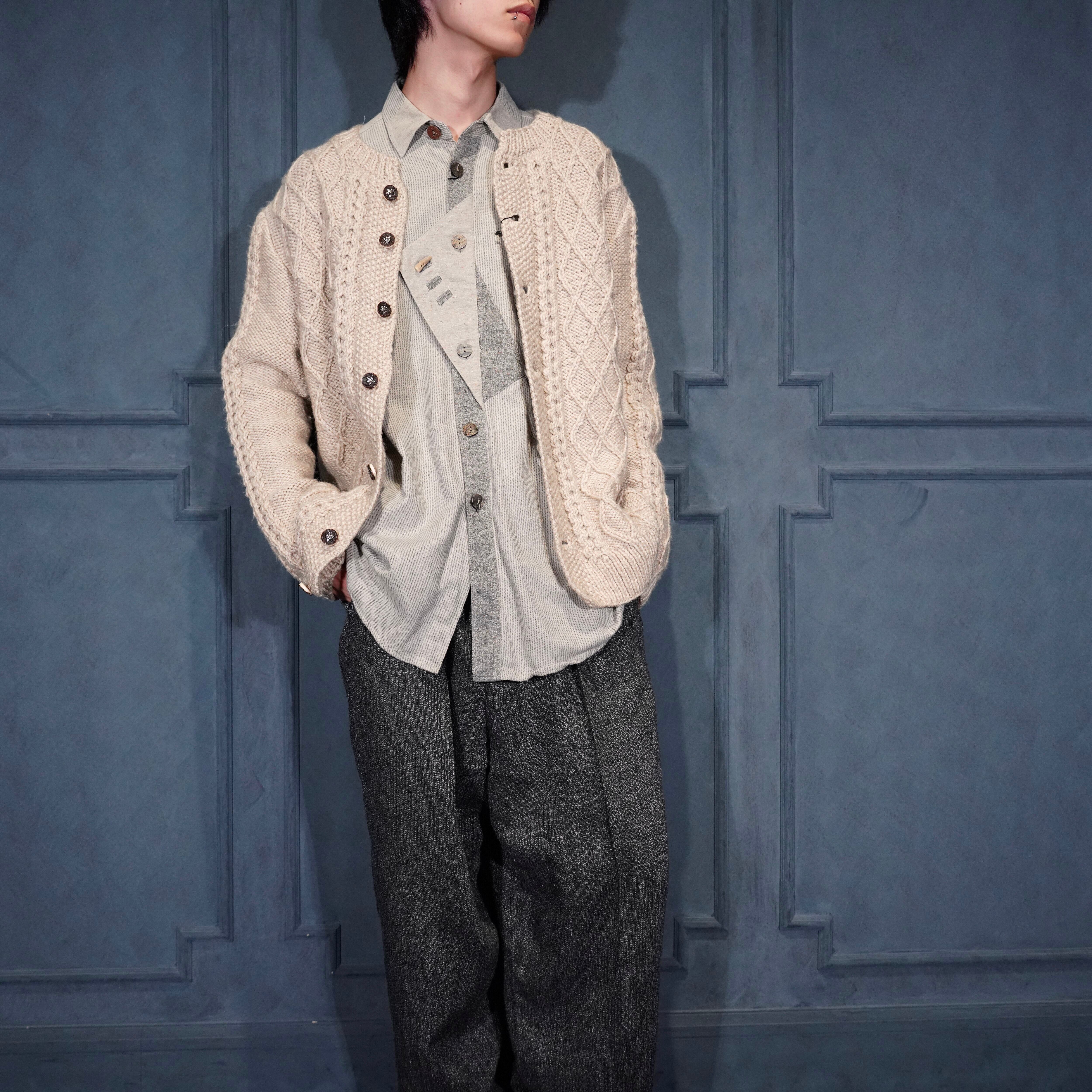 EU VINTAGE CABLE DESIGN TYROLEAN KNIT CARDIGAN/ヨーロッパ古着ケーブルデザインチロリアンニットカーディガン