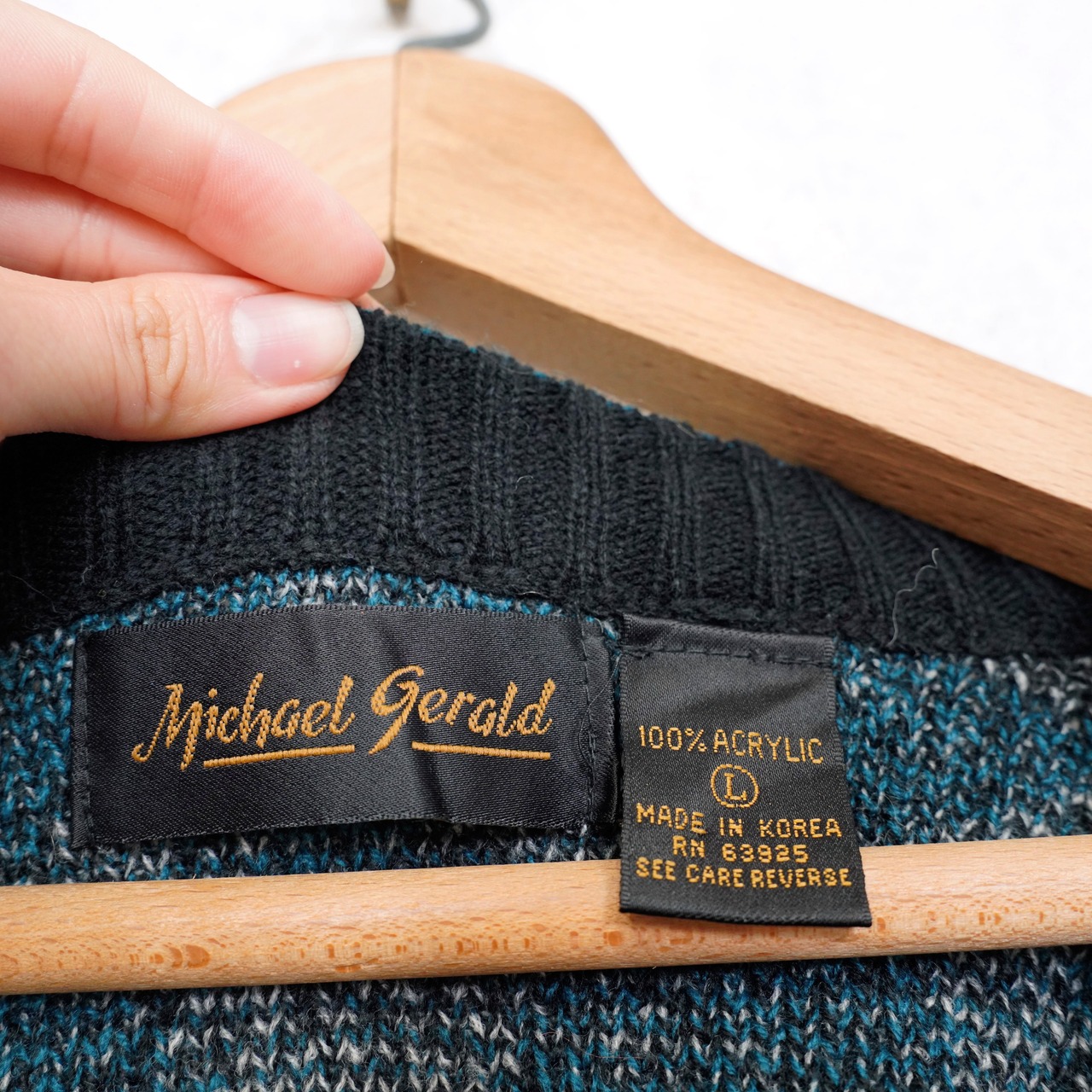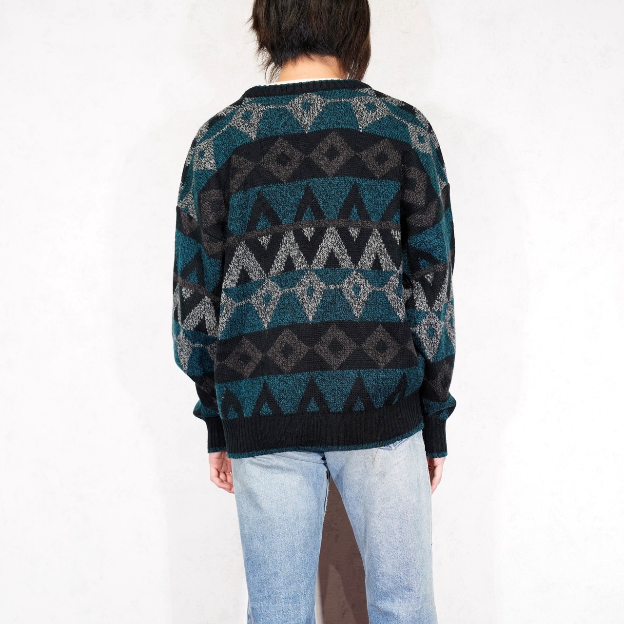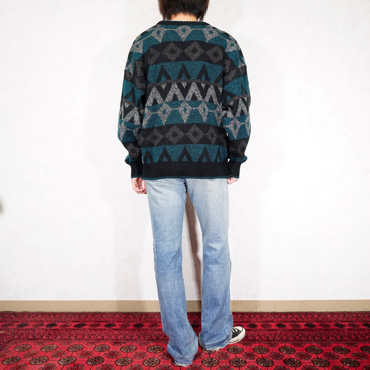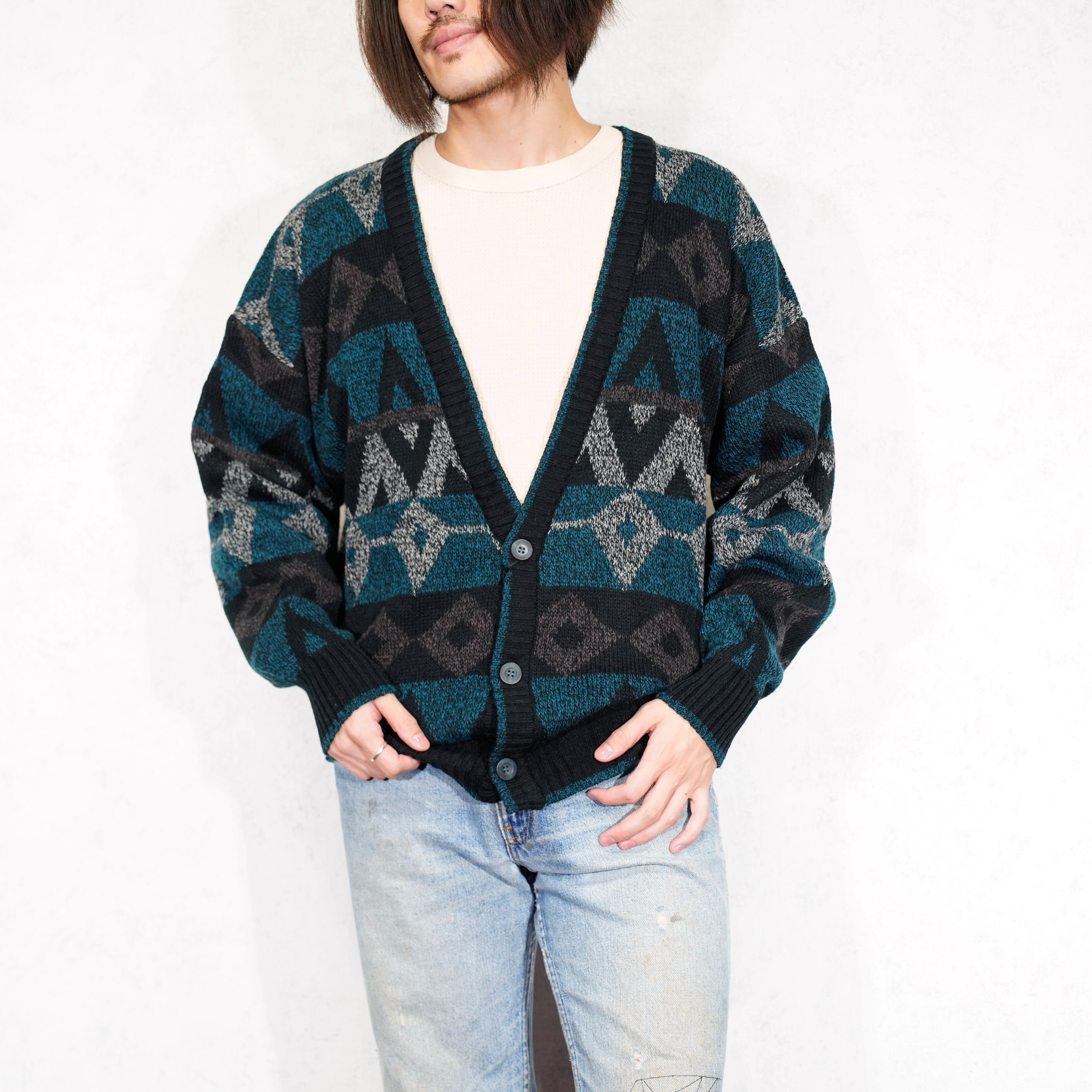 USA VINTAGE Michael Gerald PATTERNED DESIGN KNIT CARDIGAN/アメリカ古着柄デザインニットカーディガン