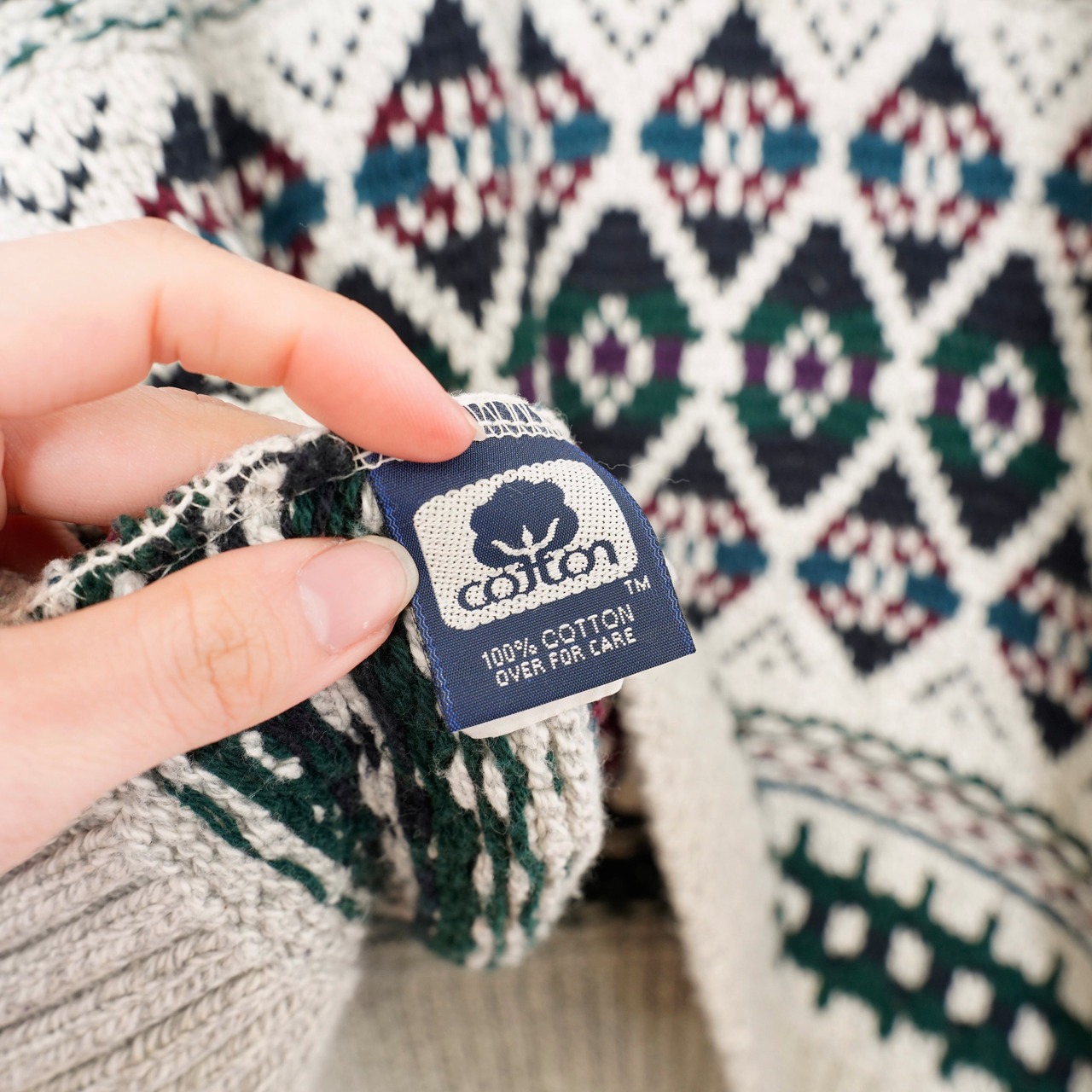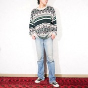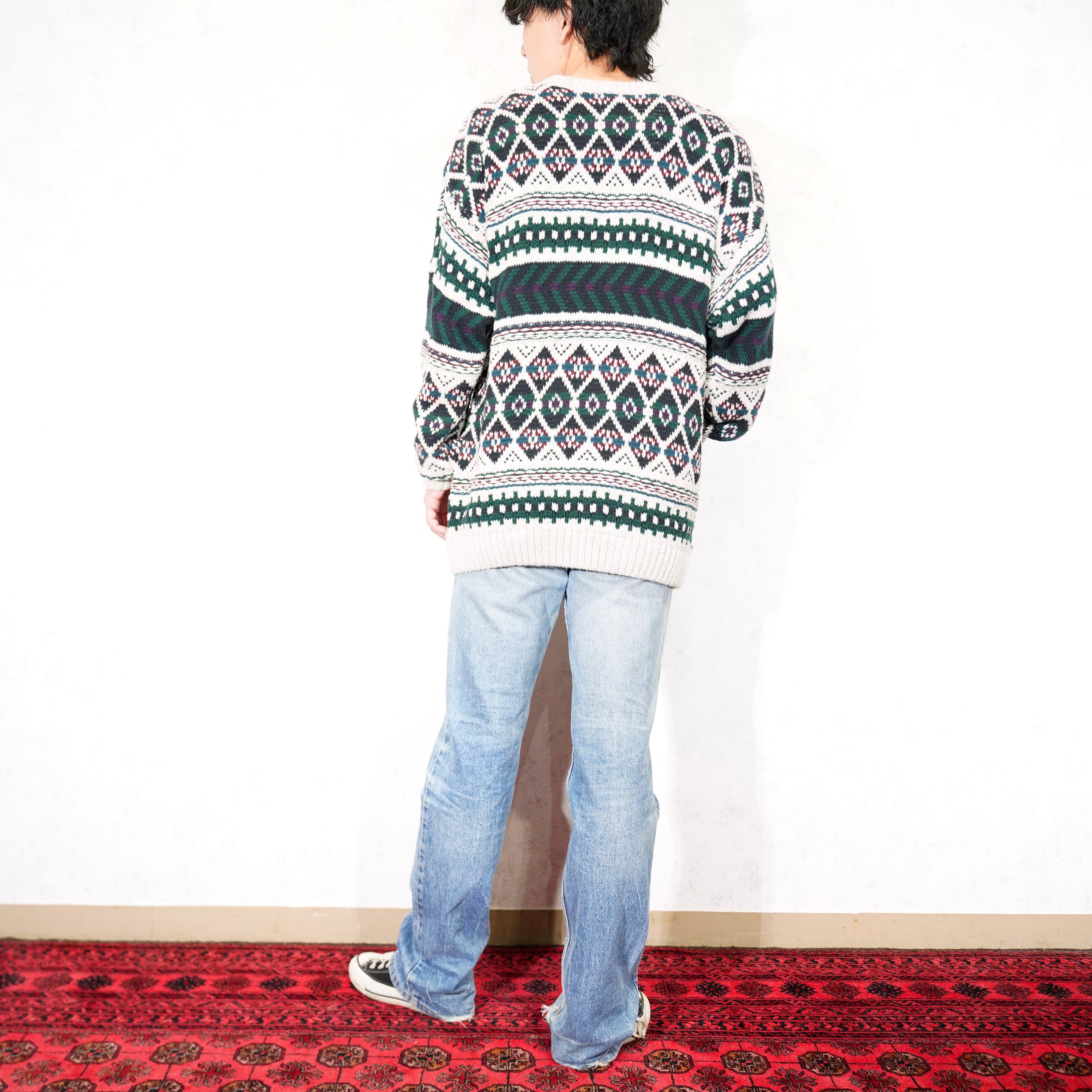 USA VINTAGE OLD GLORY PATTERNED DESIGN HEAVY COTTON KNIT/アメリカ古着柄デザインヘビーコットンニット