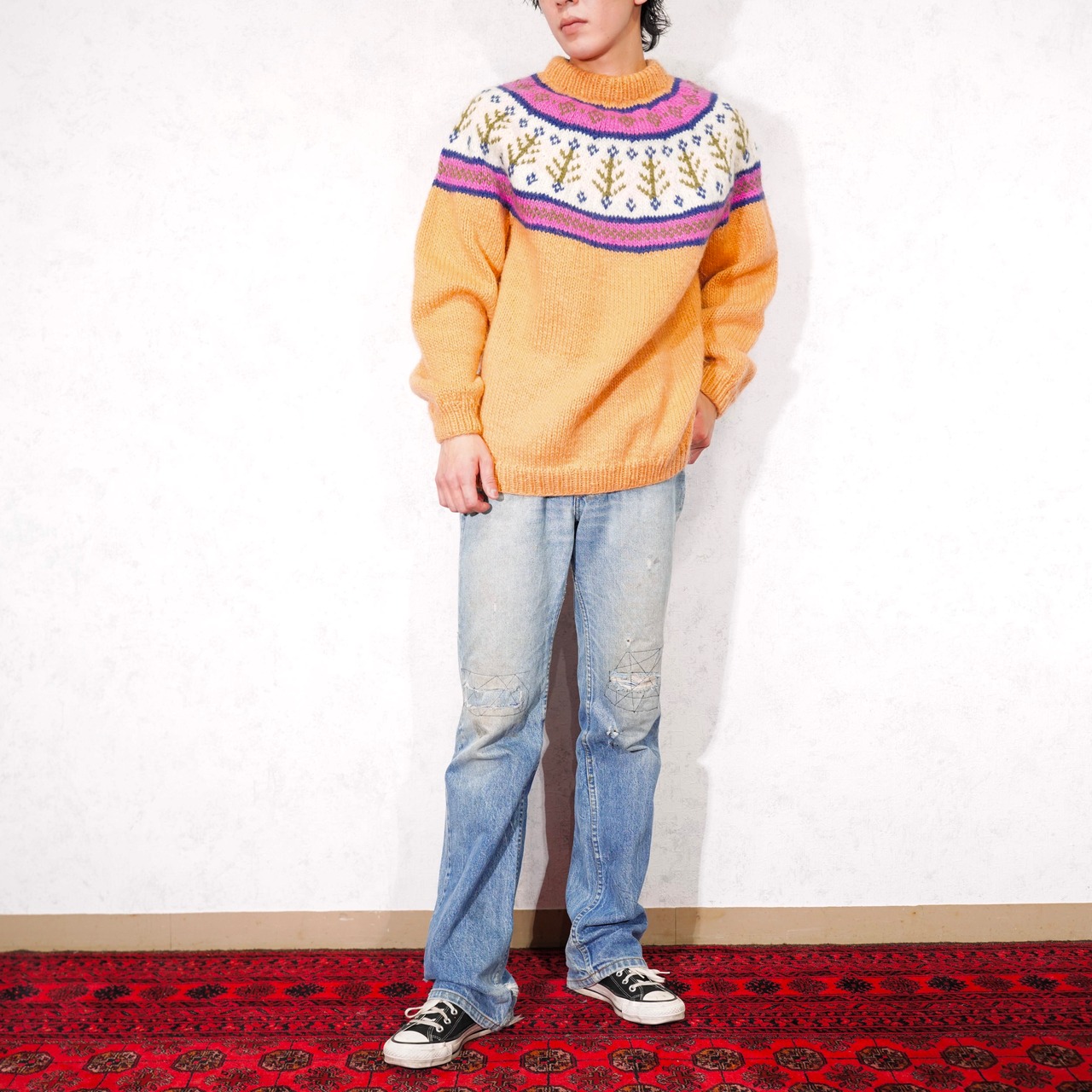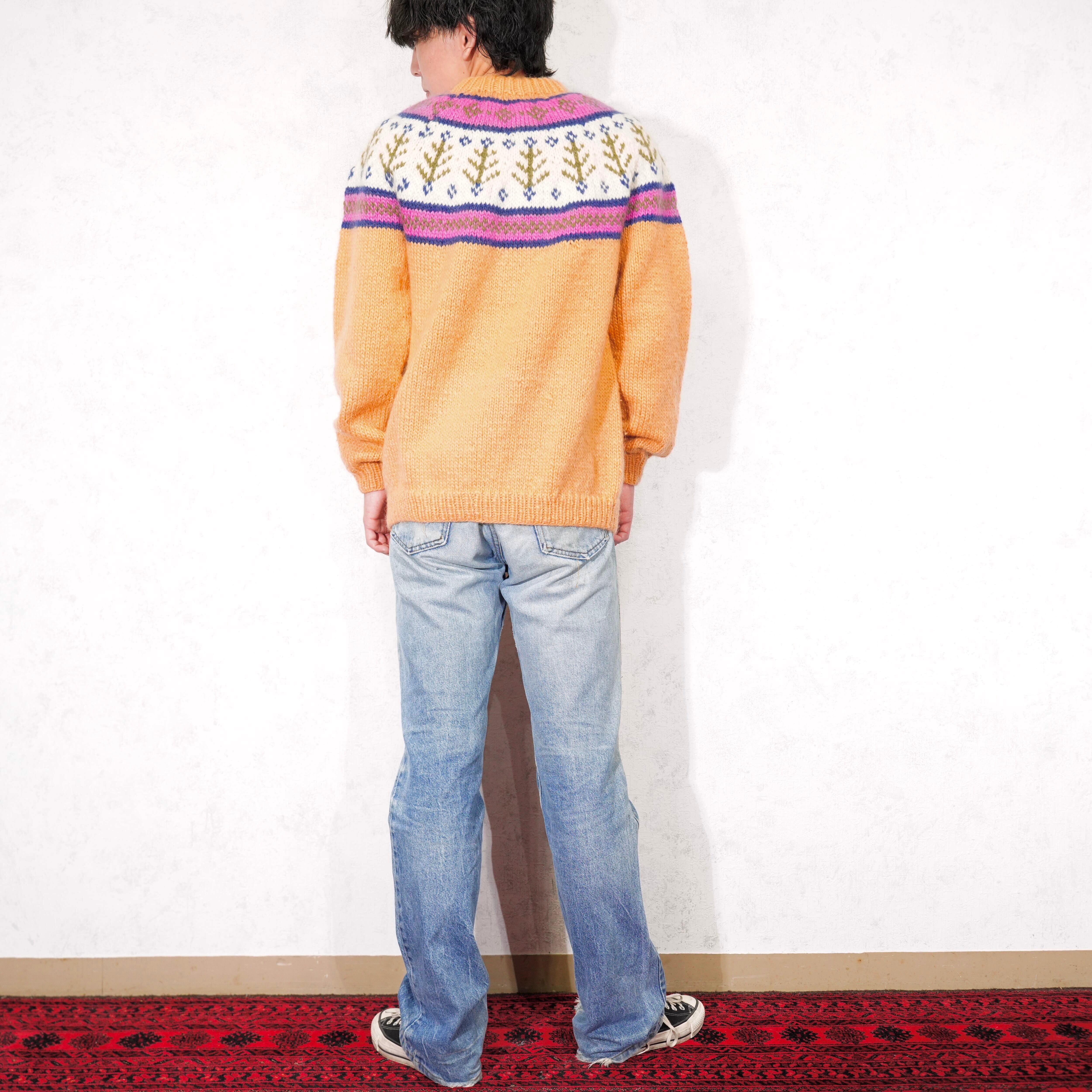 USA VINTAGE ORANGE COLOR NORDIC PATTERNED DESIGN KNIT/アメリカ古着オレンジカラーノルディック柄デザインニット