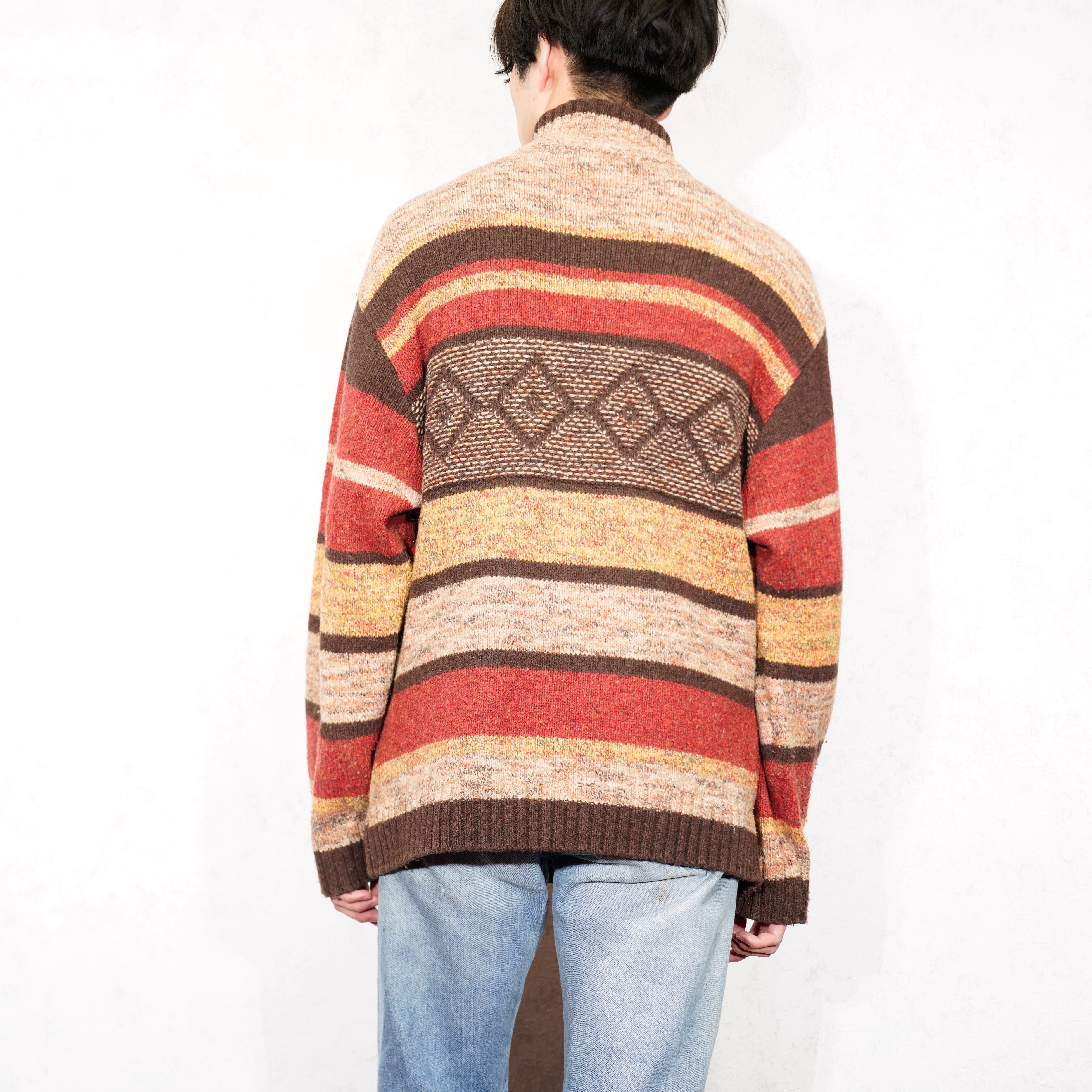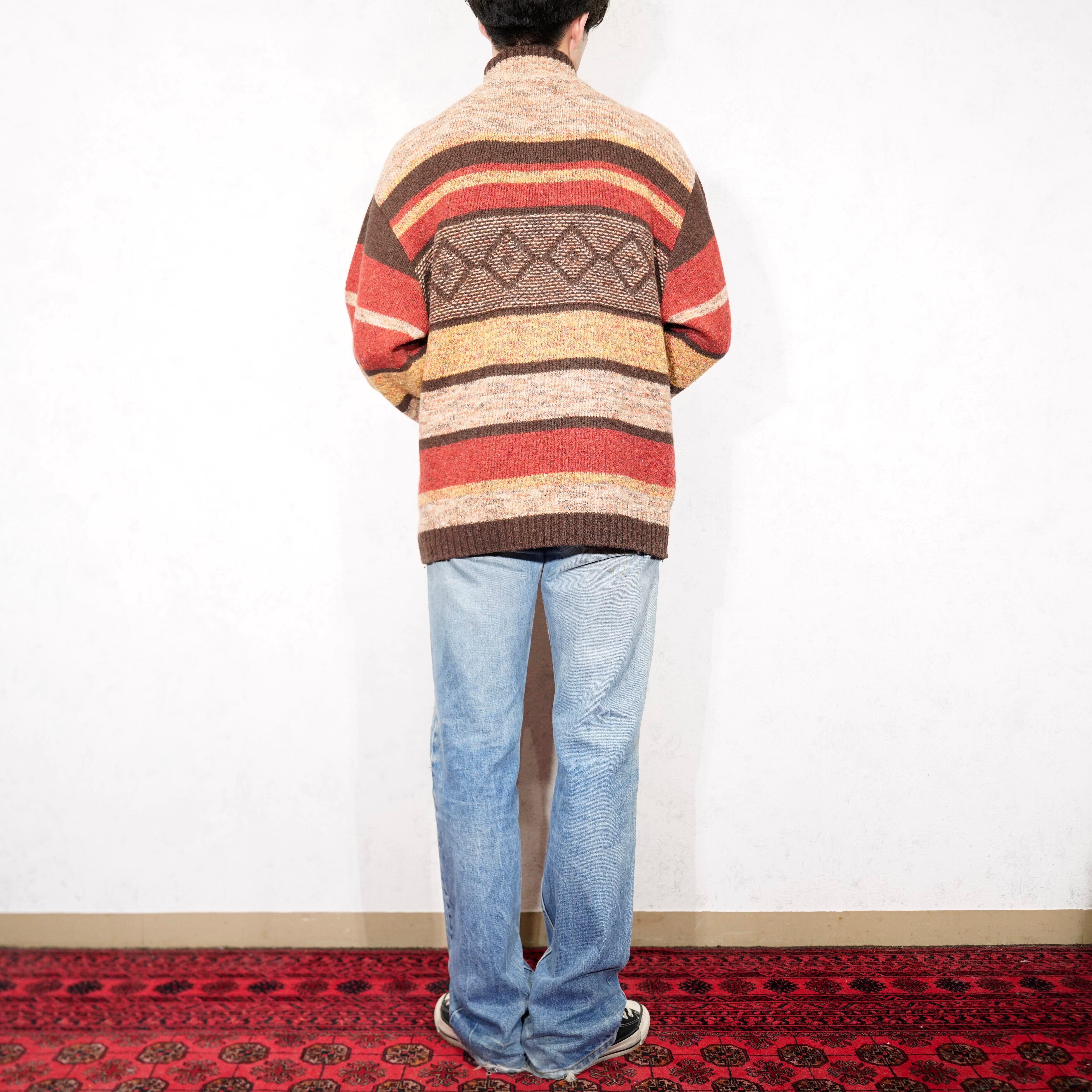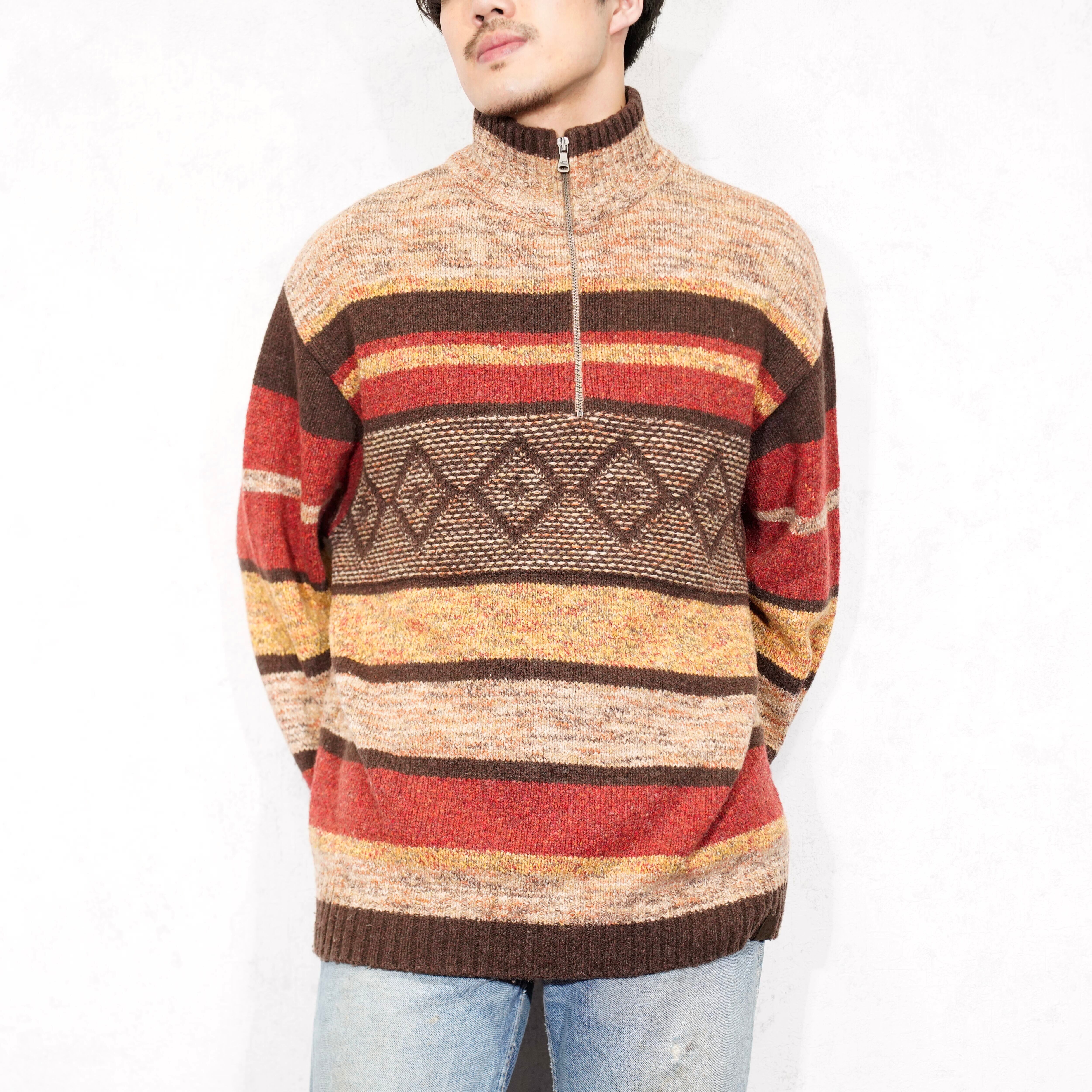 USA VINTAGE camel active PATTERNED DESIGN HALF ZIP KNIT/アメリカ古着柄デザインハーフジップニット