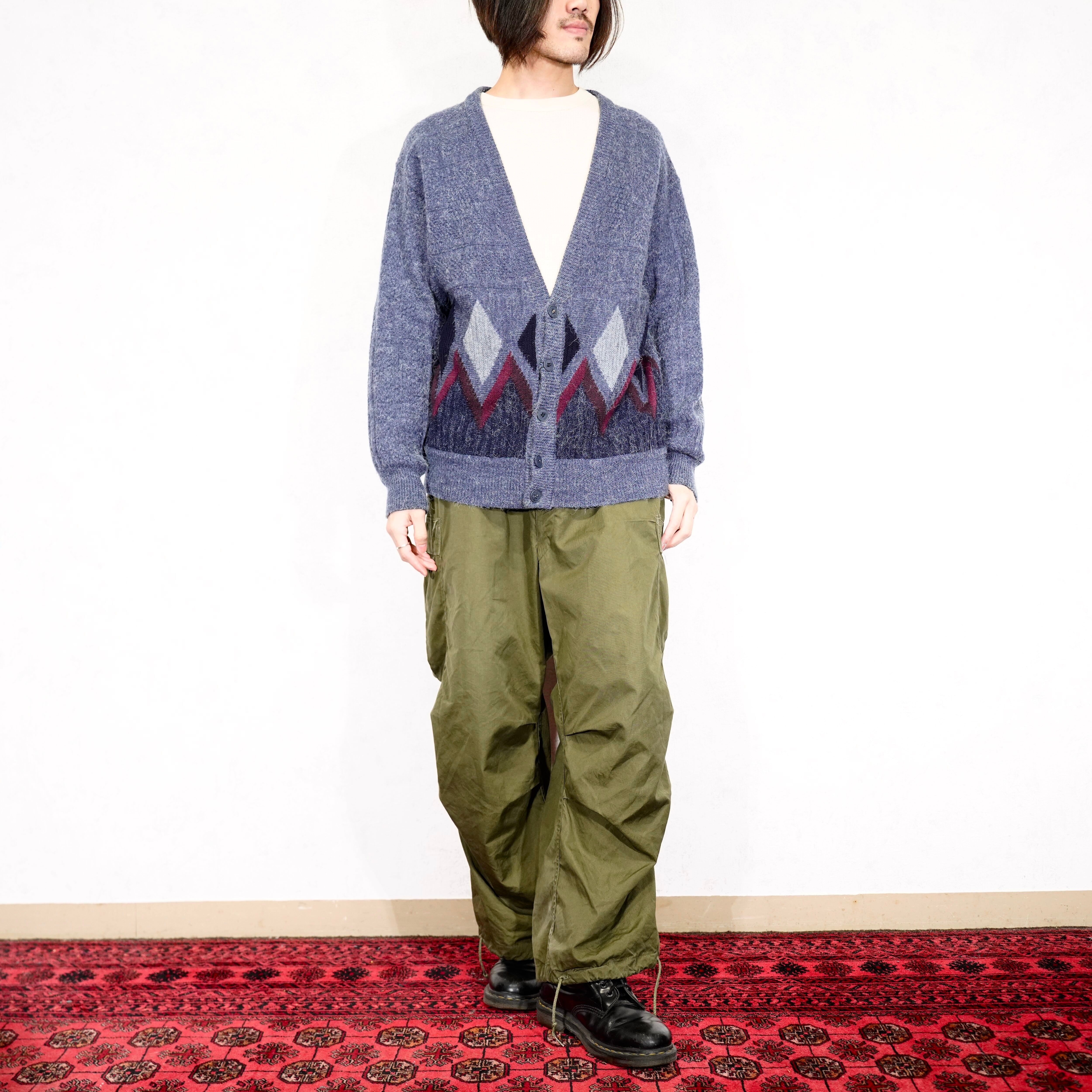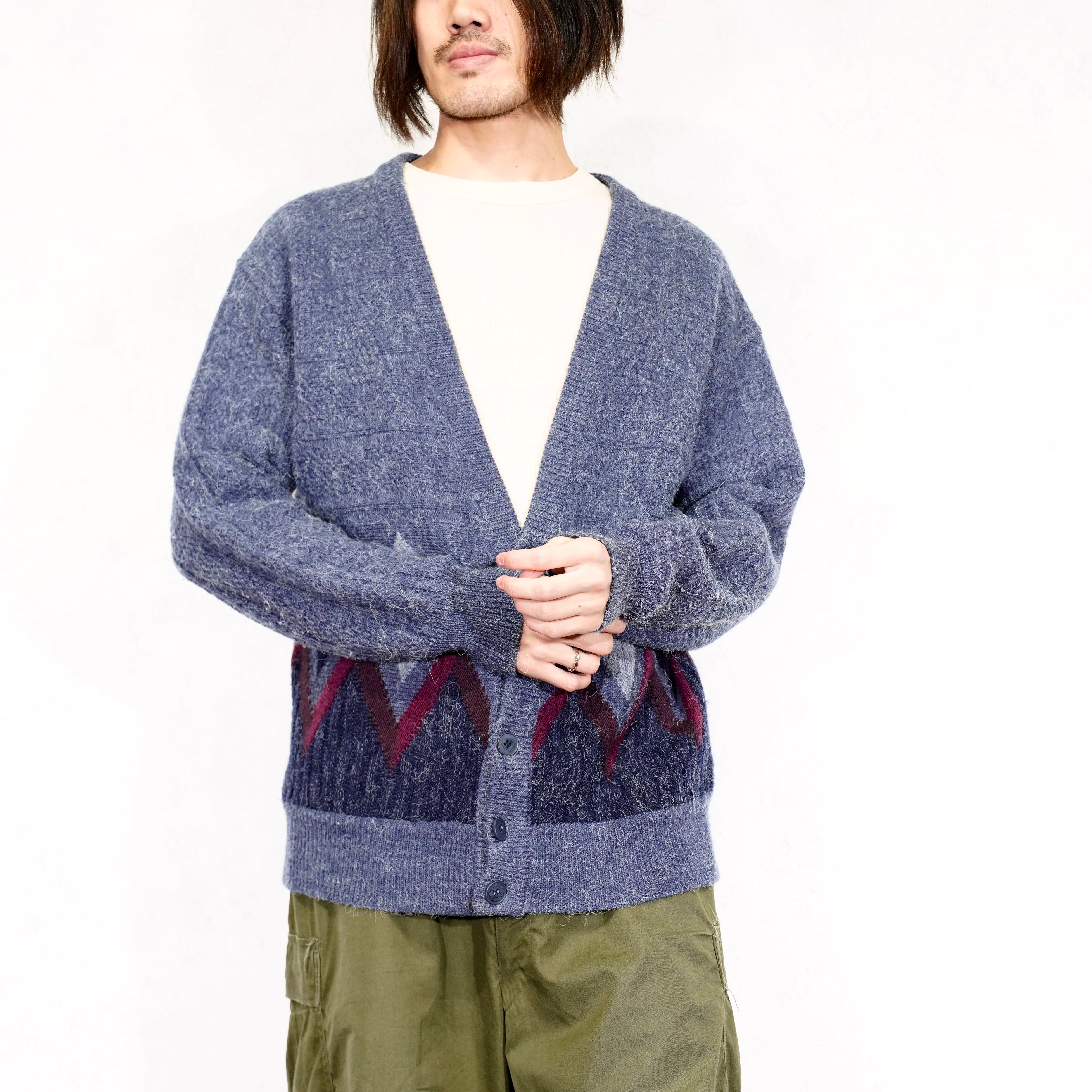 EU VINTAGE BARONI PATTERNED SHAGGY LIKE DESIGN KNIT CARDIGAN/ヨーロッパ古着柄シャギー風デザインニットカーディガン