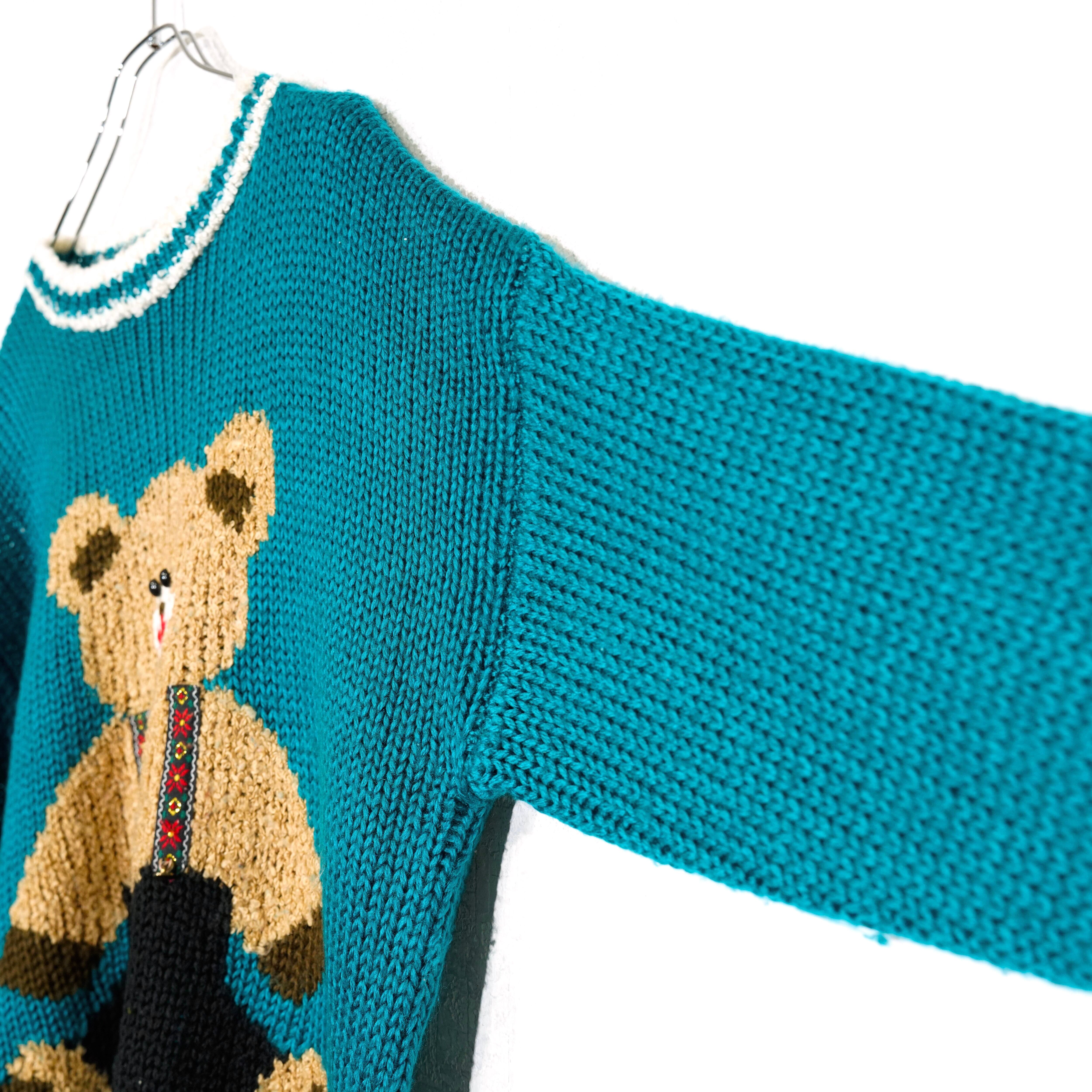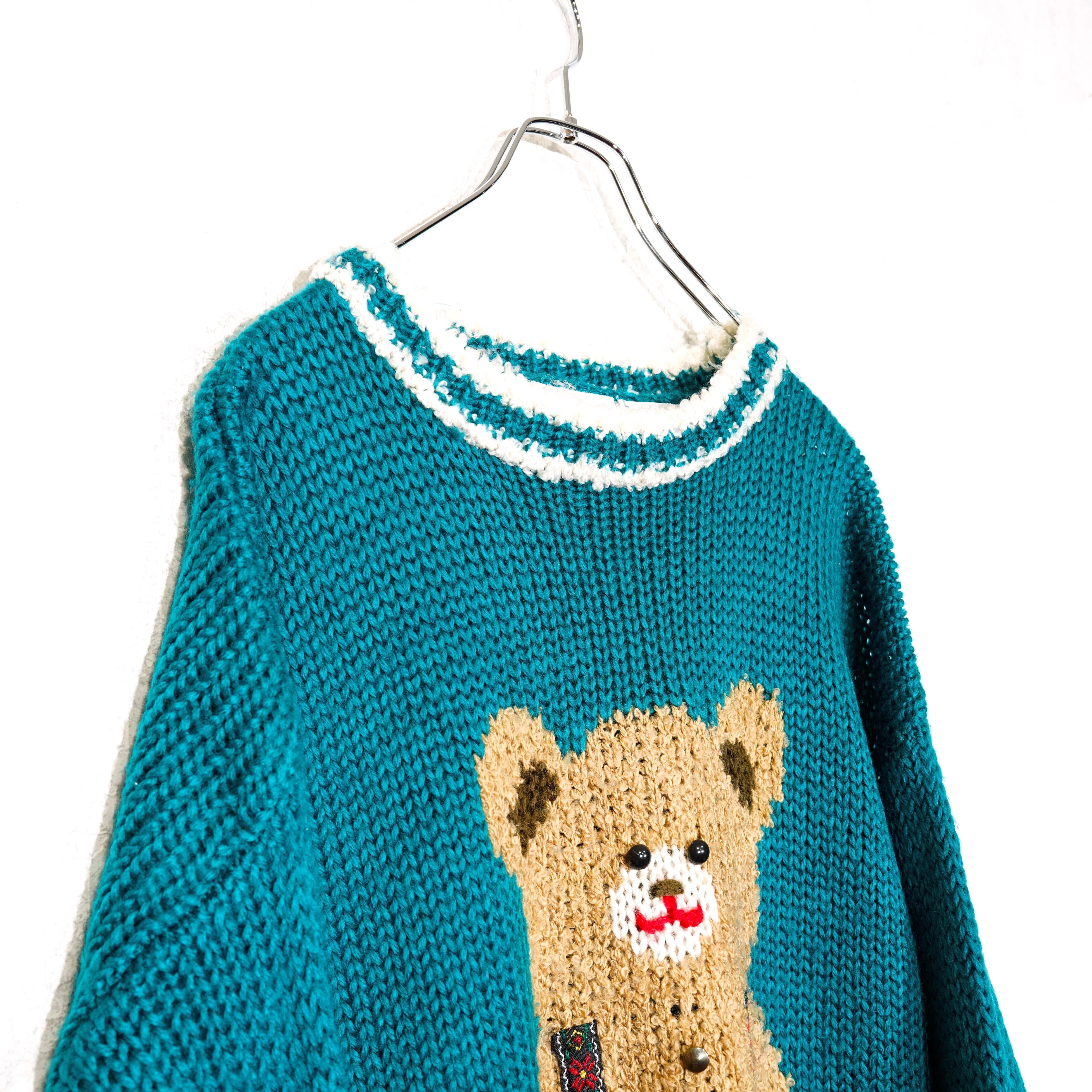 USA VINTAGE E.V.E LTD. knitted by hand TEDDY BEAR DESIGN KNIT/アメリカ古着テディベアデザイン
