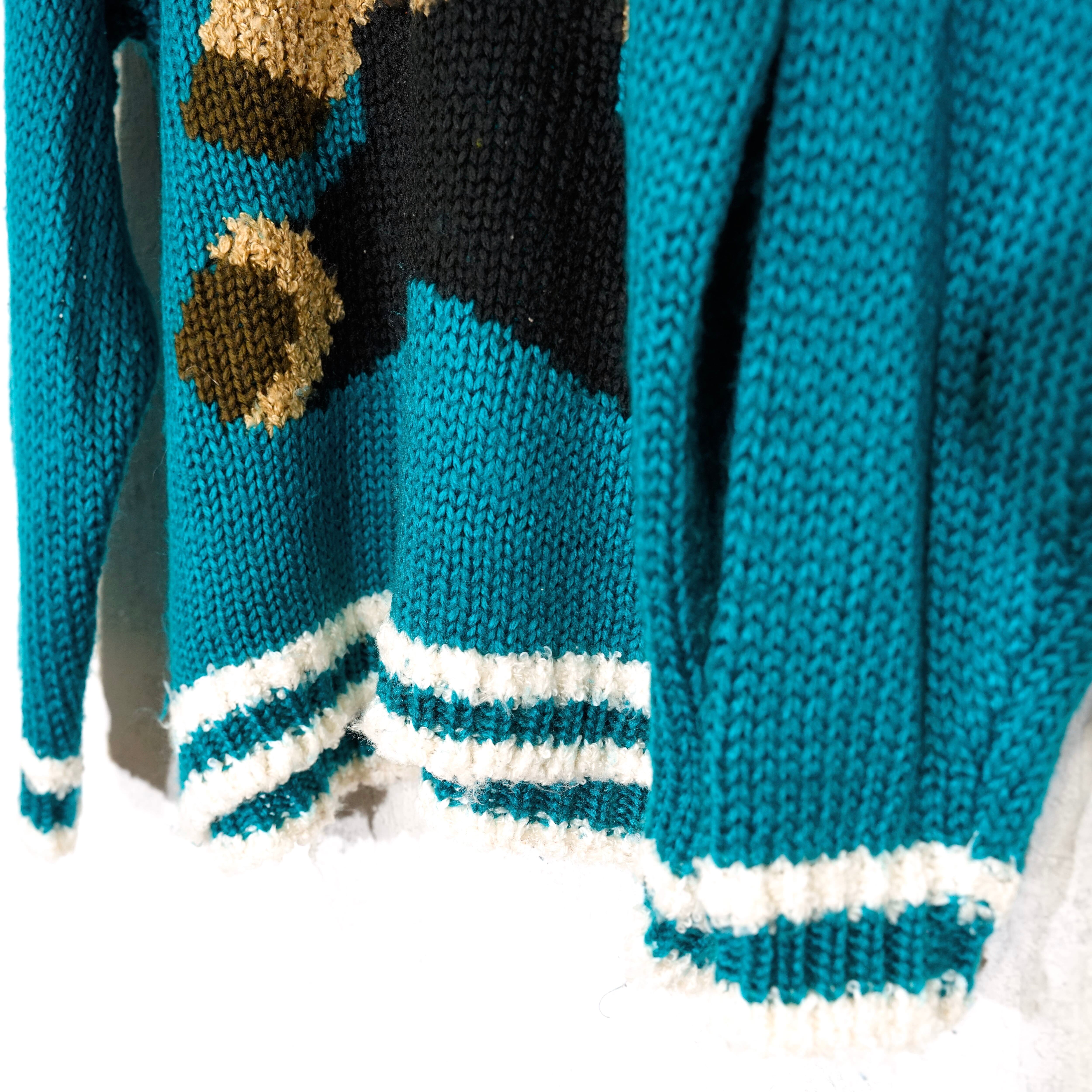 USA VINTAGE E.V.E LTD. knitted by hand TEDDY BEAR DESIGN KNIT/アメリカ古着テディベアデザインニット