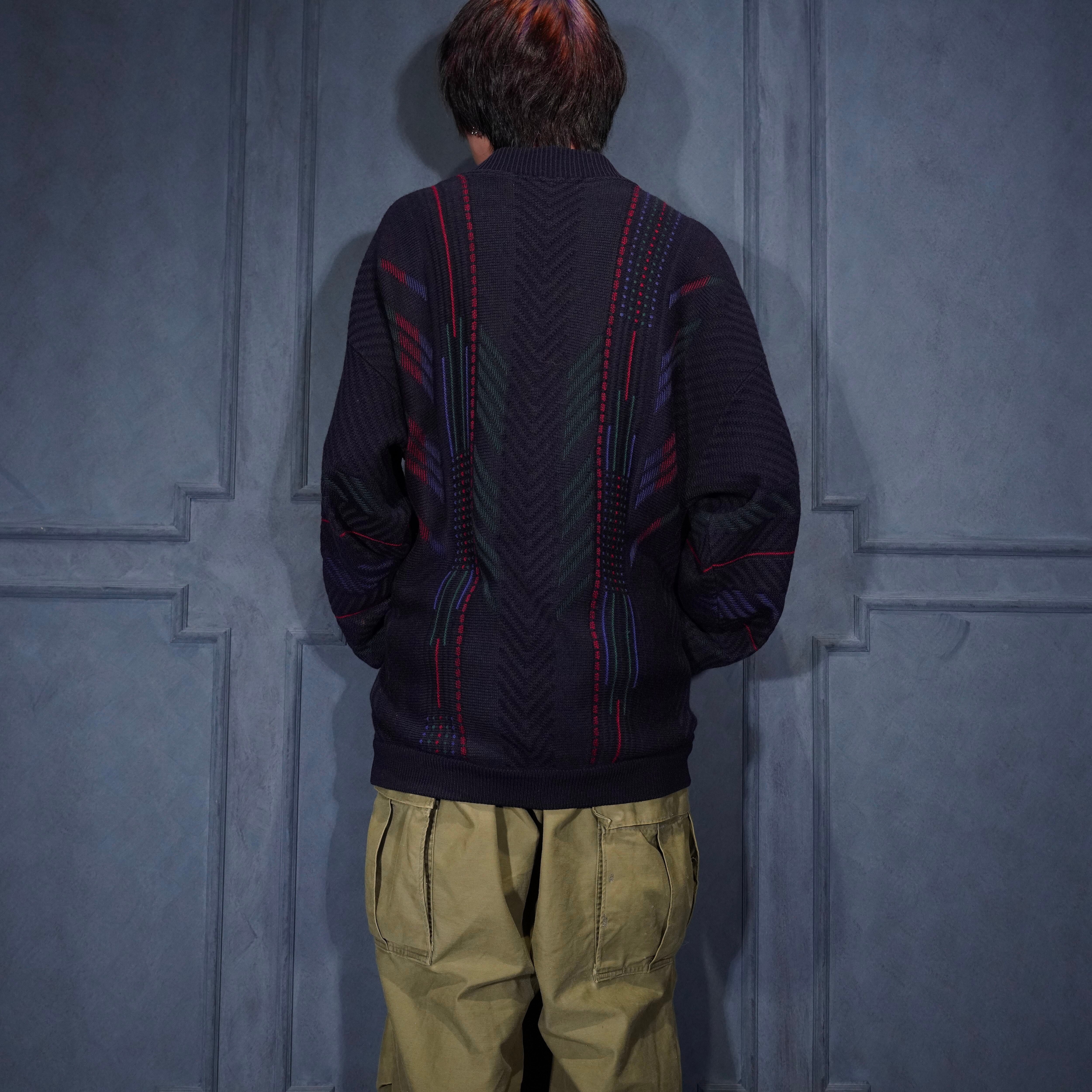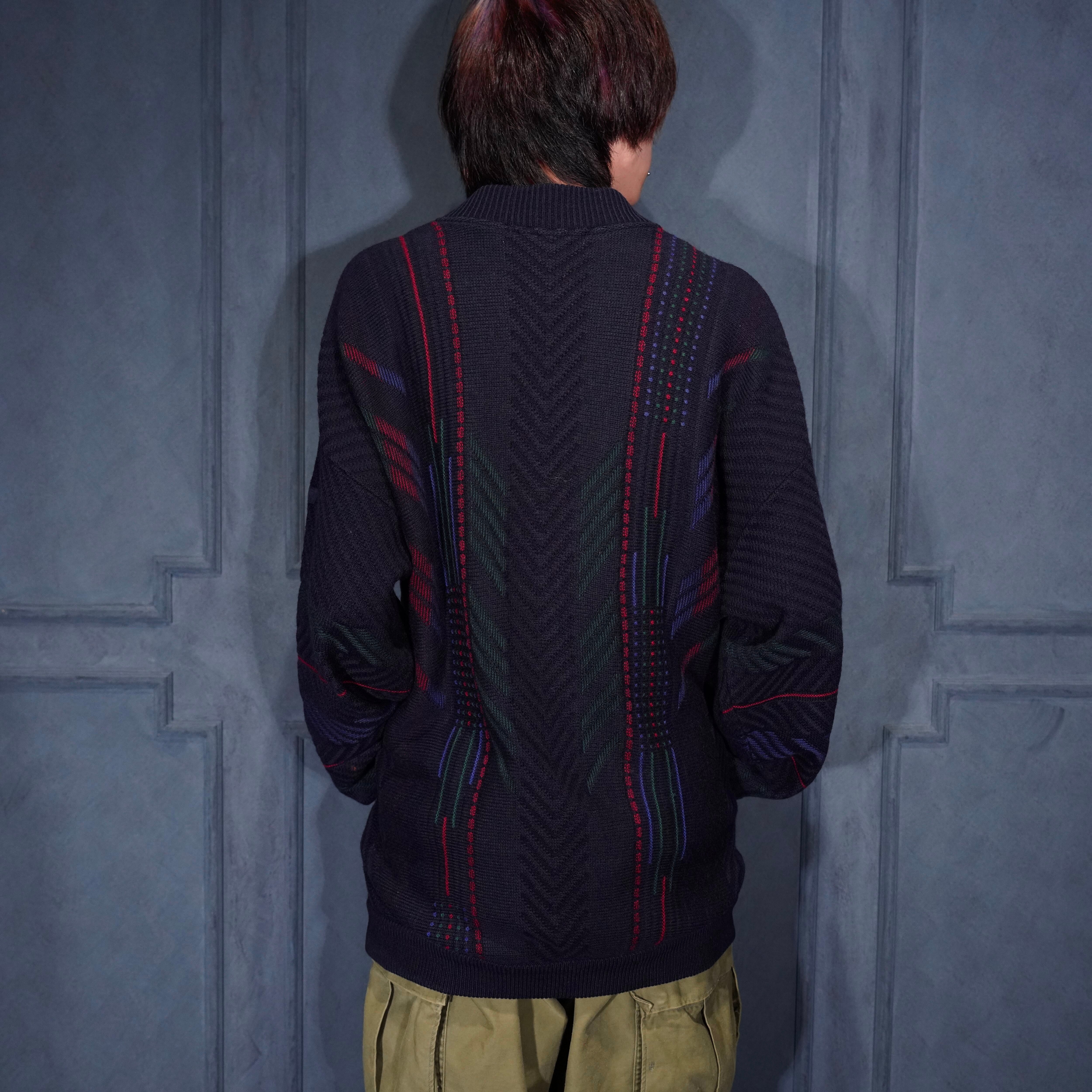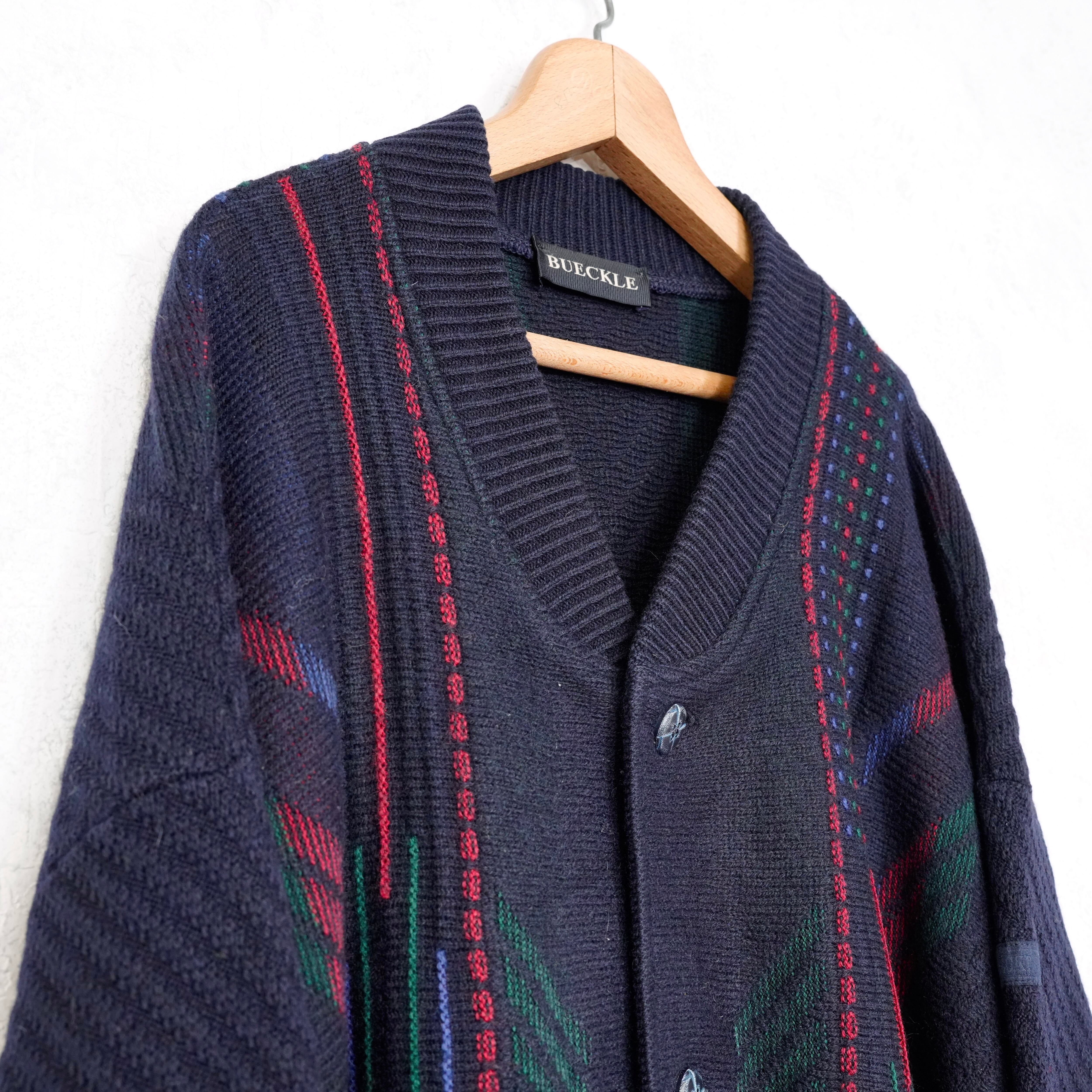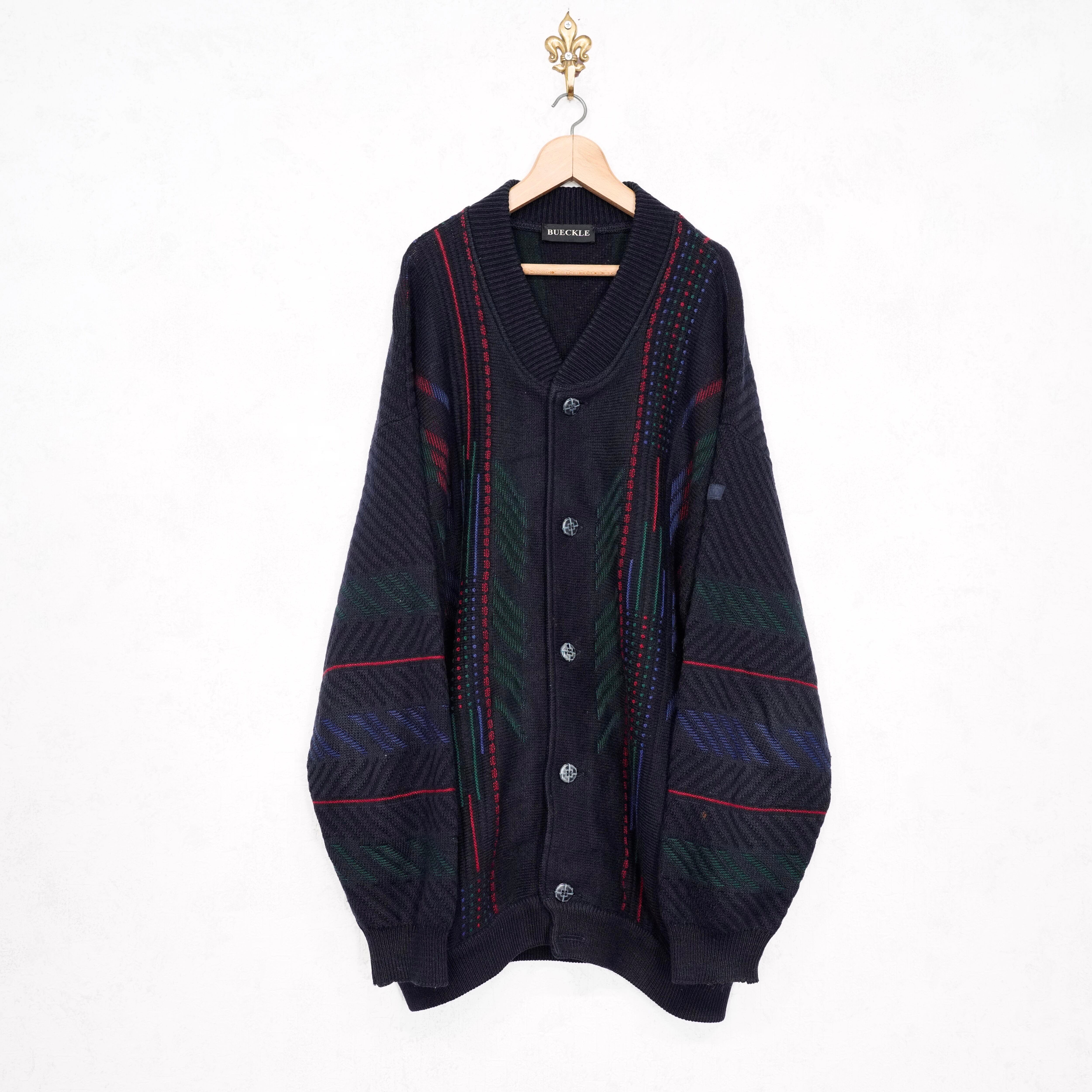 EU VINTAGE BUECKLE LINE DESIGN KNIT JACKET/ヨーロッパ古着ラインデザインニットジャケット