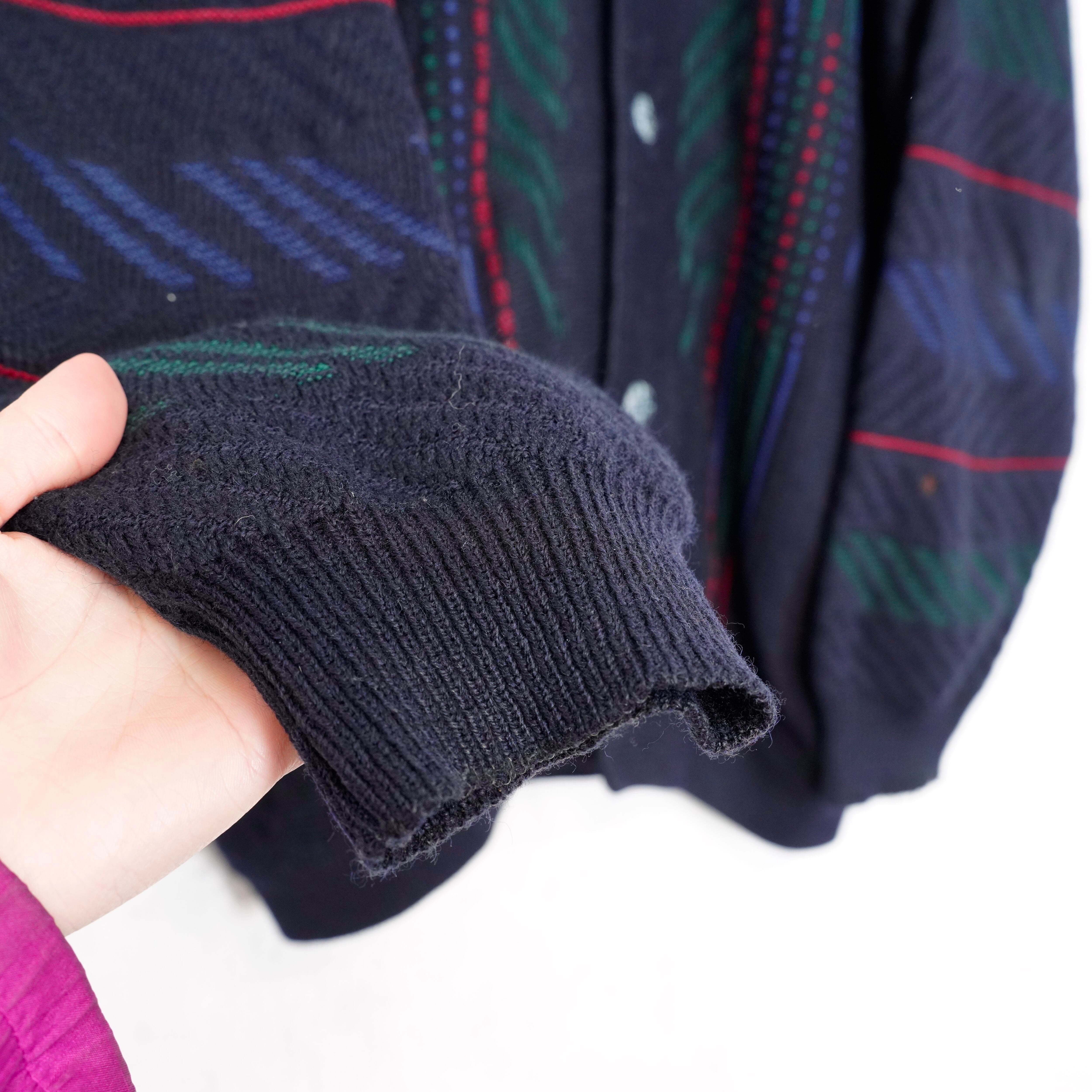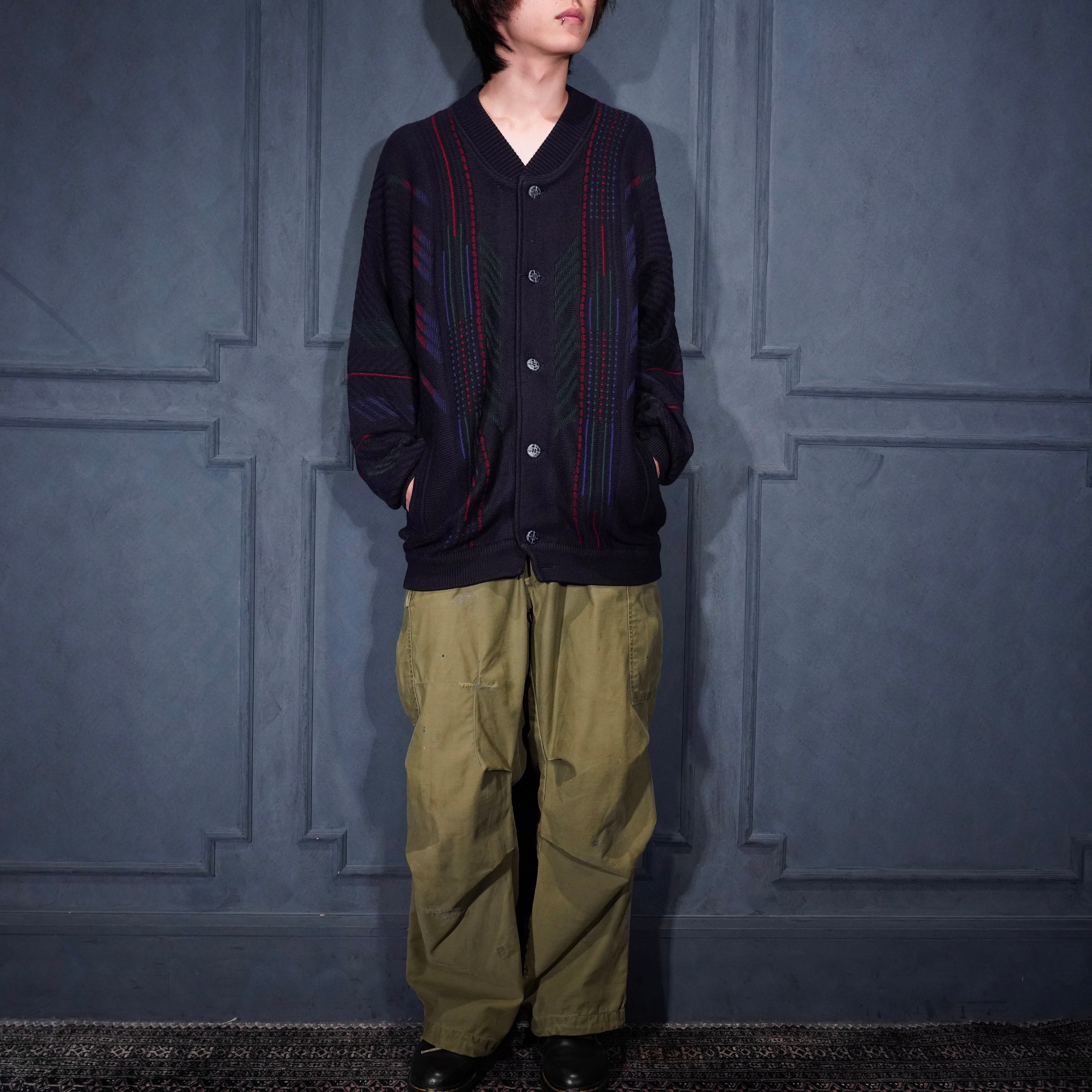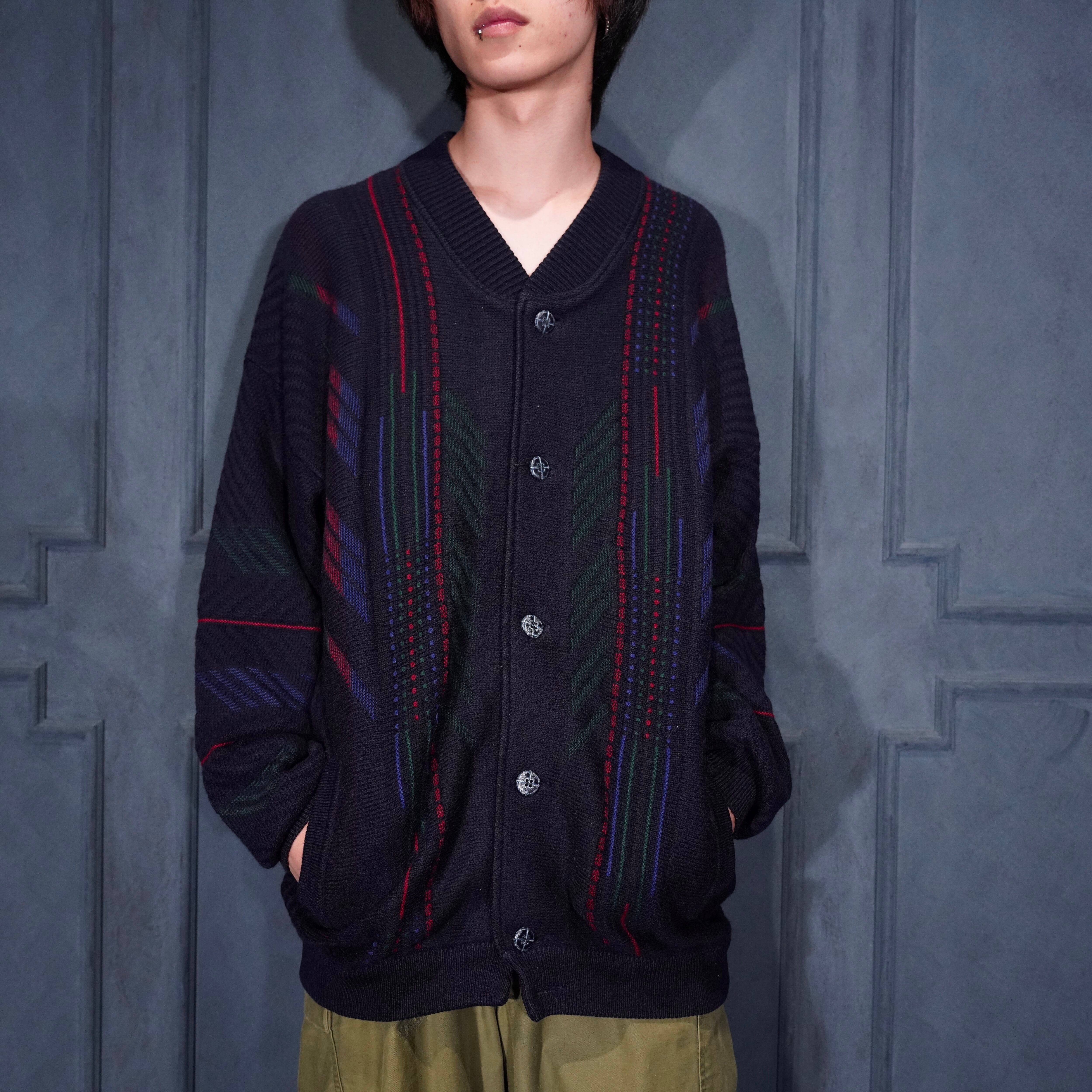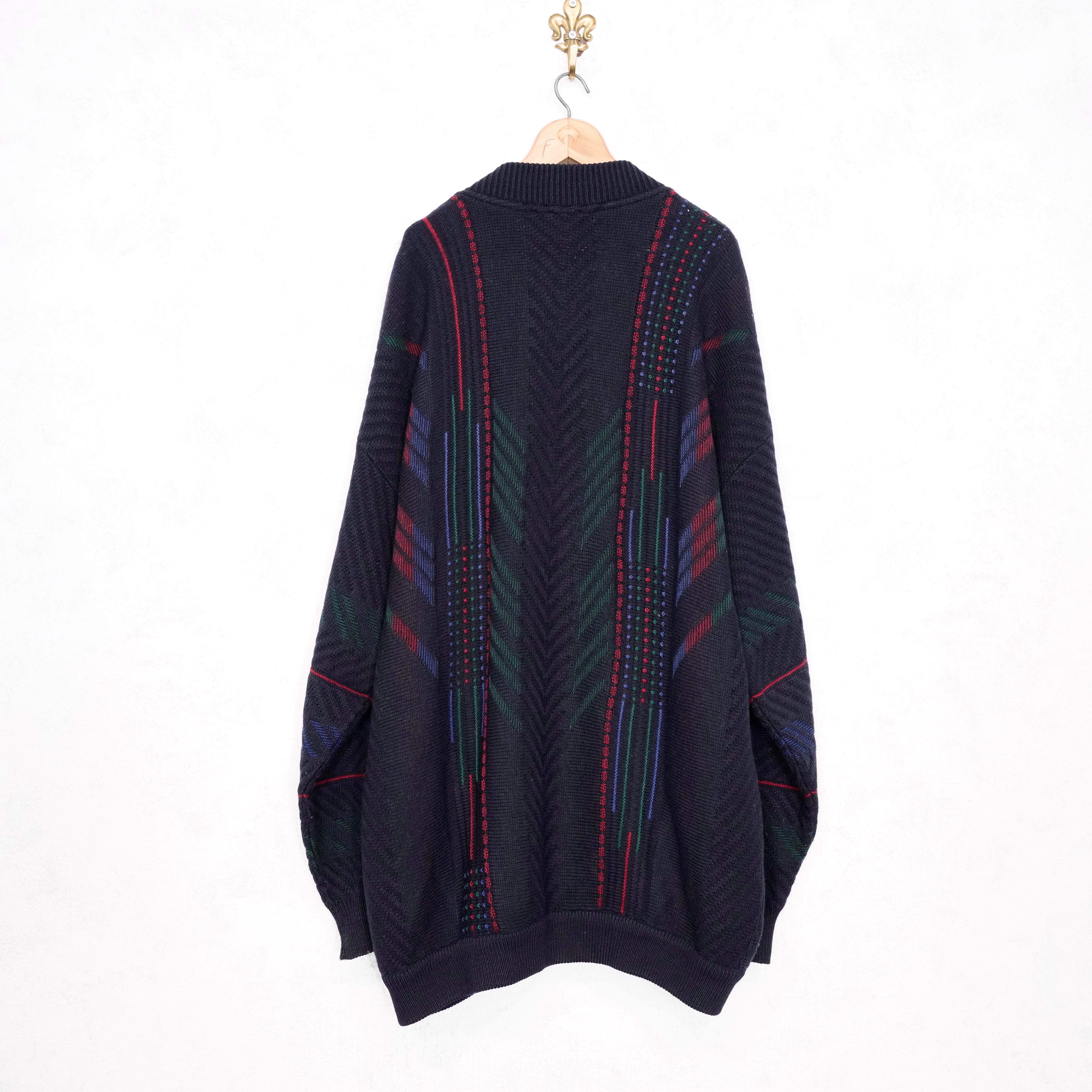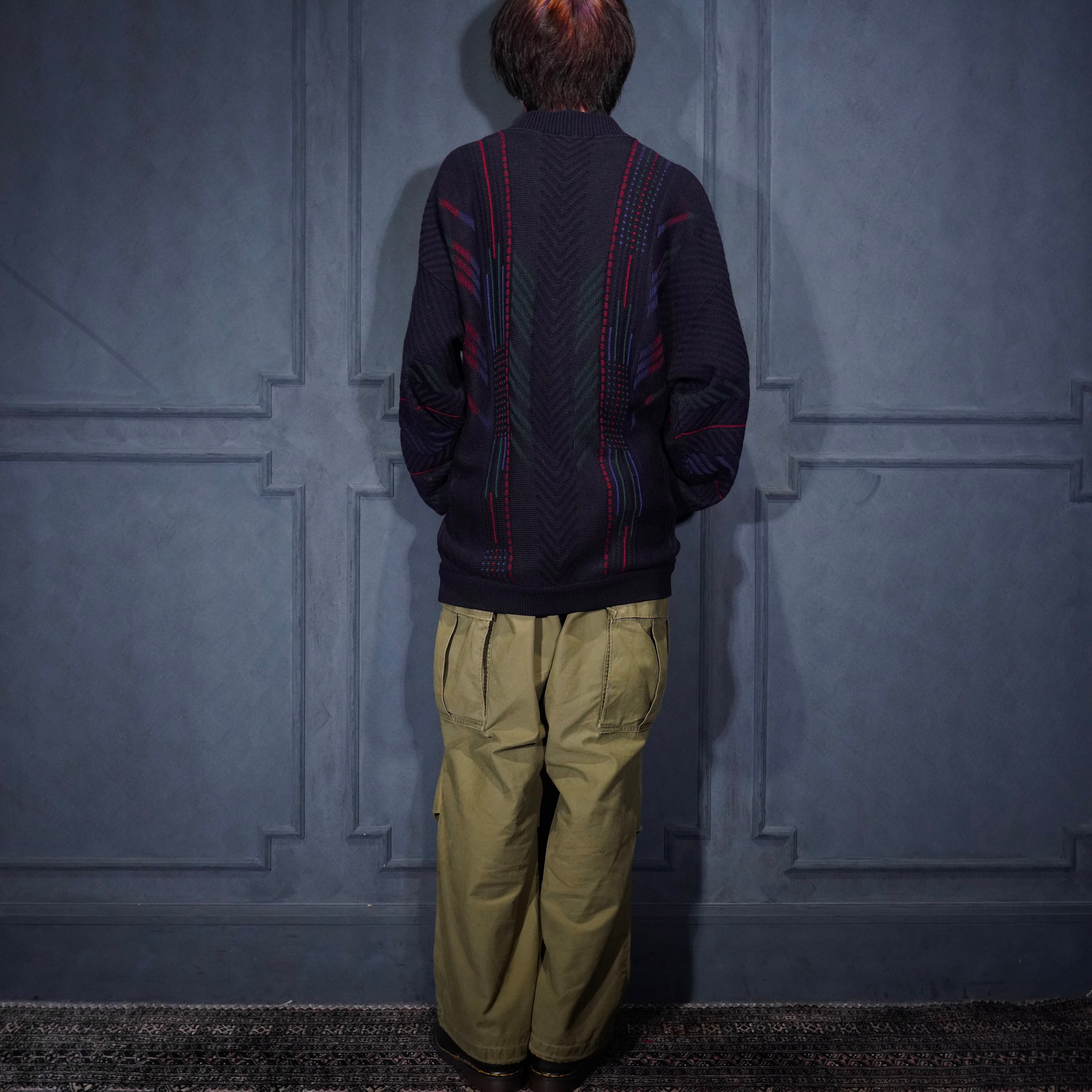 EU VINTAGE BUECKLE LINE DESIGN KNIT JACKET/ヨーロッパ古着ラインデザインニットジャケット