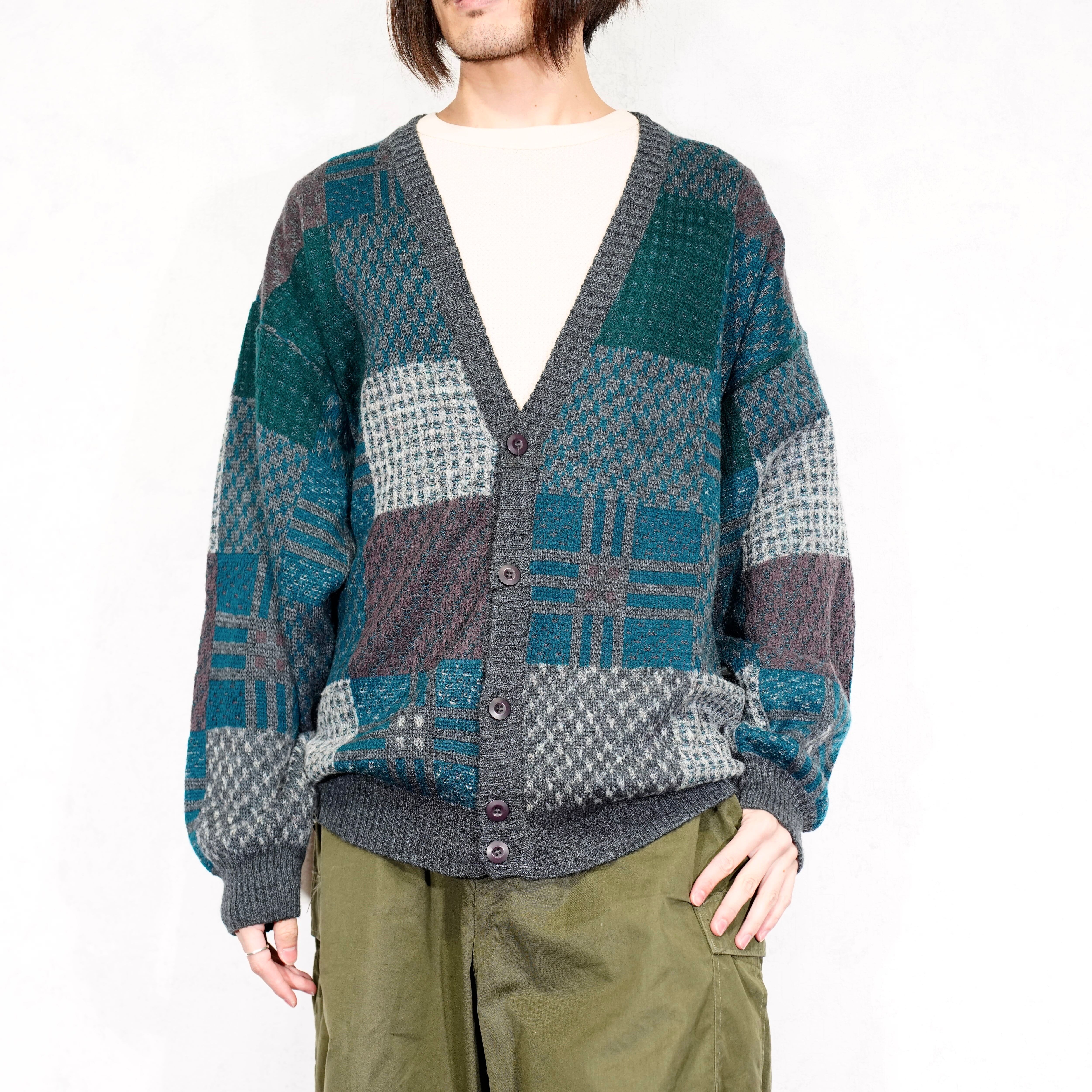EU VINTAGE angelo litrico RETRO PATTERNED DESIGN KNIT CARDIGAN/ヨーロッパ古着レトロ柄デザインニットカーディガン
