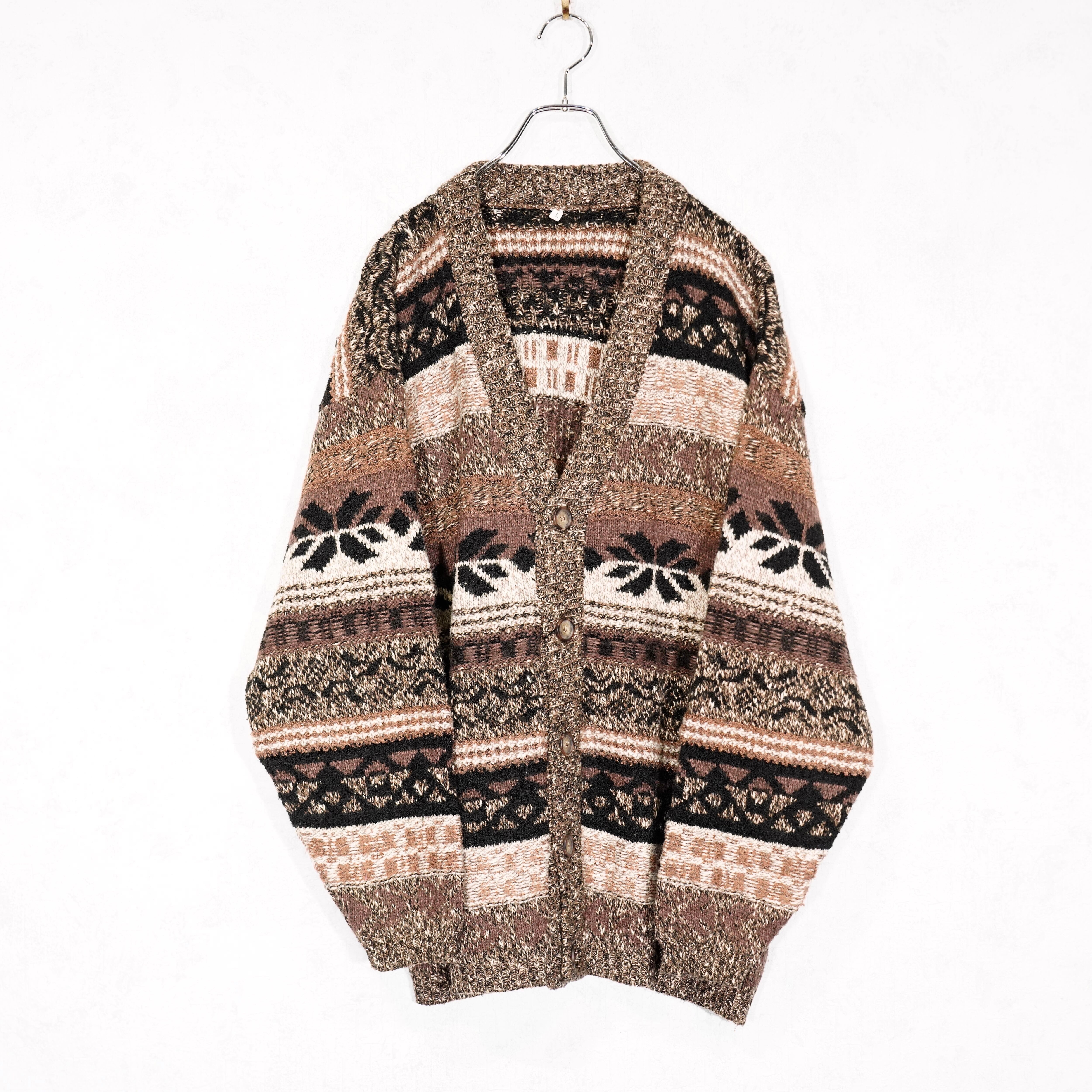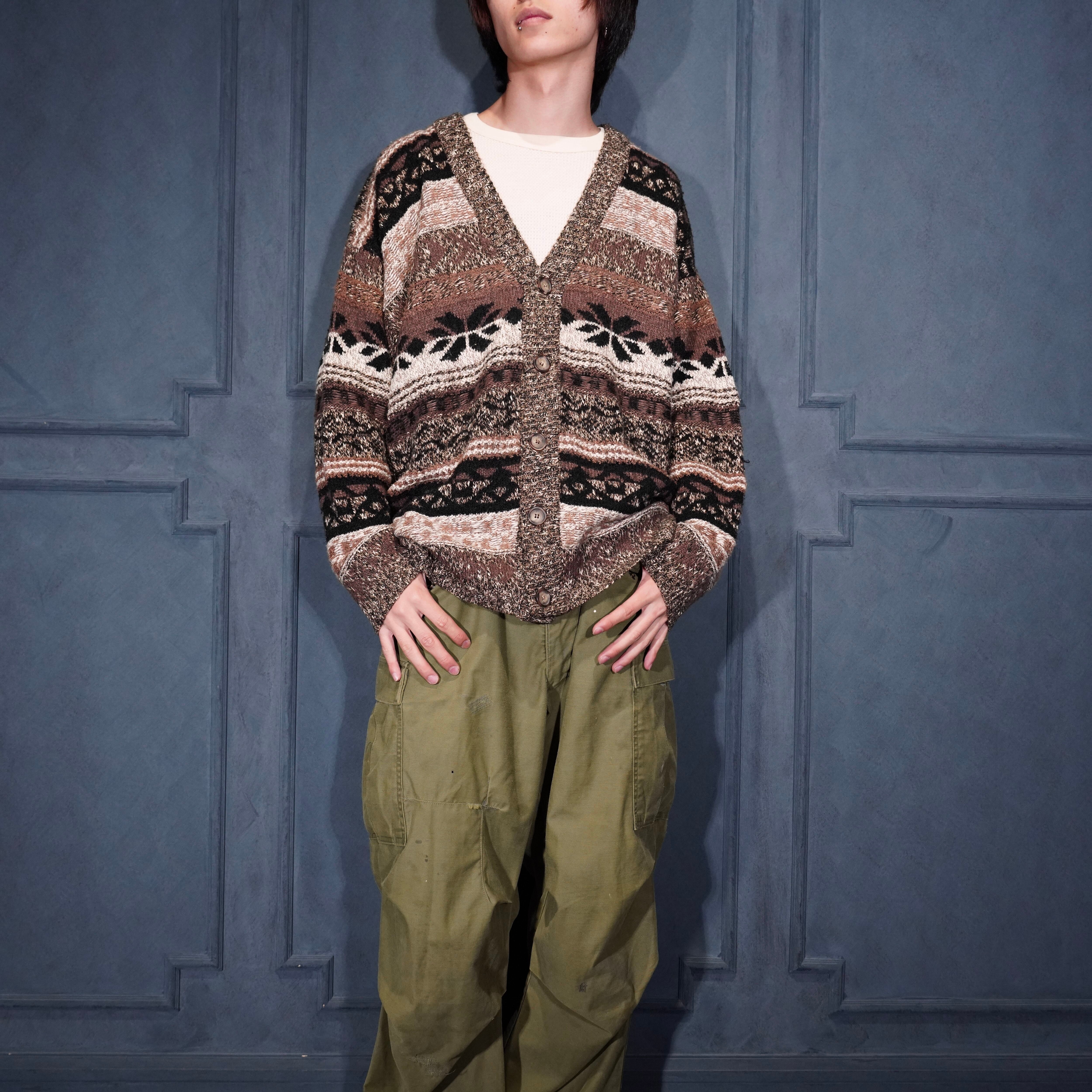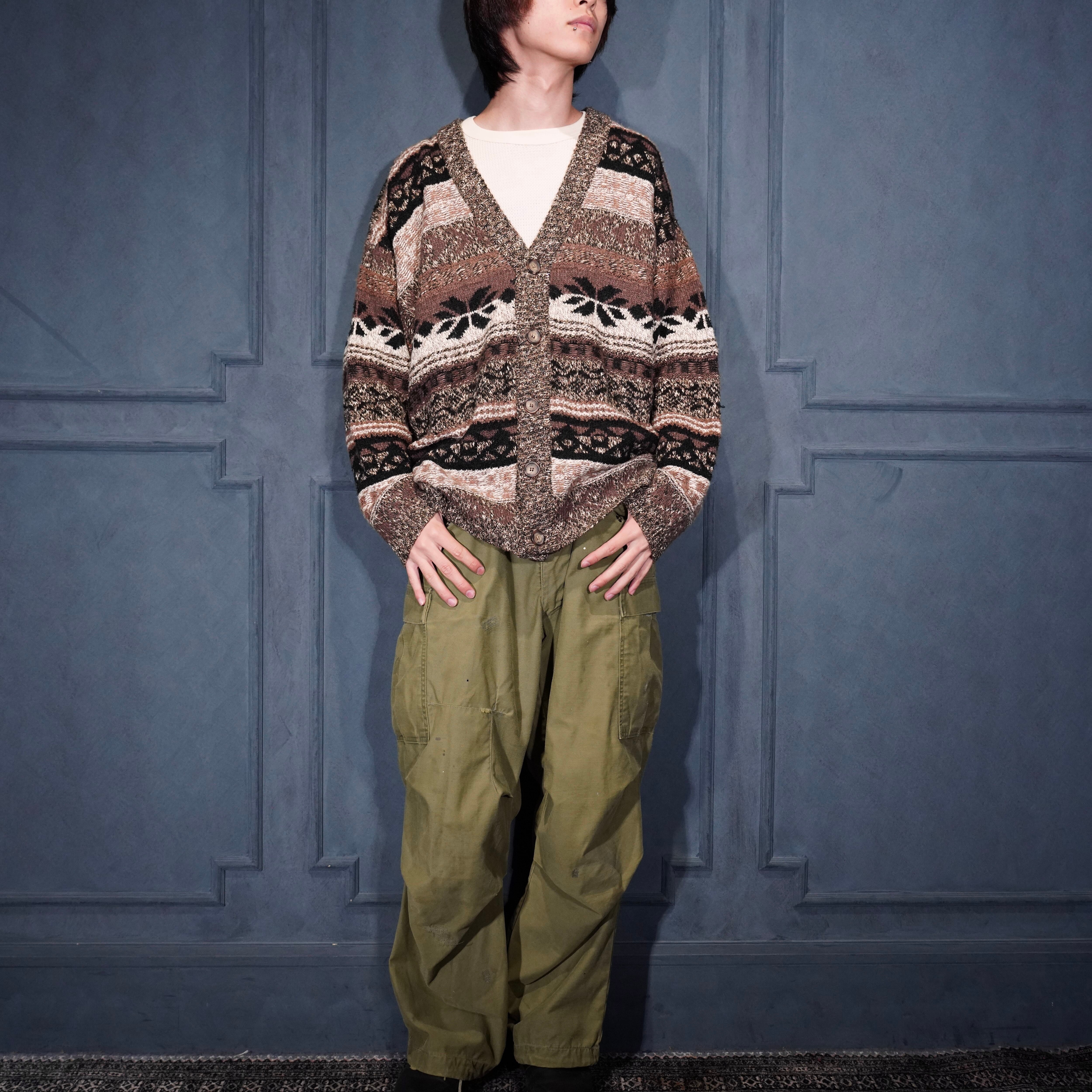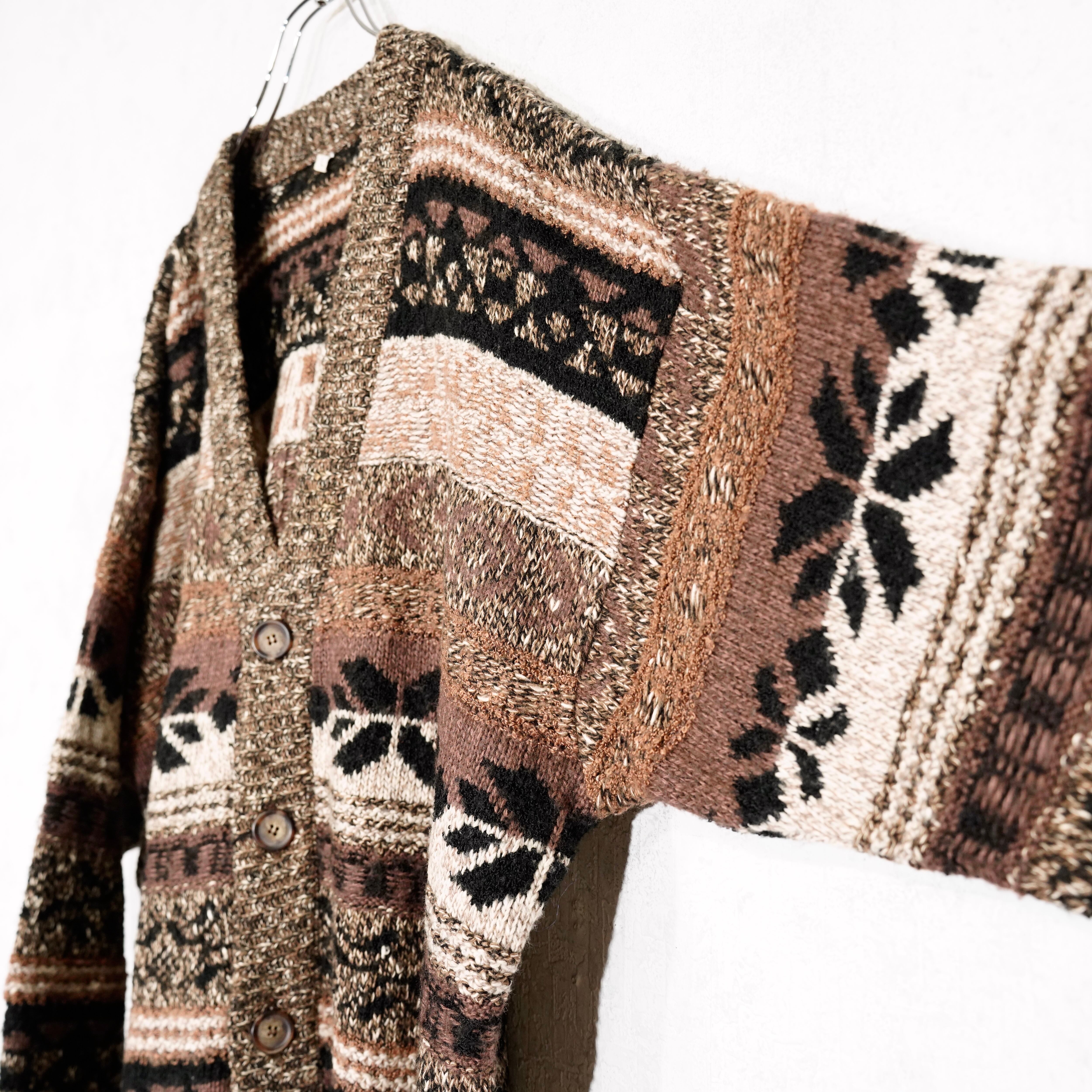 EU VINTAGE FAIRISLE PATTERNED WOVEN DESIGN KNIT CARDIGAN/ヨーロッパ古着フェアアイル柄織デザインニットカーディガン