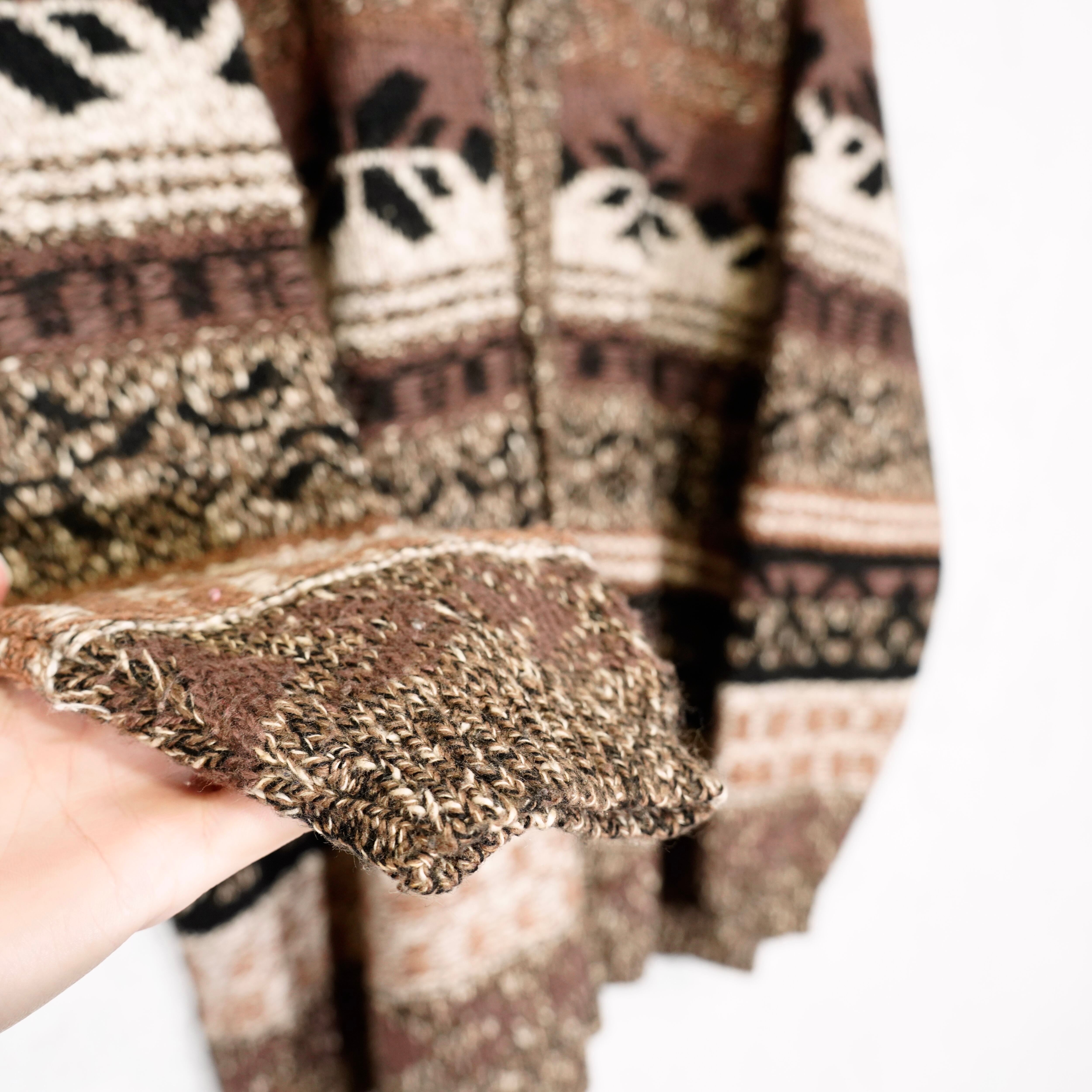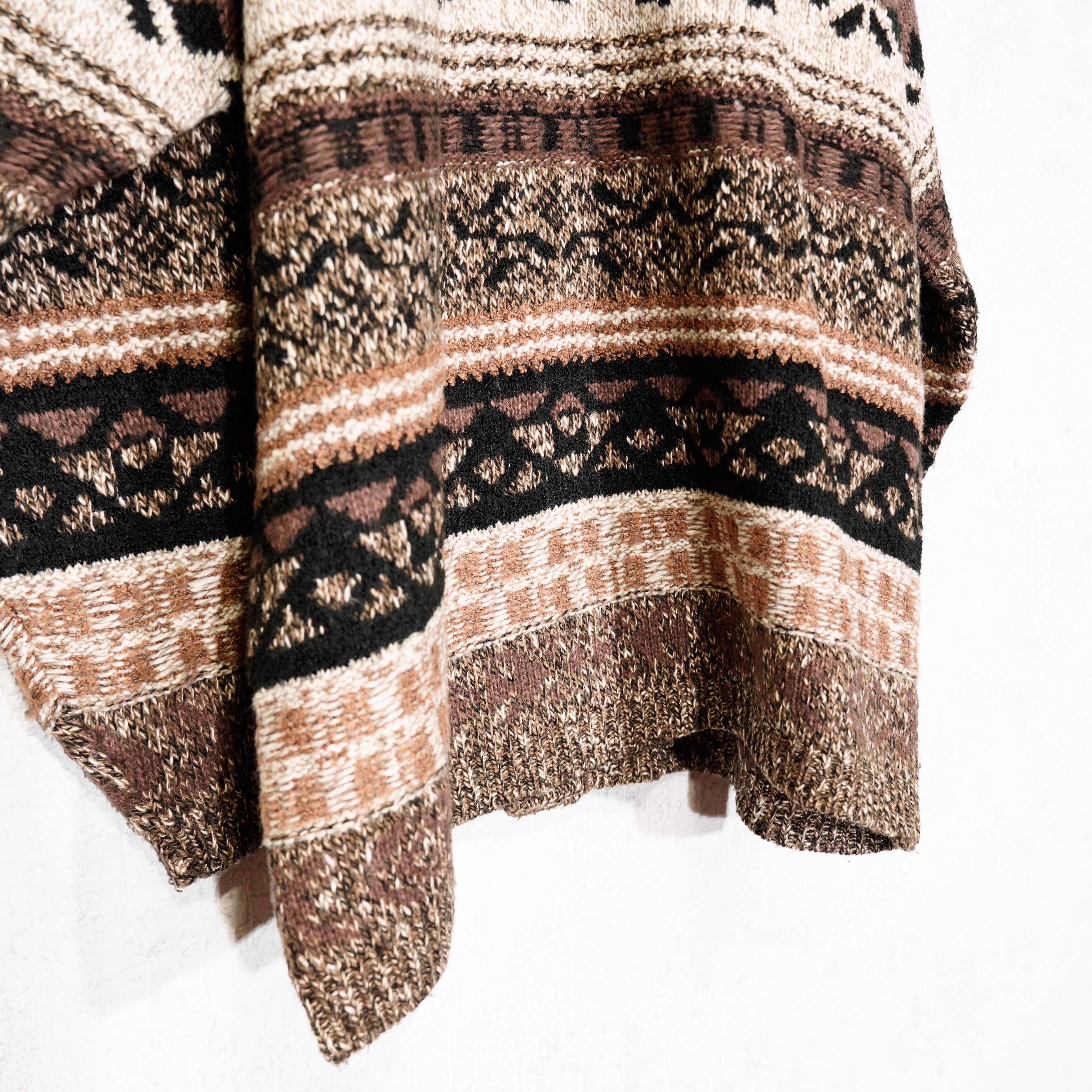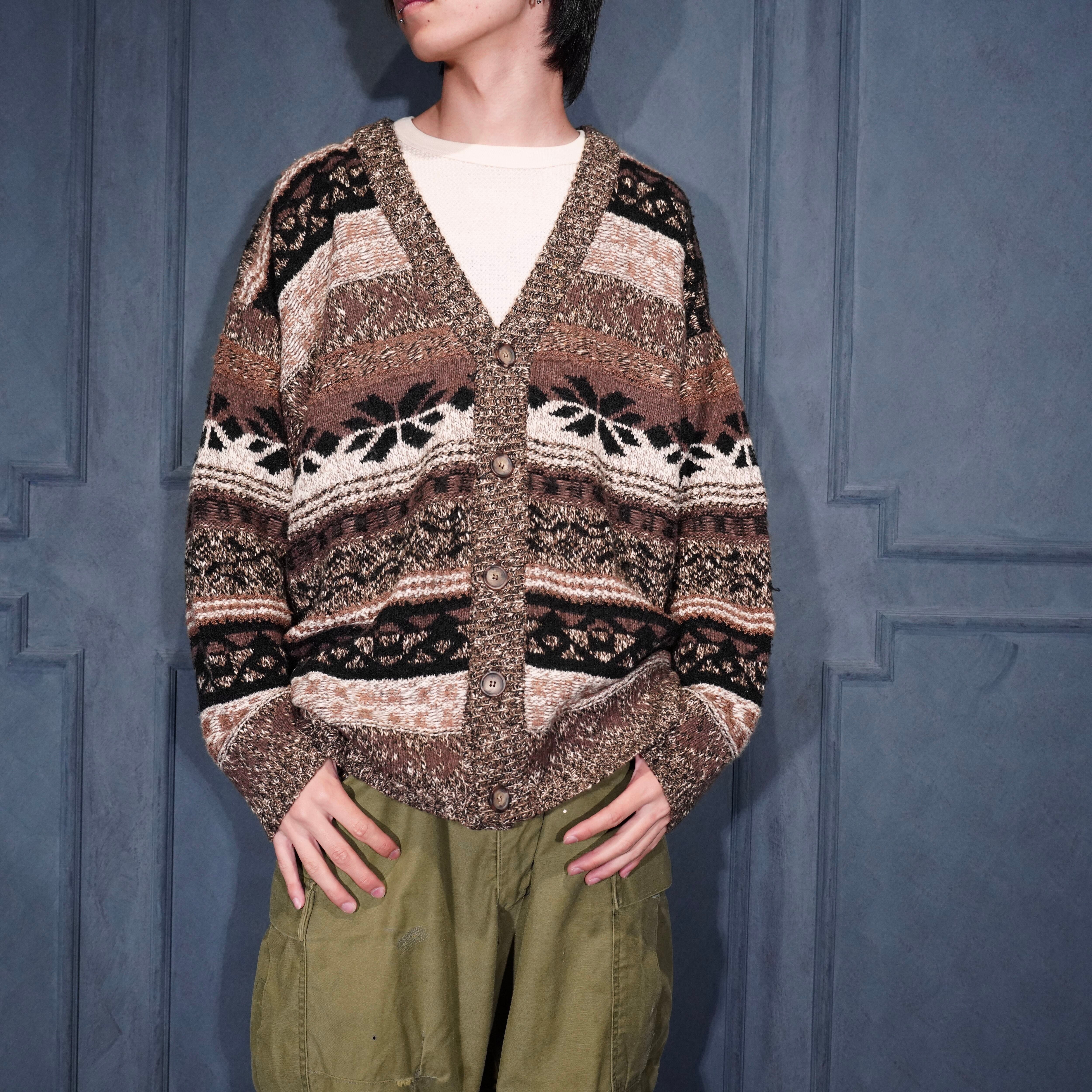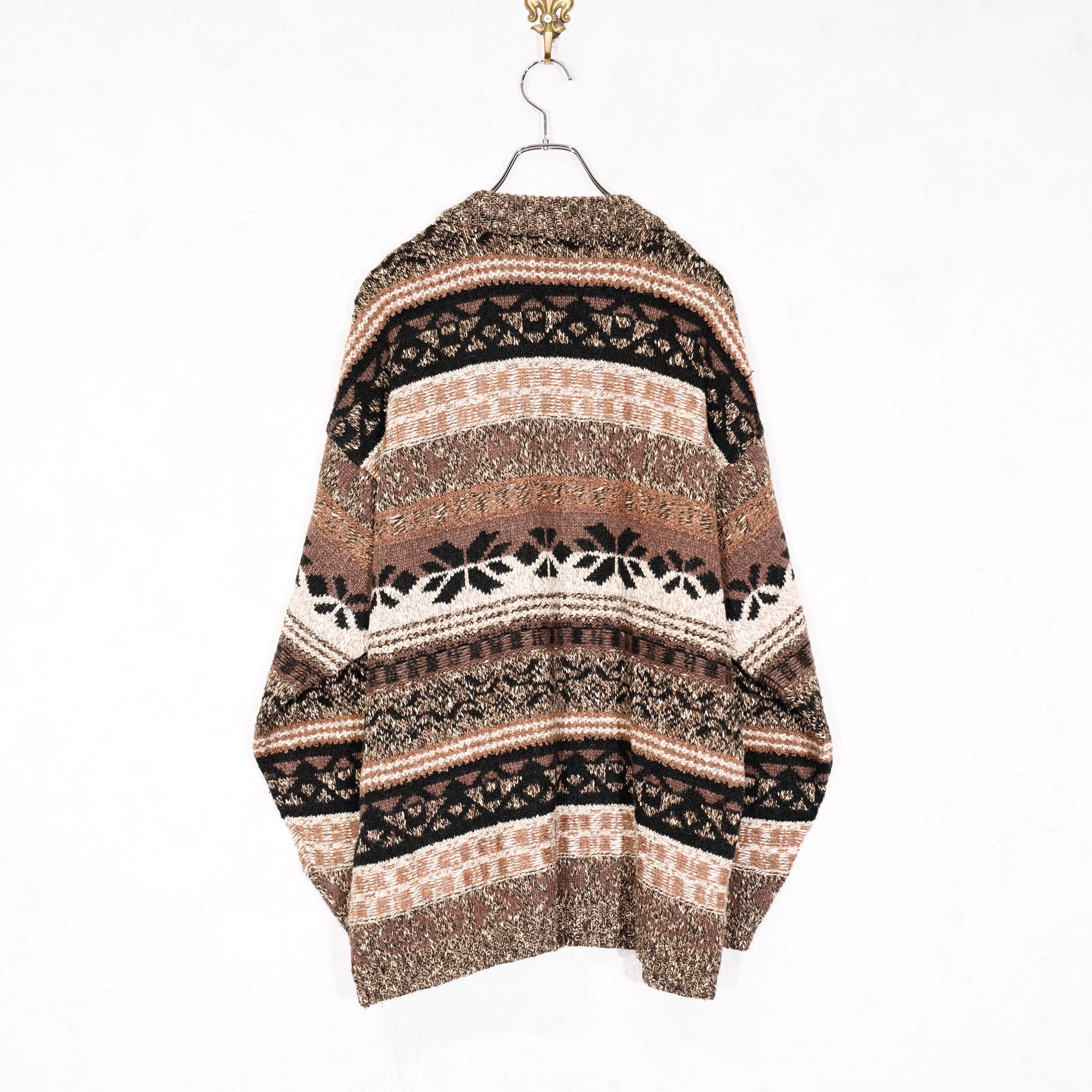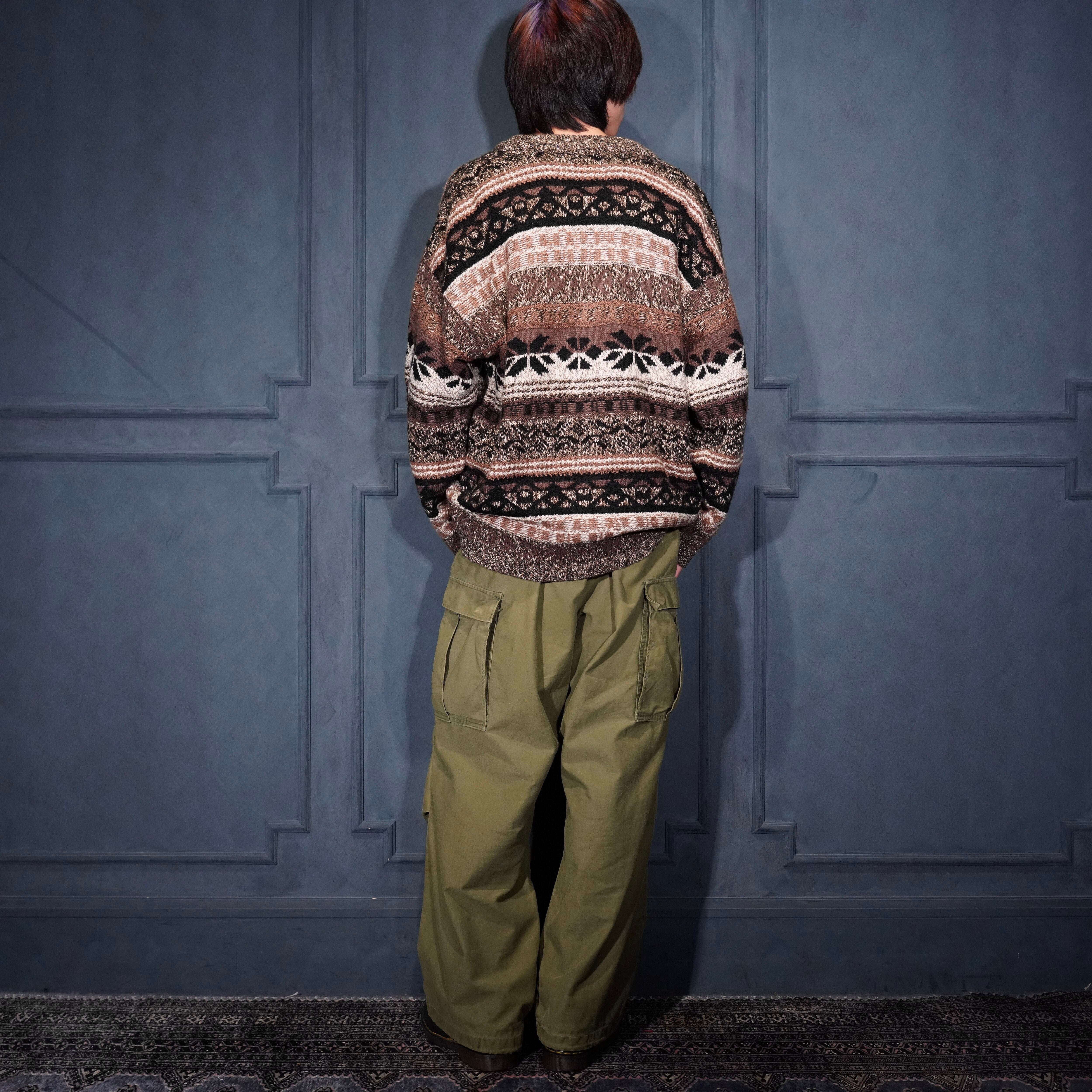 EU VINTAGE FAIRISLE PATTERNED WOVEN DESIGN KNIT CARDIGAN/ヨーロッパ古着フェアアイル柄織デザインニットカーディガン