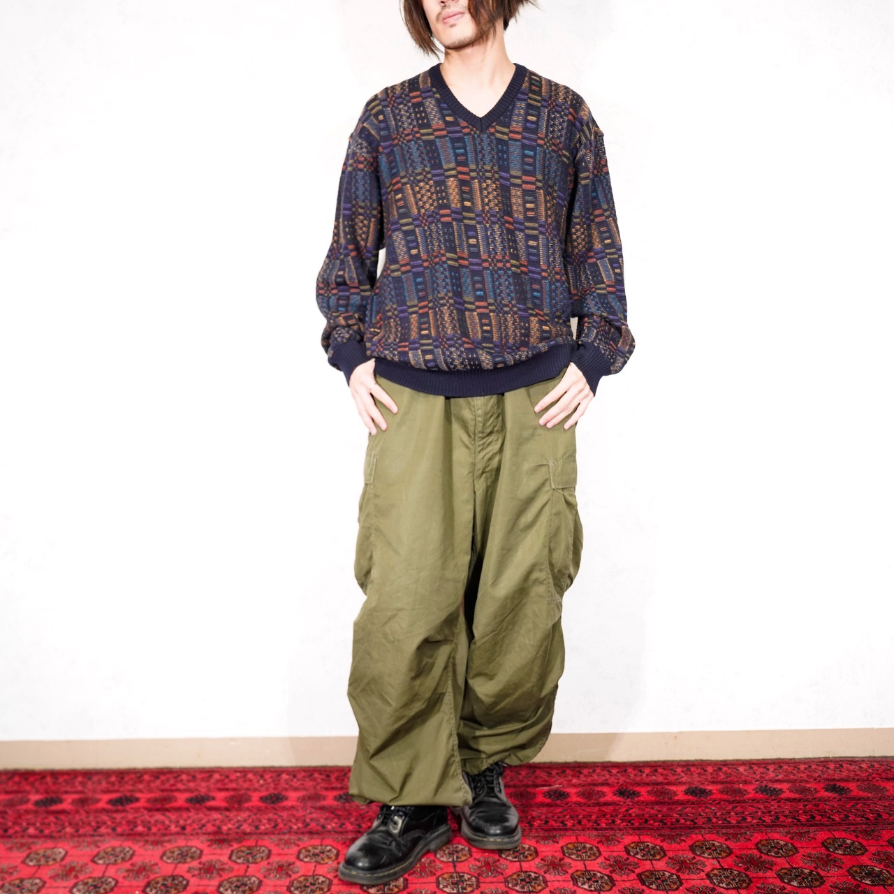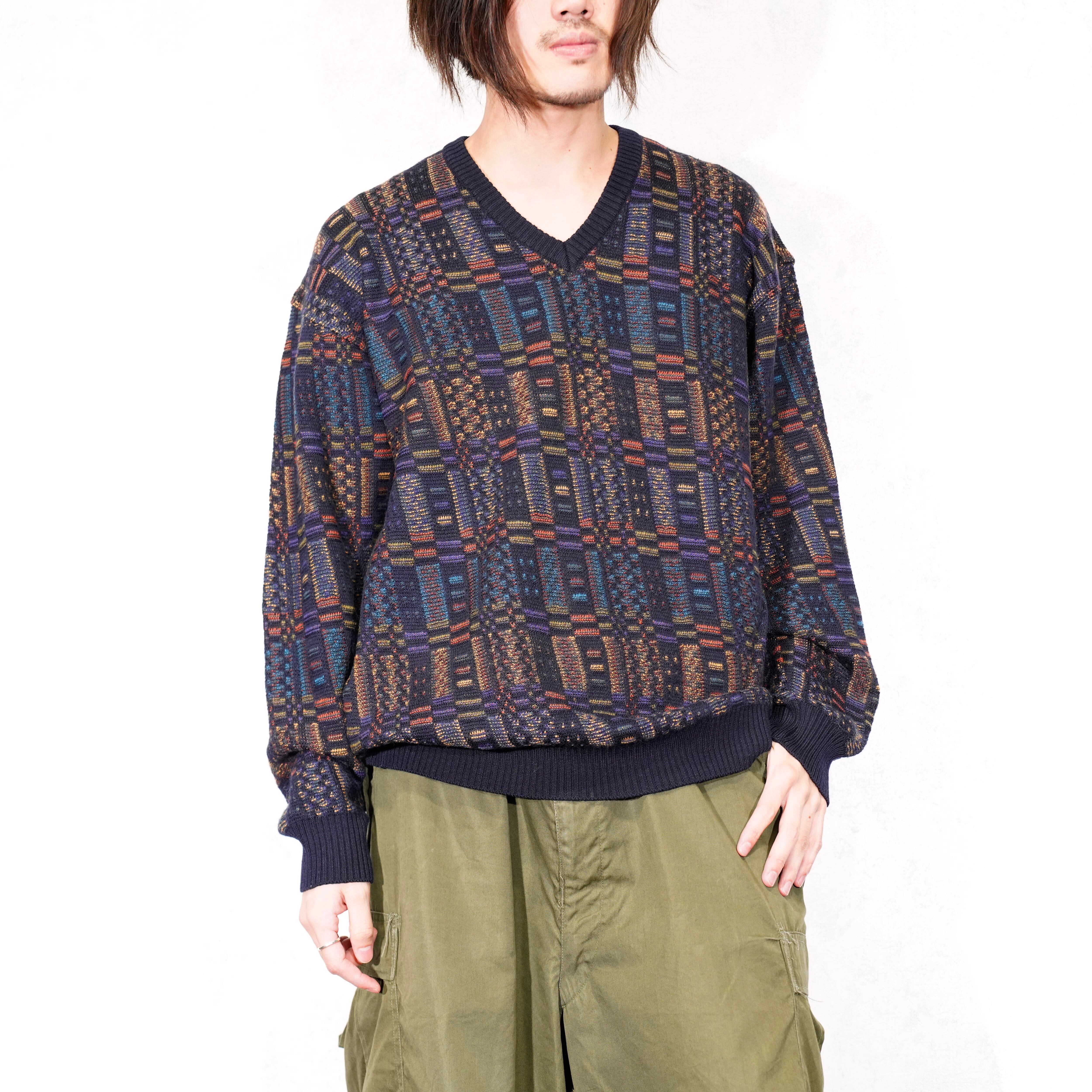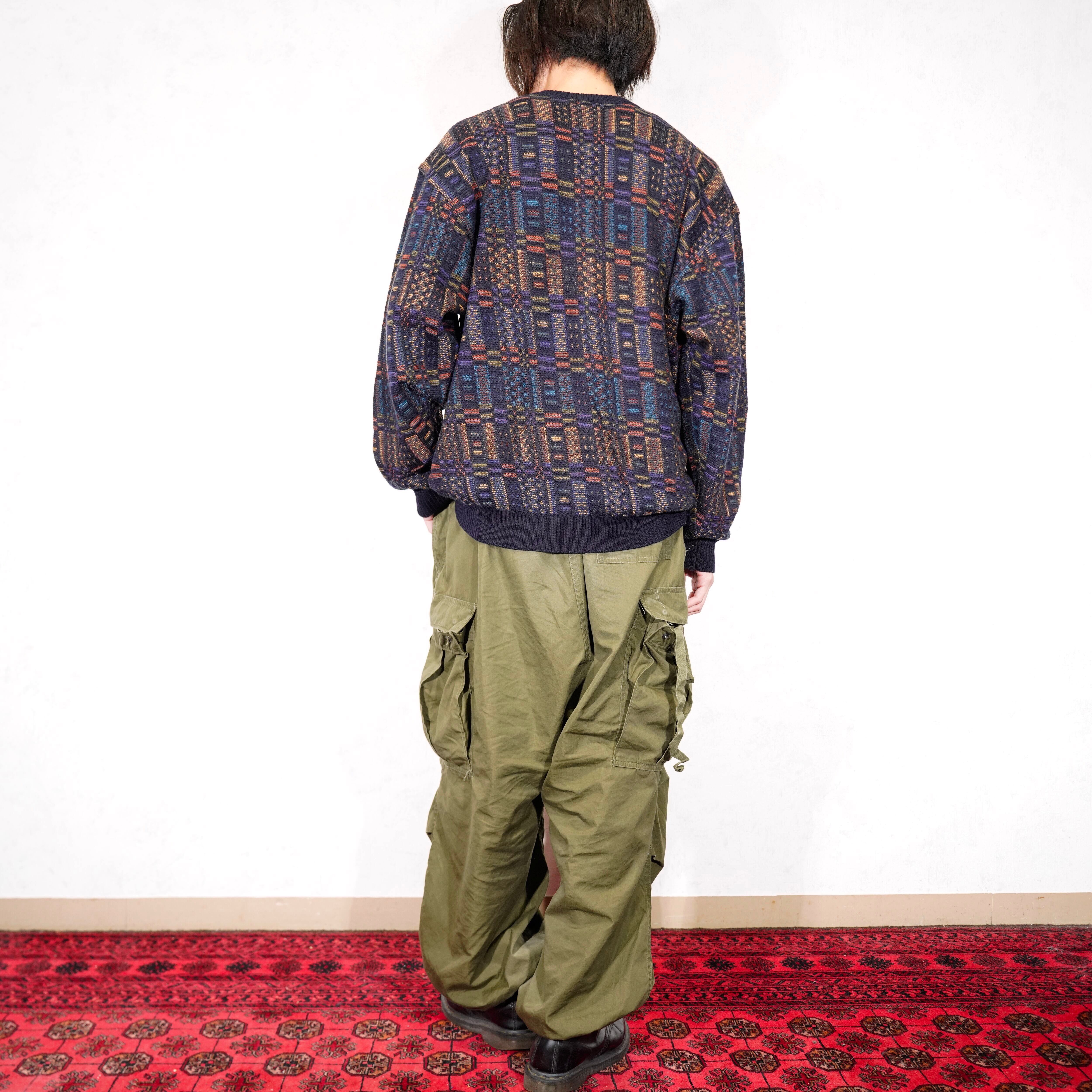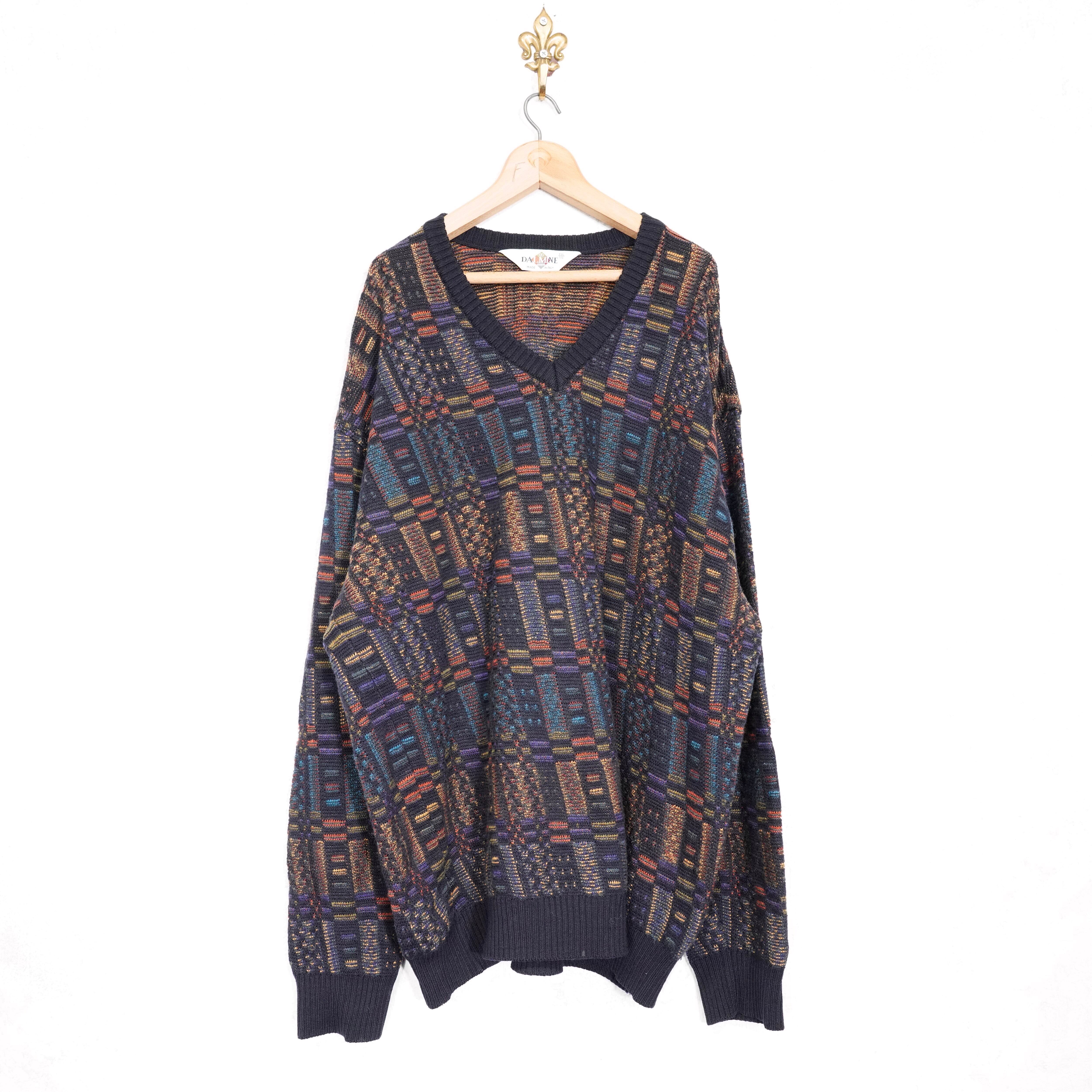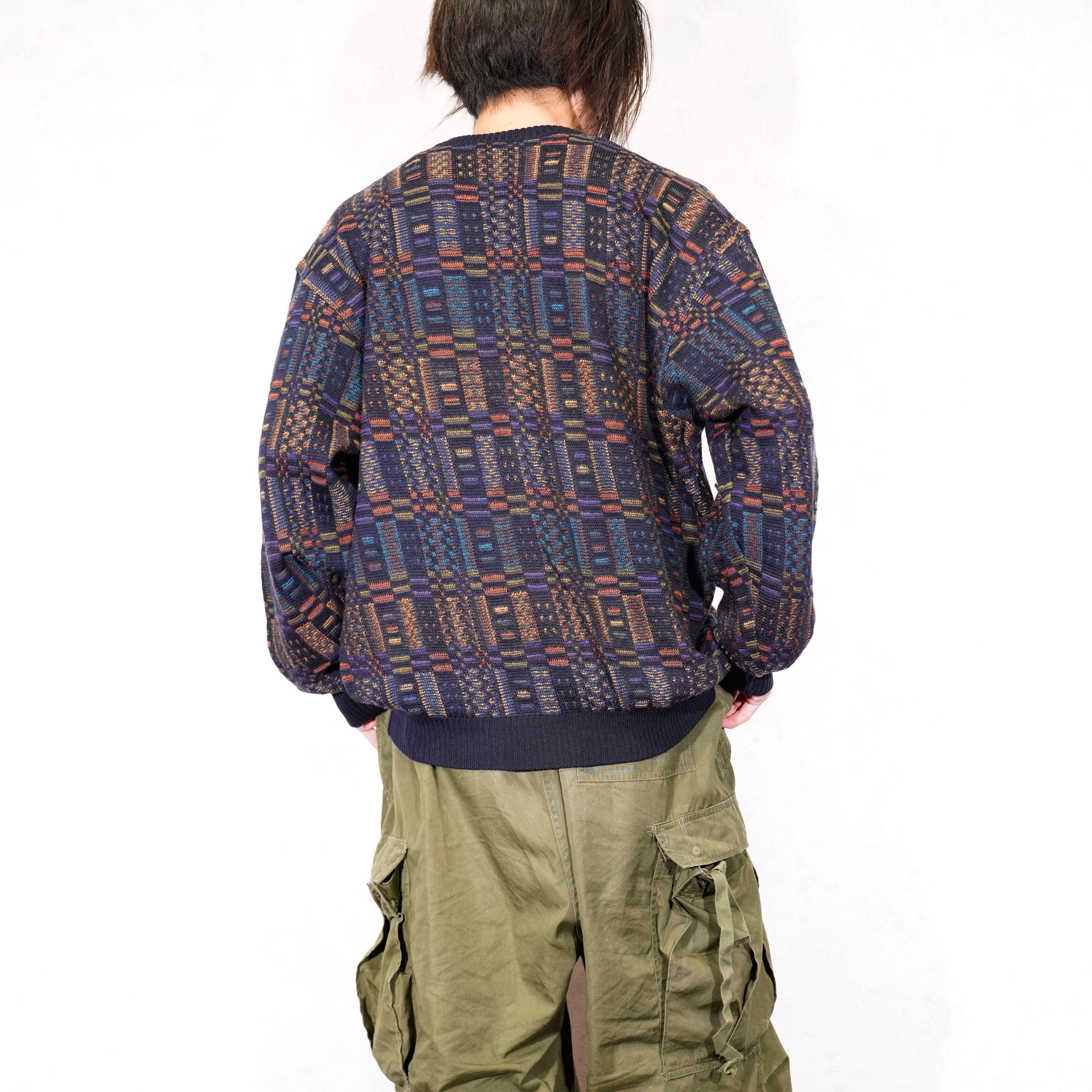 EU VINTAGE DALMINE PATTERNED EMBROIDERY DESIGN KNIT MADE IN ITALY/ヨーロッパ古着柄刺繍デザインニット