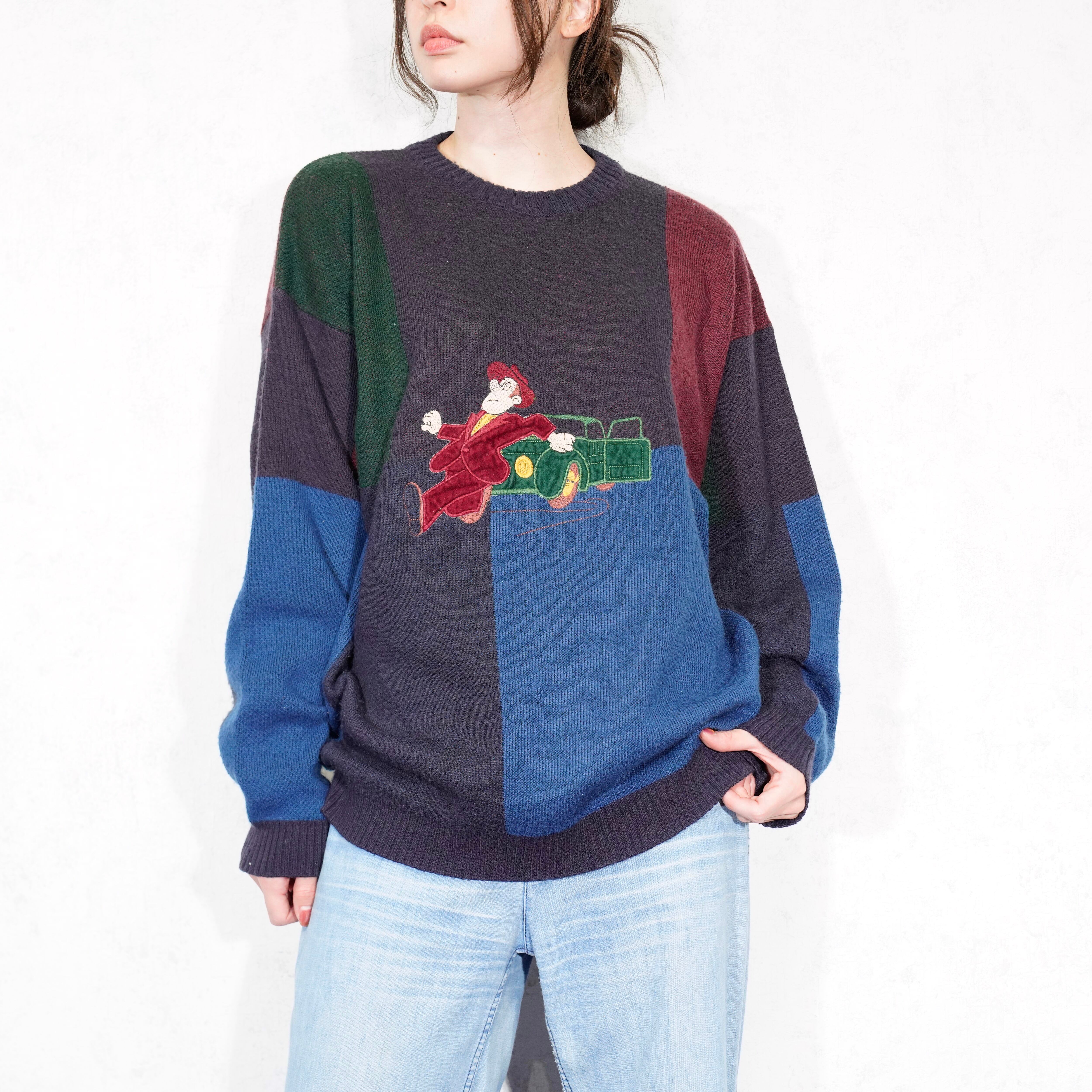 EU VINTAGE EMBROIDERY DESIGN KNIT/ヨーロッパ古着刺繍デザインニット