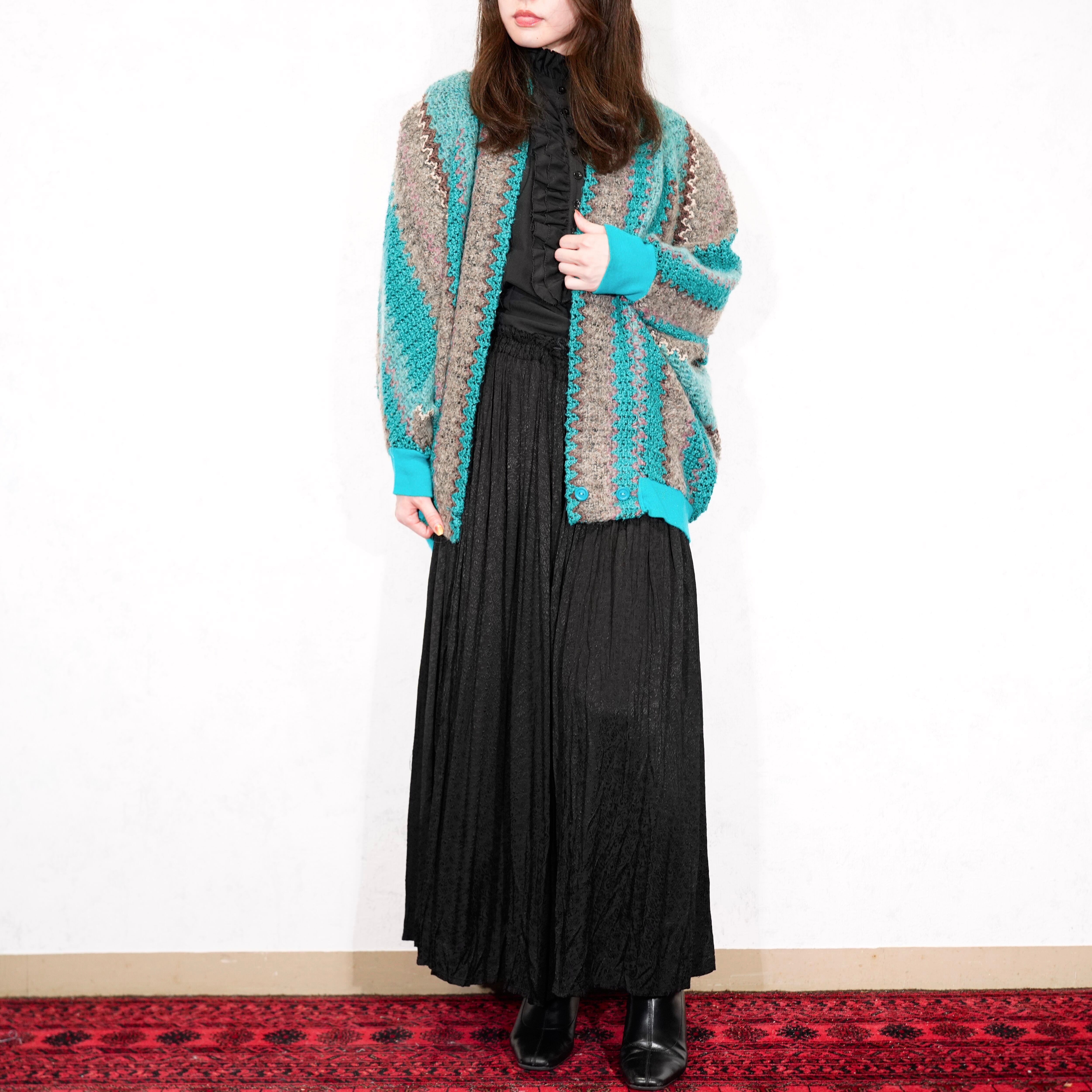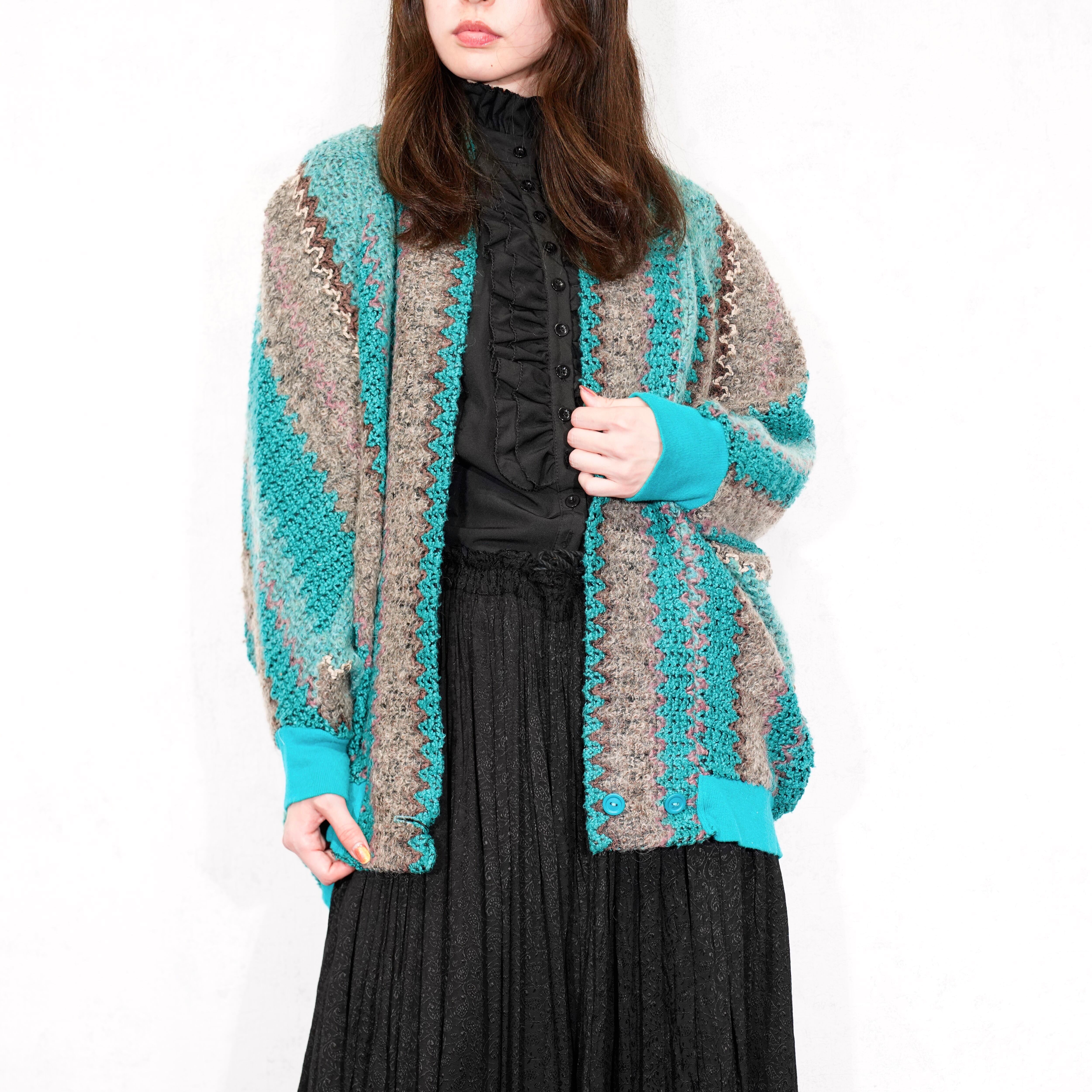 USA VINTAGE Bardinella Designs DOLMAIN SLEEVE DESIGN MIX KNIT CARDIGAN/アメリカ古着ドルマンスリーブデザインミックスニットカーディガン(ジャケット)