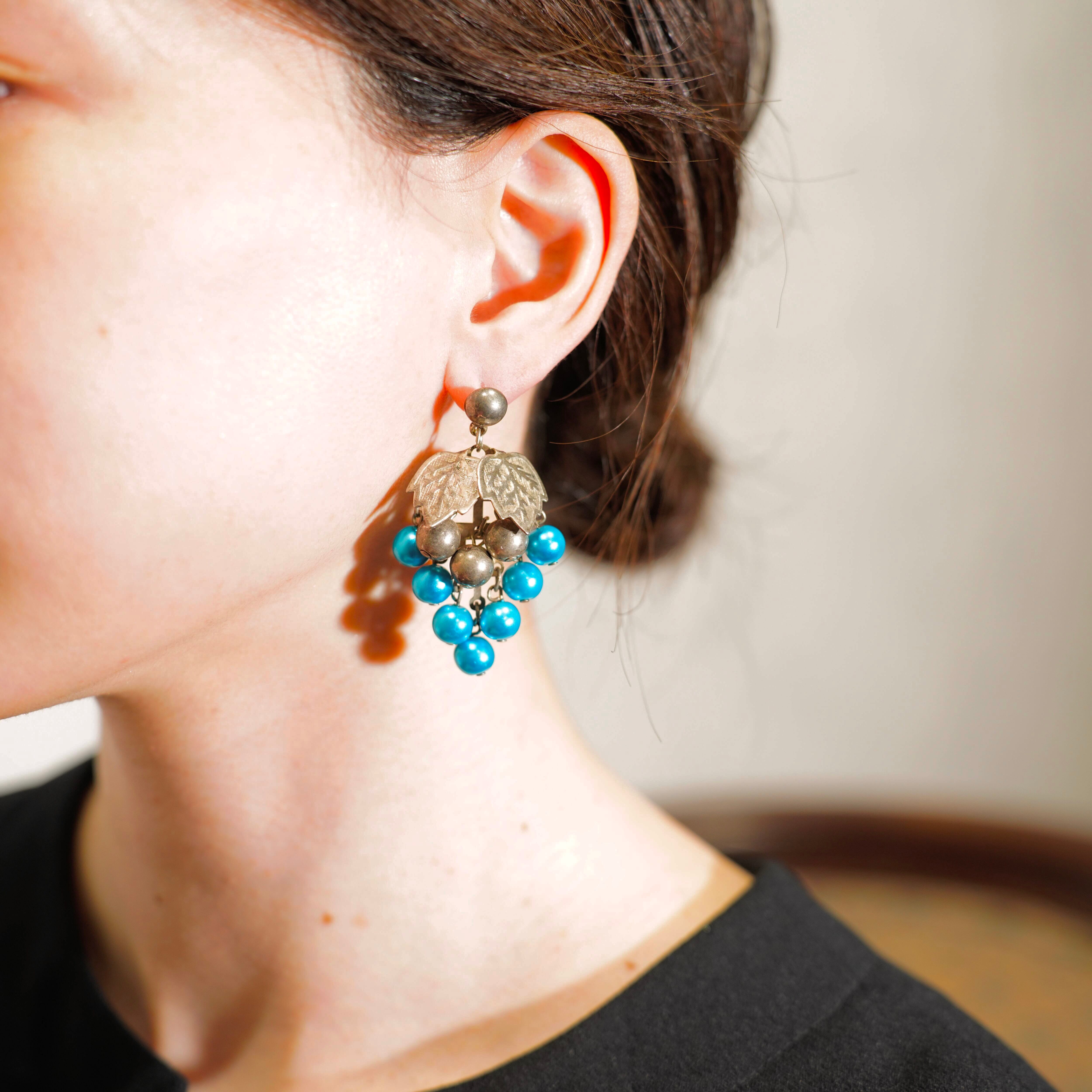 USA VINTAGE COLOR STONE GRAPE DESIGN SWING EARRING/アメリカ古着カラーストーンぶどうデザインピアス