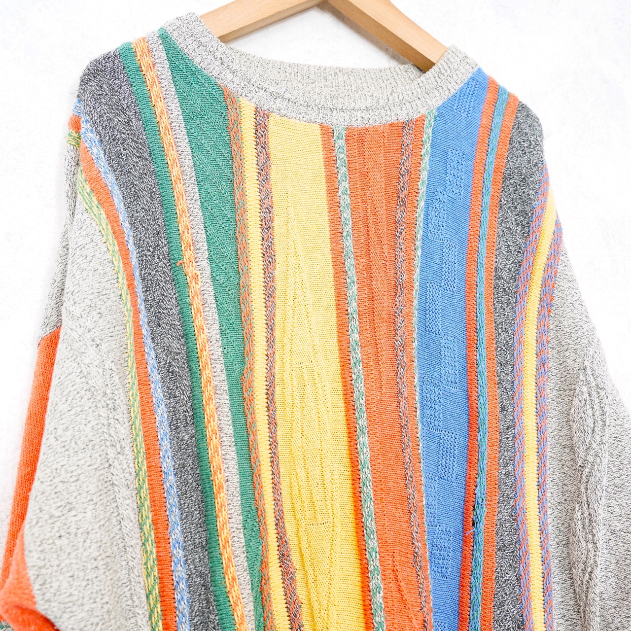 EU VINTAGE 3SUISSES COLORFUL STRIPE PATTERNED DESIGN COTTON 3D KNIT/ヨーロッパ古着カラフルストライプ柄コットン3Dニット