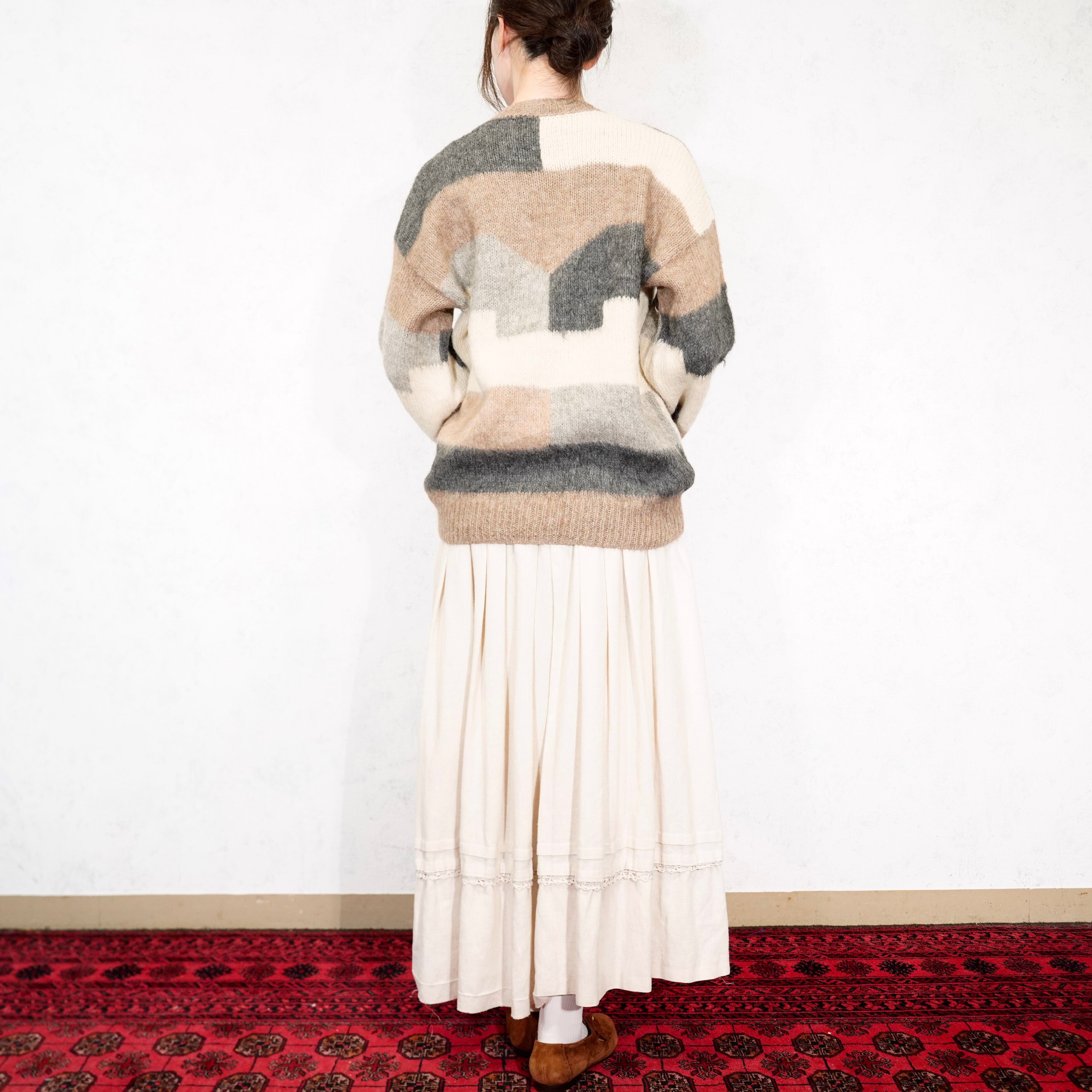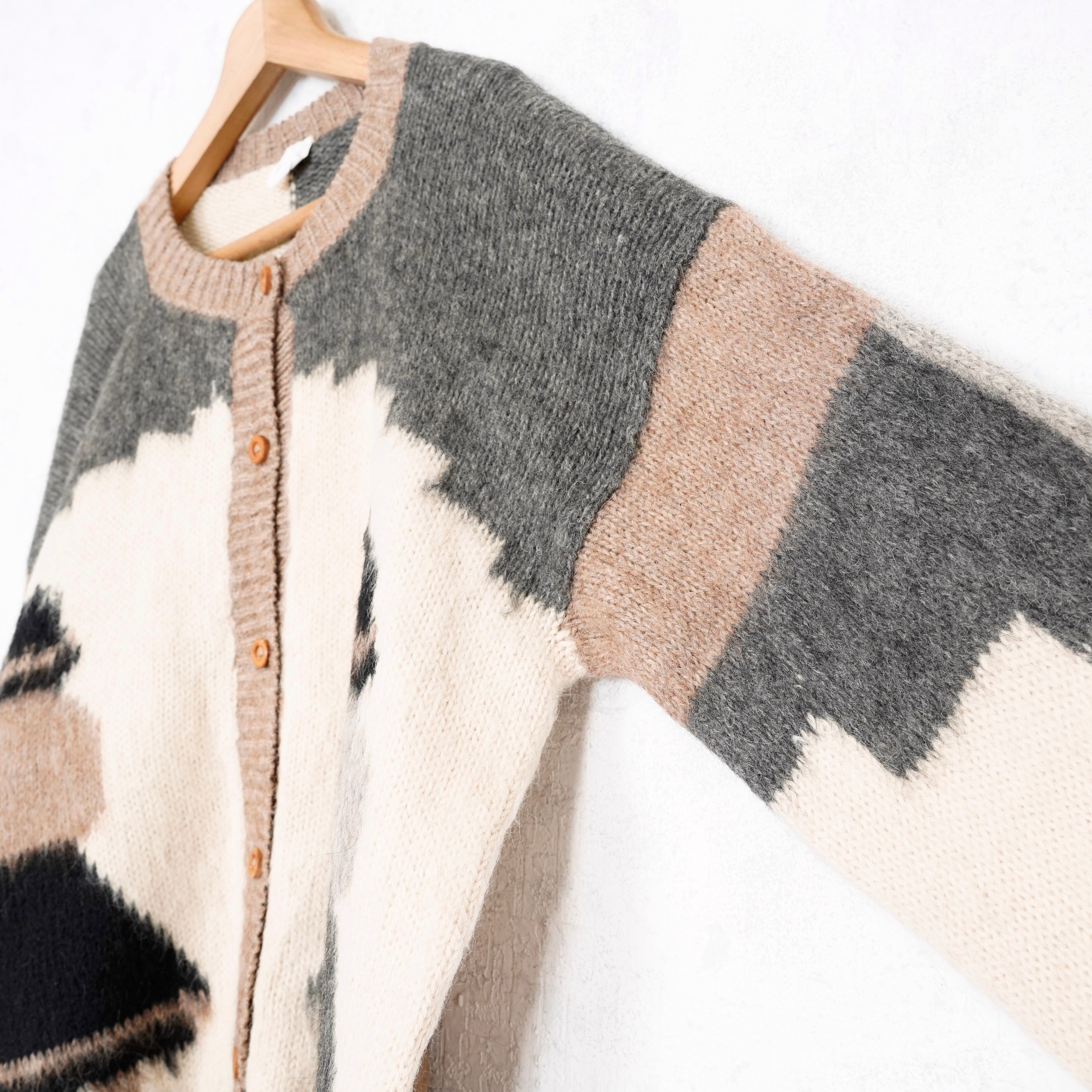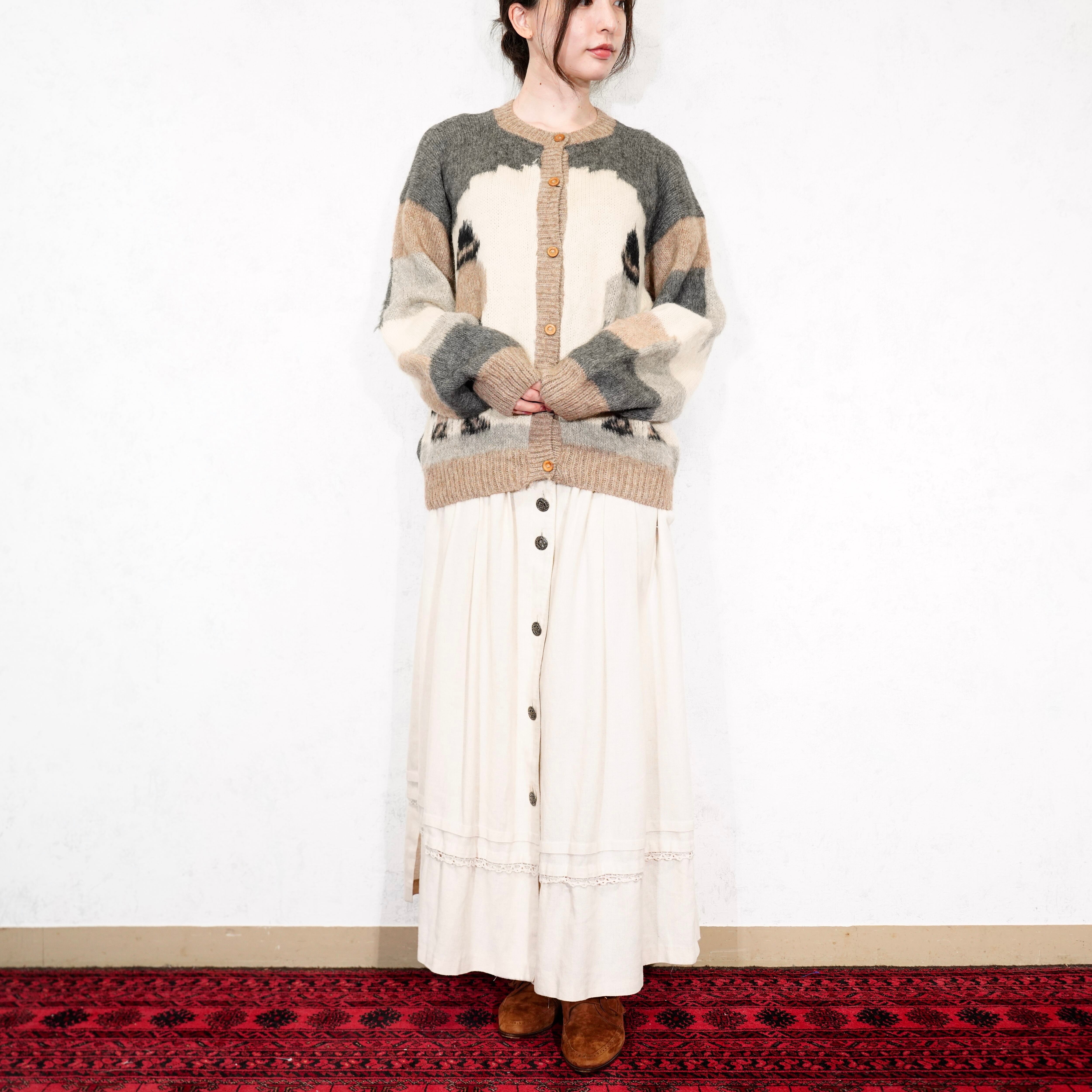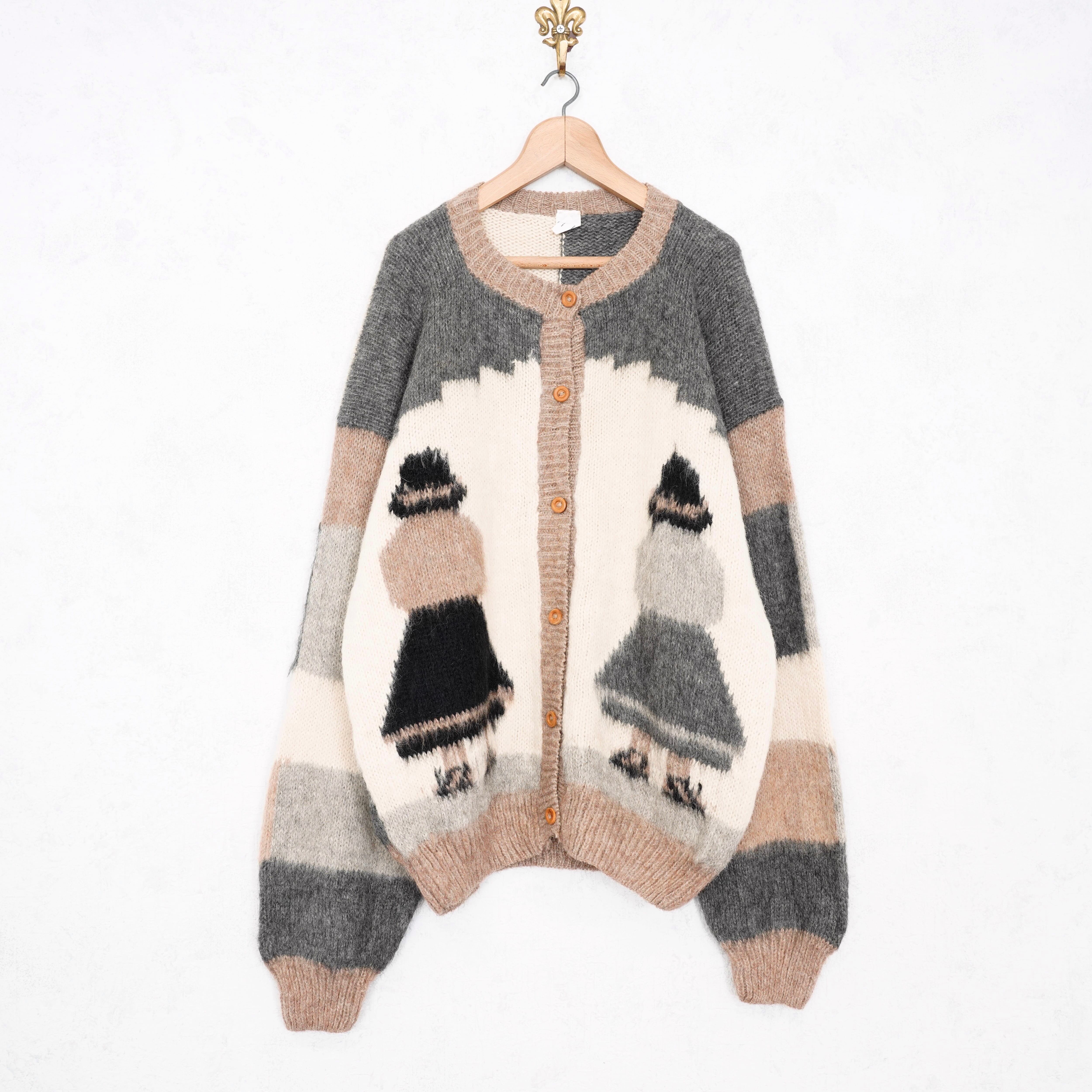 *SPECIAL ITEM* USA VINTAGE GIRLS PATTERNED DESIGN ALPACA WOOL 100% KNIT CARDIGAN/アメリカ古着女の子柄デザインアルパカウール100%ニットカーディガン
