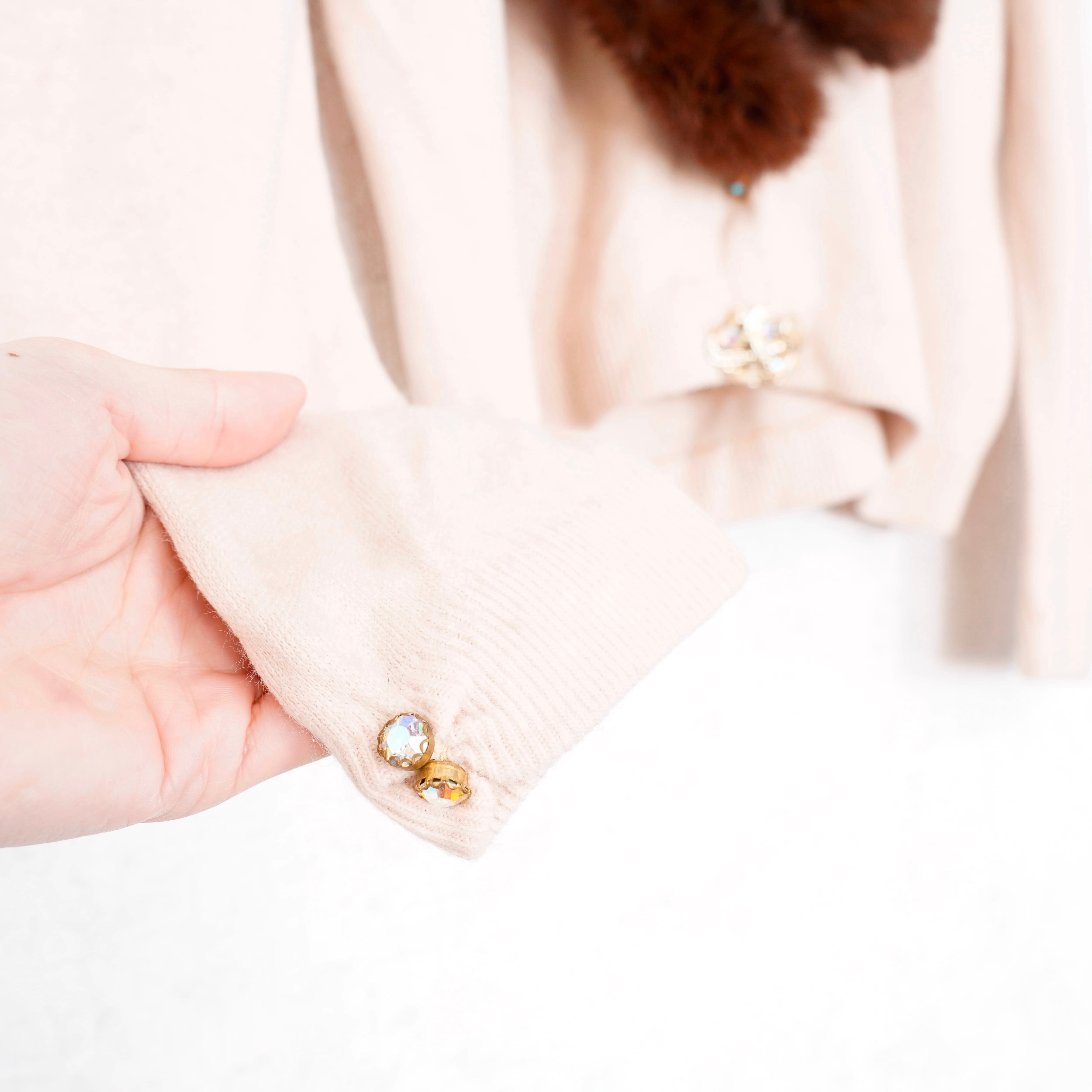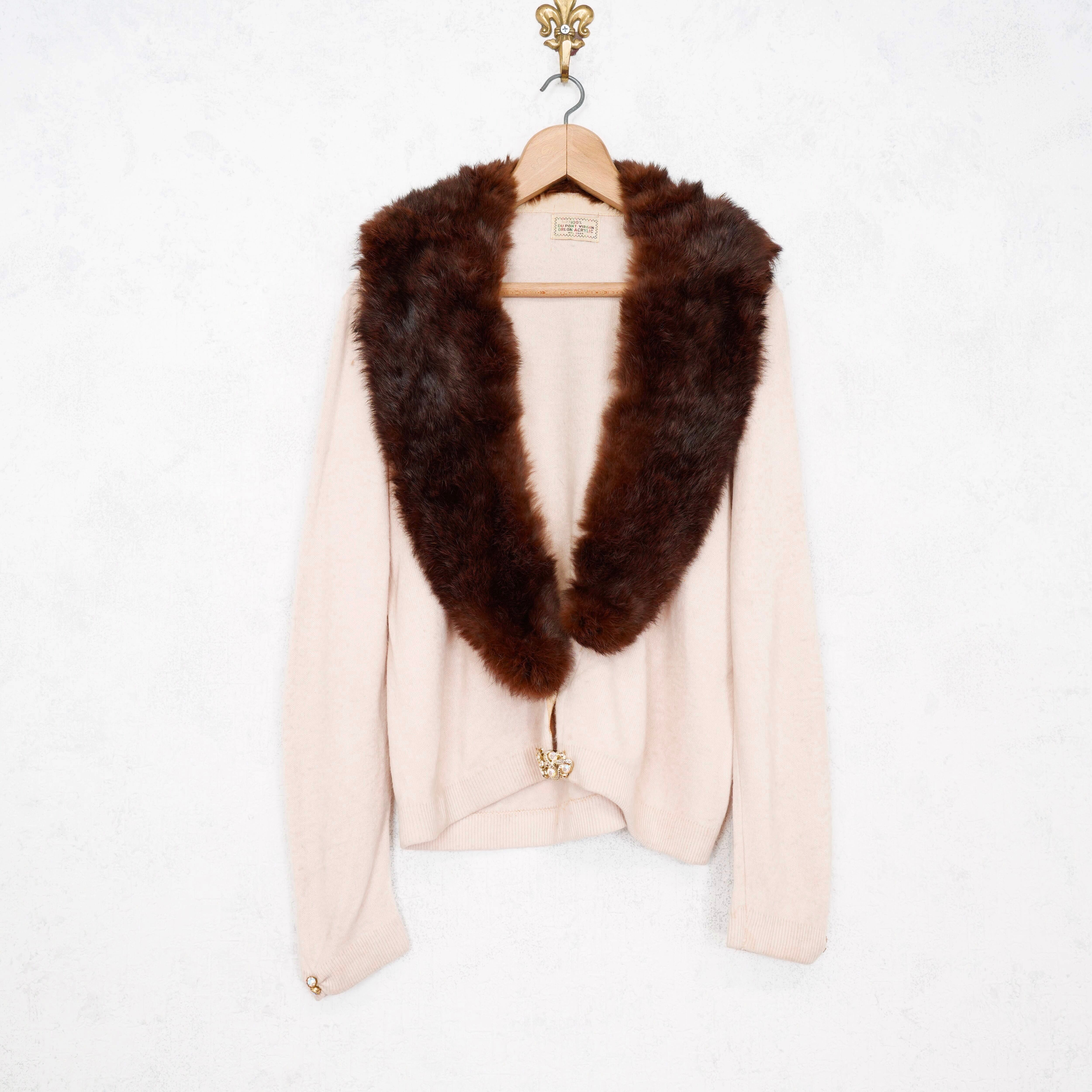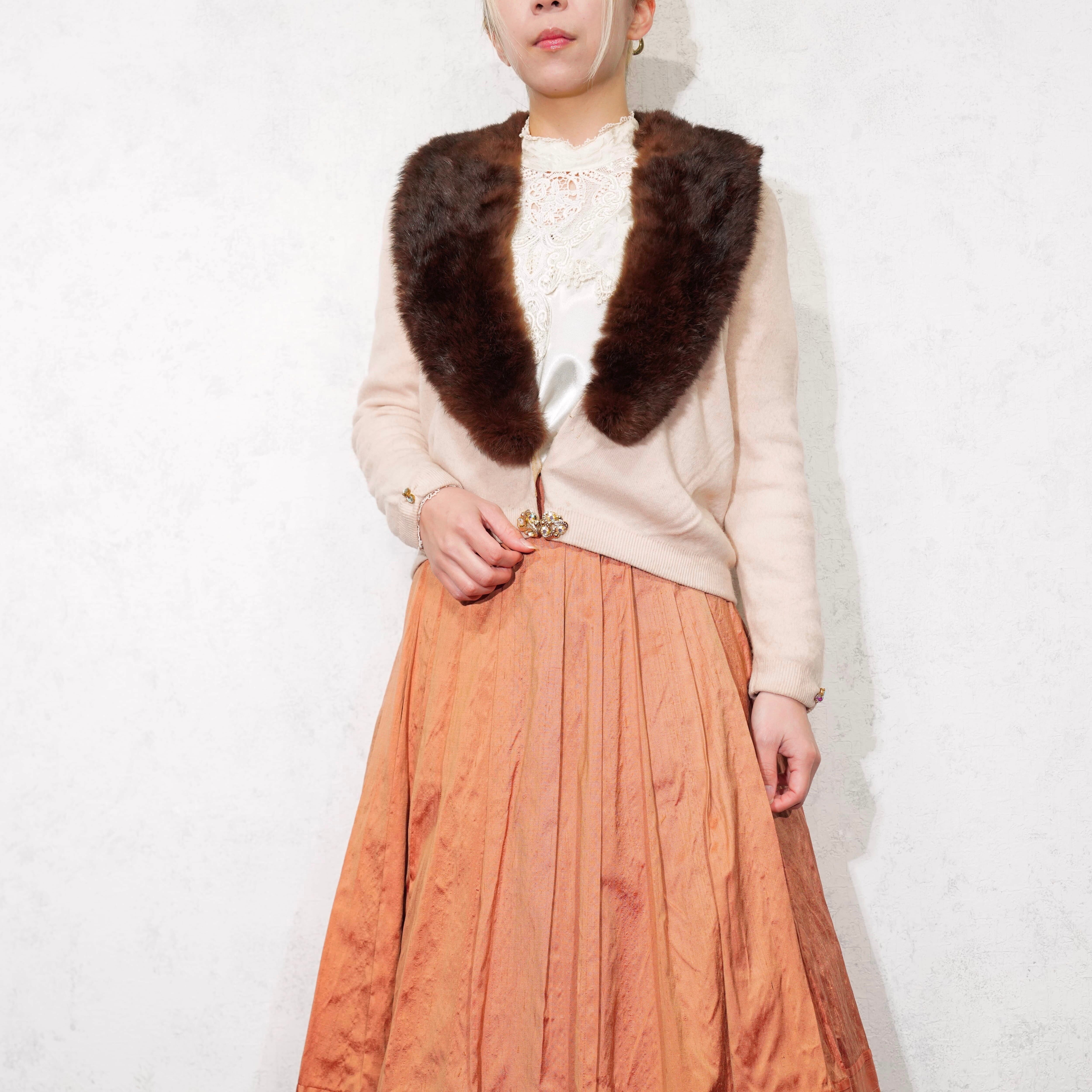 60's USA VINTAGE DU PONT VIRGIN ORLON ACRLYIC METAL HOCK DESIGN FUR KNIT CARDIGAN/60年代アメリカ古着メタルホックデザインファーニットカーディガン